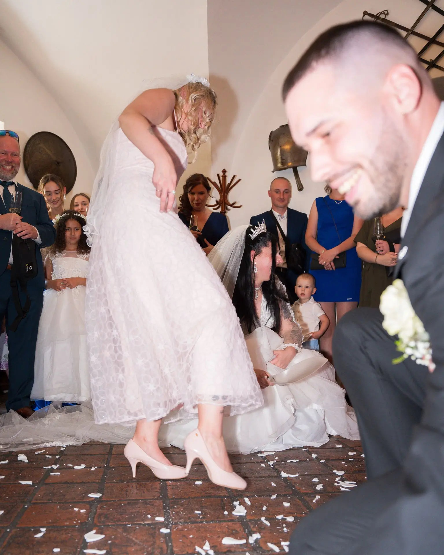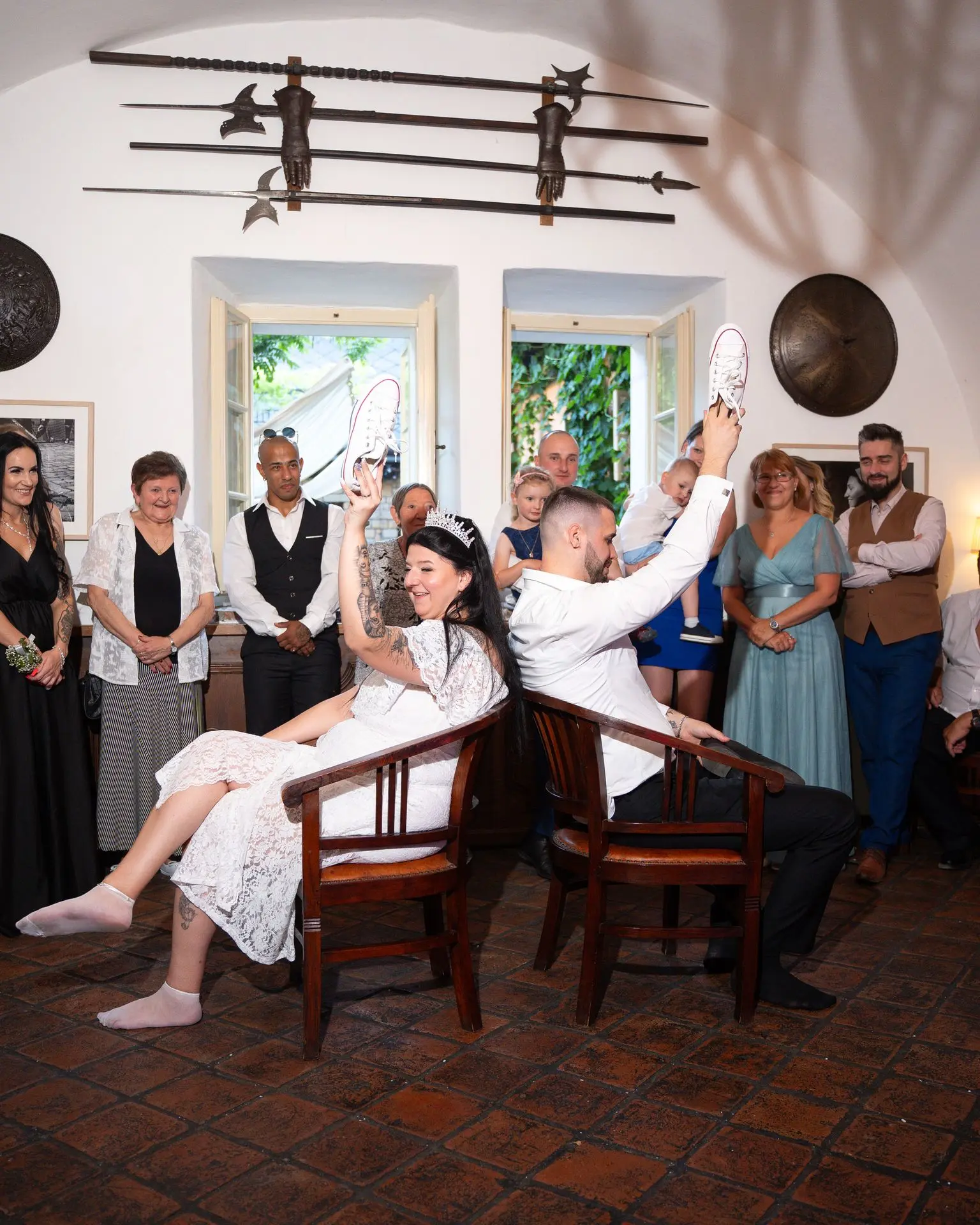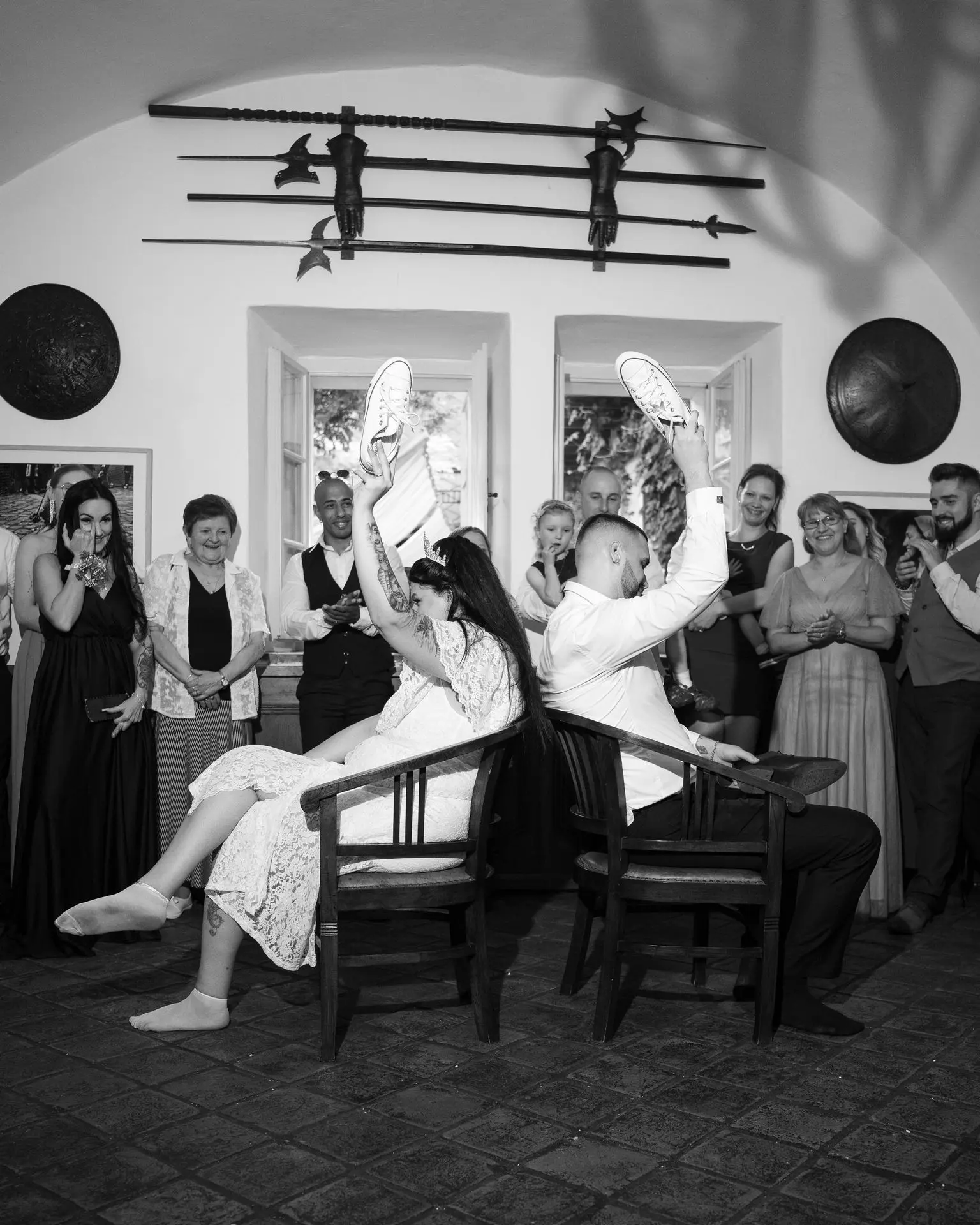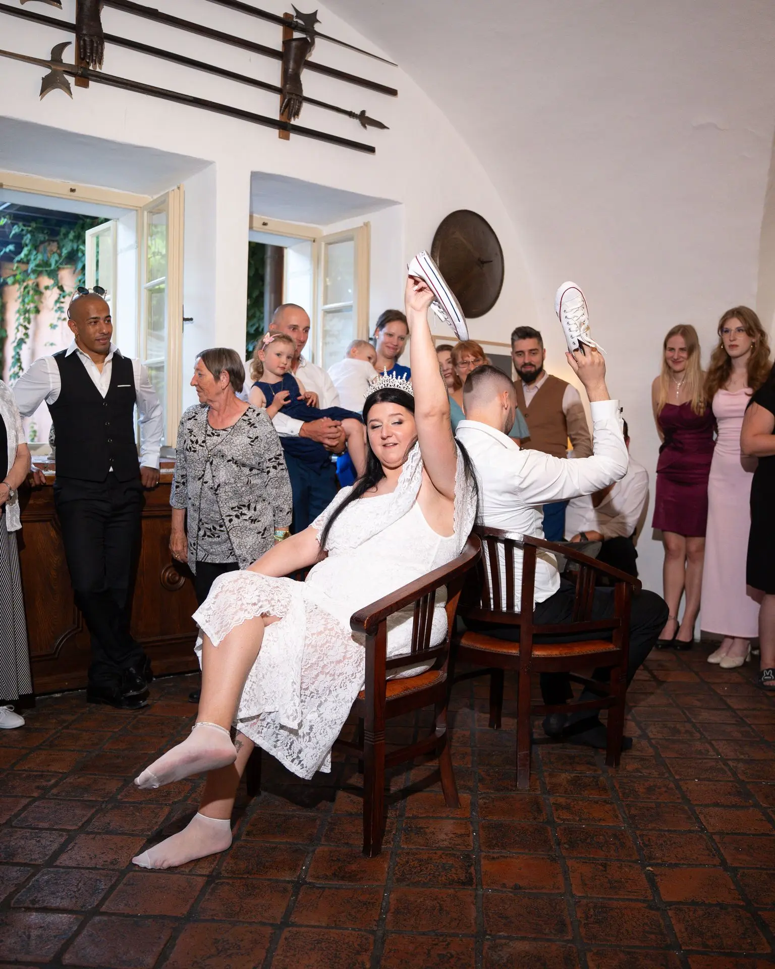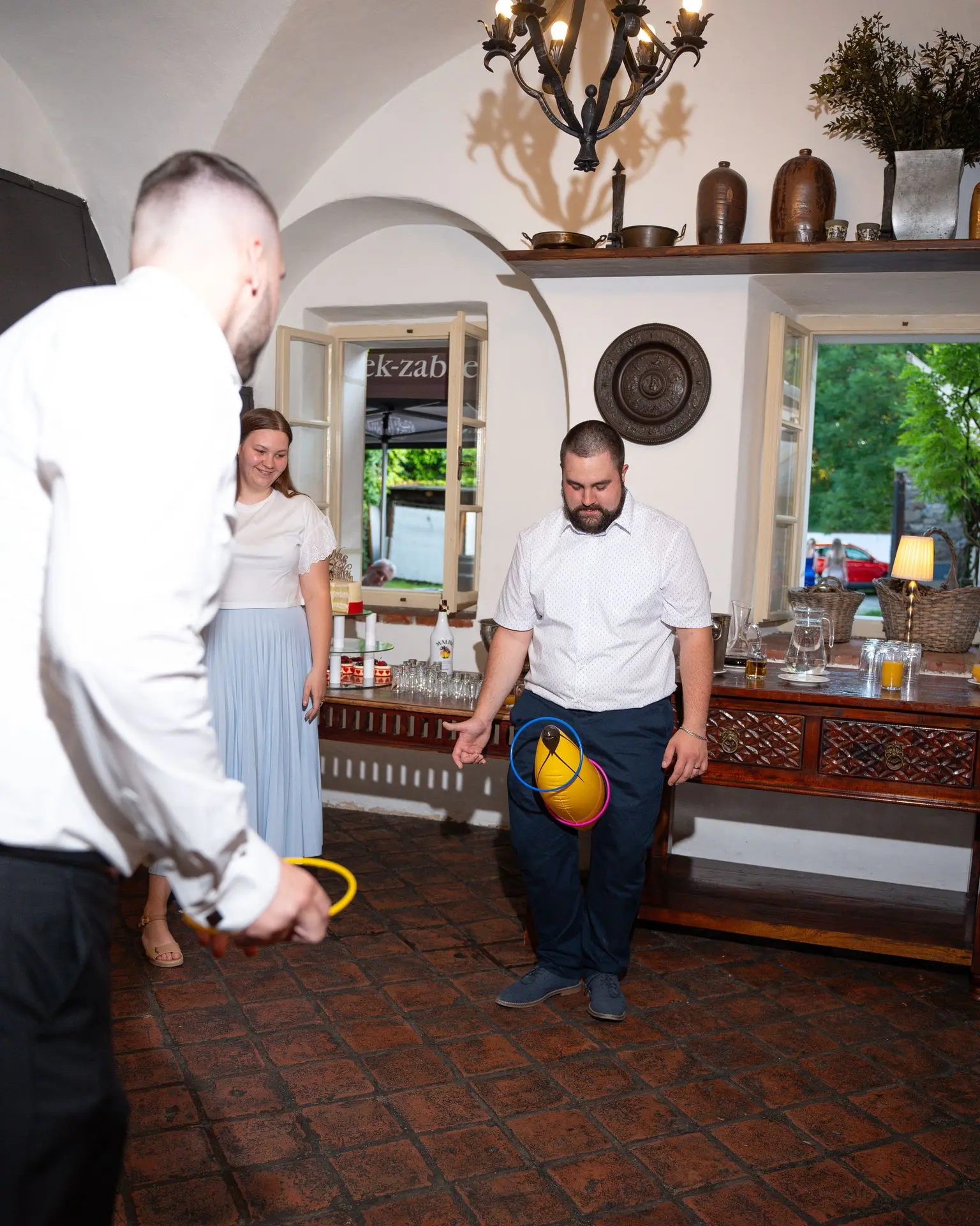 Byla to svatba plná smíchu, tance a her, co pobavily úplně všechny. Skákací hrad bavil malé i velké, u her se soutěžilo, fandilo a zvedaly se boty s vážnou tváří i s výbuchem smíchu.