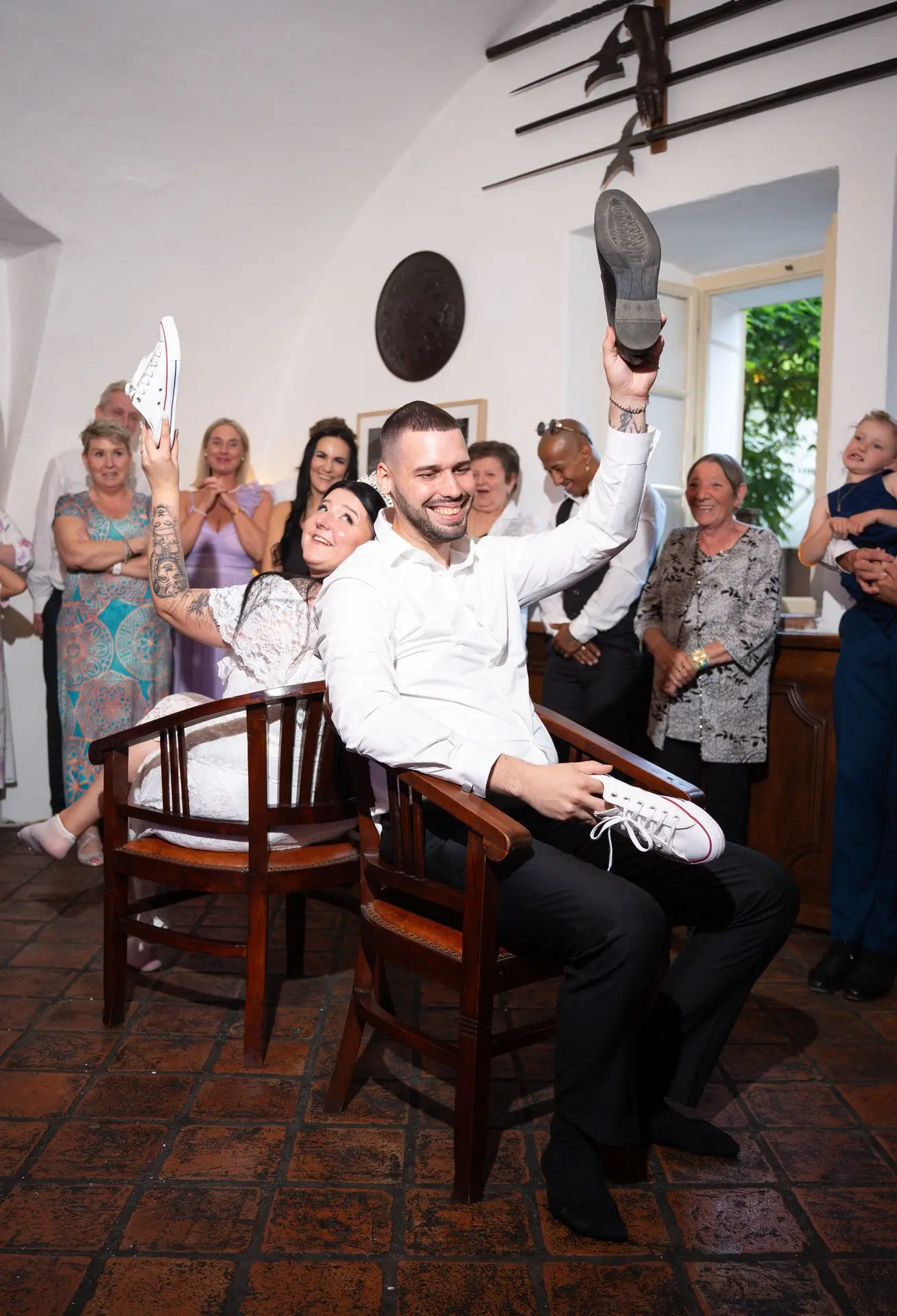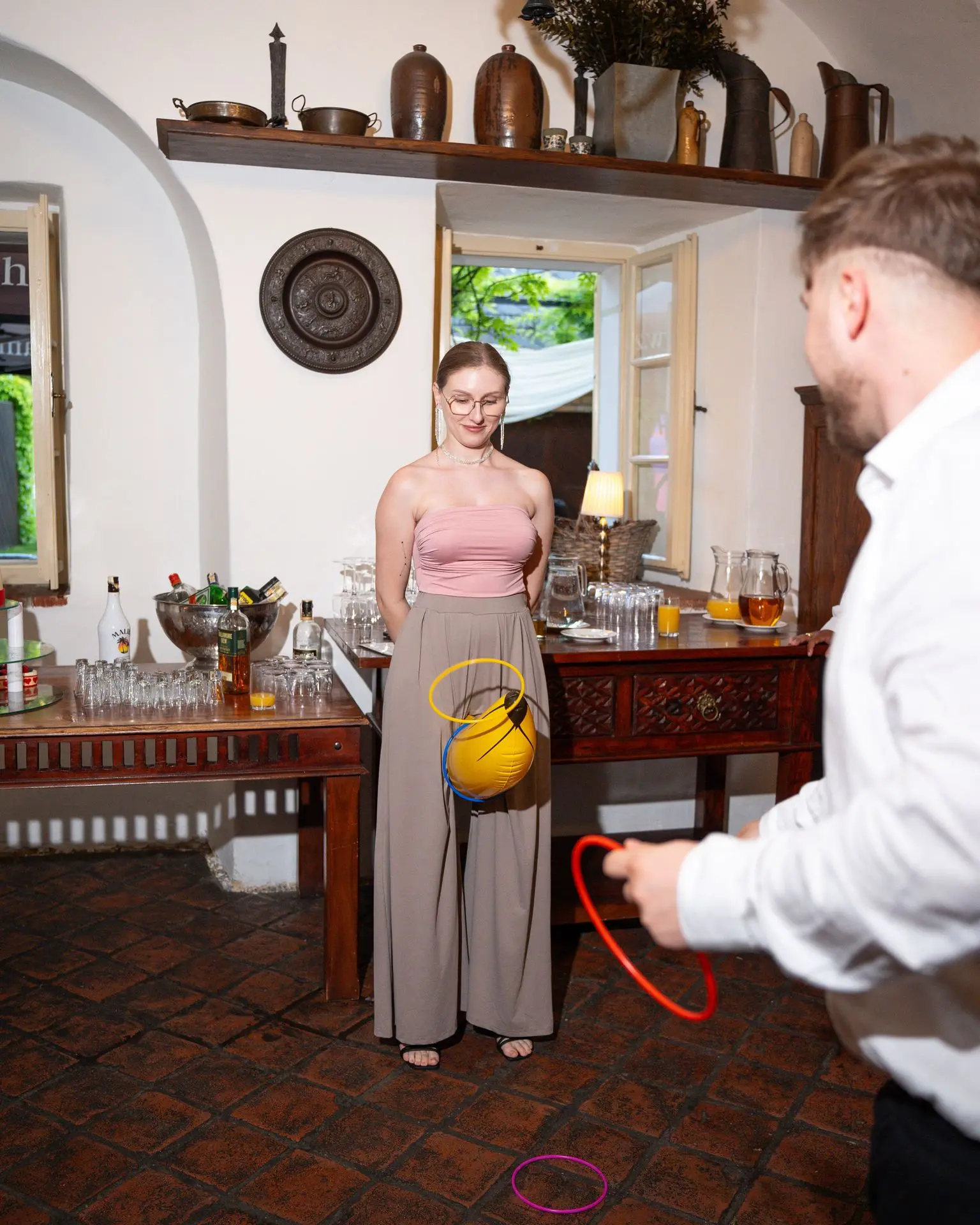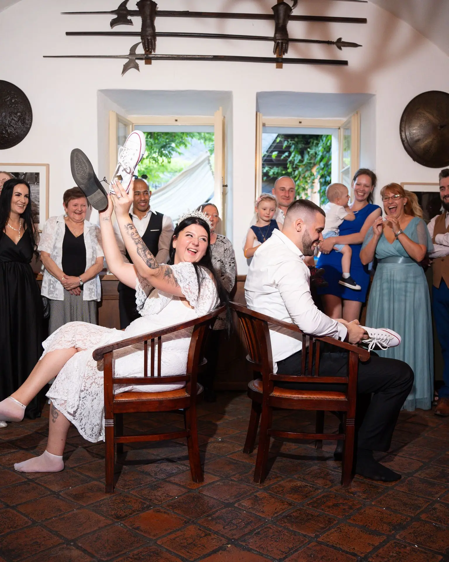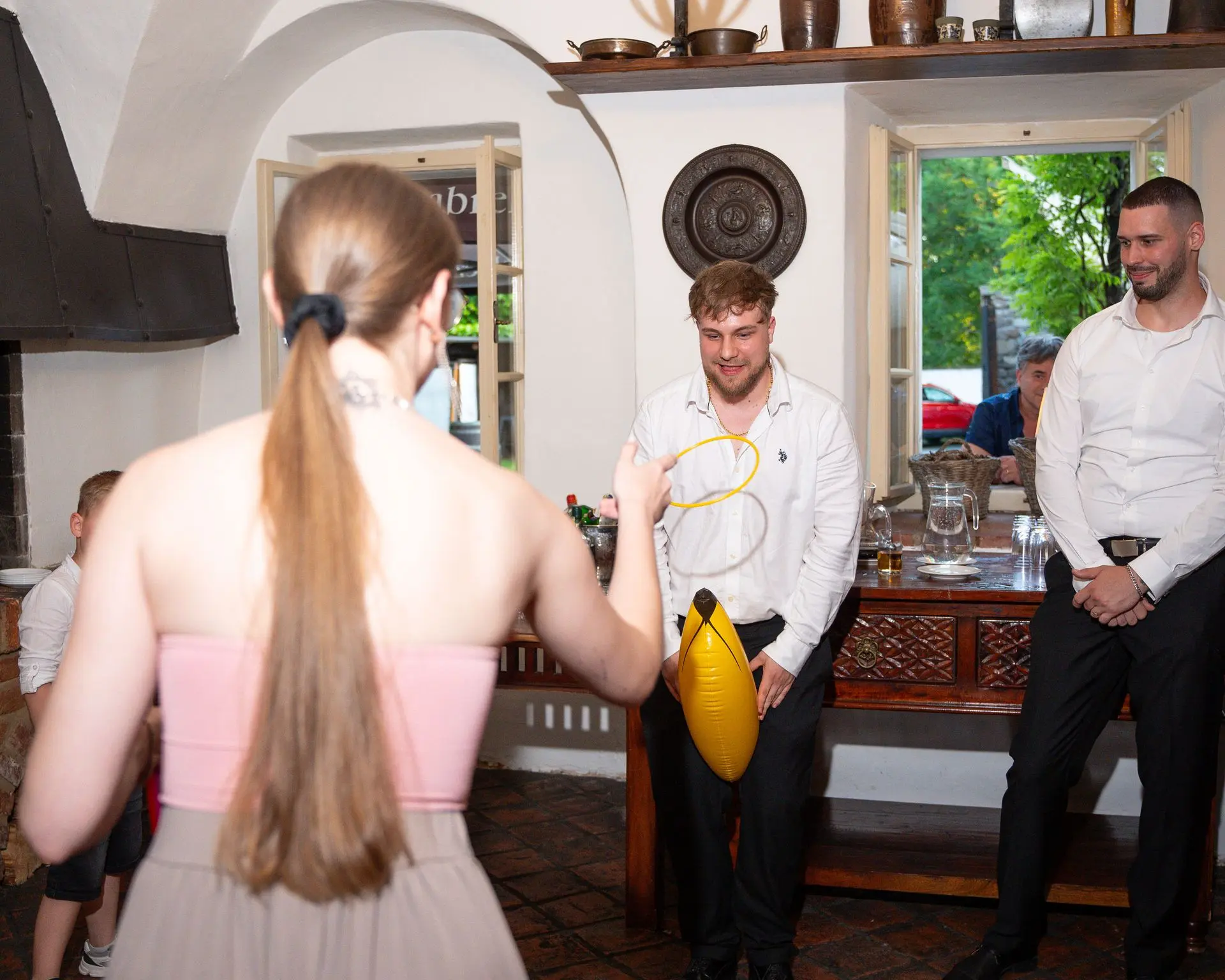 Byla to svatba plná smíchu, tance a her, co pobavily úplně všechny. Skákací hrad bavil malé i velké, u her se soutěžilo, fandilo a zvedaly se boty s vážnou tváří i s výbuchem smíchu.