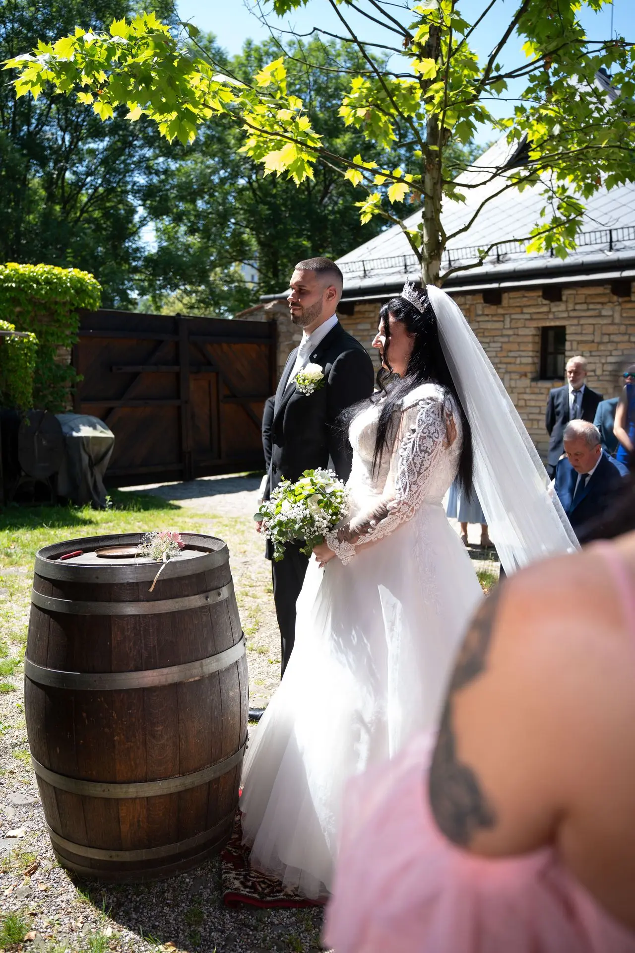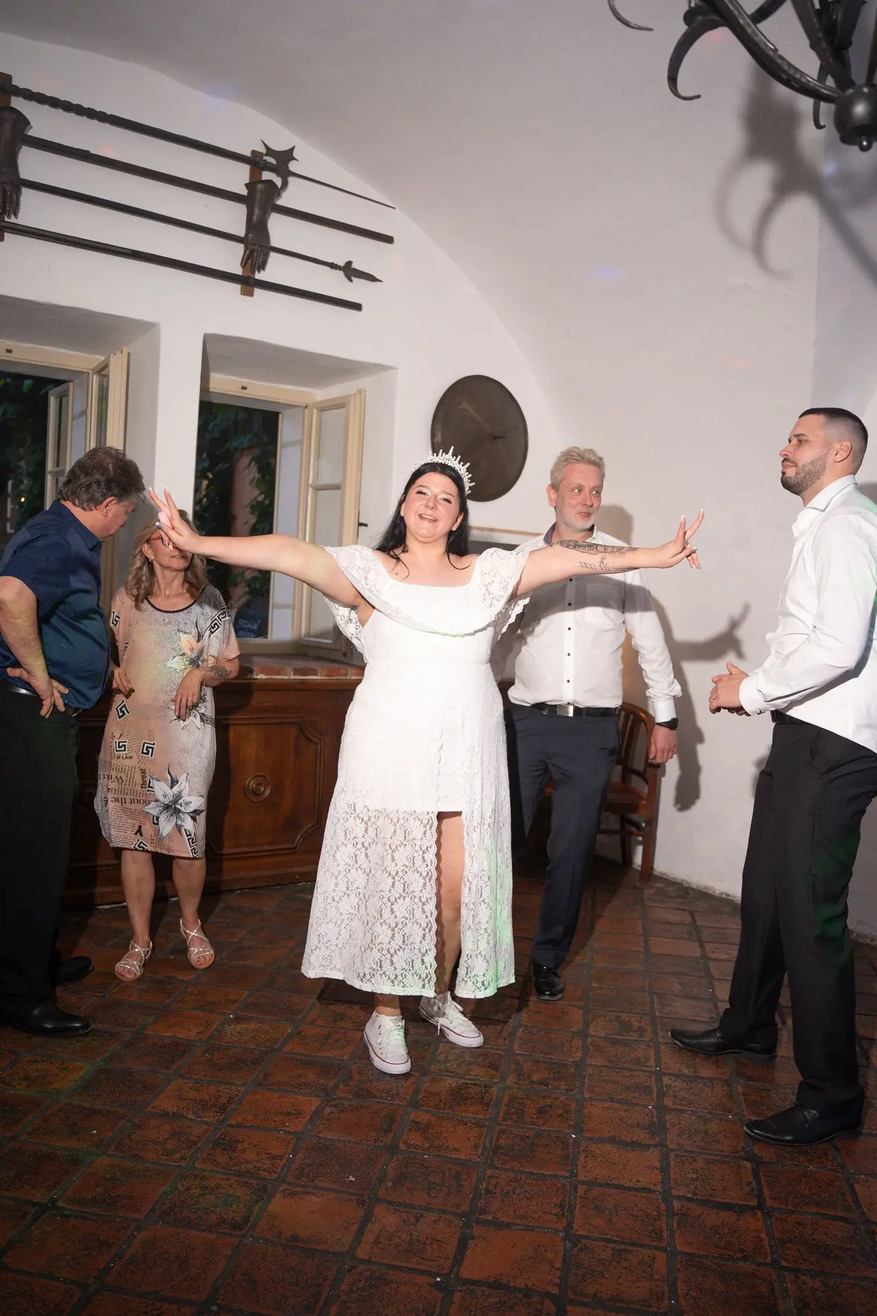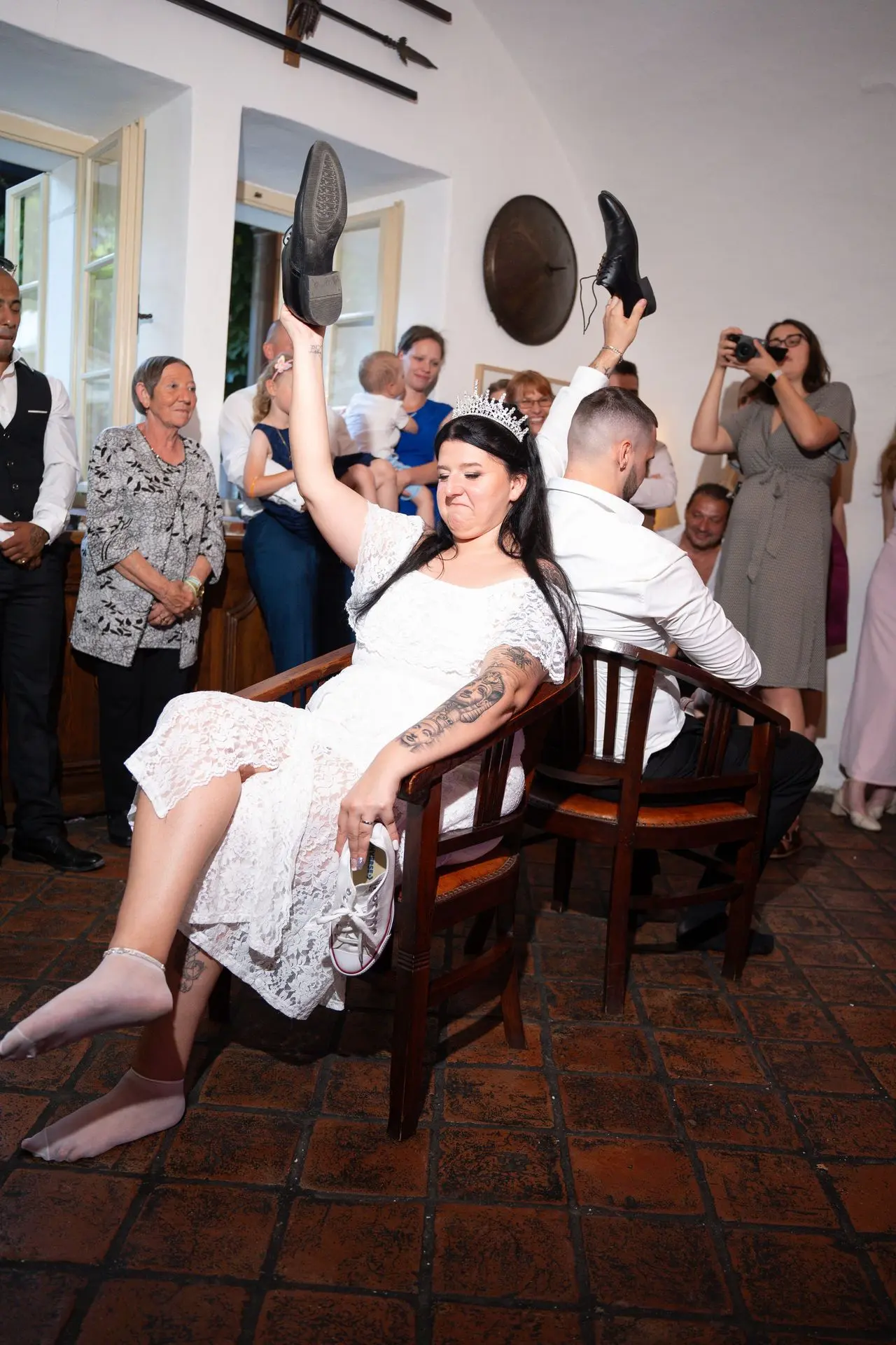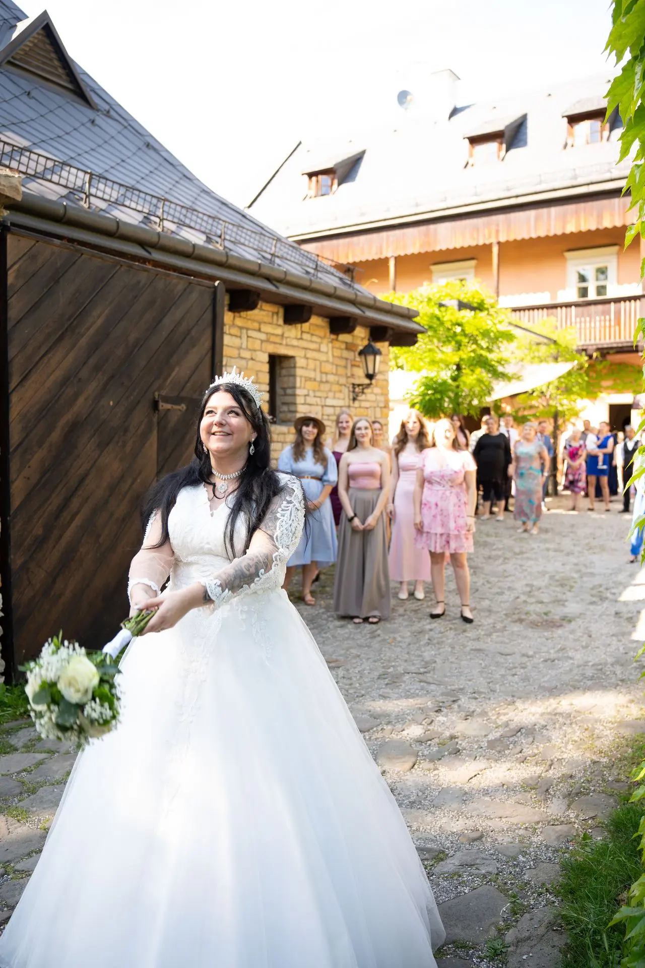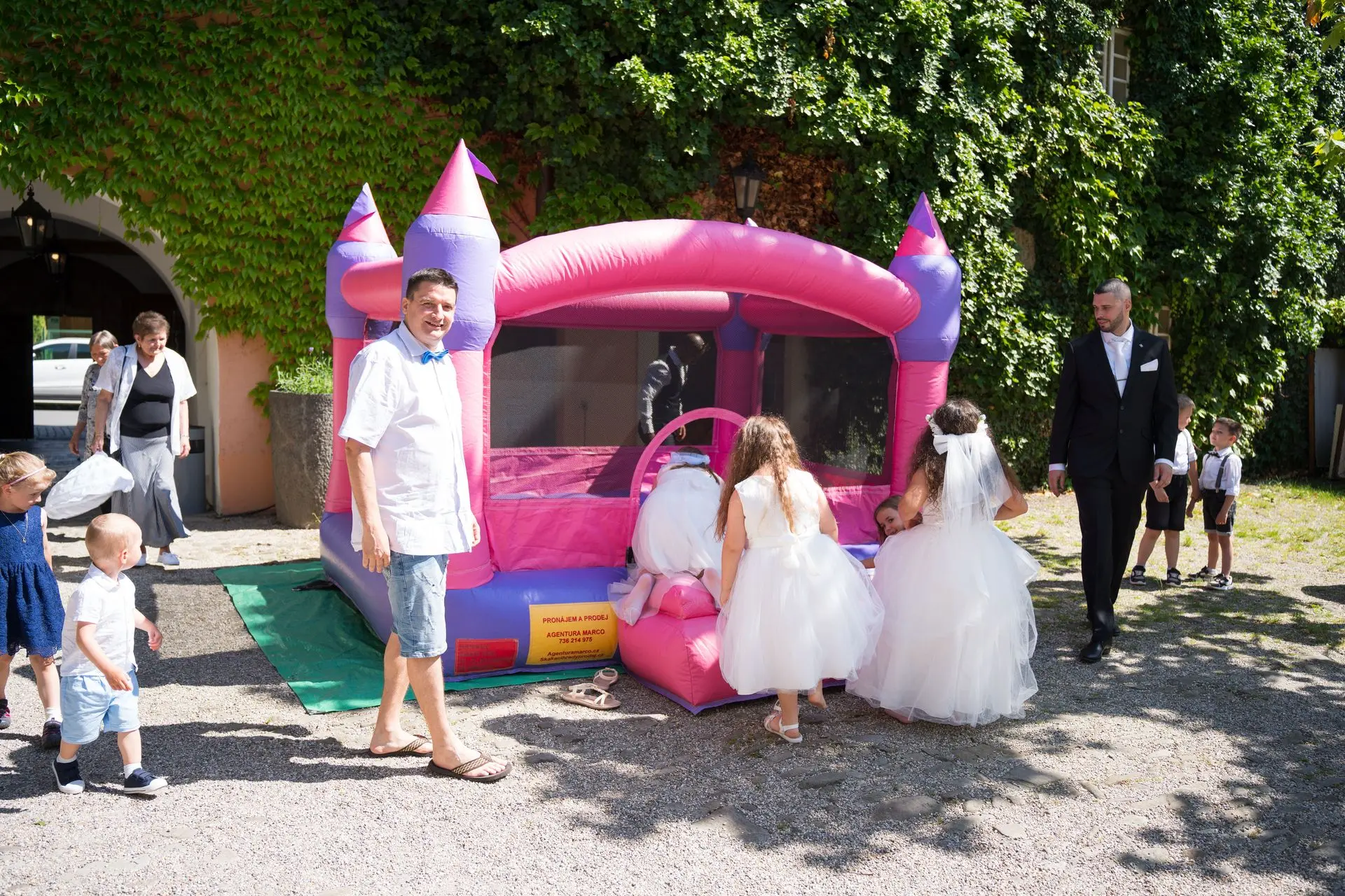 Byla to svatba plná smíchu, tance a her, co pobavily úplně všechny. Skákací hrad bavil malé i velké, u her se soutěžilo, fandilo a zvedaly se boty s vážnou tváří i s výbuchem smíchu.