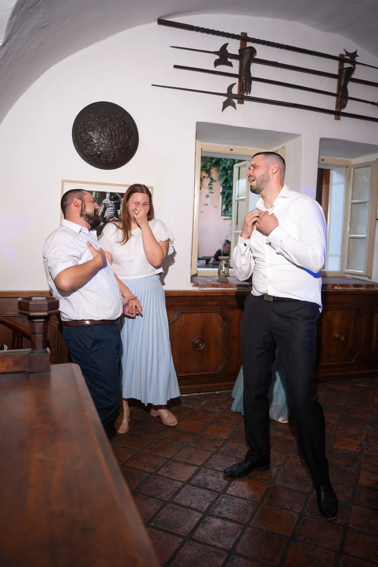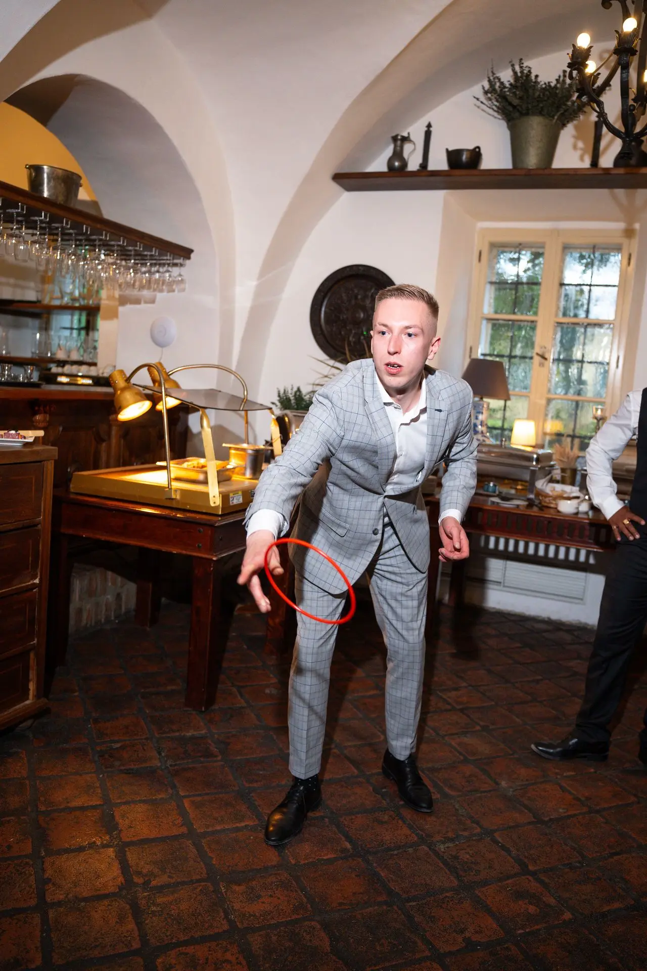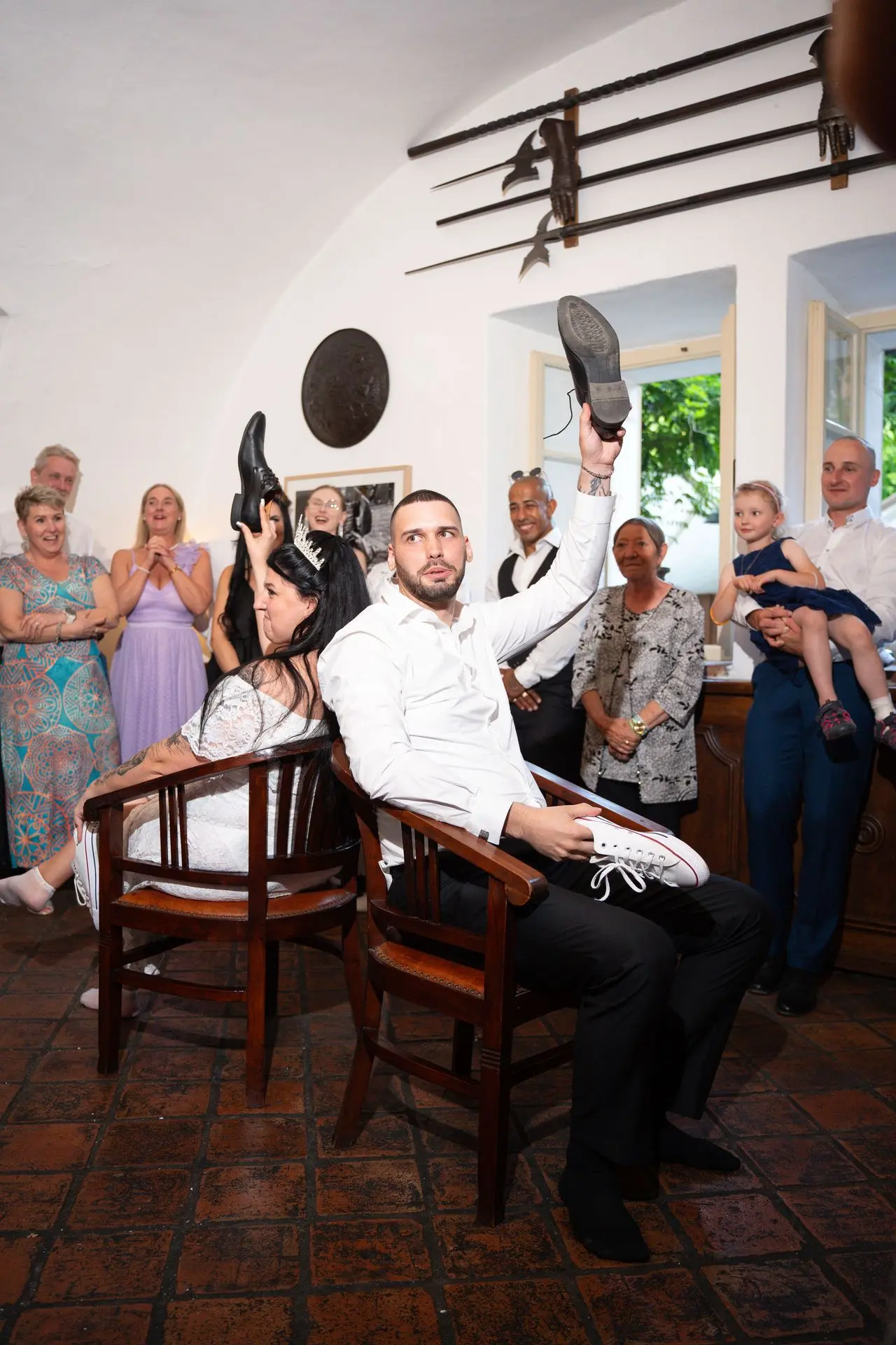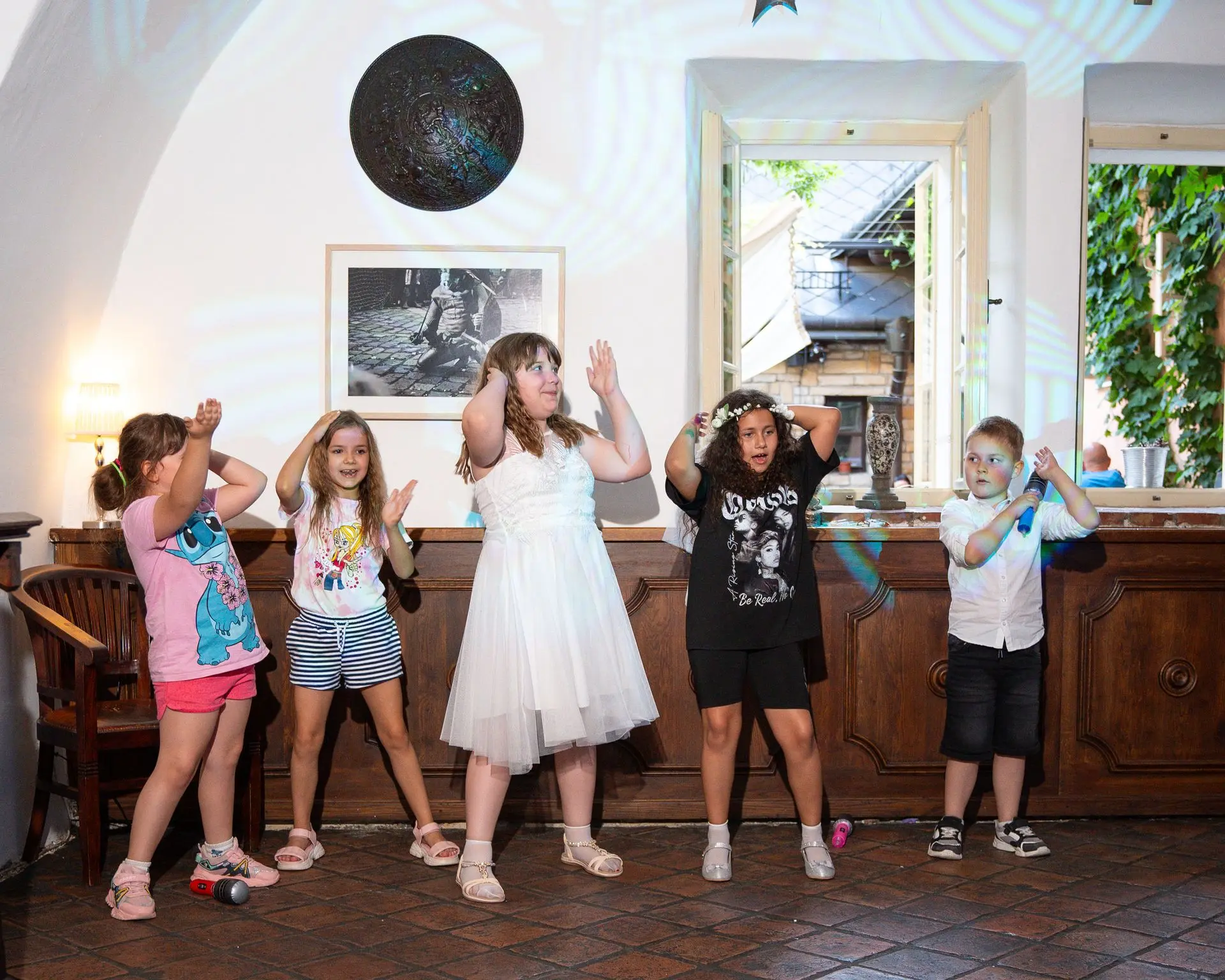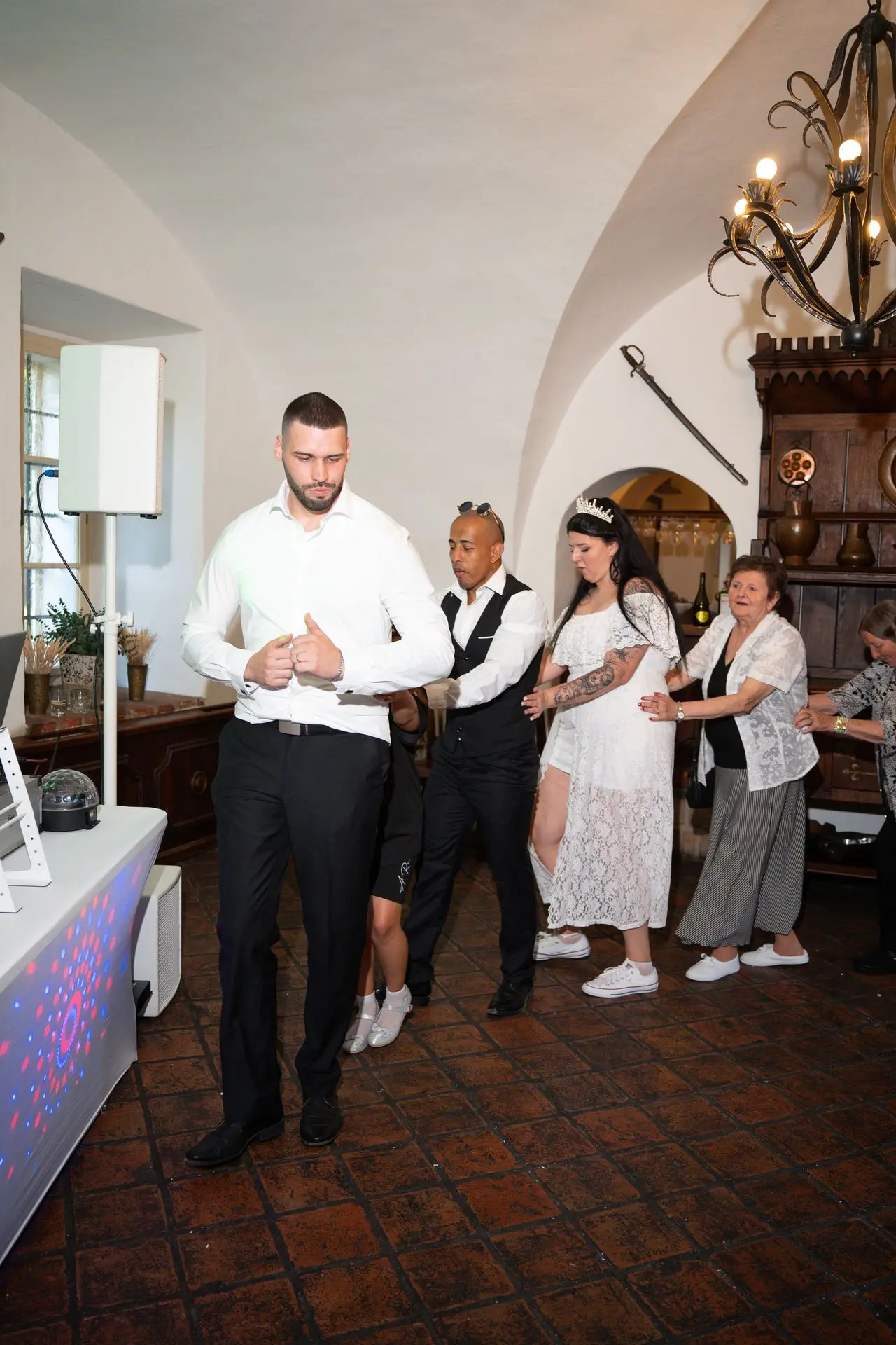 Byla to svatba plná smíchu, tance a her, co pobavily úplně všechny. Skákací hrad bavil malé i velké, u her se soutěžilo, fandilo a zvedaly se boty s vážnou tváří i s výbuchem smíchu.