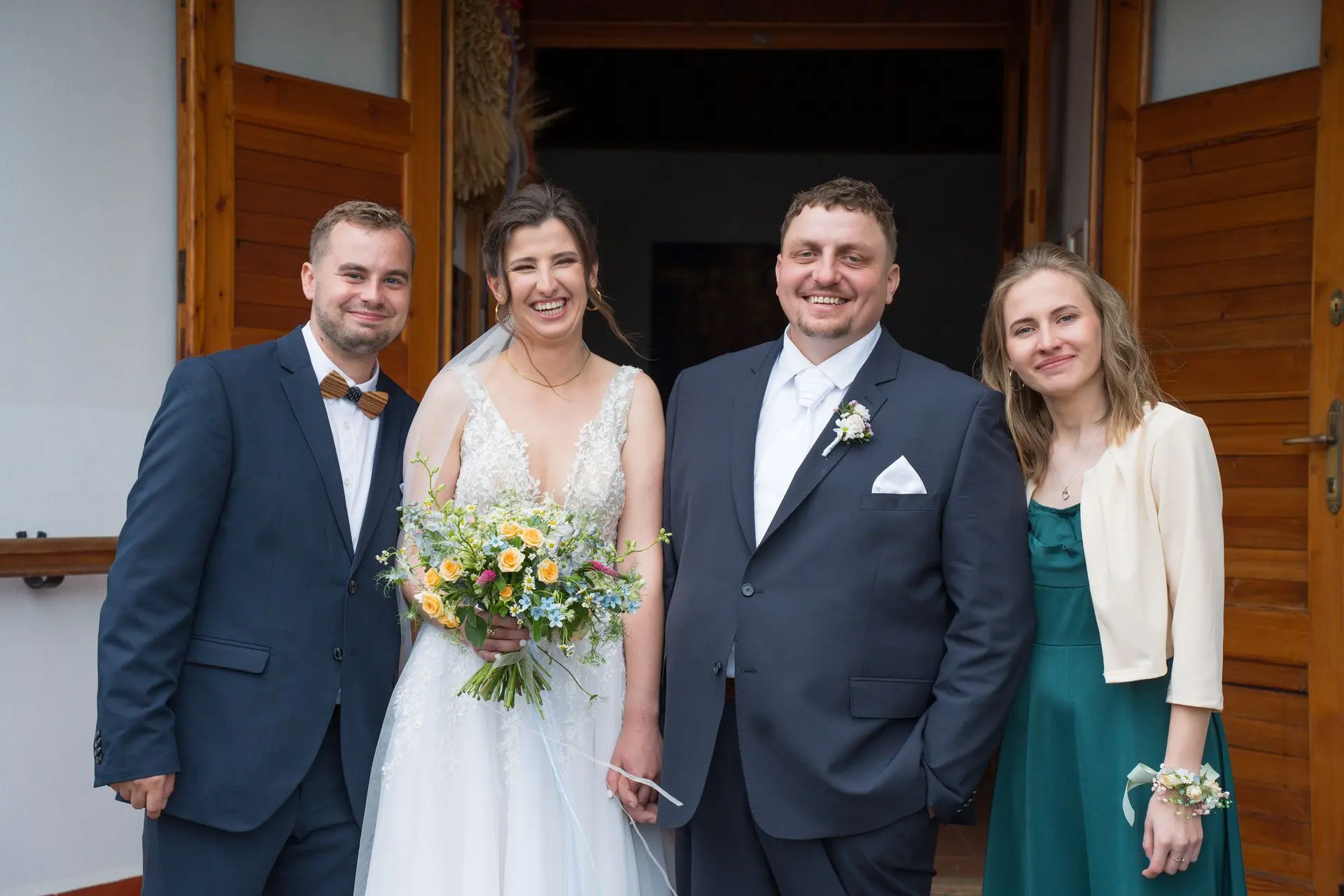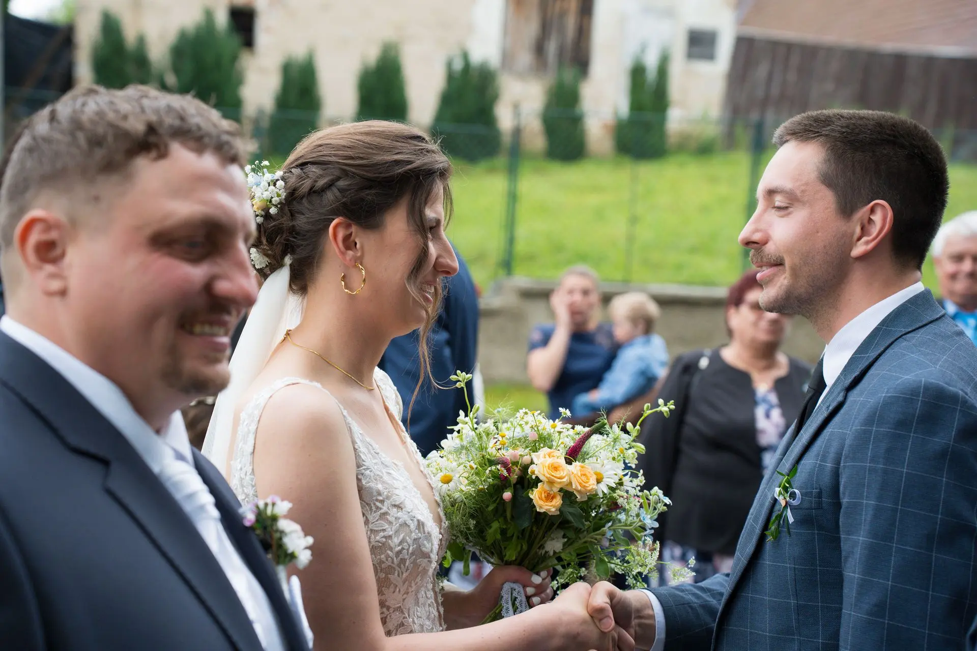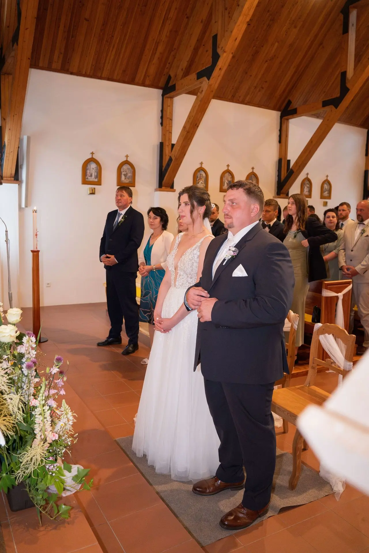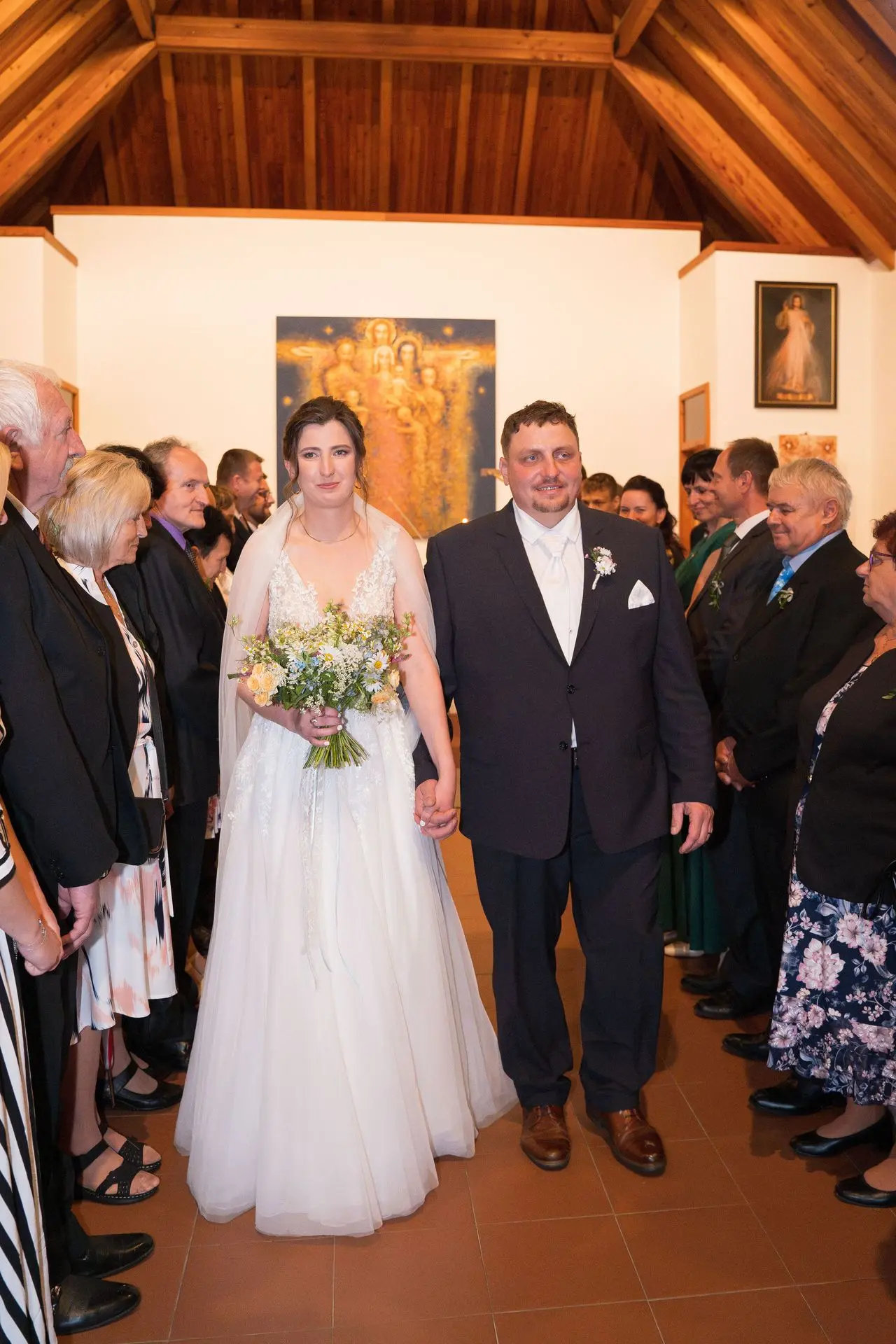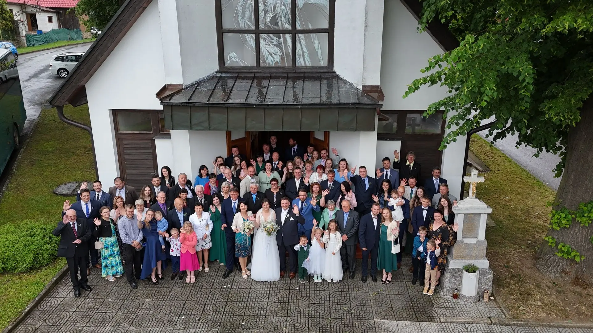 Řekli si své ano v kostele – v místě, kde se svět na chvíli zpomalil. Kde ticho mělo váhu a kde se na chvíli všechno zastavilo, jen aby mohli být spolu. Vilém s klidným úsměvem, Janča se světlem v očích, obklopení těmi, kterým na nich záleží.
