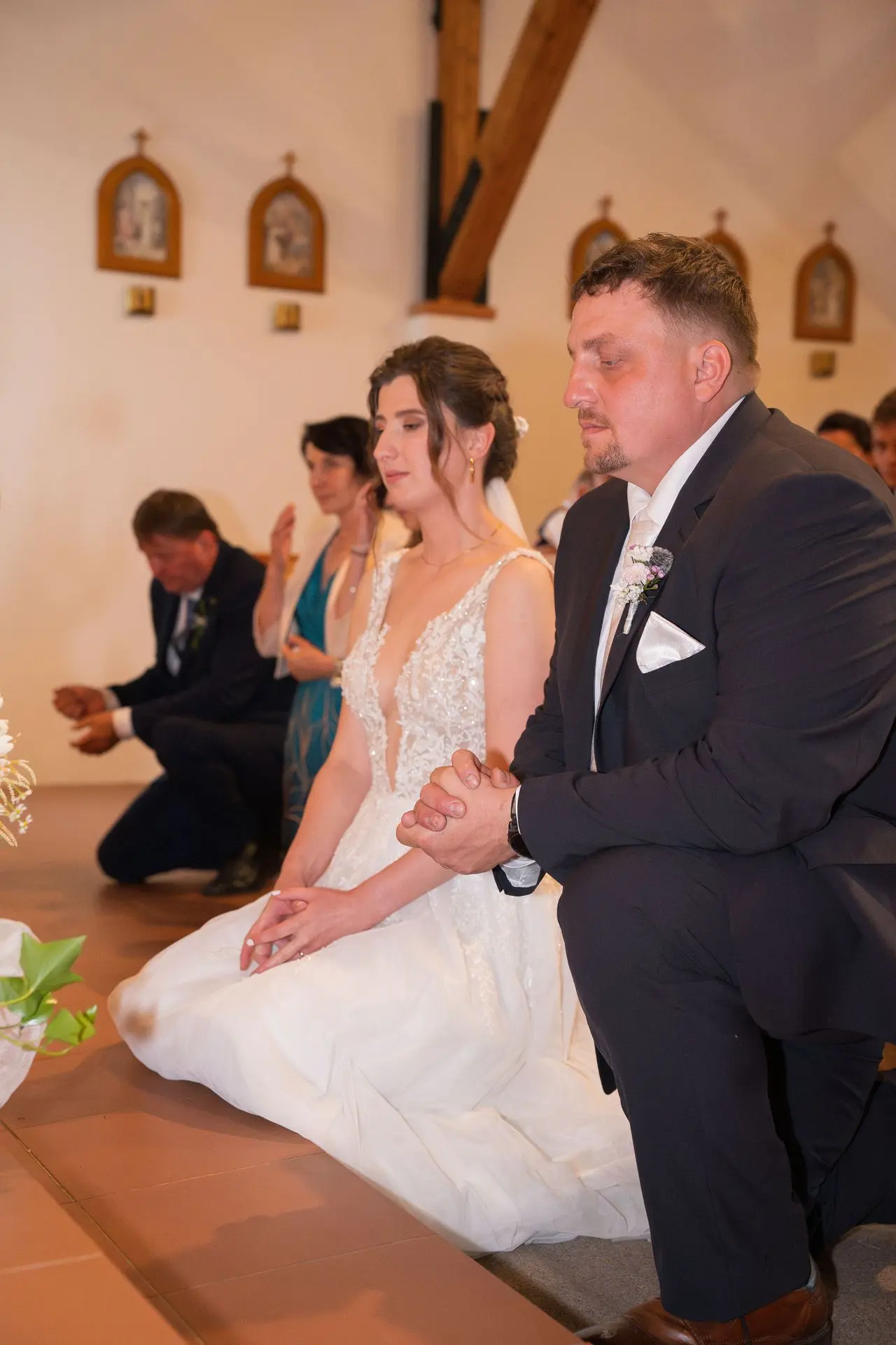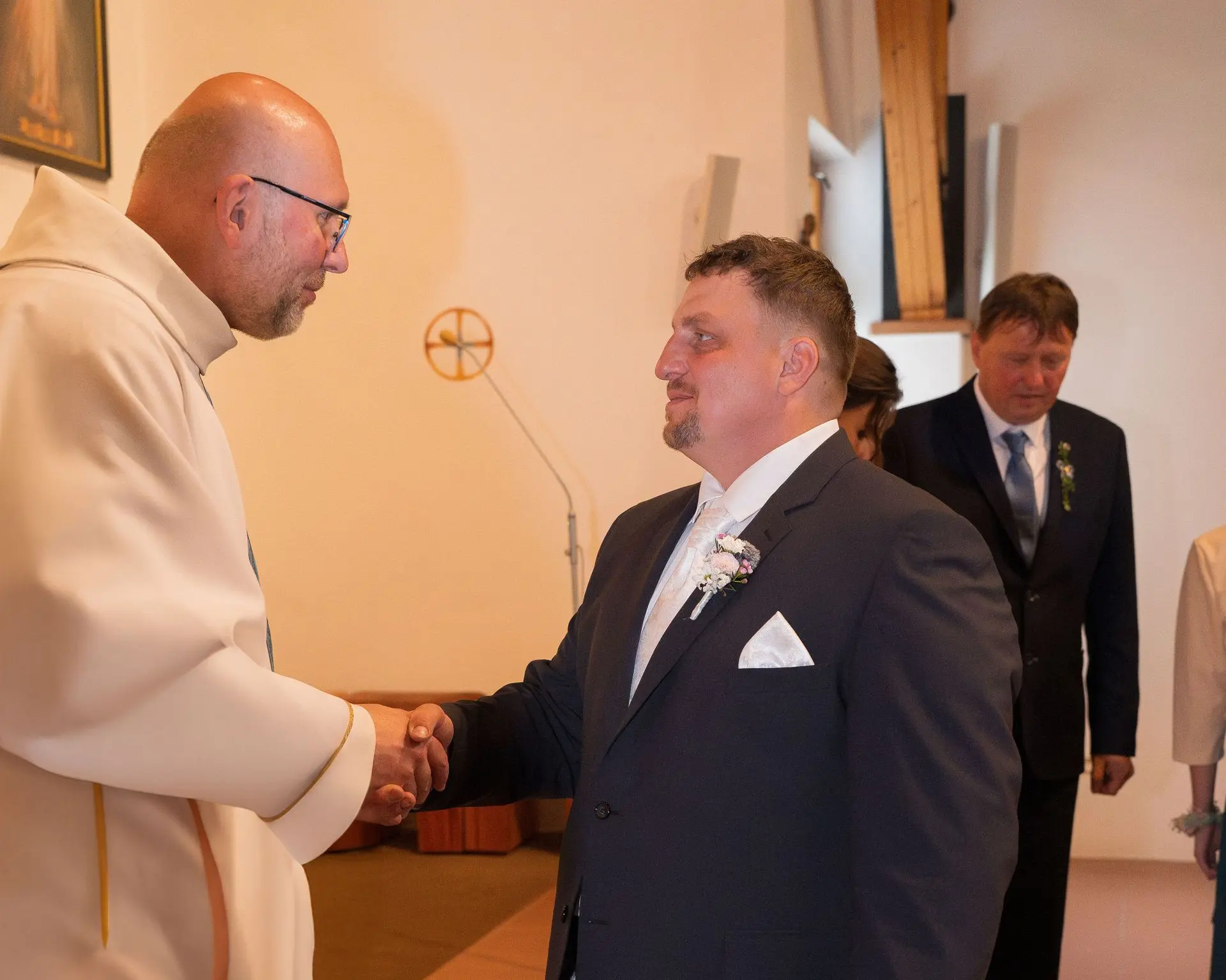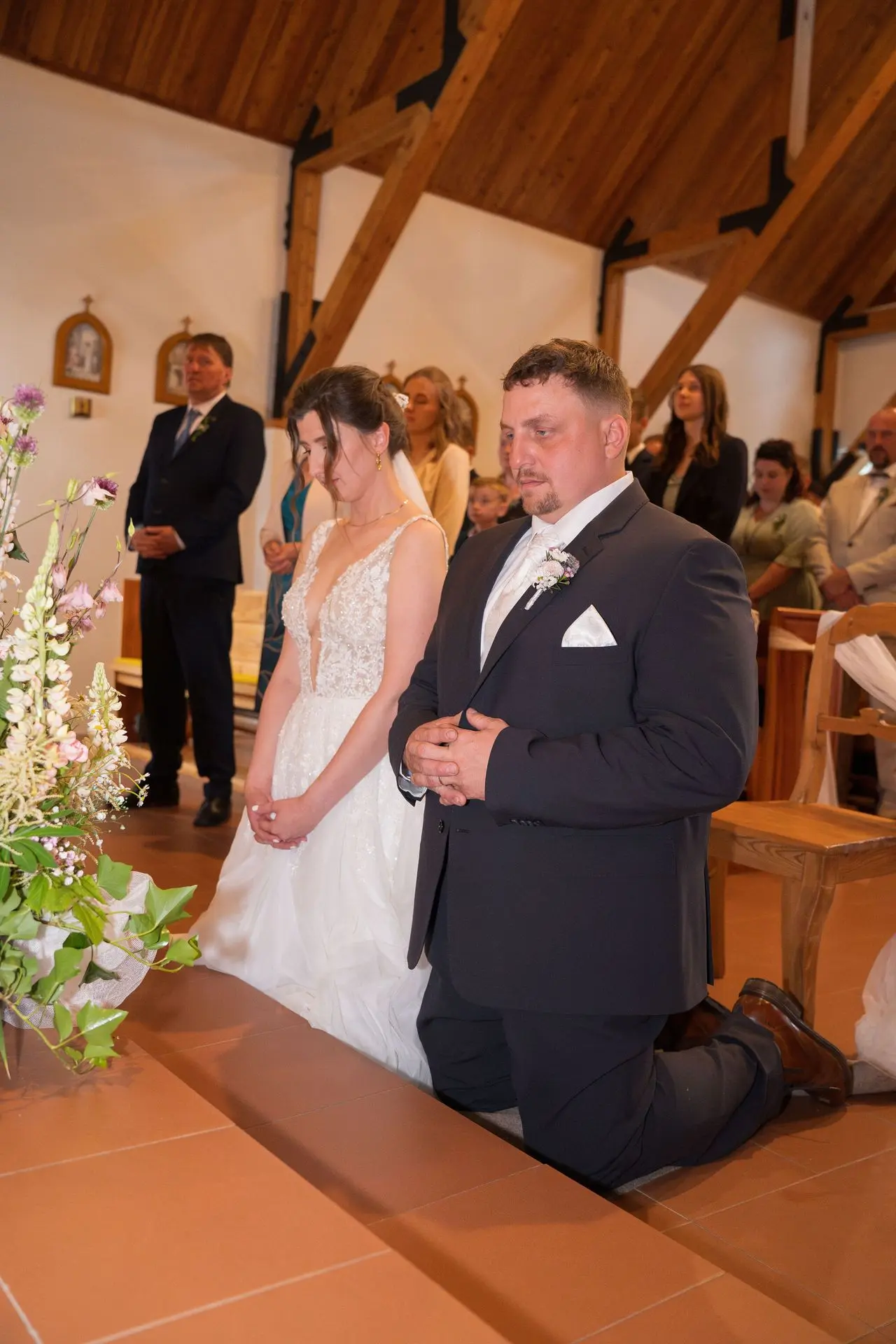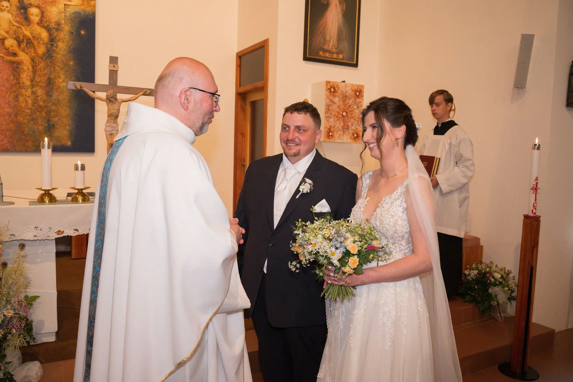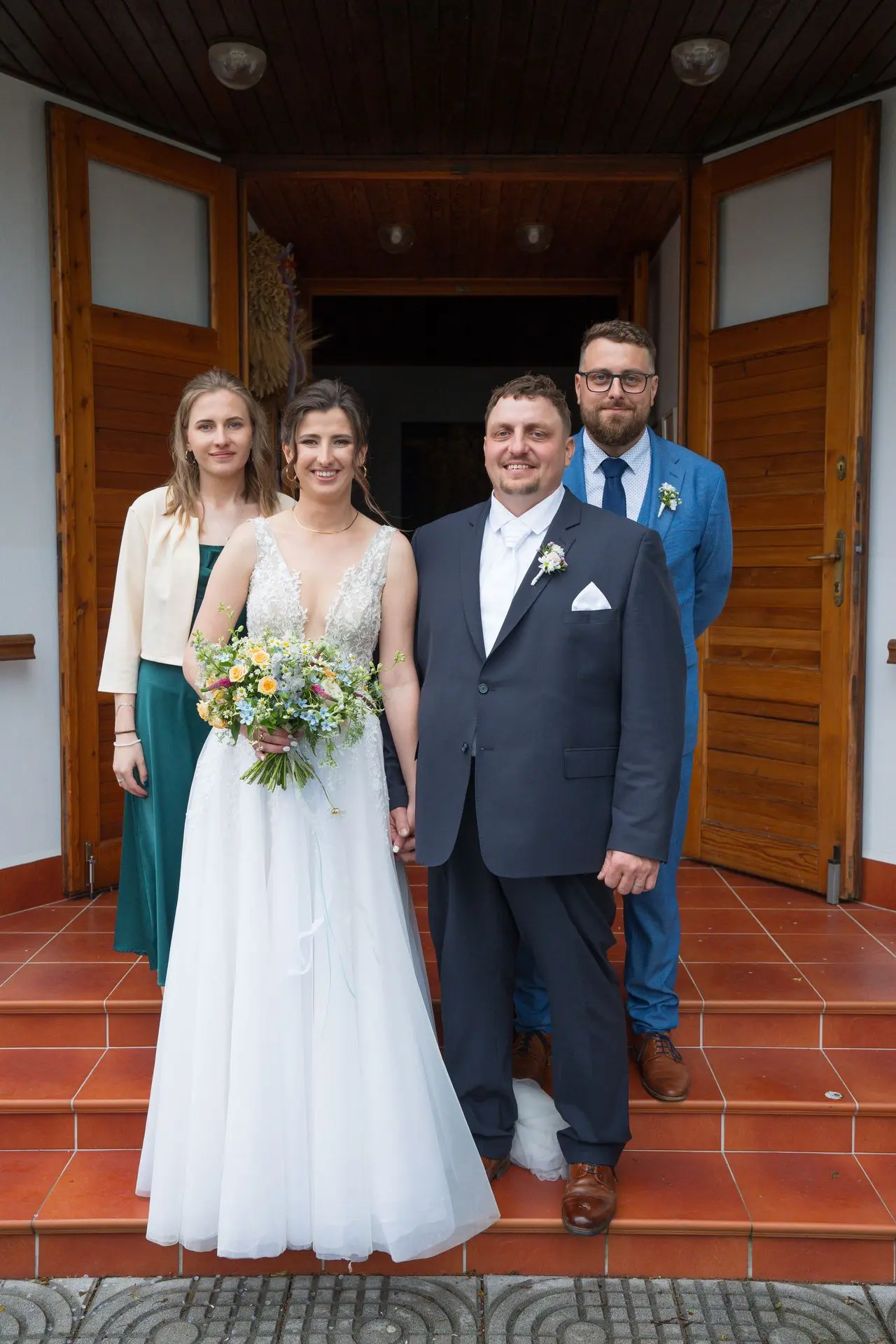 Řekli si své ano v kostele – v místě, kde se svět na chvíli zpomalil. Kde ticho mělo váhu a kde se na chvíli všechno zastavilo, jen aby mohli být spolu. Vilém s klidným úsměvem, Janča se světlem v očích, obklopení těmi, kterým na nich záleží.