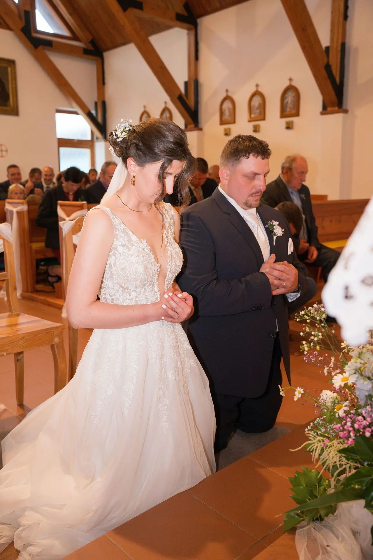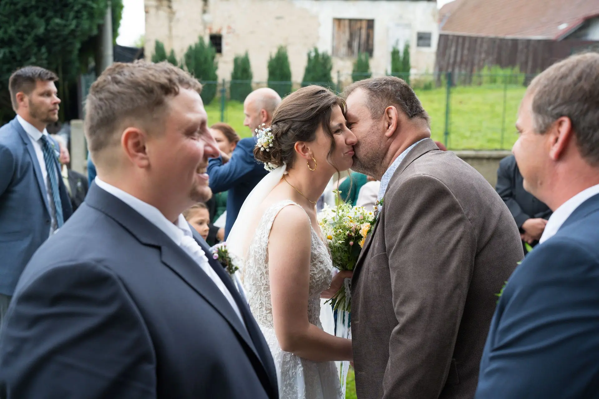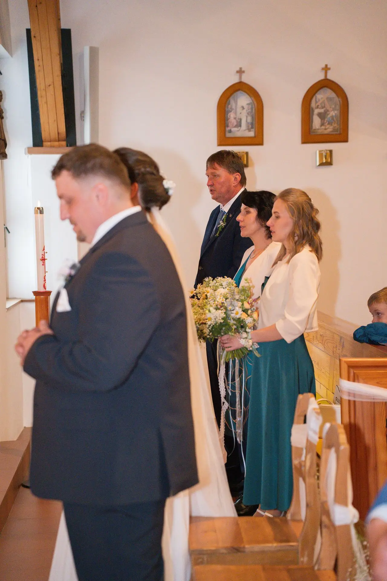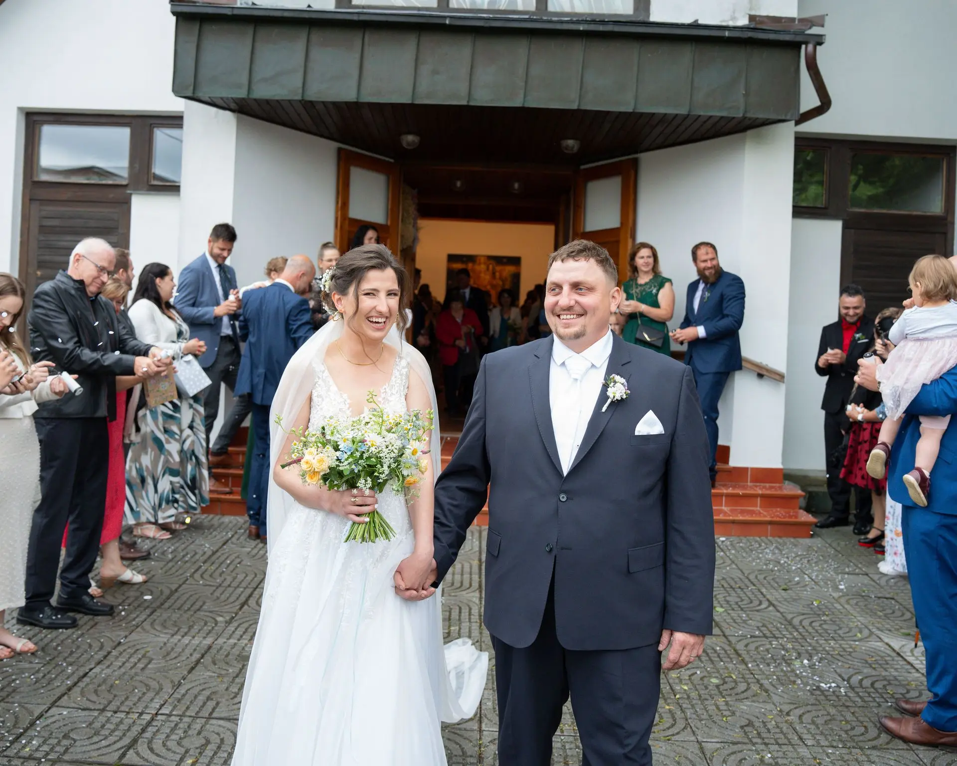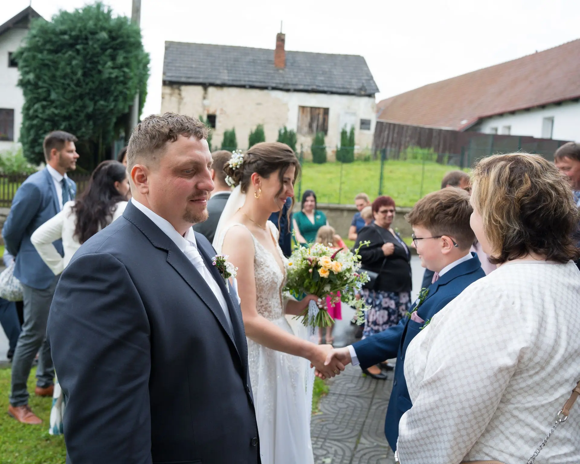 Řekli si své ano v kostele – v místě, kde se svět na chvíli zpomalil. Kde ticho mělo váhu a kde se na chvíli všechno zastavilo, jen aby mohli být spolu. Vilém s klidným úsměvem, Janča se světlem v očích, obklopení těmi, kterým na nich záleží.