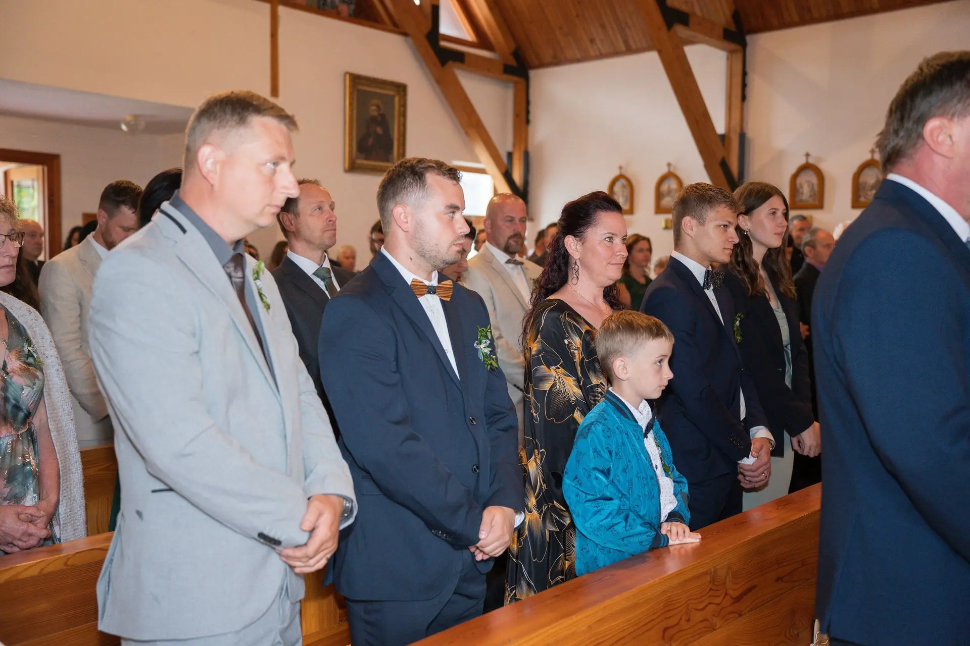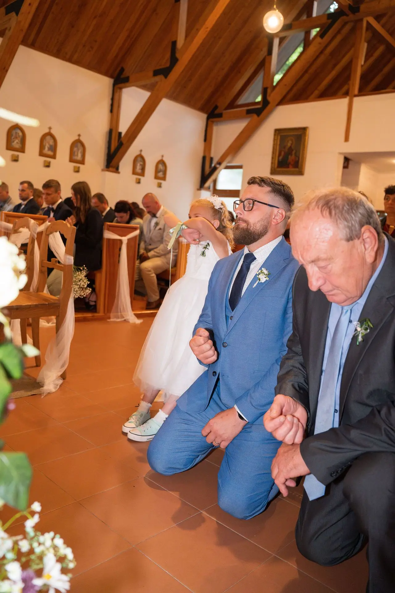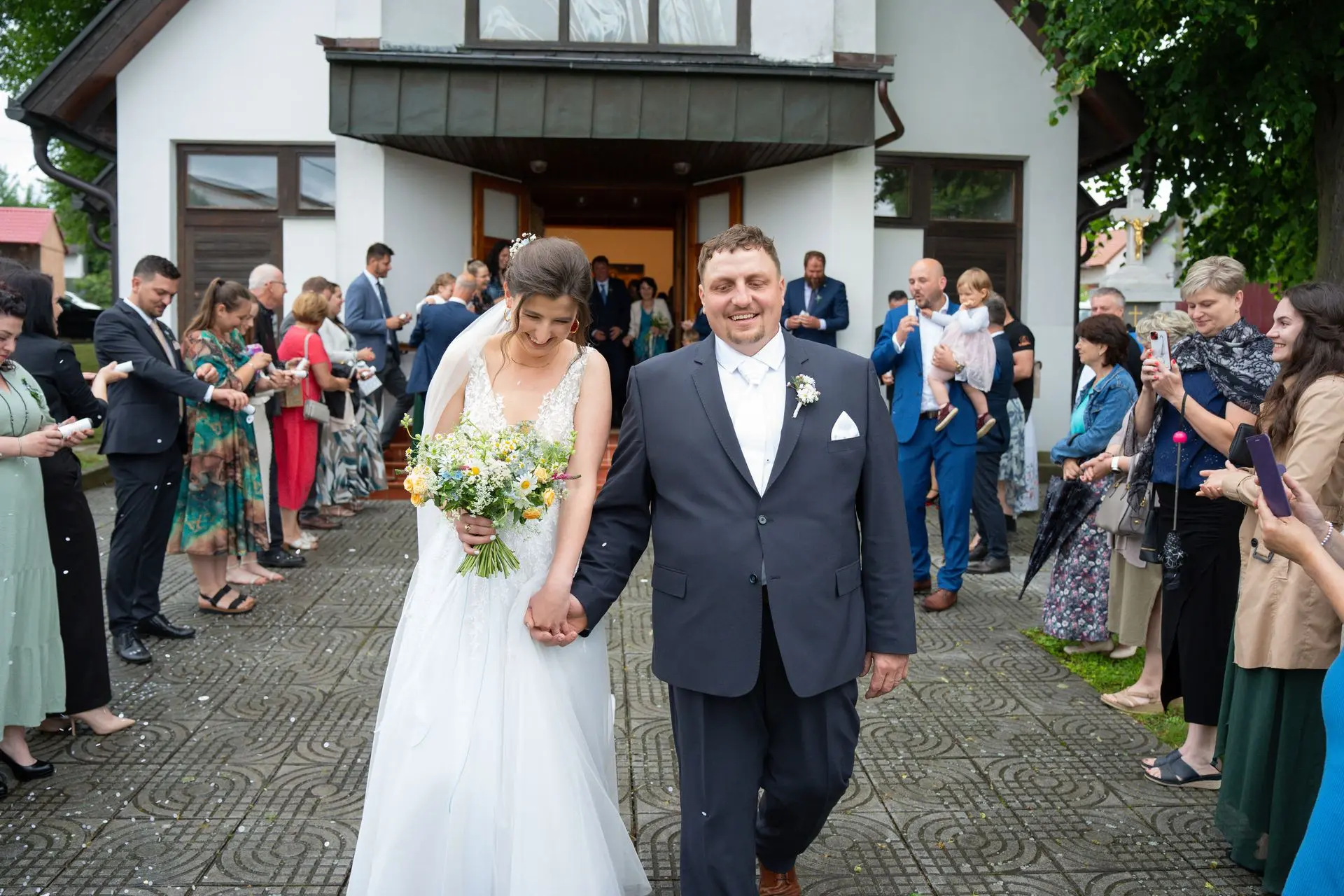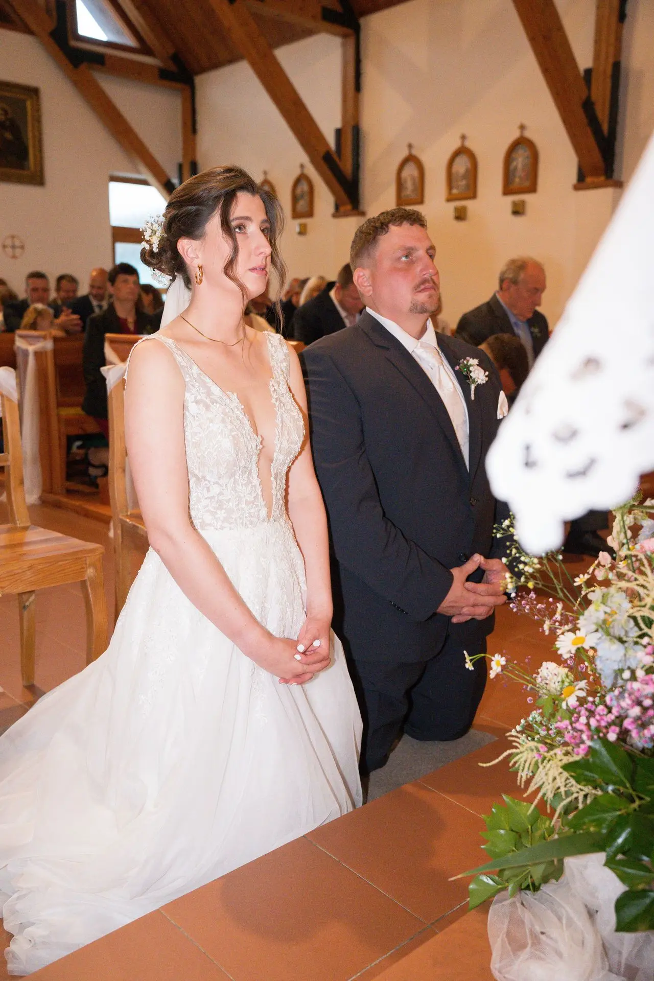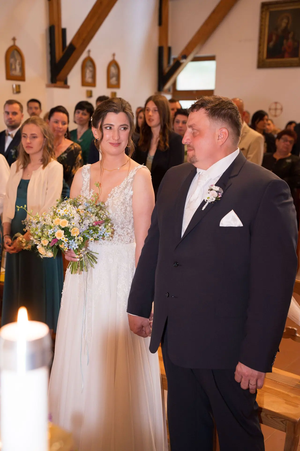 Řekli si své ano v kostele – v místě, kde se svět na chvíli zpomalil. Kde ticho mělo váhu a kde se na chvíli všechno zastavilo, jen aby mohli být spolu. Vilém s klidným úsměvem, Janča se světlem v očích, obklopení těmi, kterým na nich záleží.