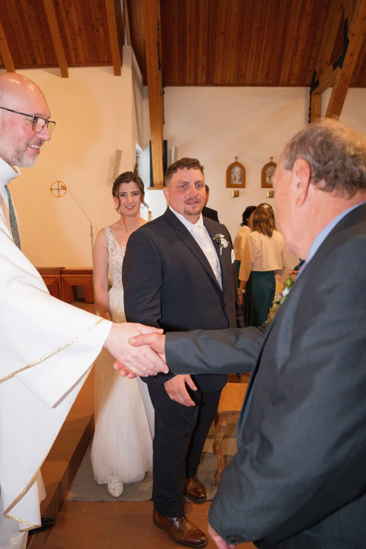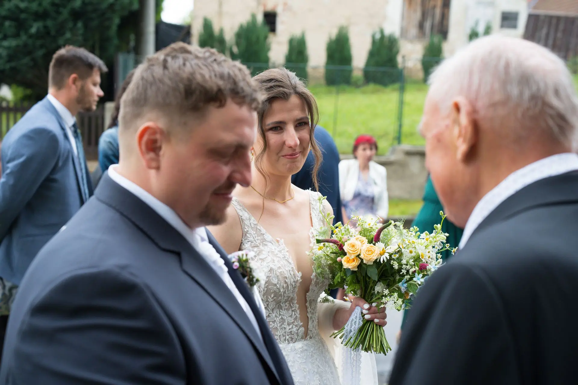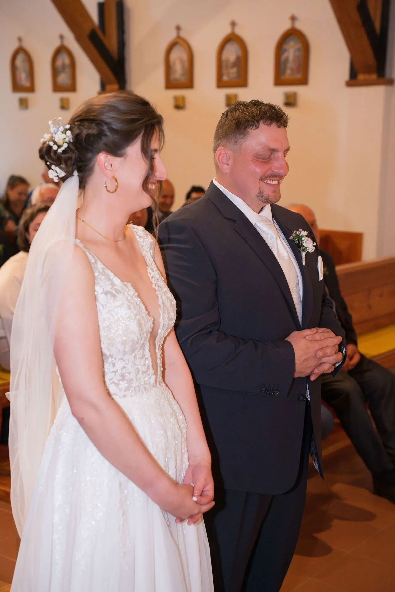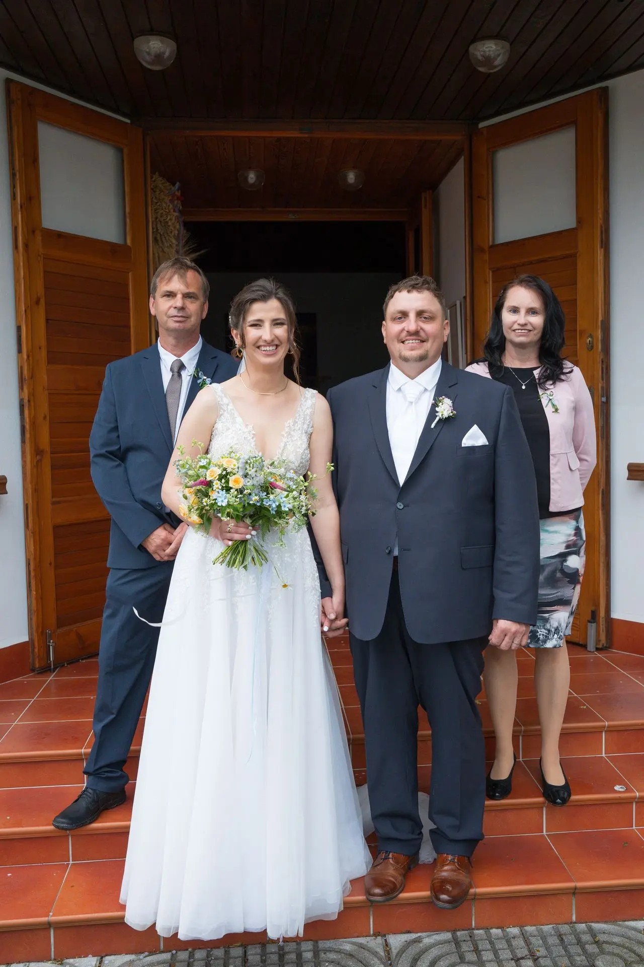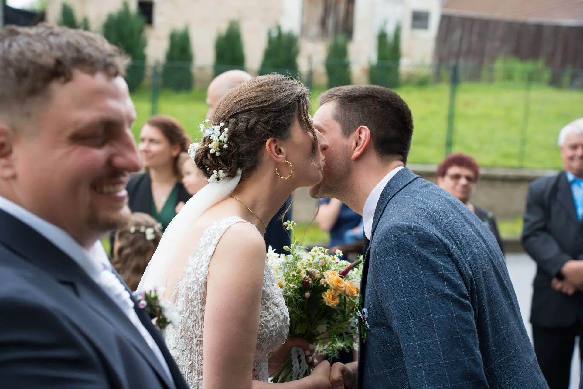 Řekli si své ano v kostele – v místě, kde se svět na chvíli zpomalil. Kde ticho mělo váhu a kde se na chvíli všechno zastavilo, jen aby mohli být spolu. Vilém s klidným úsměvem, Janča se světlem v očích, obklopení těmi, kterým na nich záleží.
