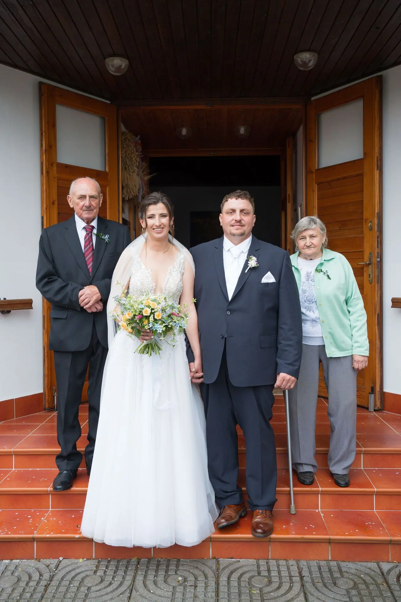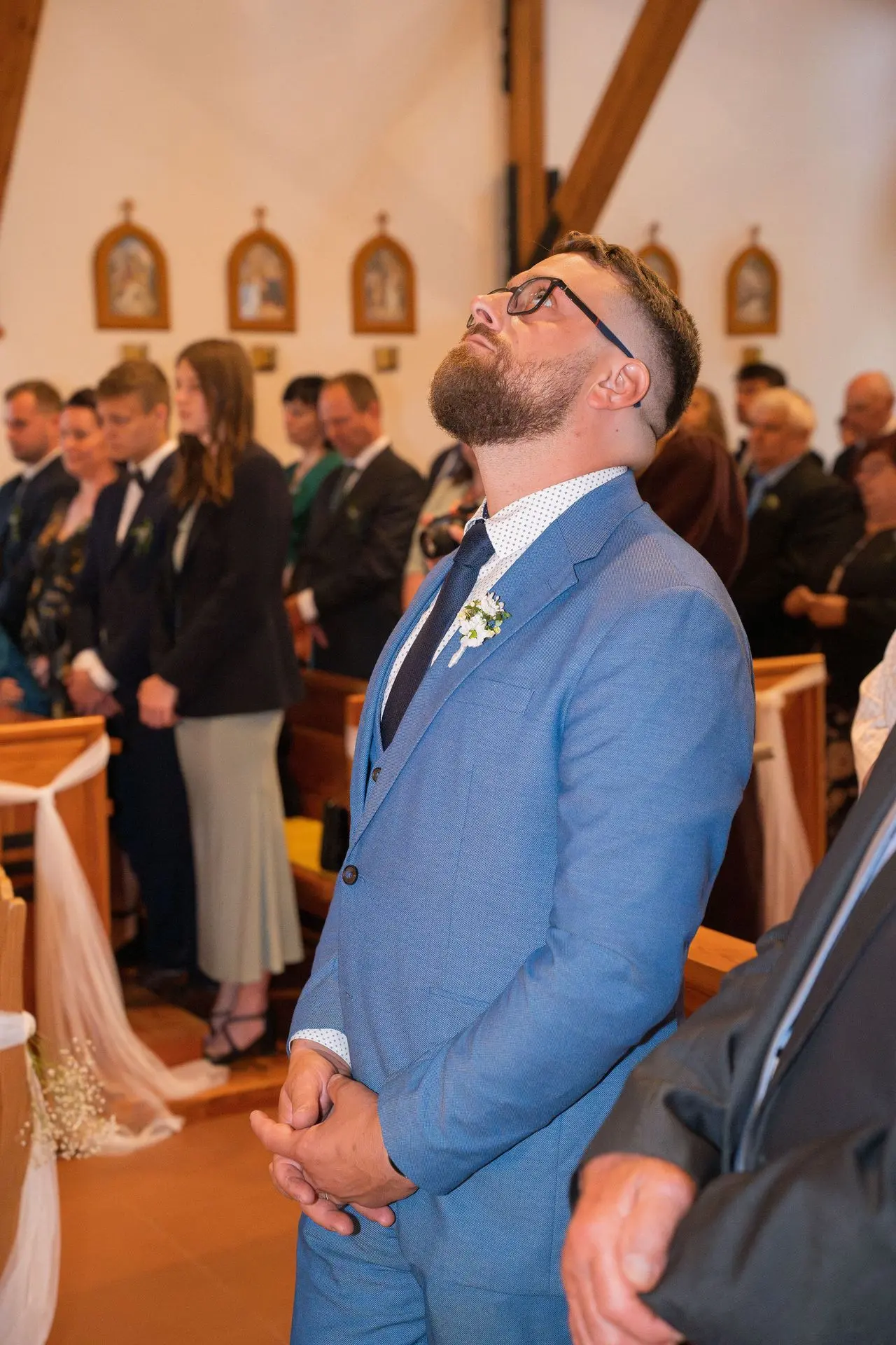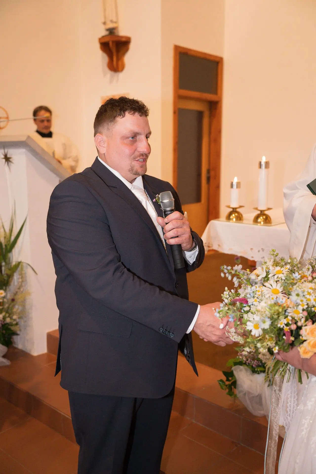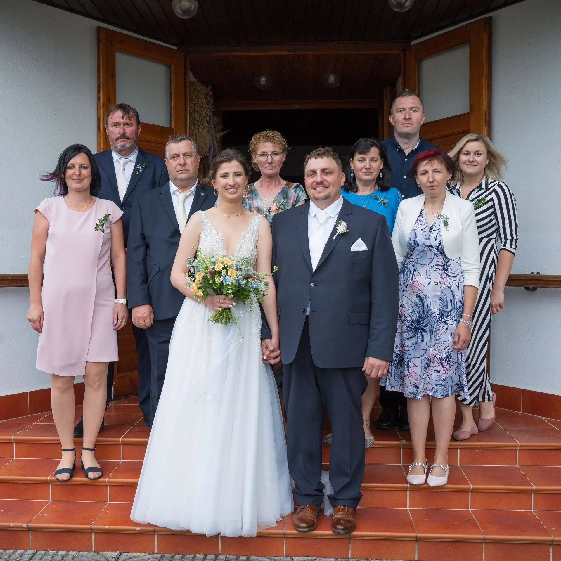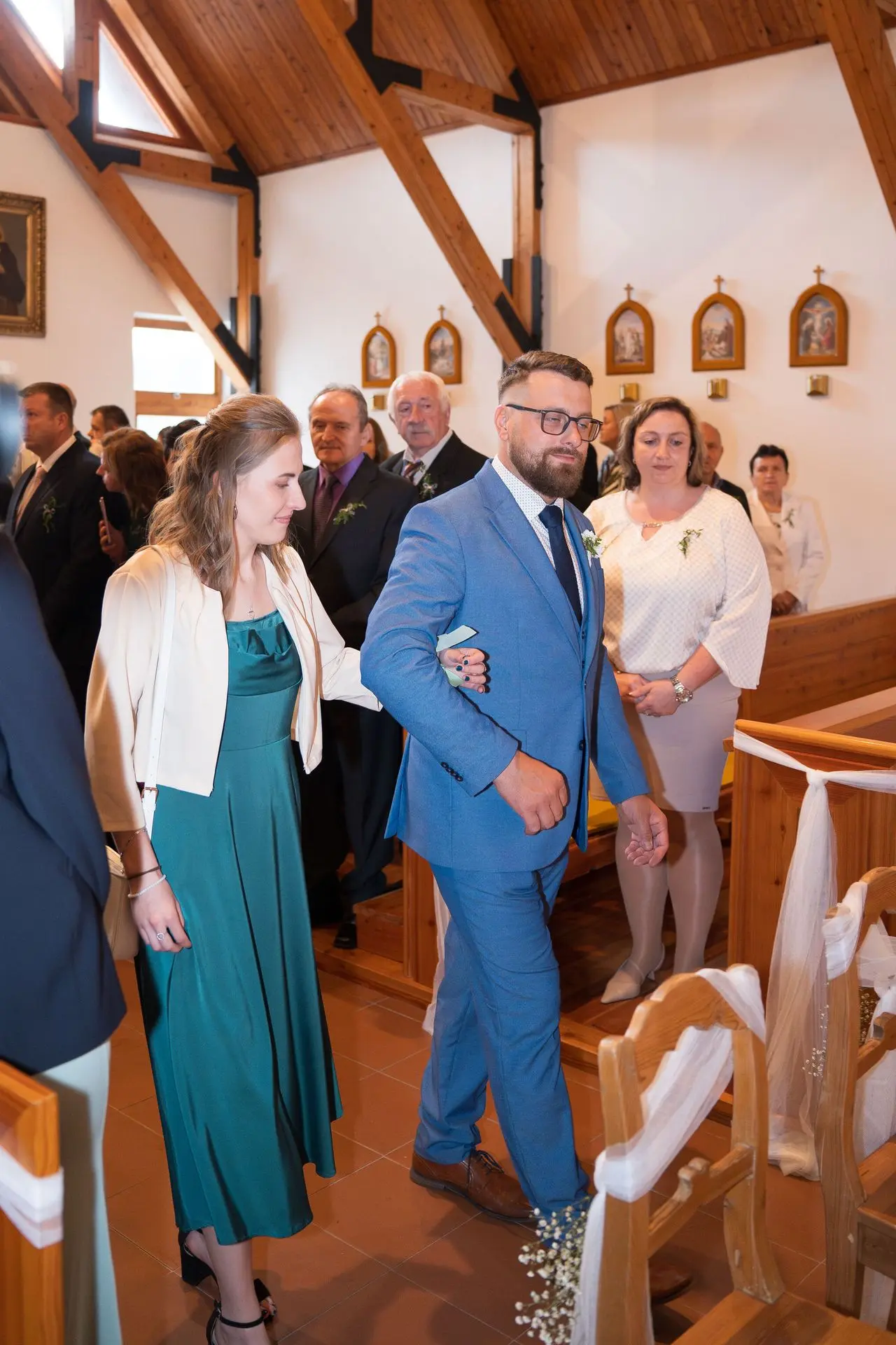 Řekli si své ano v kostele – v místě, kde se svět na chvíli zpomalil. Kde ticho mělo váhu a kde se na chvíli všechno zastavilo, jen aby mohli být spolu. Vilém s klidným úsměvem, Janča se světlem v očích, obklopení těmi, kterým na nich záleží.