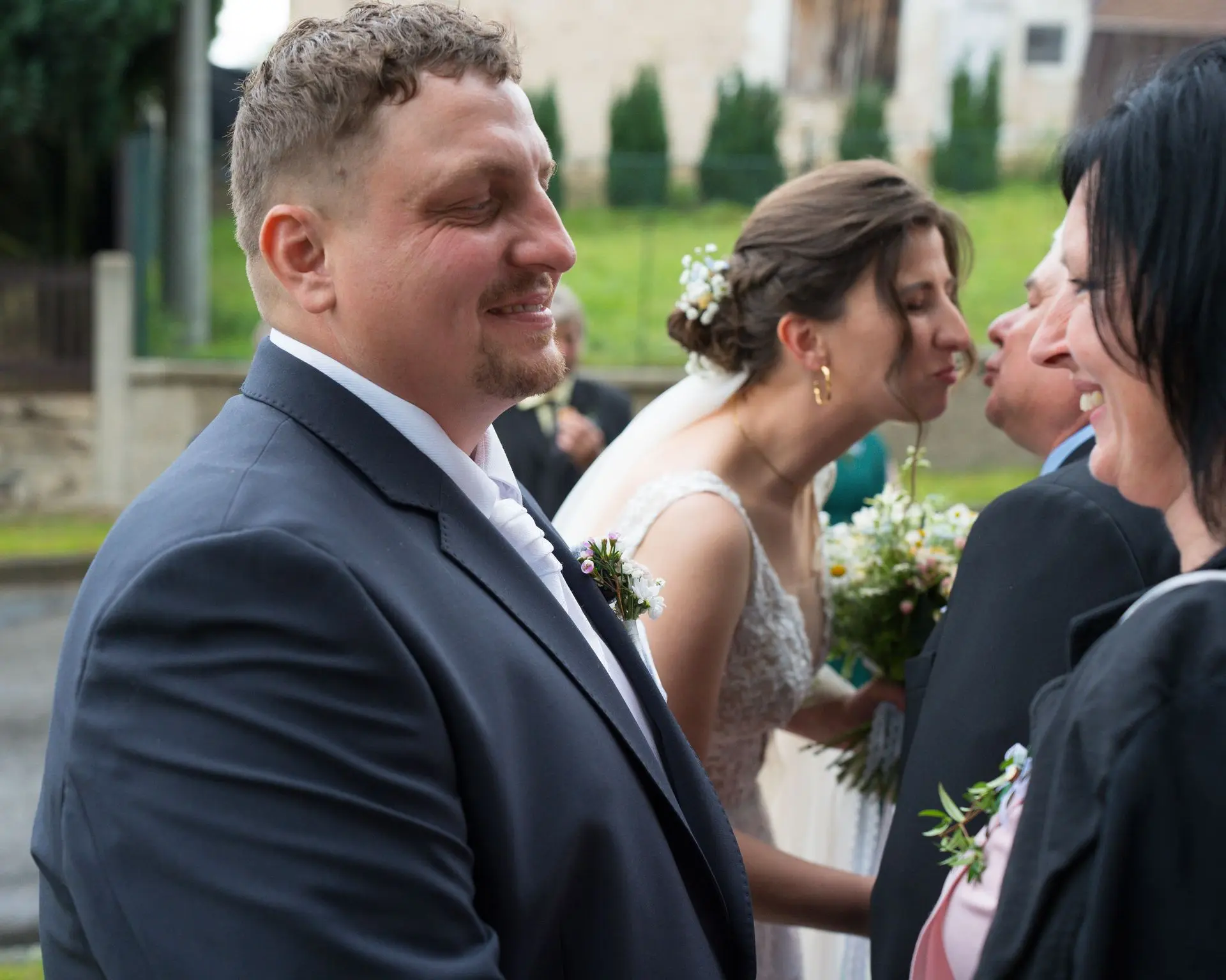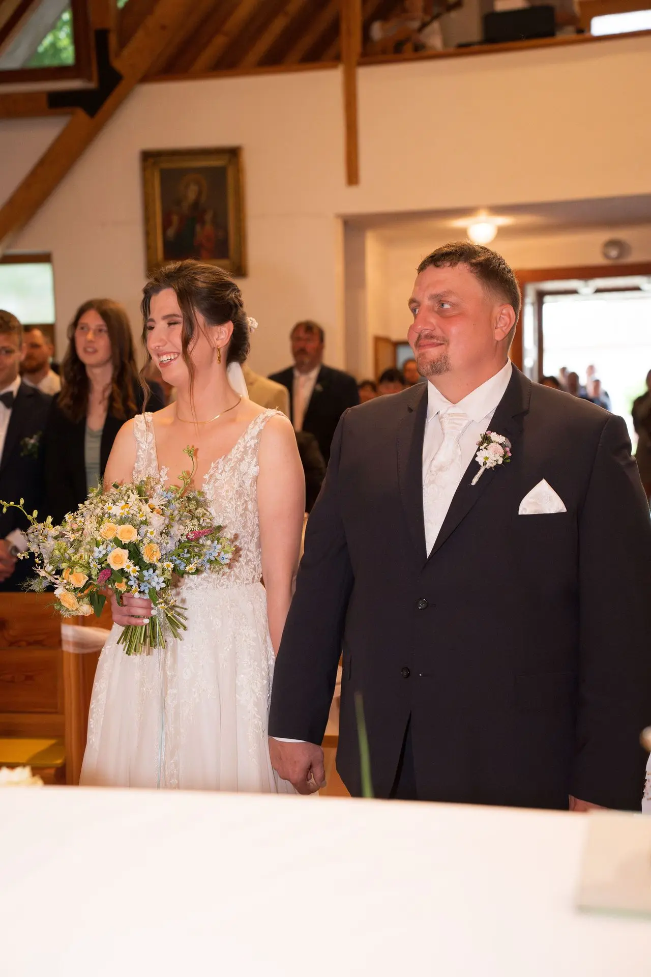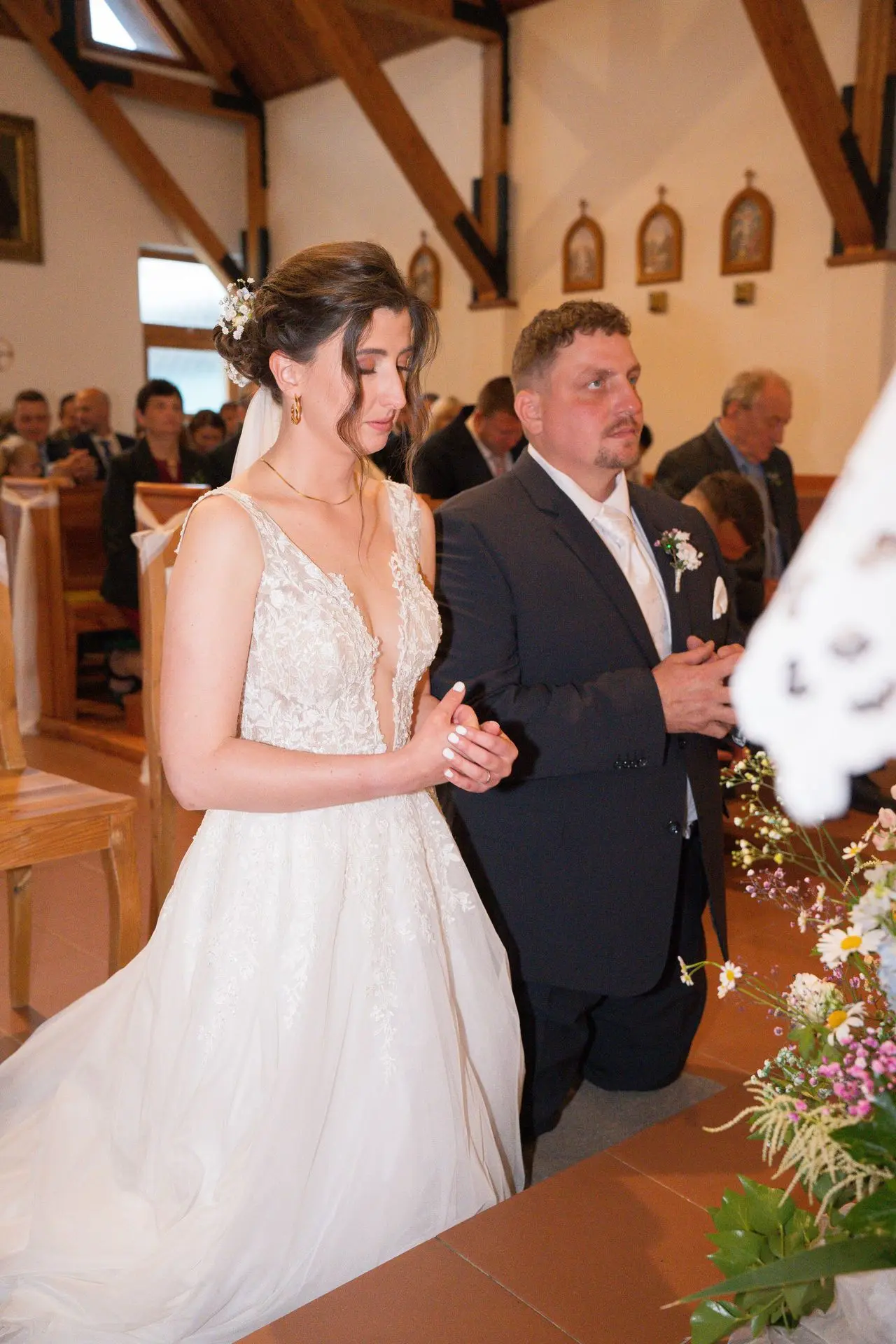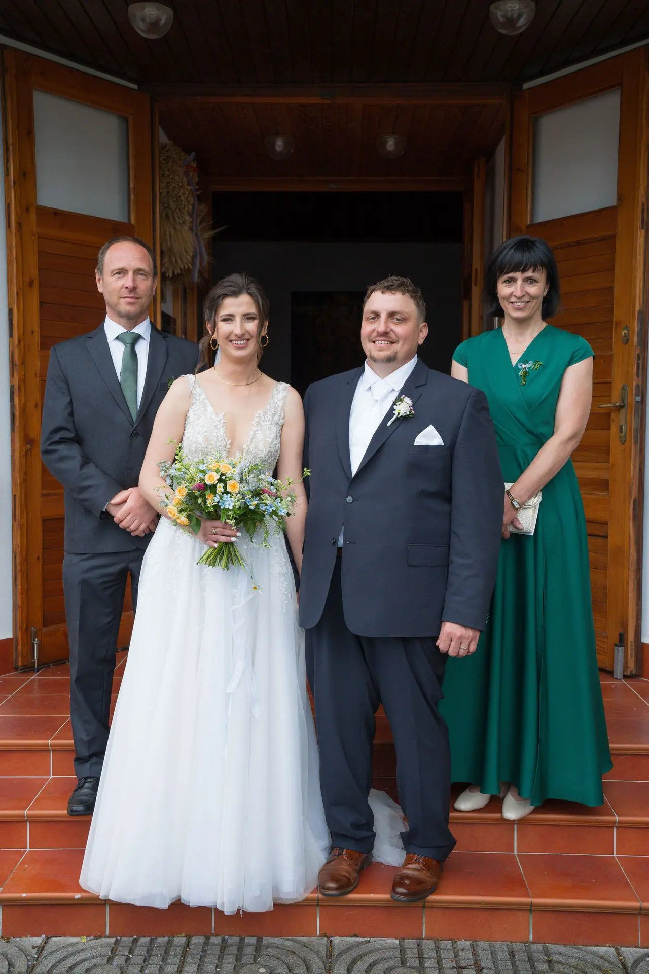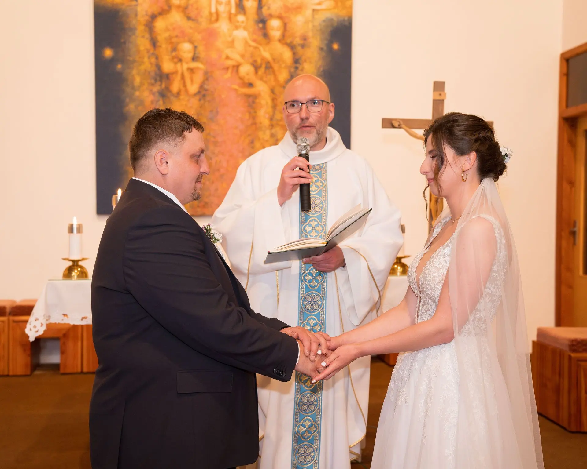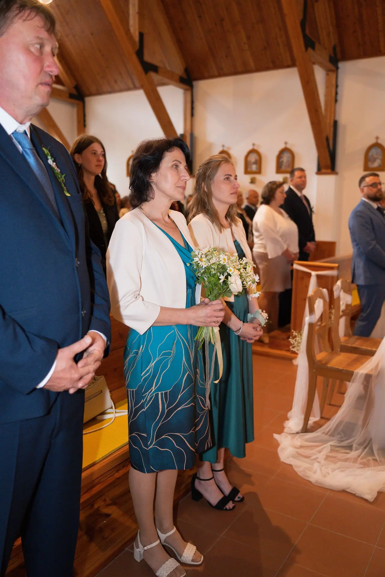 Řekli si své ano v kostele – v místě, kde se svět na chvíli zpomalil. Kde ticho mělo váhu a kde se na chvíli všechno zastavilo, jen aby mohli být spolu. Vilém s klidným úsměvem, Janča se světlem v očích, obklopení těmi, kterým na nich záleží.