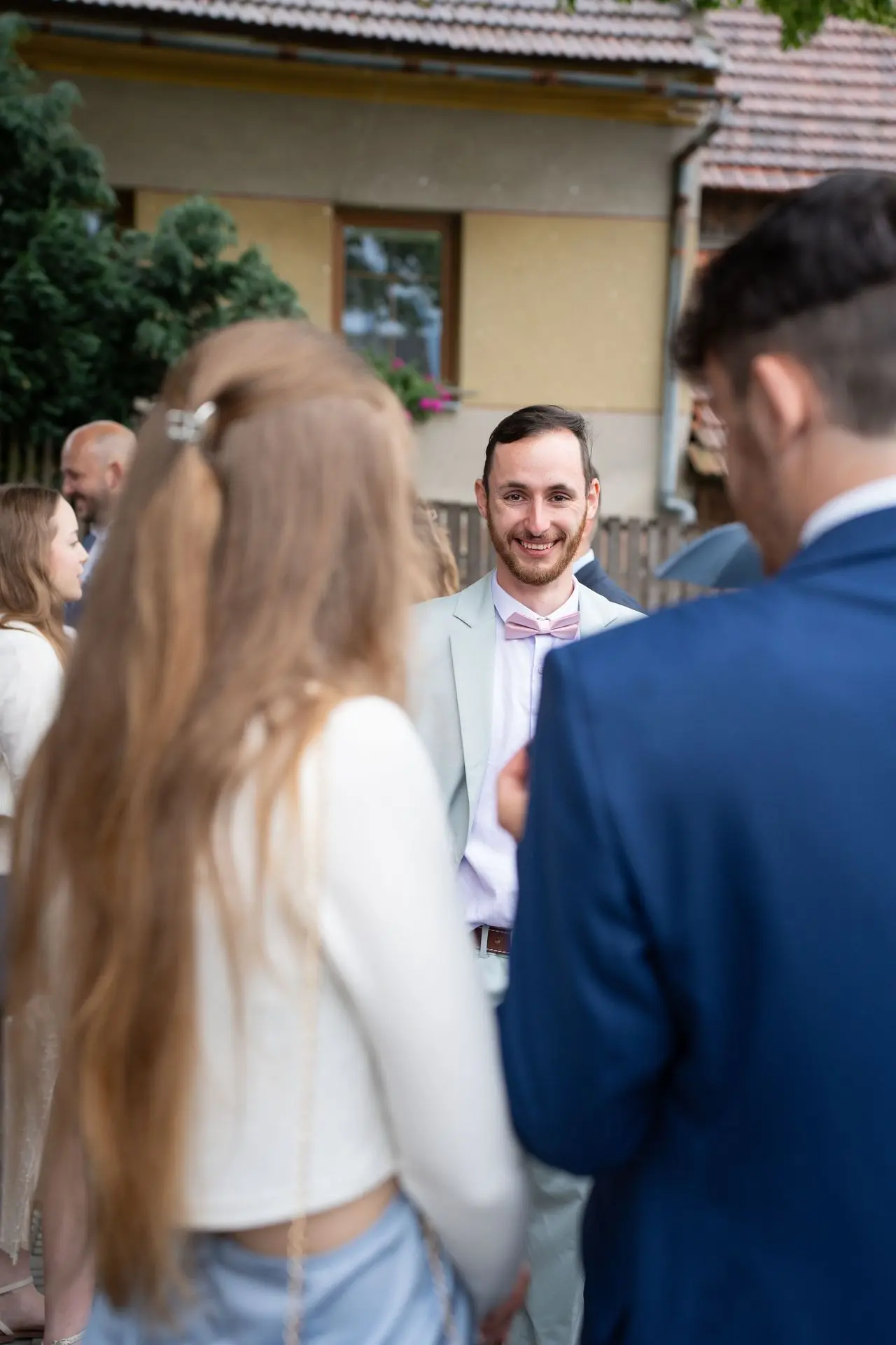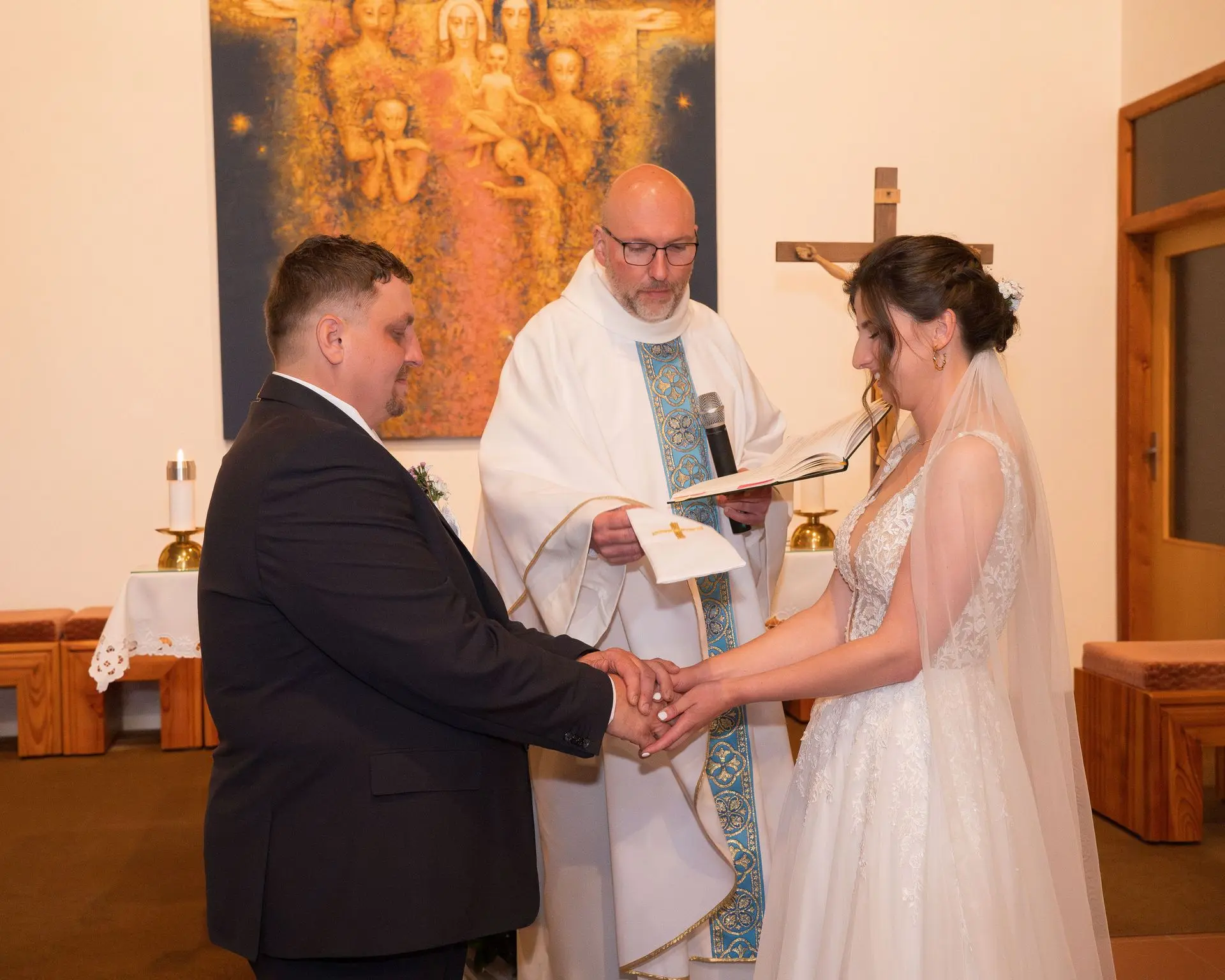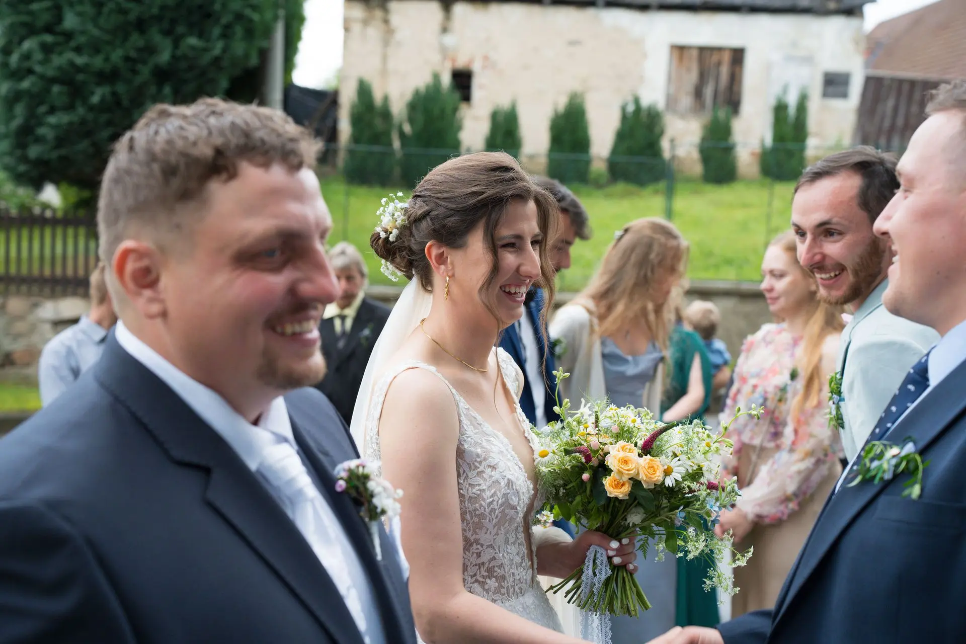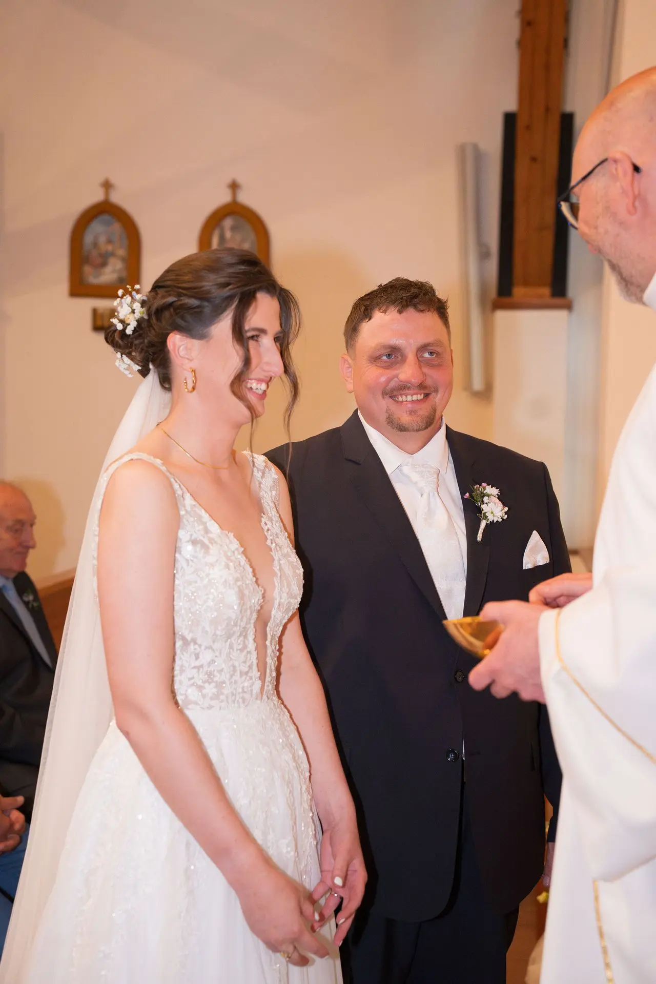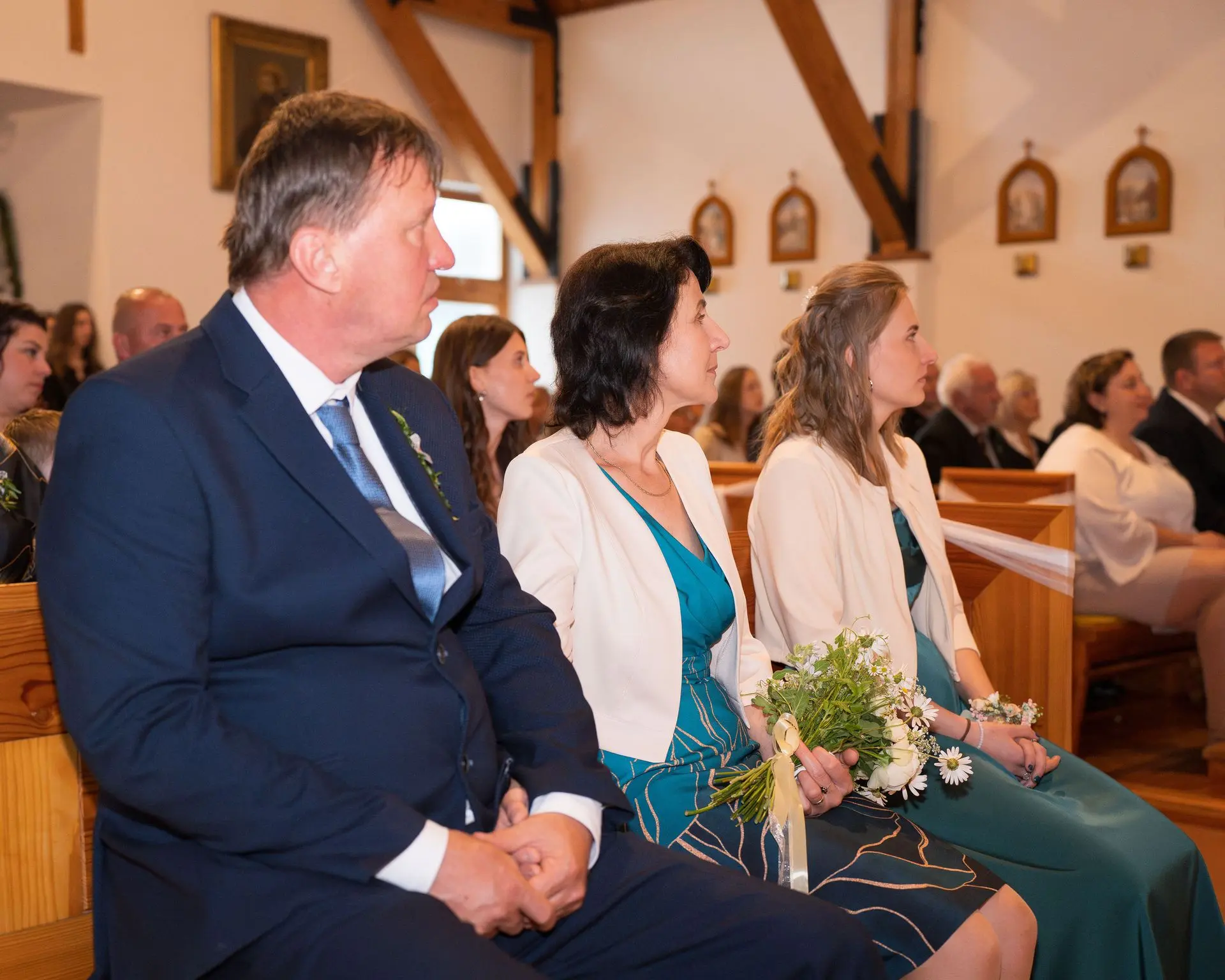 Řekli si své ano v kostele – v místě, kde se svět na chvíli zpomalil. Kde ticho mělo váhu a kde se na chvíli všechno zastavilo, jen aby mohli být spolu. Vilém s klidným úsměvem, Janča se světlem v očích, obklopení těmi, kterým na nich záleží.