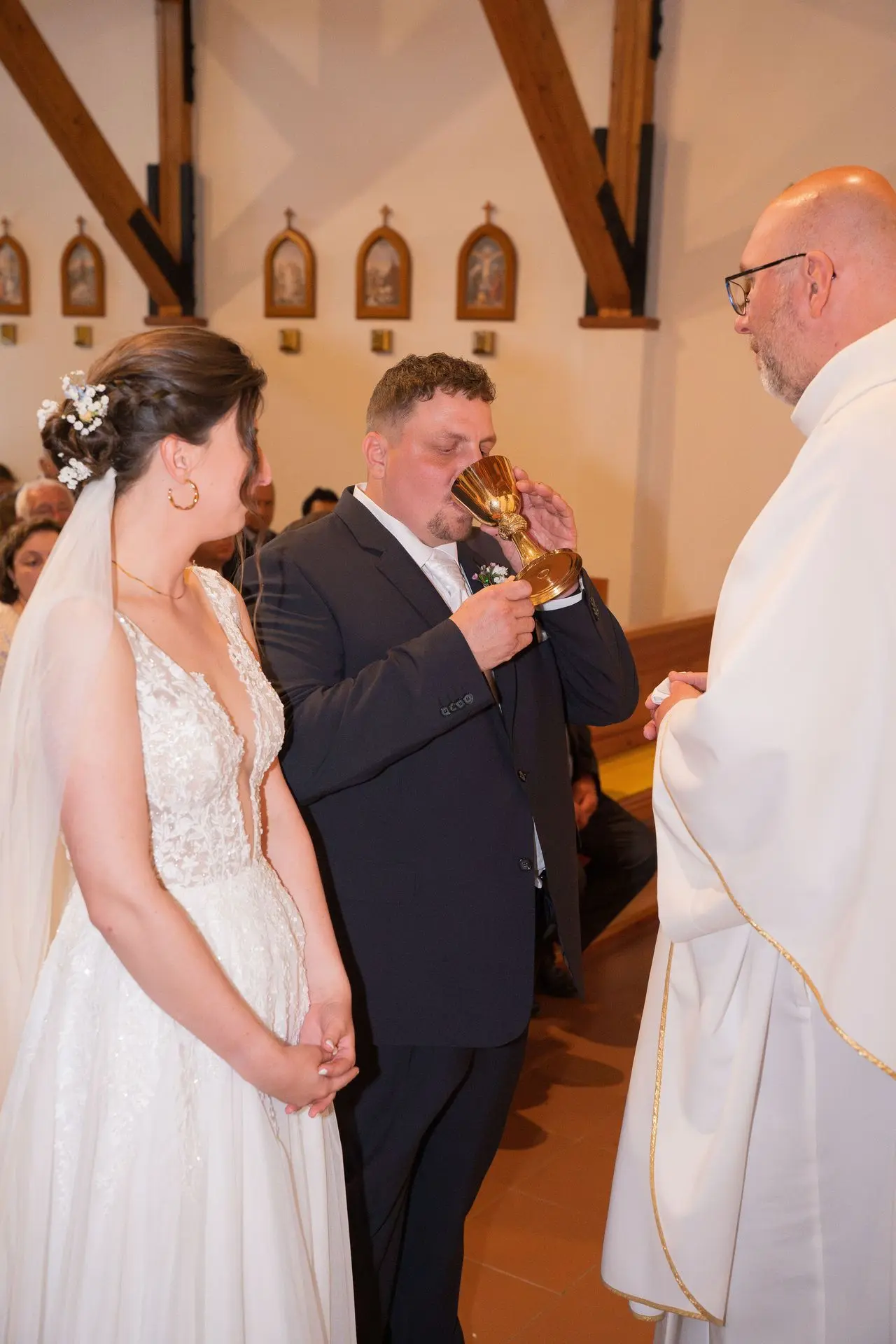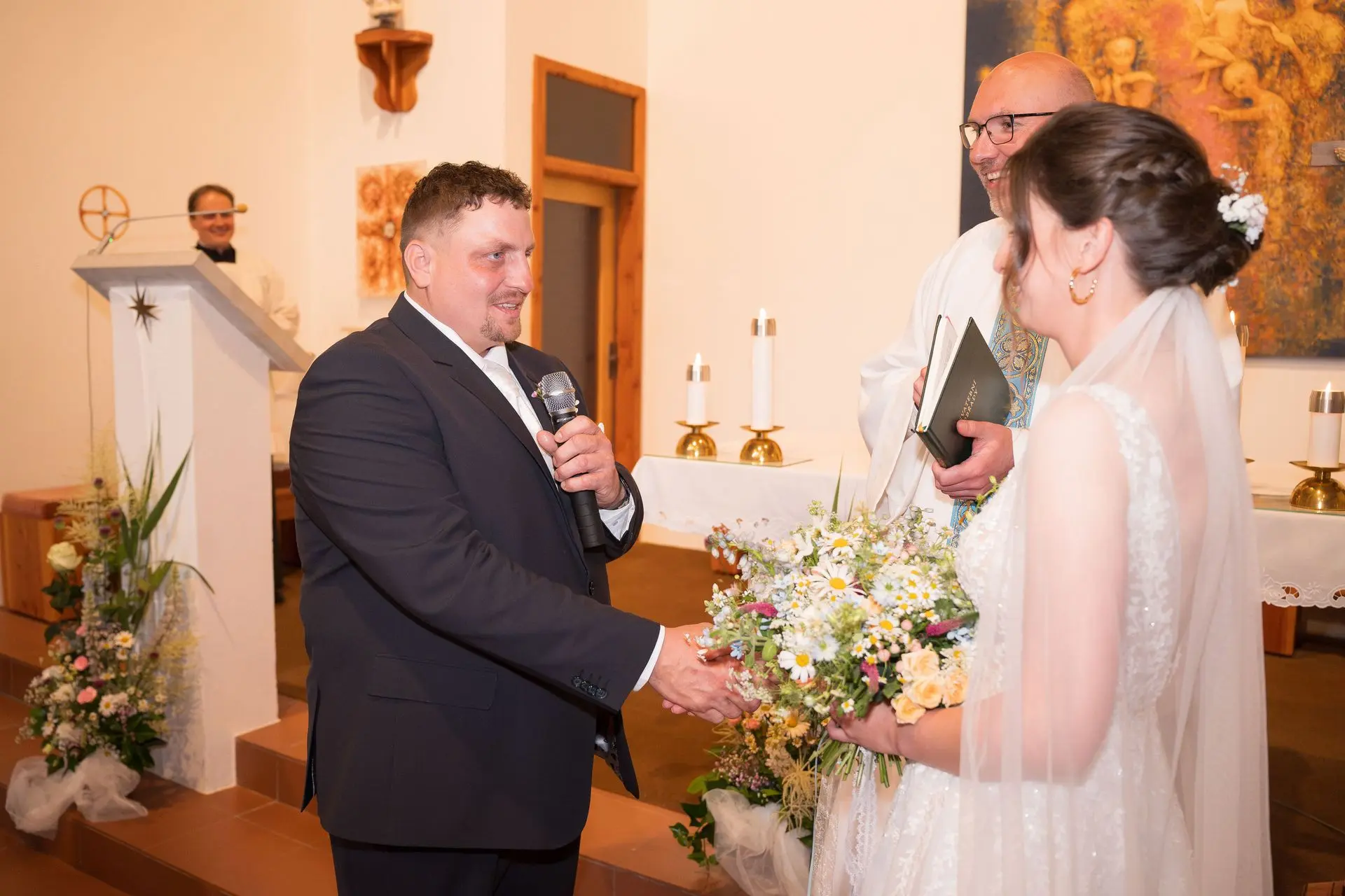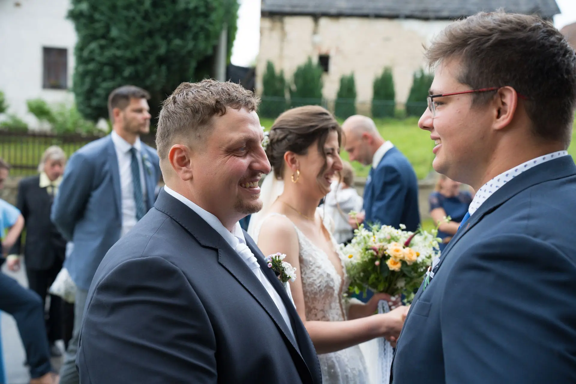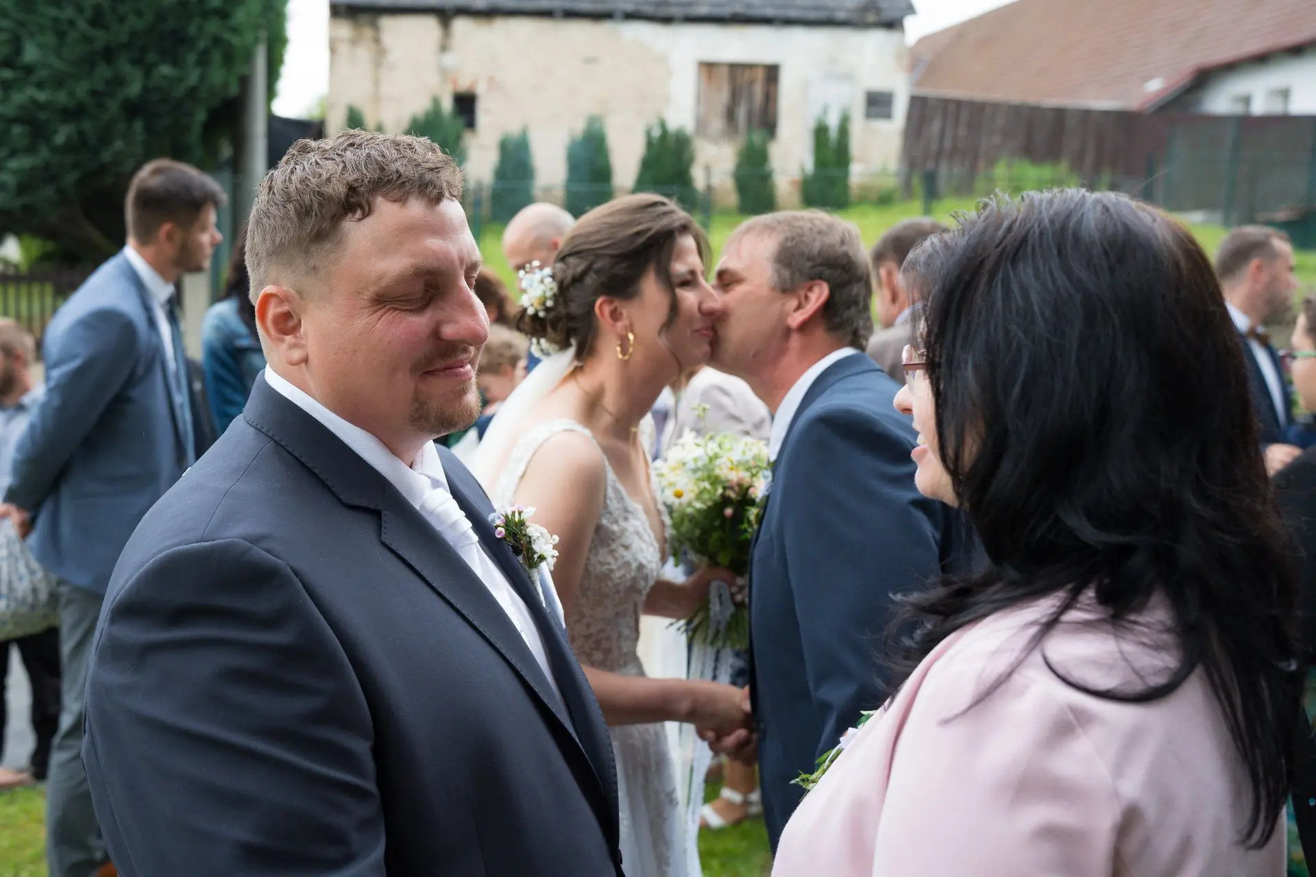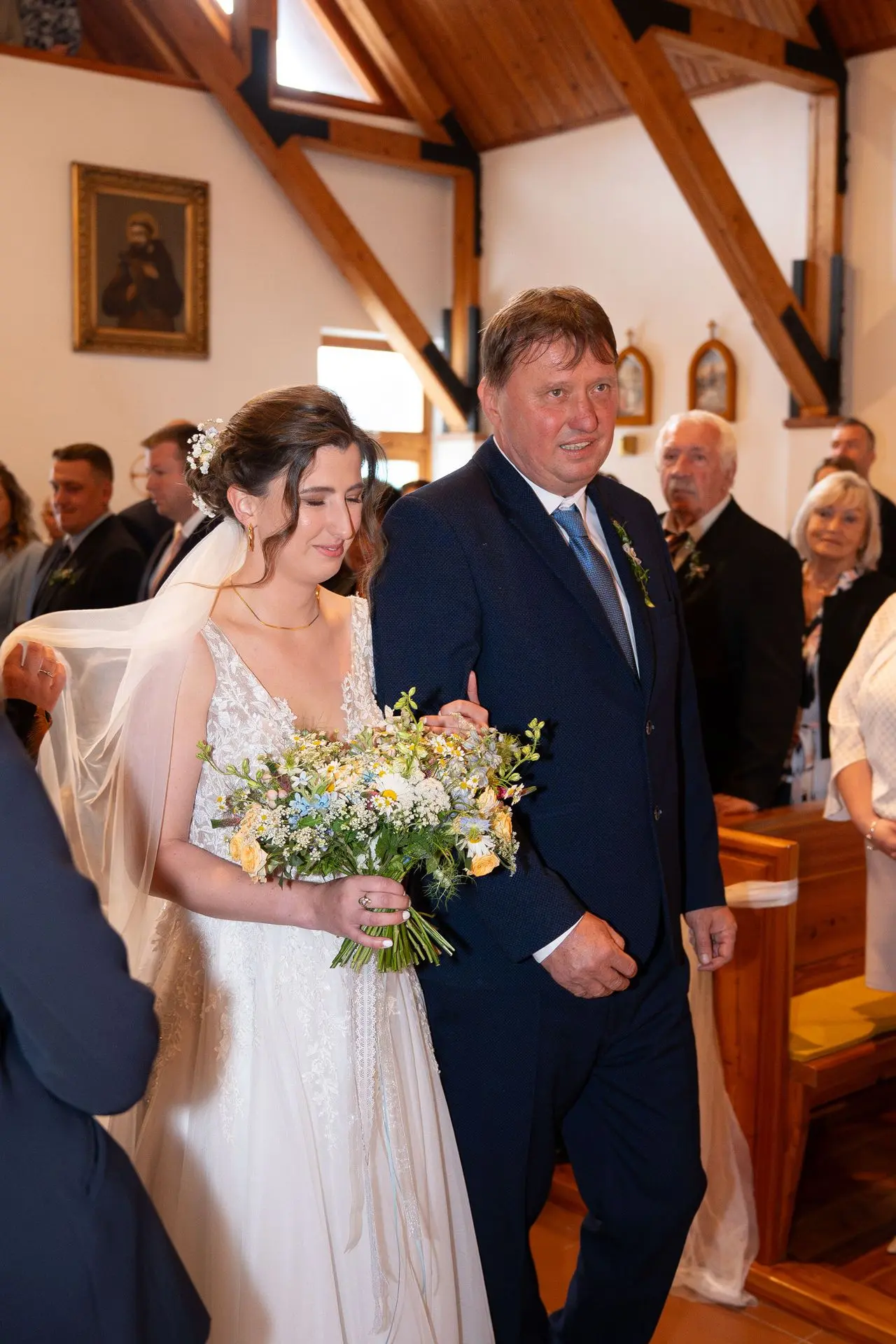 Řekli si své ano v kostele – v místě, kde se svět na chvíli zpomalil. Kde ticho mělo váhu a kde se na chvíli všechno zastavilo, jen aby mohli být spolu. Vilém s klidným úsměvem, Janča se světlem v očích, obklopení těmi, kterým na nich záleží.