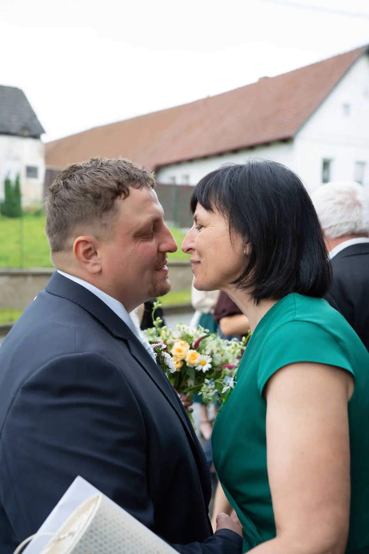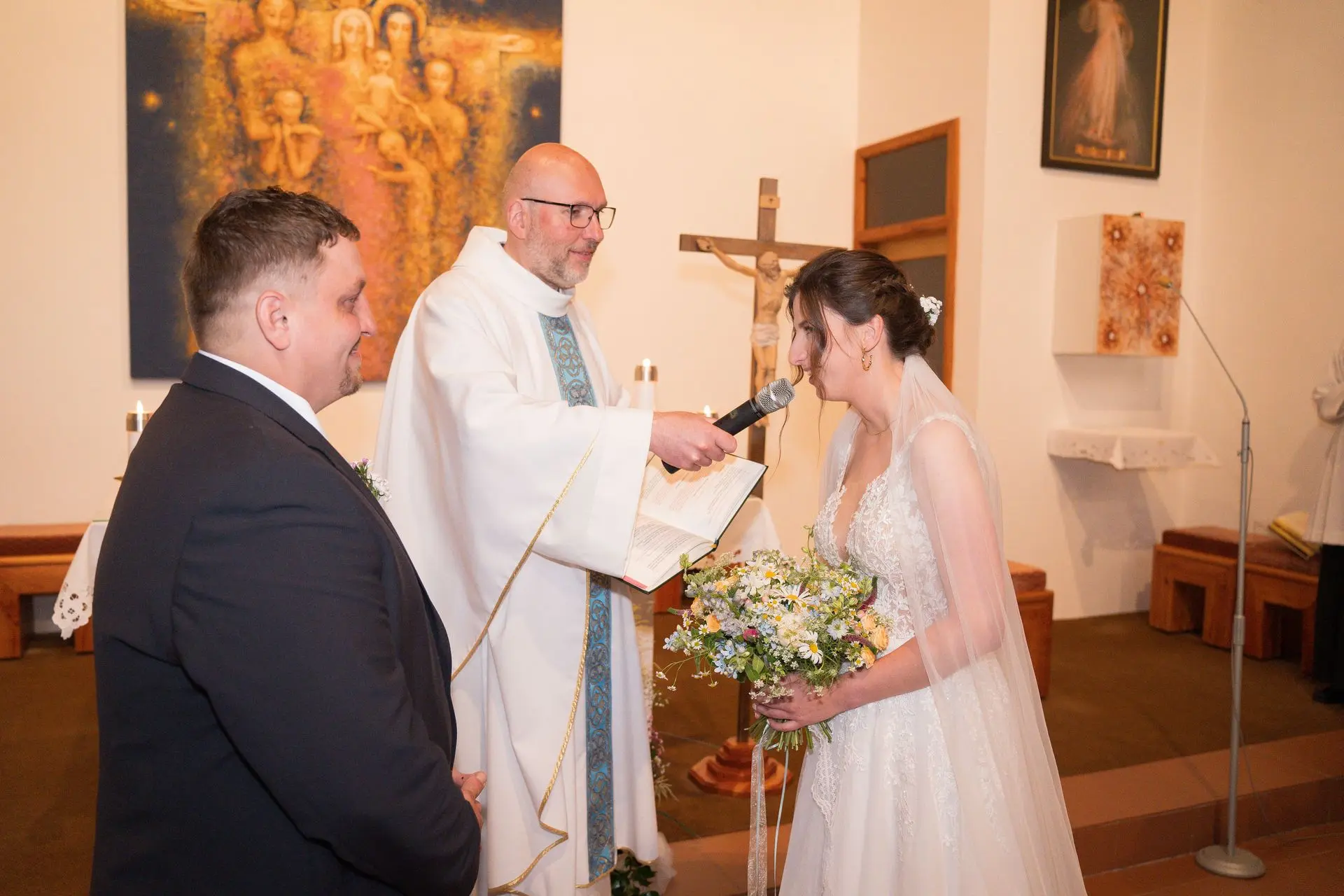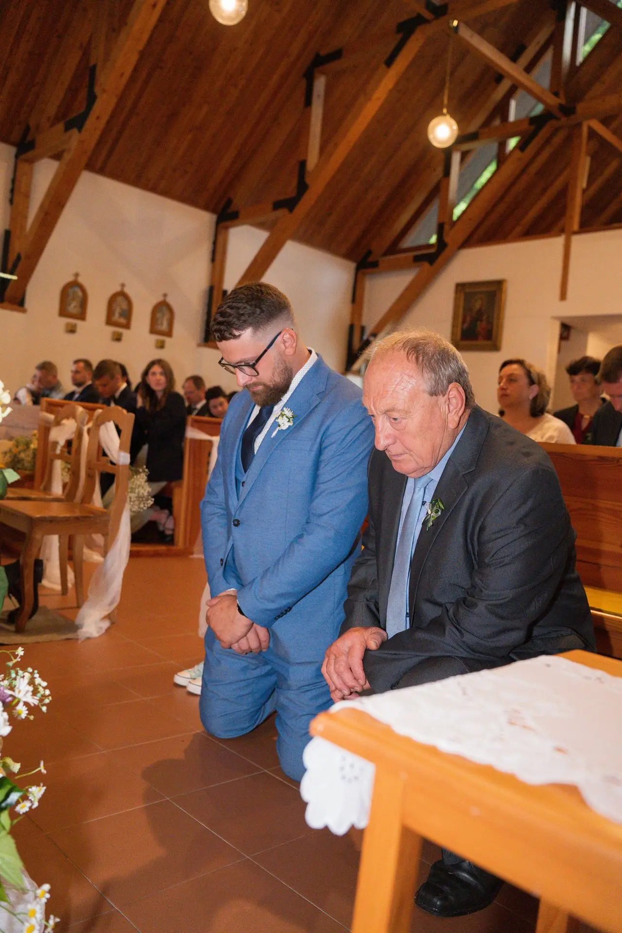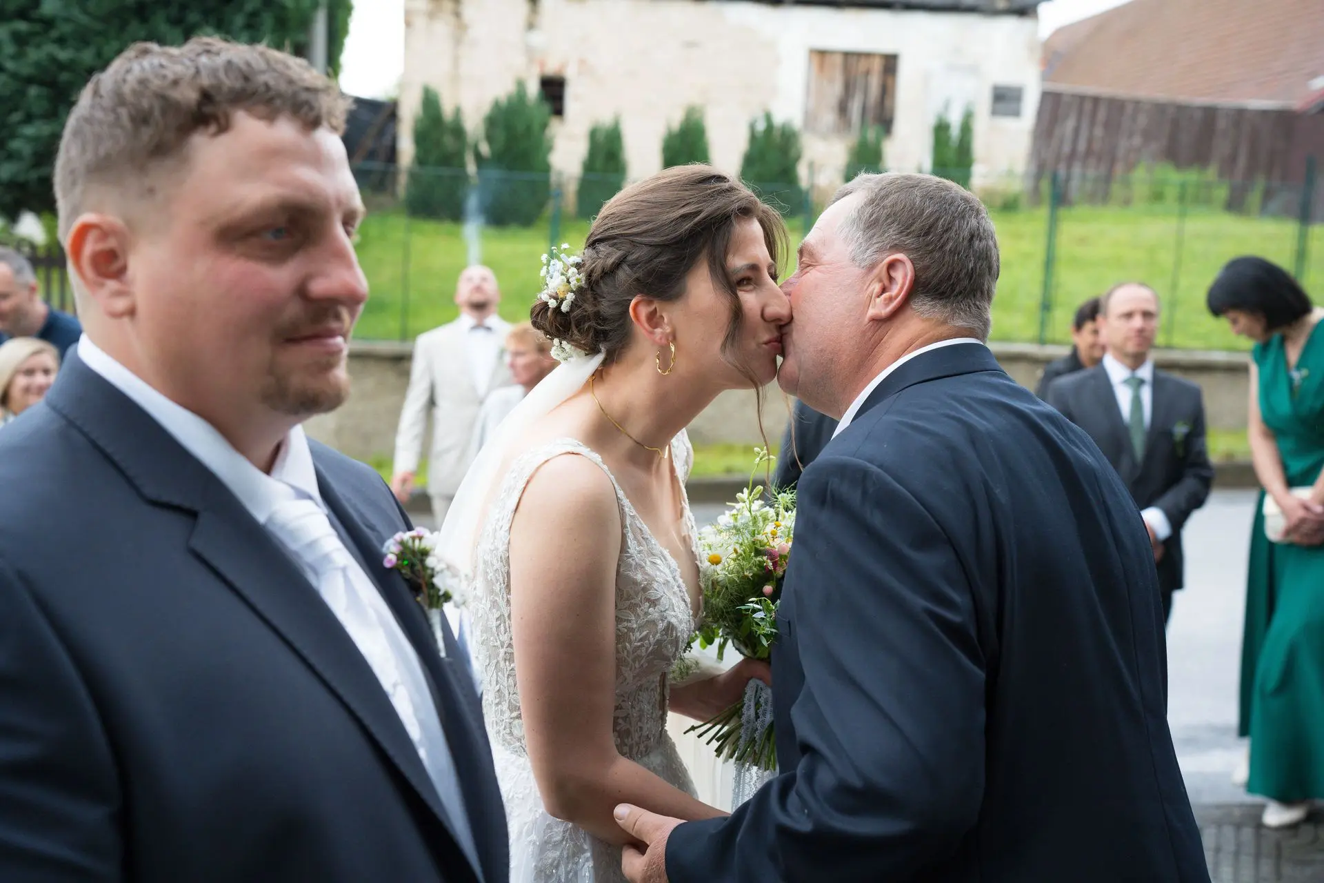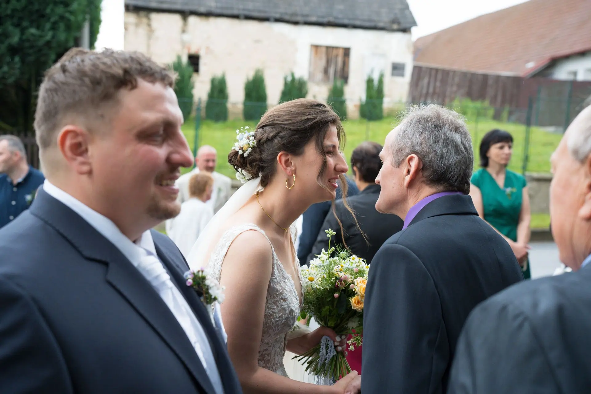 Řekli si své ano v kostele – v místě, kde se svět na chvíli zpomalil. Kde ticho mělo váhu a kde se na chvíli všechno zastavilo, jen aby mohli být spolu. Vilém s klidným úsměvem, Janča se světlem v očích, obklopení těmi, kterým na nich záleží.
