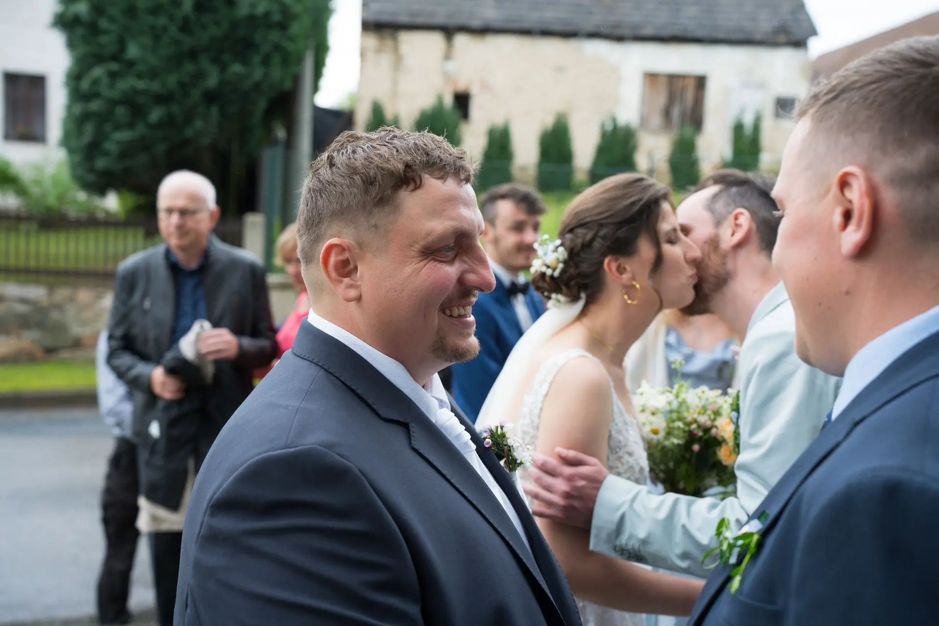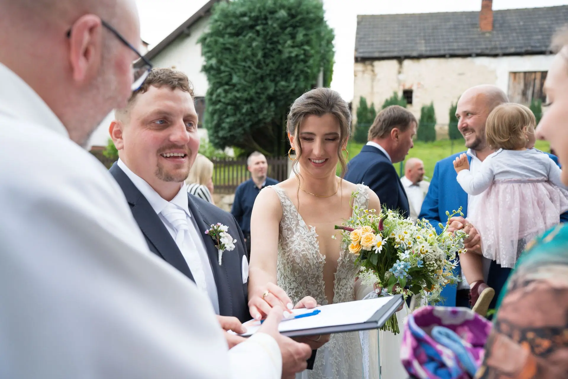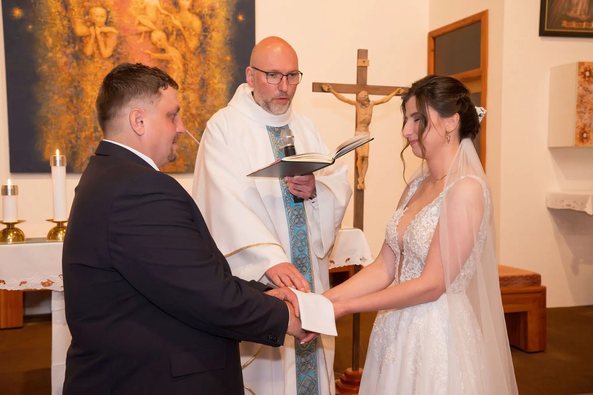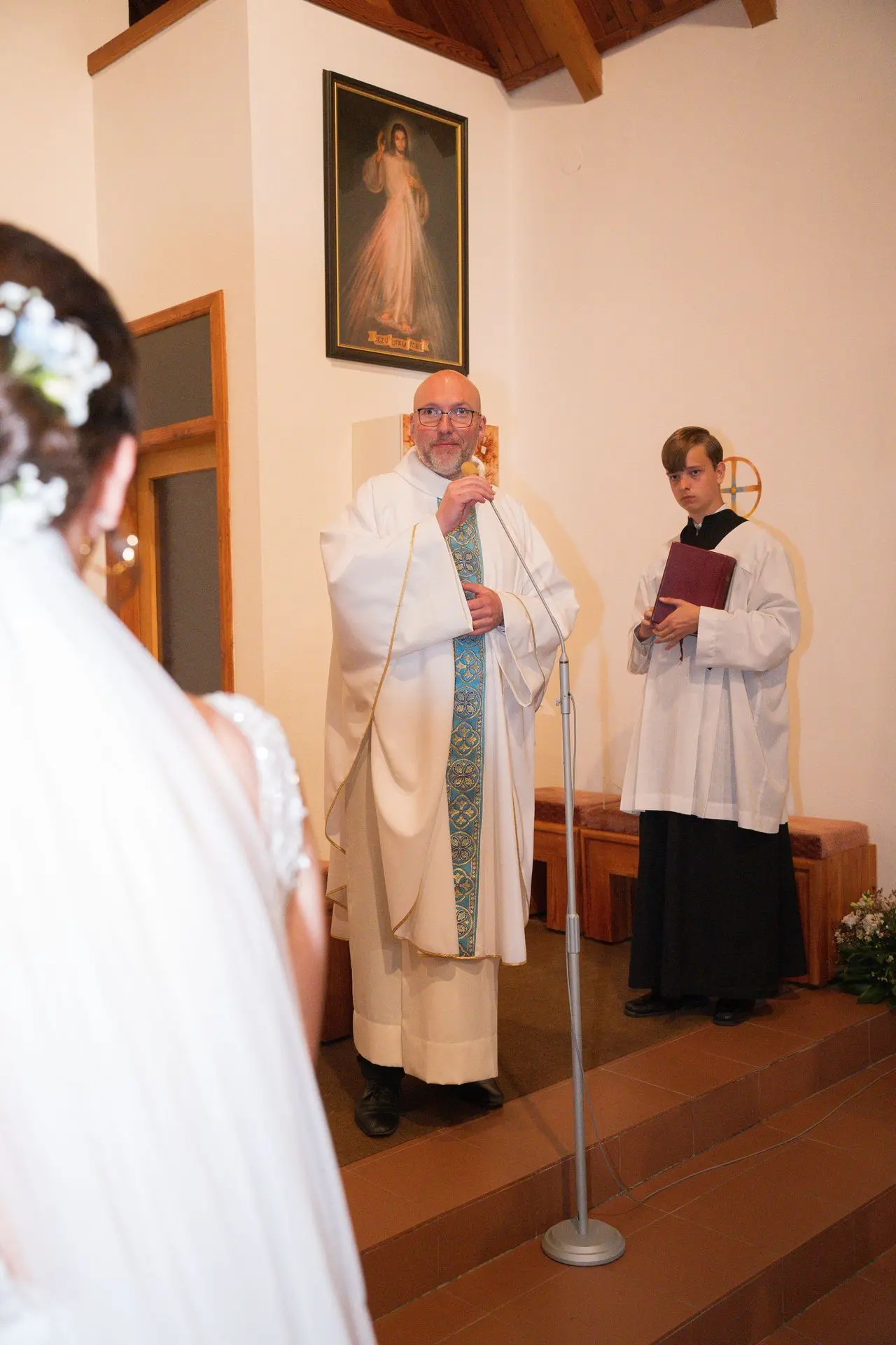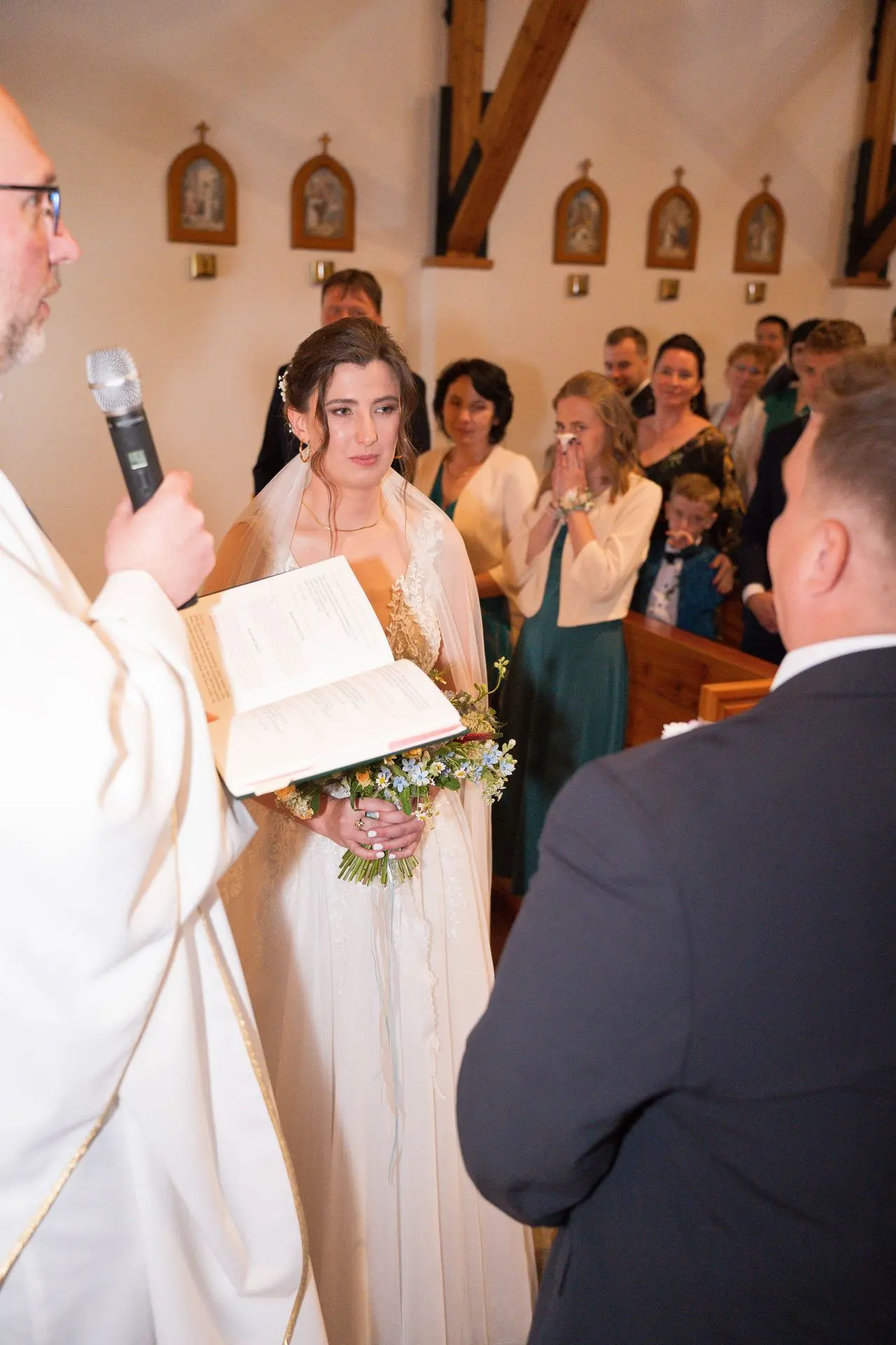 Řekli si své ano v kostele – v místě, kde se svět na chvíli zpomalil. Kde ticho mělo váhu a kde se na chvíli všechno zastavilo, jen aby mohli být spolu. Vilém s klidným úsměvem, Janča se světlem v očích, obklopení těmi, kterým na nich záleží.