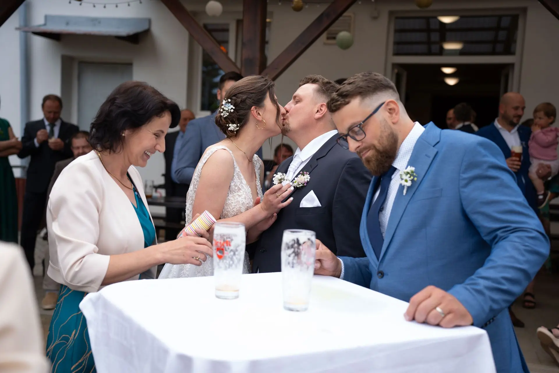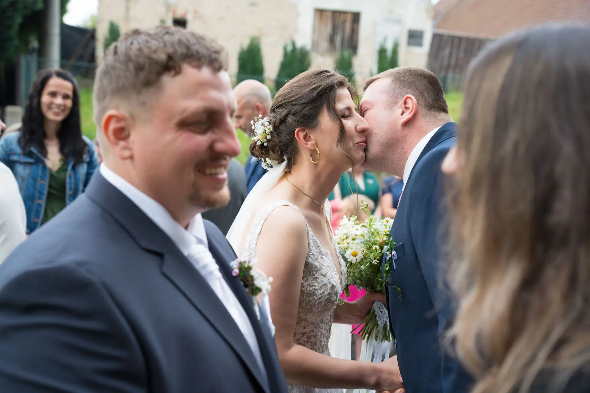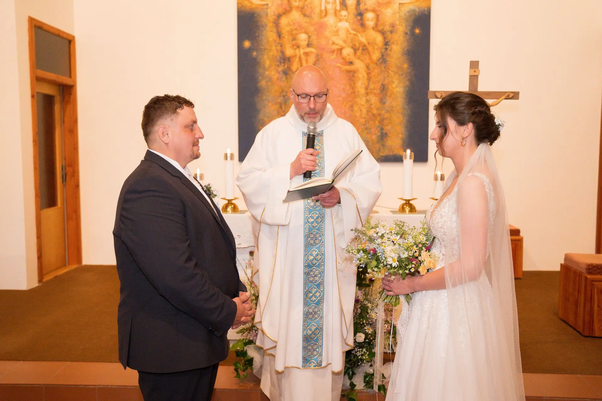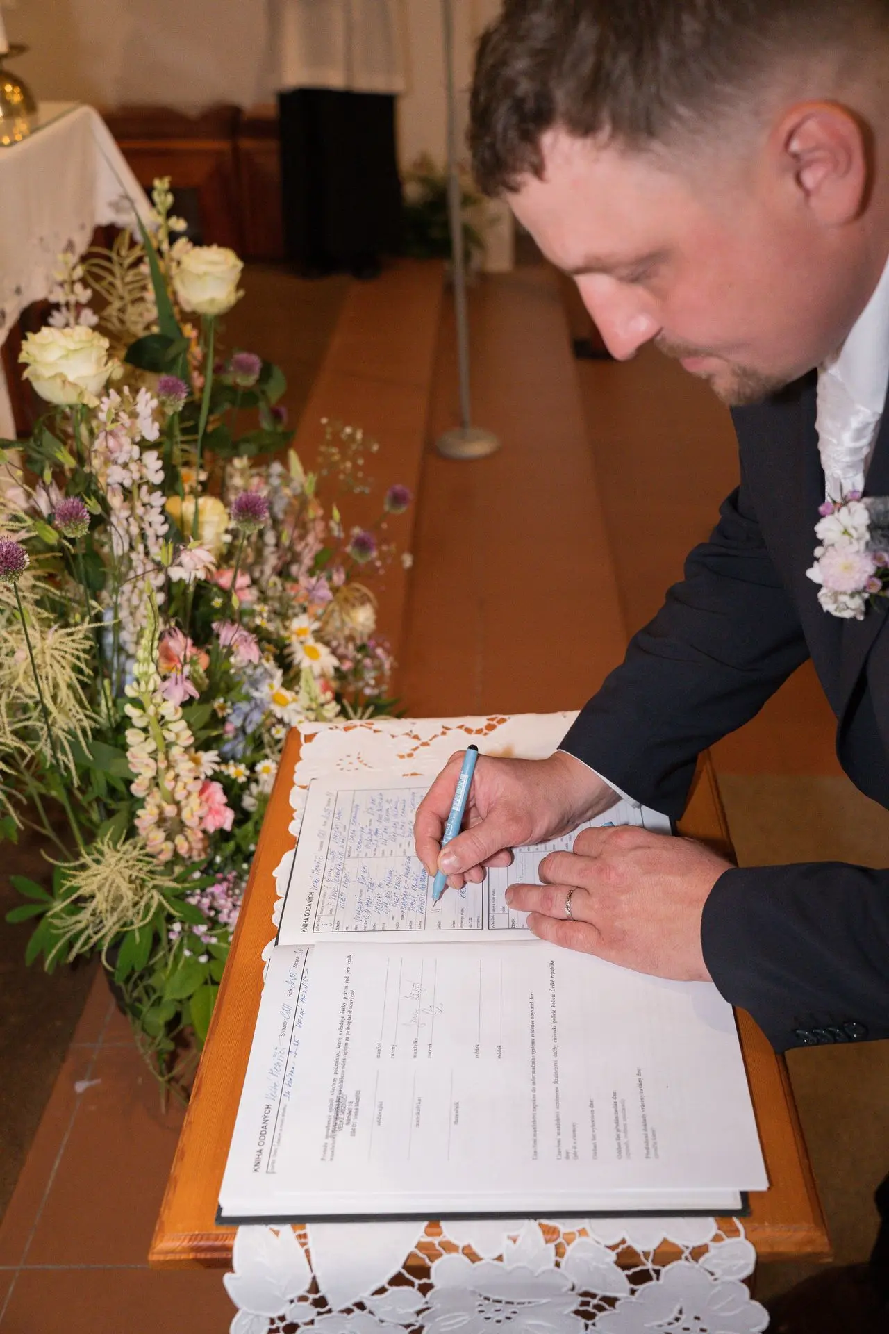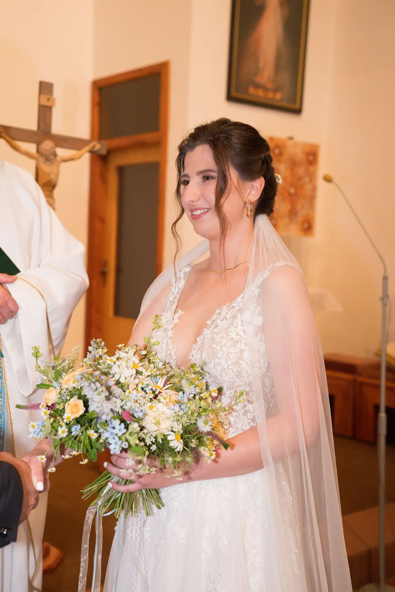 Řekli si své ano v kostele – v místě, kde se svět na chvíli zpomalil. Kde ticho mělo váhu a kde se na chvíli všechno zastavilo, jen aby mohli být spolu. Vilém s klidným úsměvem, Janča se světlem v očích, obklopení těmi, kterým na nich záleží.