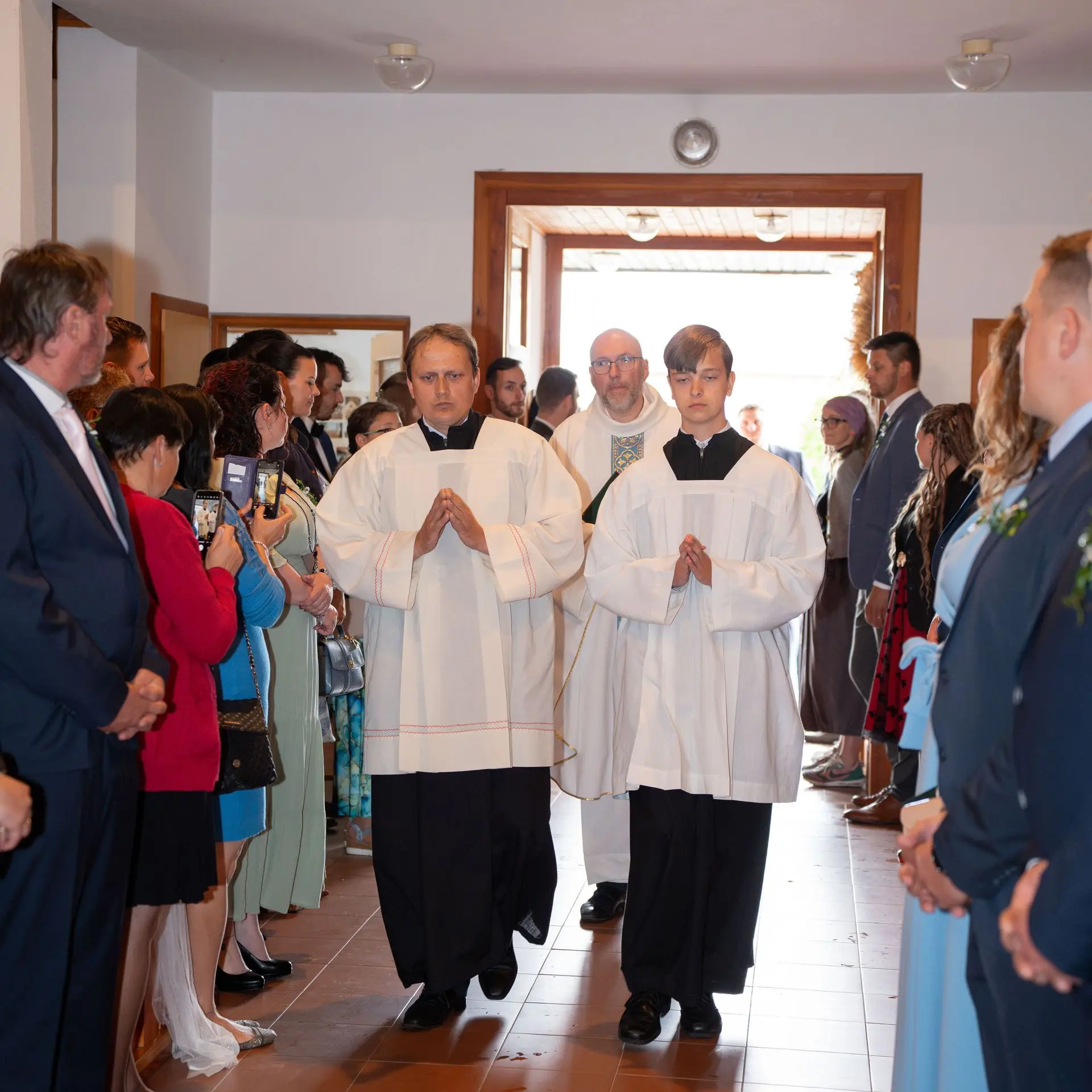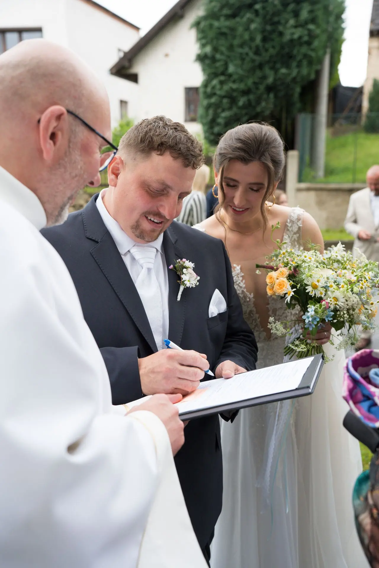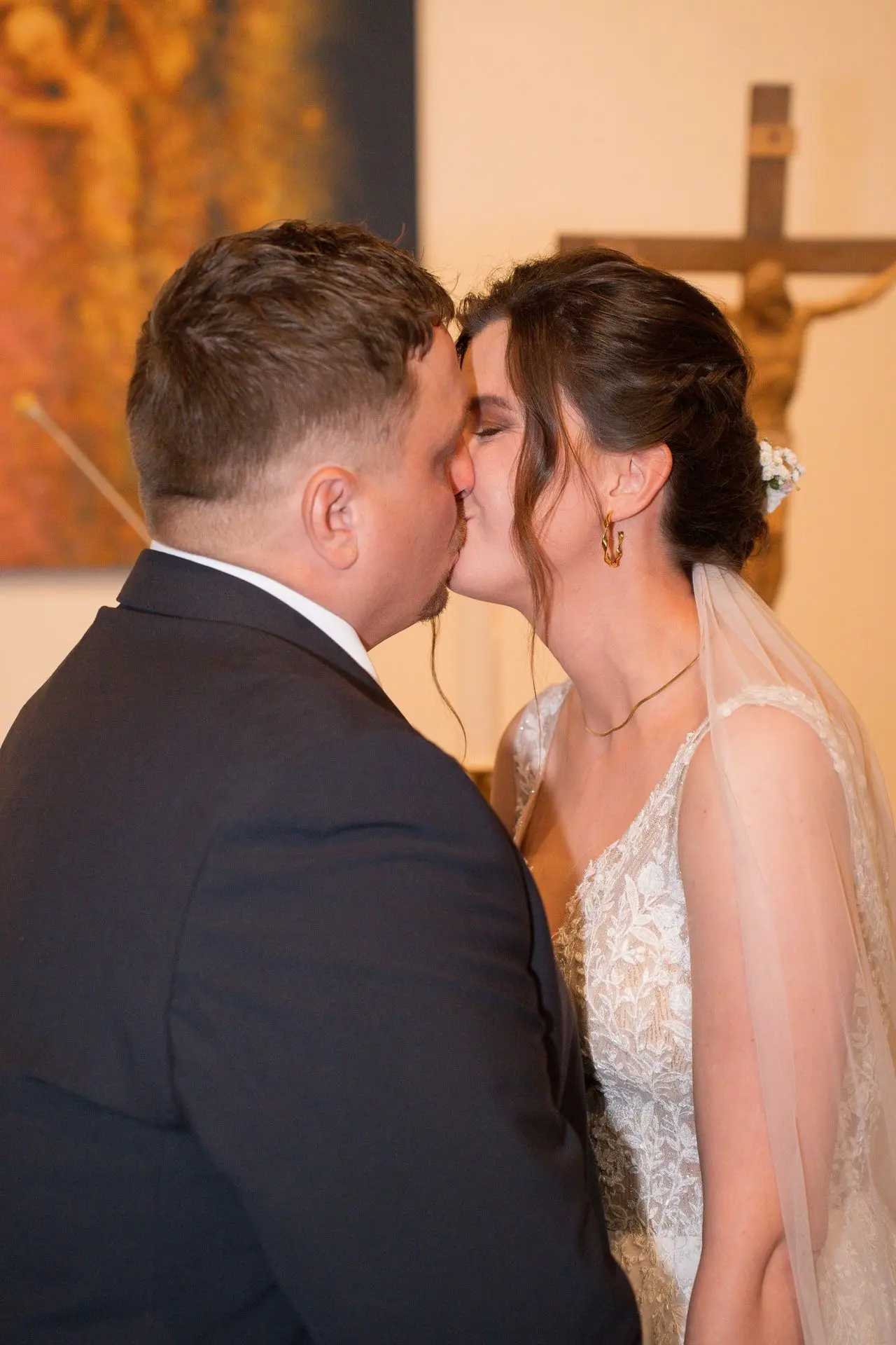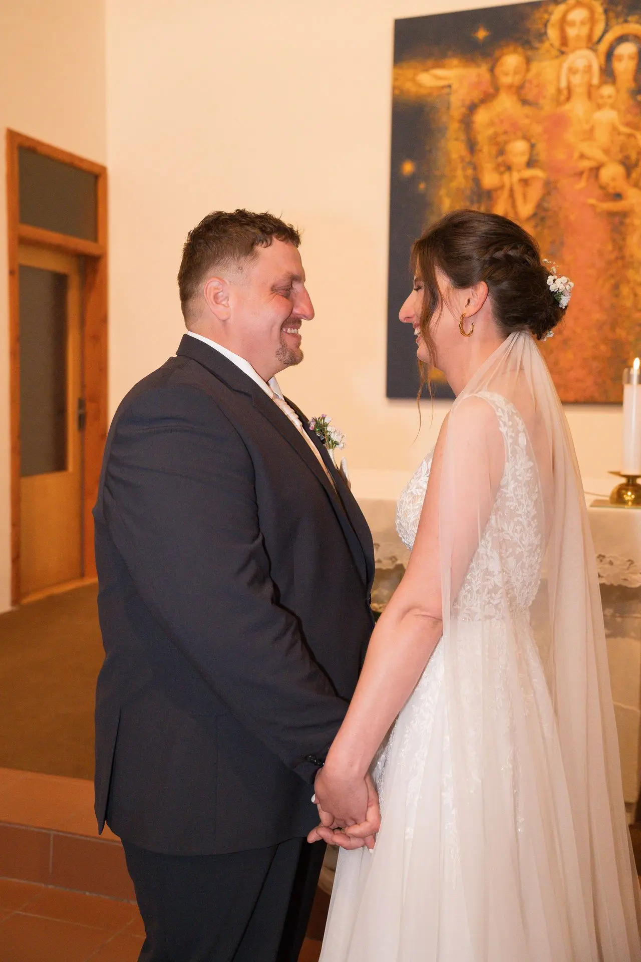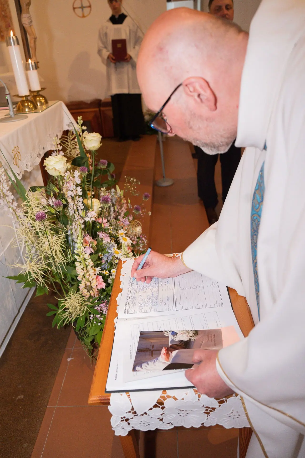 Řekli si své ano v kostele – v místě, kde se svět na chvíli zpomalil. Kde ticho mělo váhu a kde se na chvíli všechno zastavilo, jen aby mohli být spolu. Vilém s klidným úsměvem, Janča se světlem v očích, obklopení těmi, kterým na nich záleží.