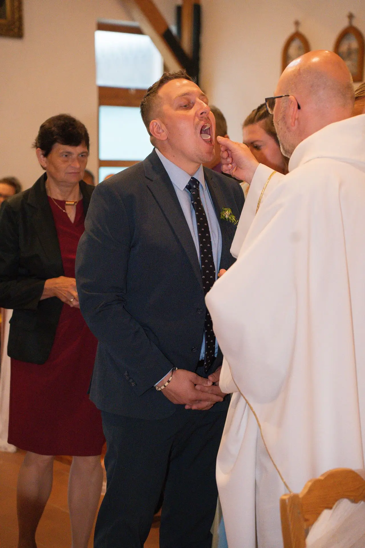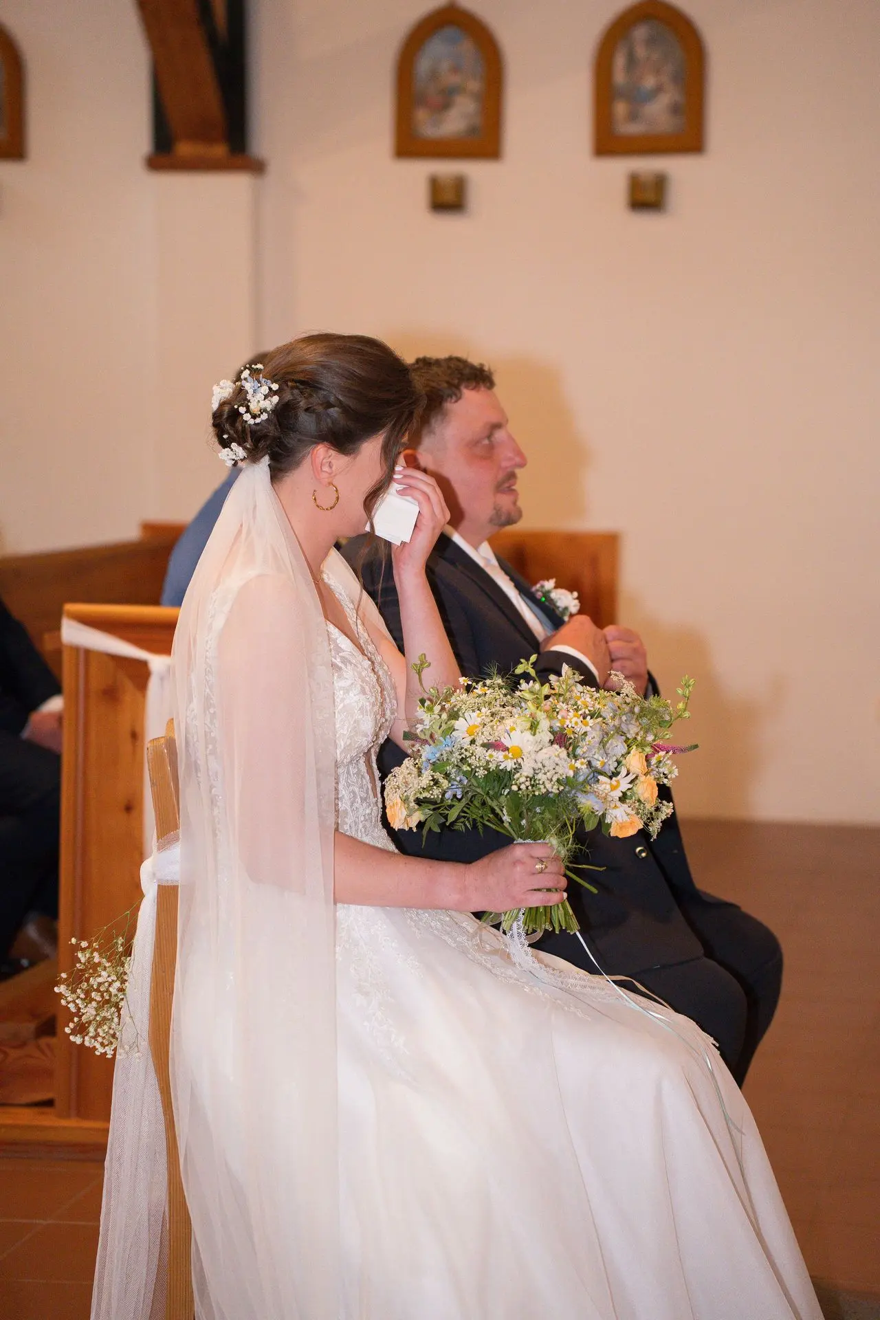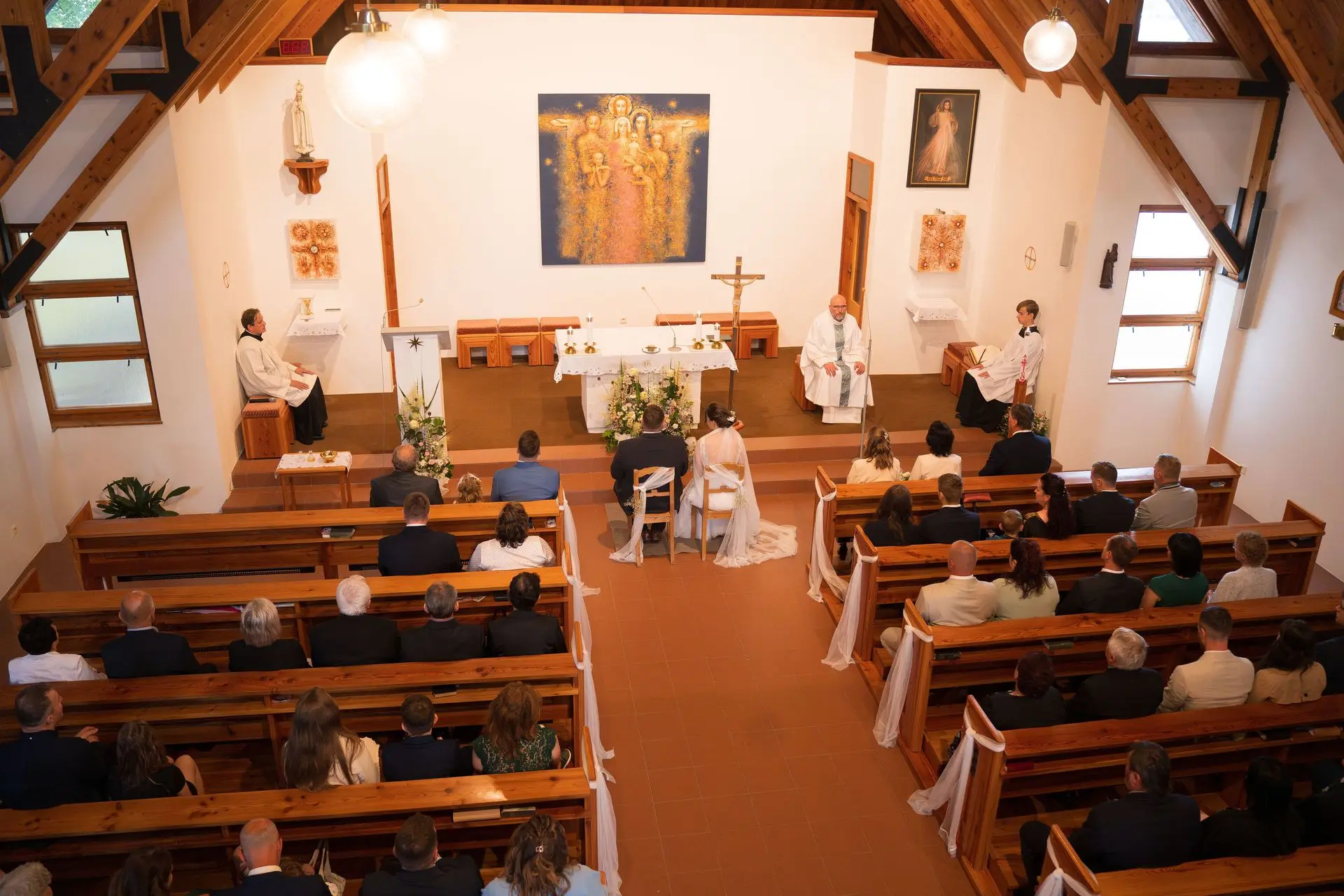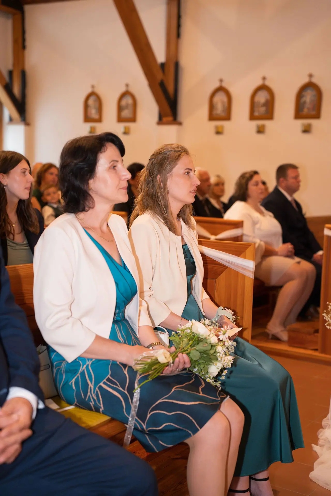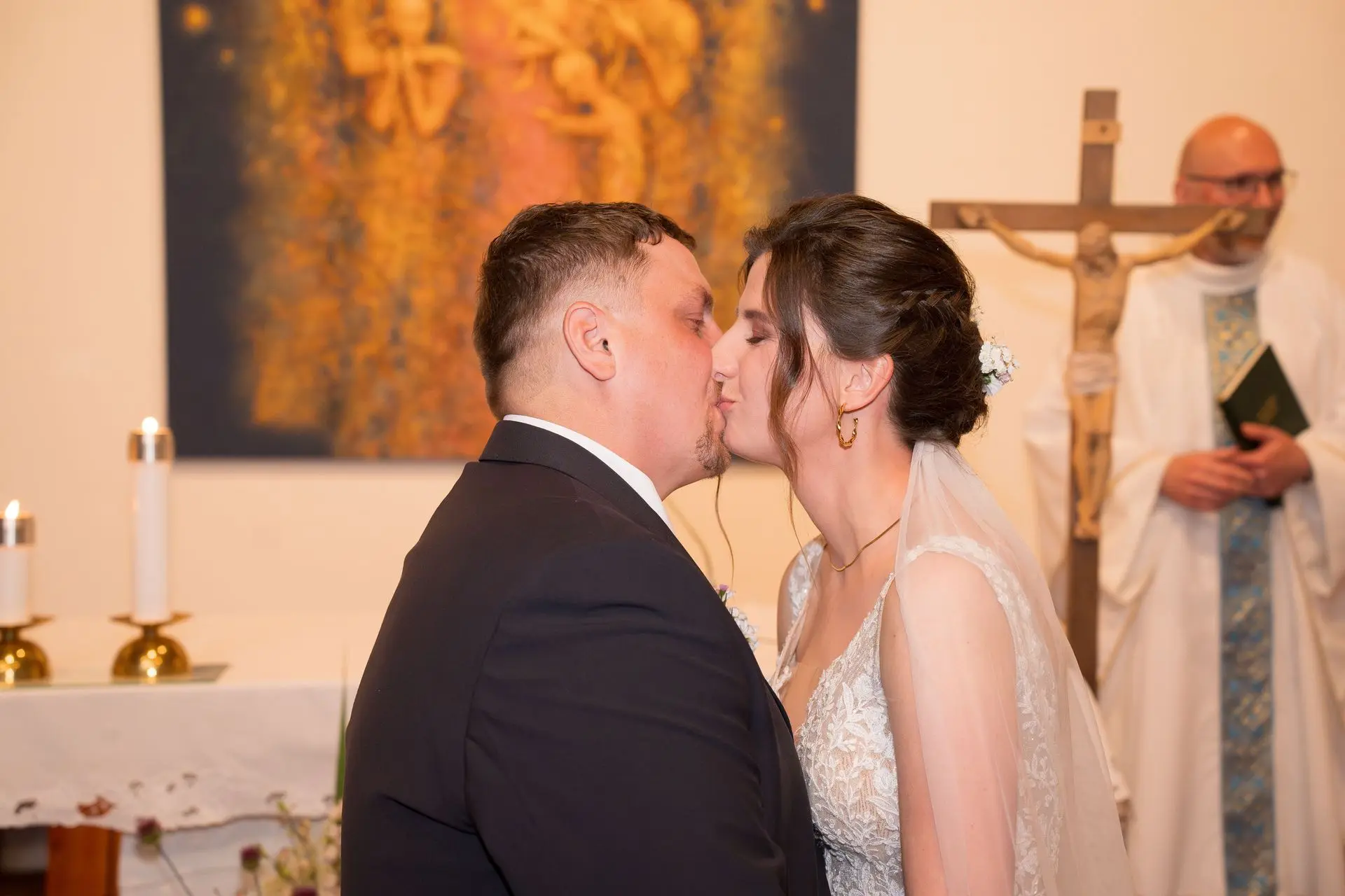 Řekli si své ano v kostele – v místě, kde se svět na chvíli zpomalil. Kde ticho mělo váhu a kde se na chvíli všechno zastavilo, jen aby mohli být spolu. Vilém s klidným úsměvem, Janča se světlem v očích, obklopení těmi, kterým na nich záleží.