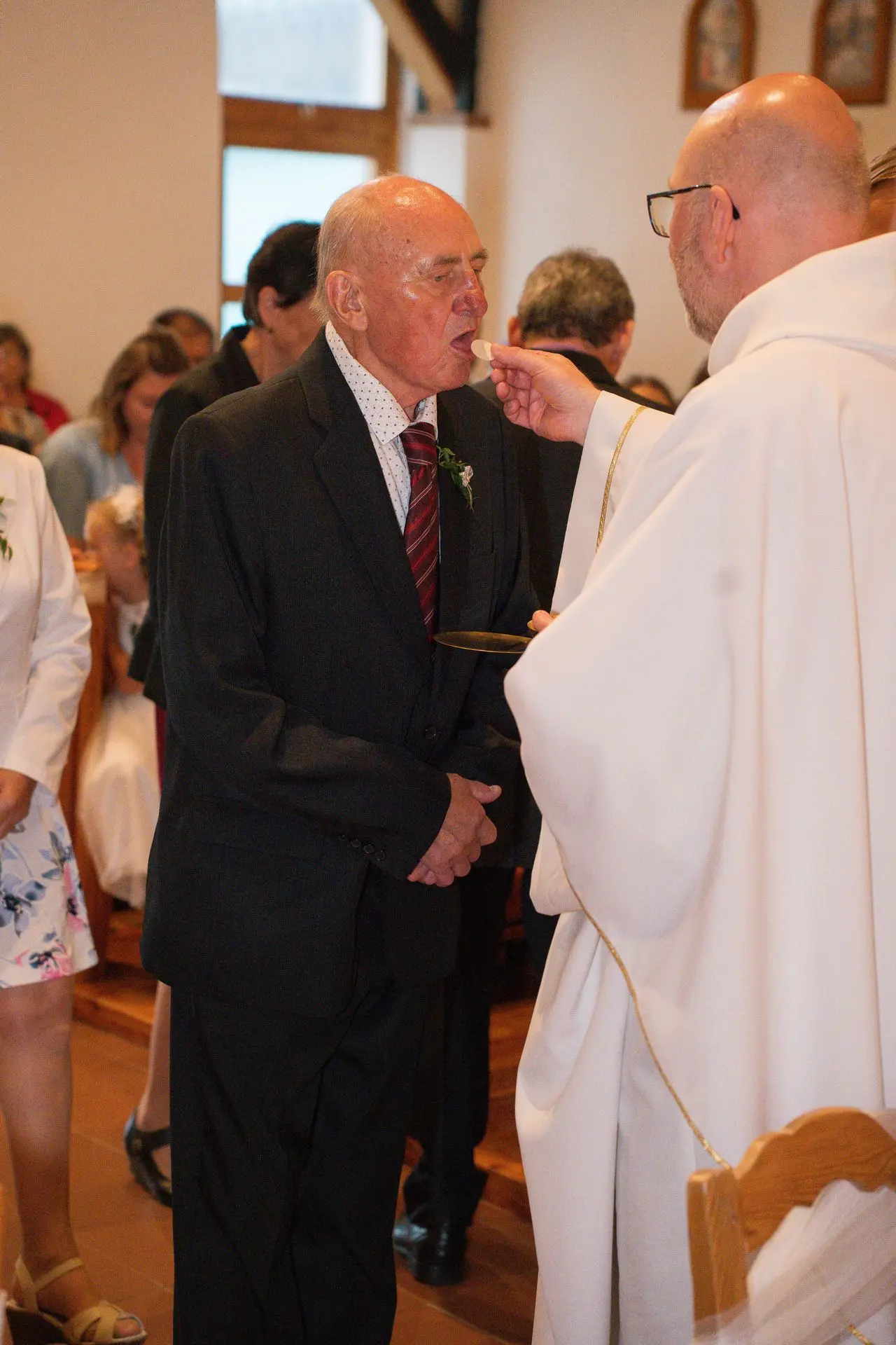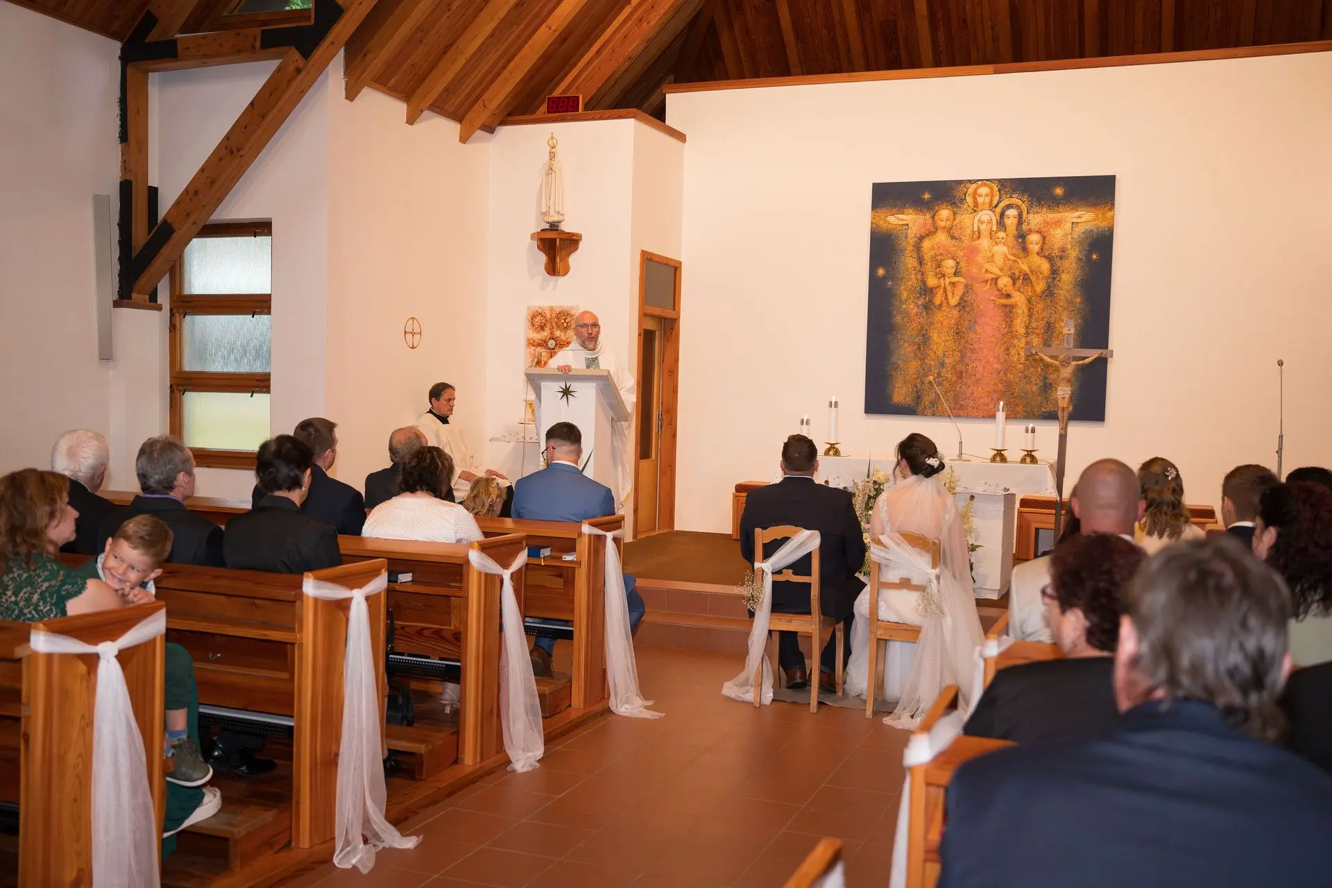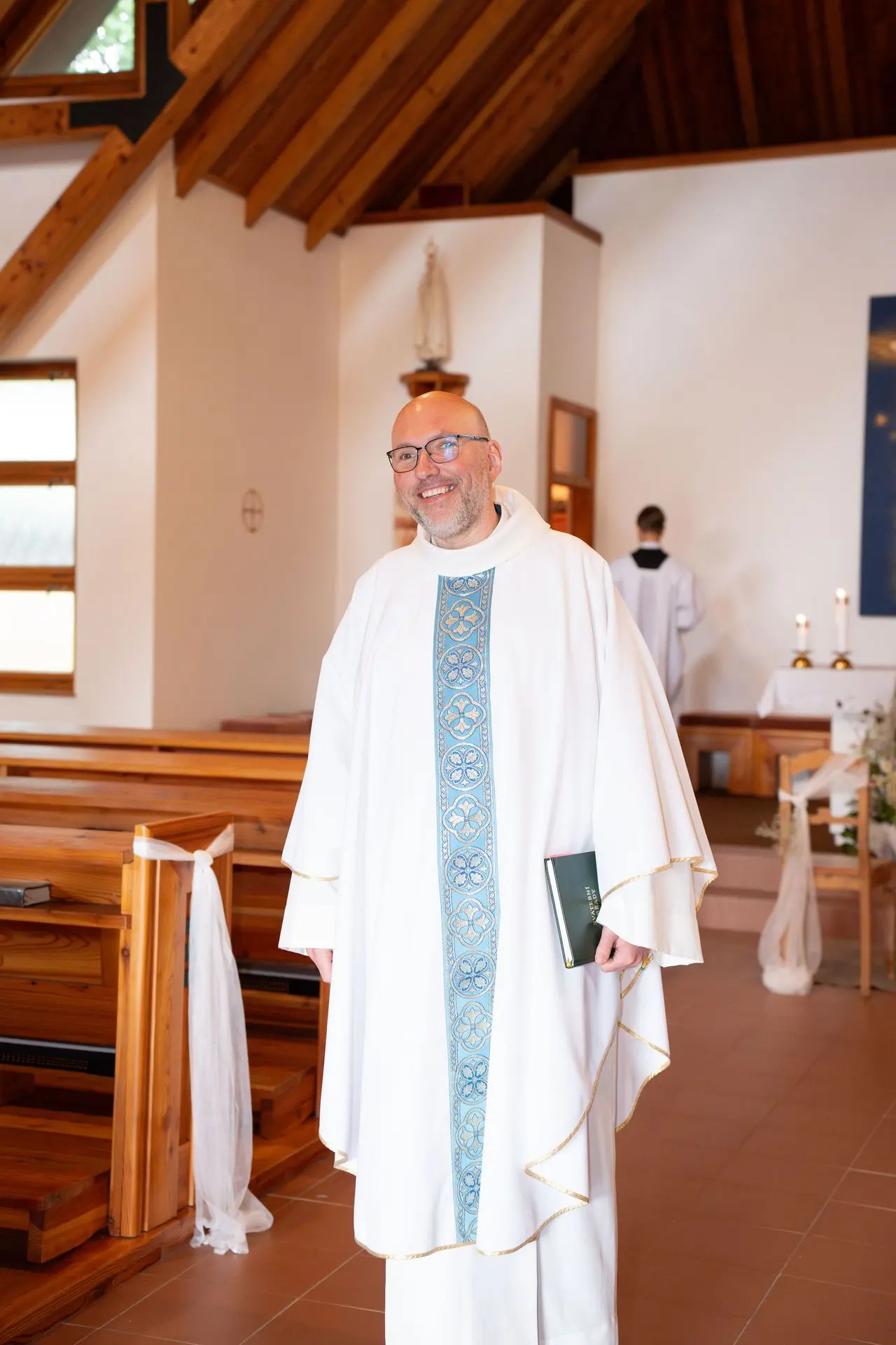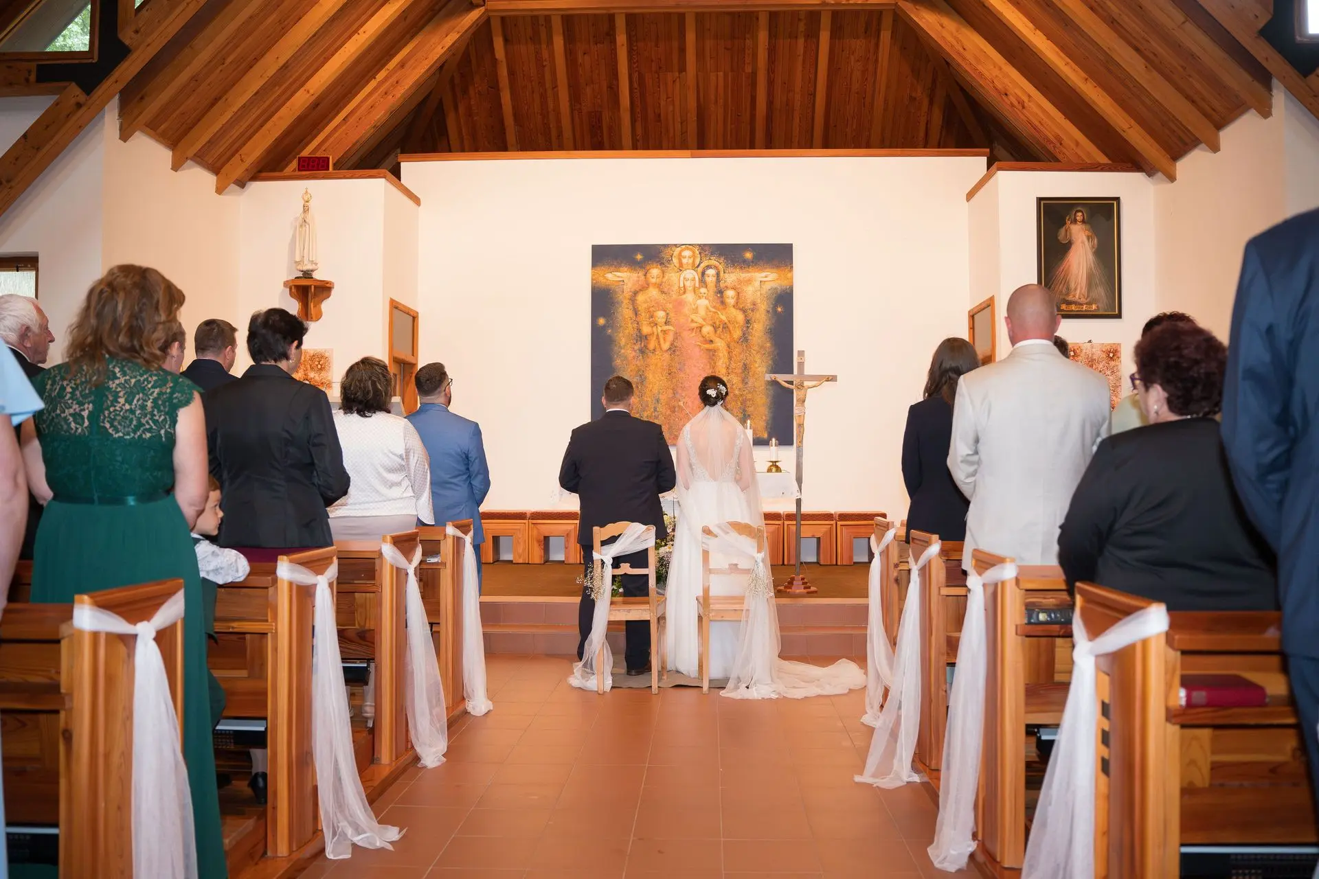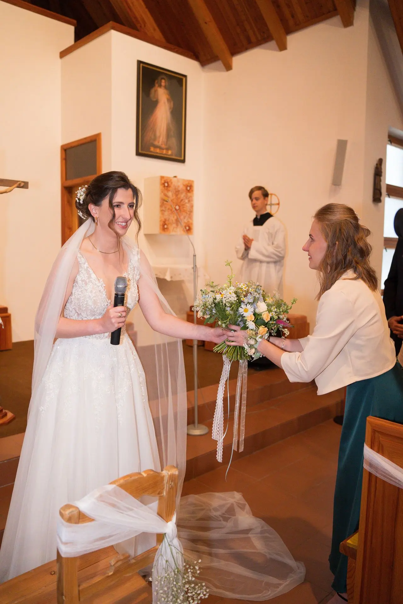 Řekli si své ano v kostele – v místě, kde se svět na chvíli zpomalil. Kde ticho mělo váhu a kde se na chvíli všechno zastavilo, jen aby mohli být spolu. Vilém s klidným úsměvem, Janča se světlem v očích, obklopení těmi, kterým na nich záleží.