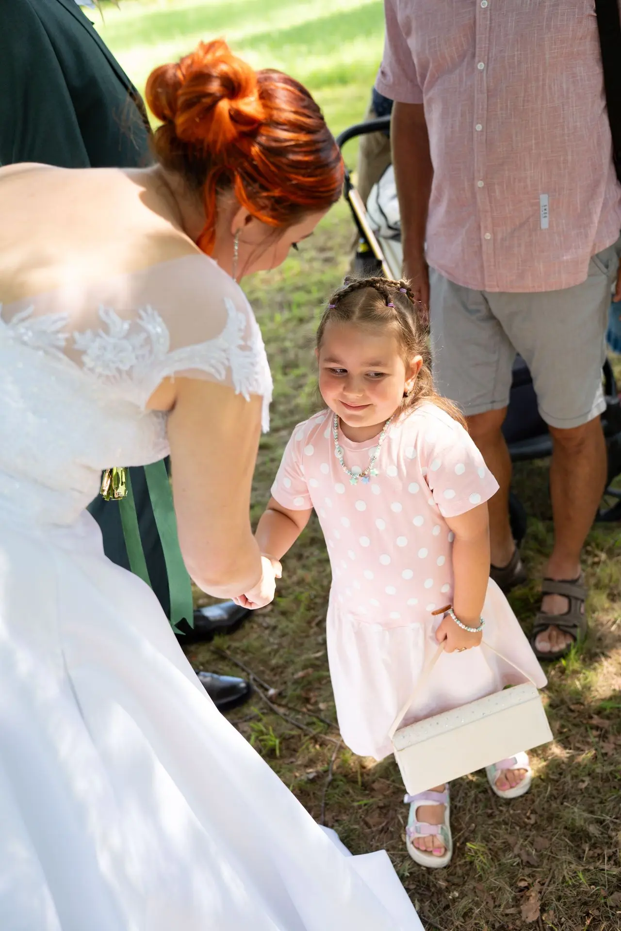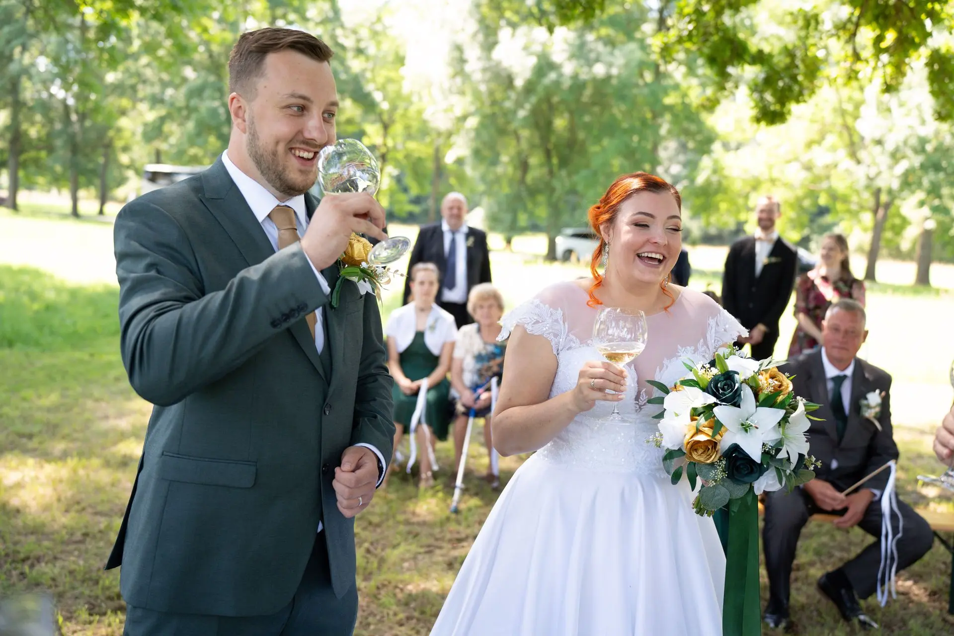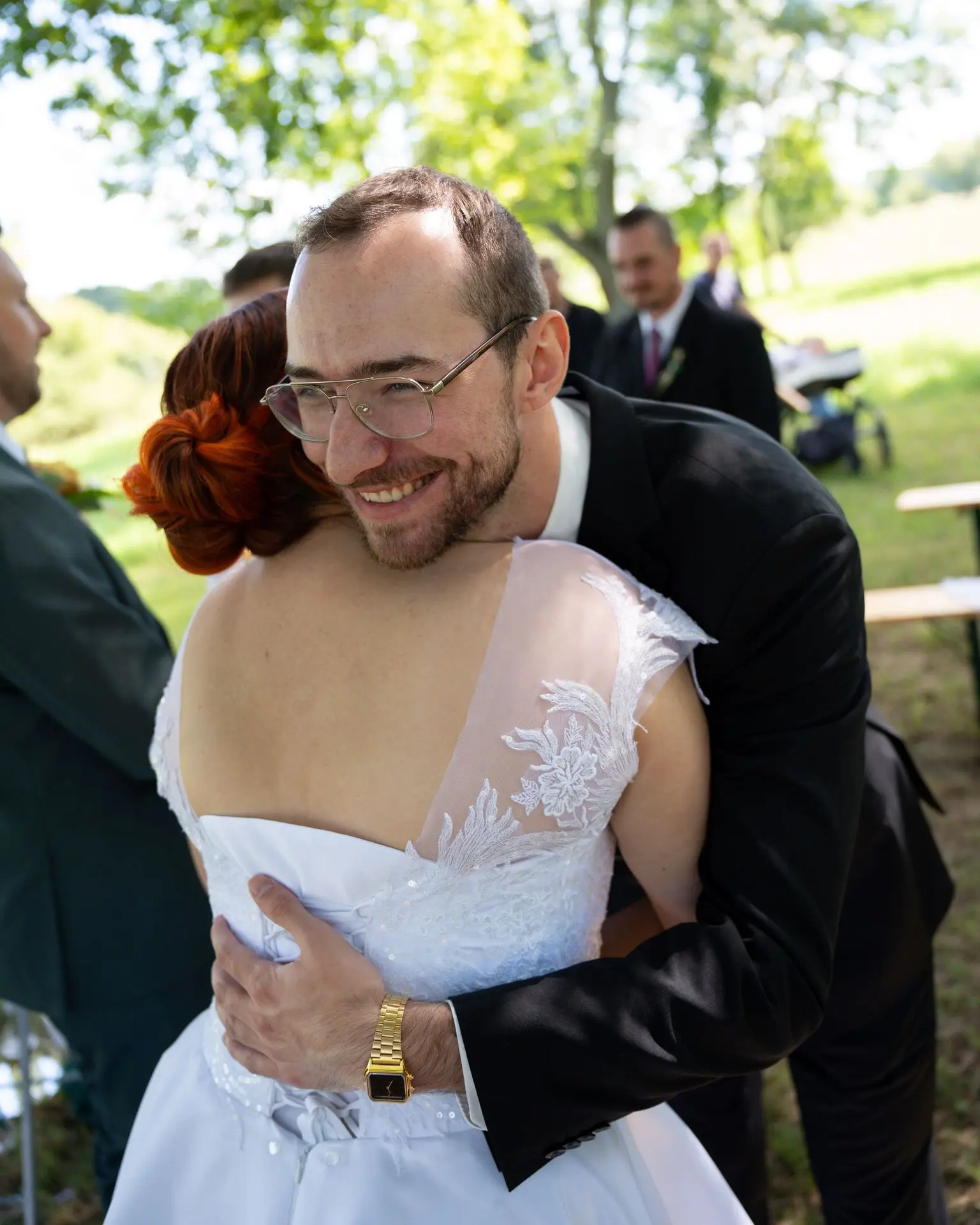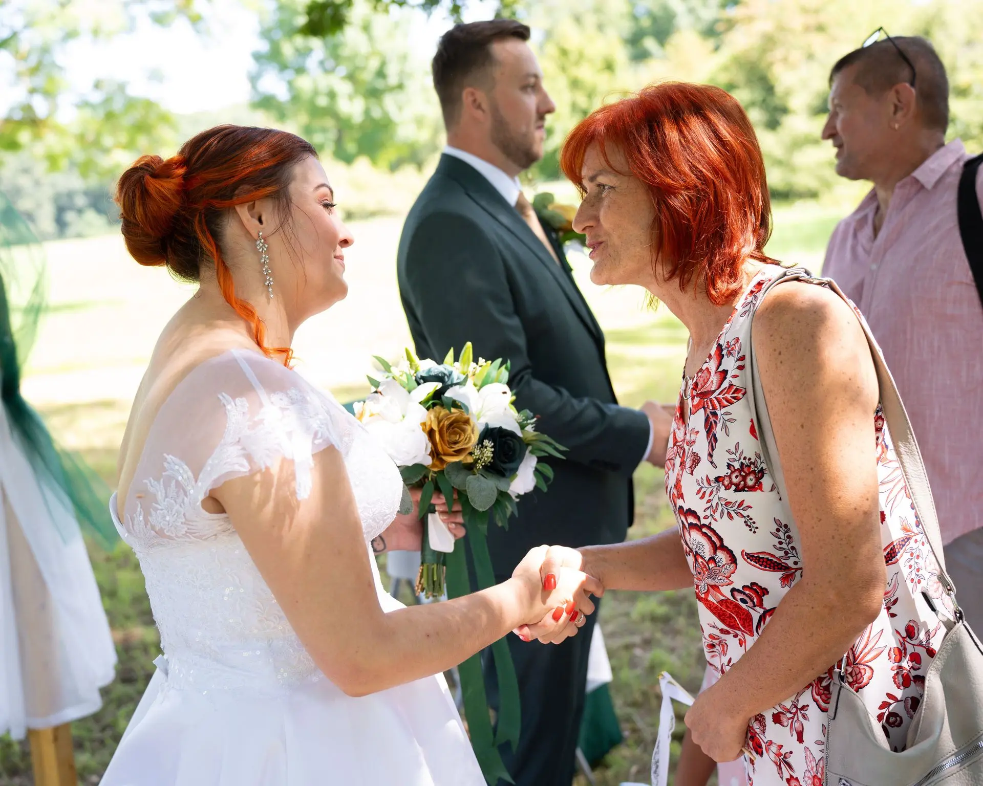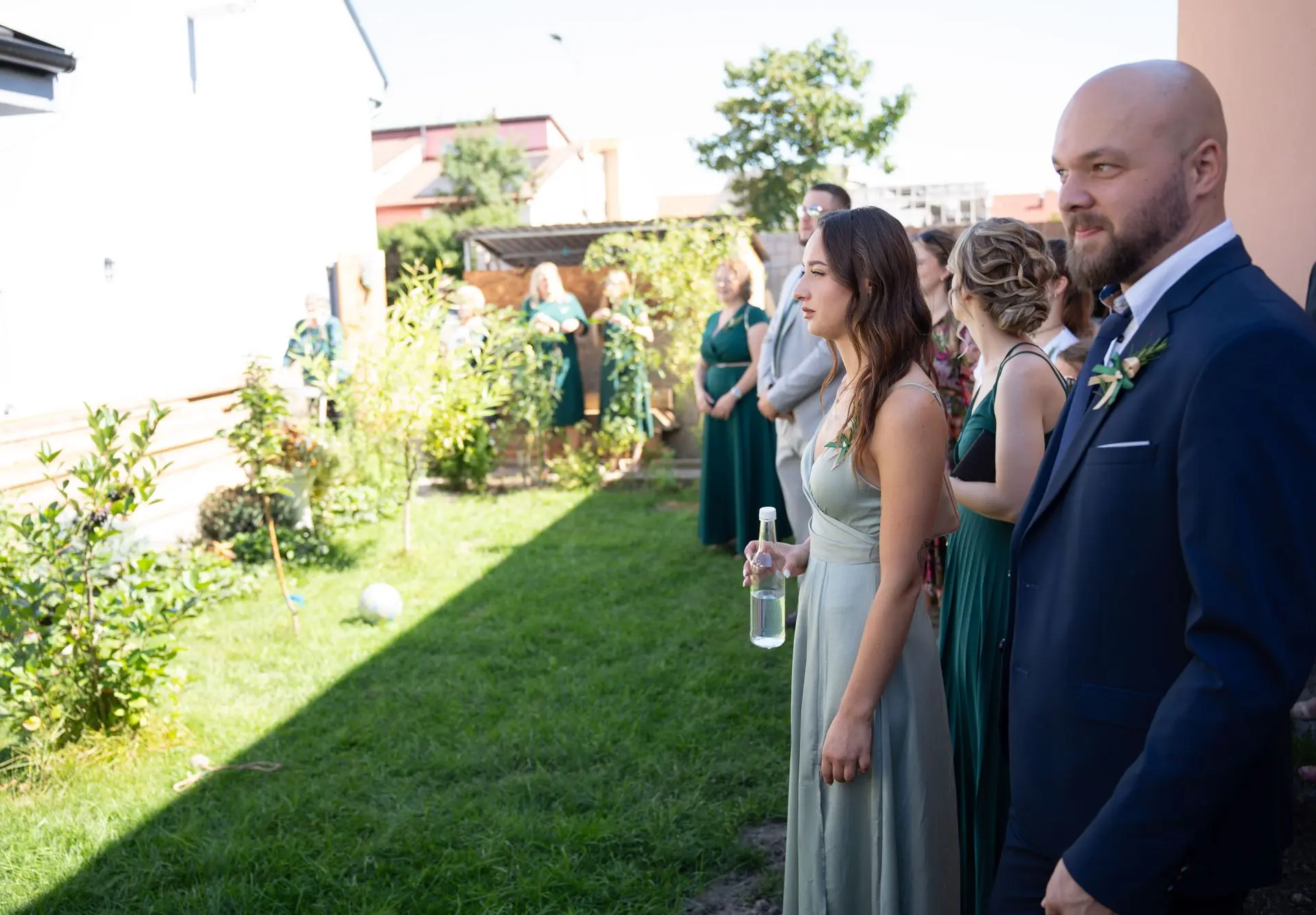Svatba Marty a Pavla začala přípravami a nečekaným momentem s falešnou nevěstou, který odlehčil atmosféru hned na úvod. Nevěsta se k oltáři dostavila nevšedním způsobem, přijela totiž na své motorce. Obřad proběhl nedaleko Slovanského hradiště a celý den se nesl v klidném a osobitém duchu. V průběhu dne nechybělo také svatební fotografování na Hradišťku, kde na poslední chvíli vysvitly nádherné a jemné sluneční paprsky, které fotkám dodaly tu pravou atmosféru.