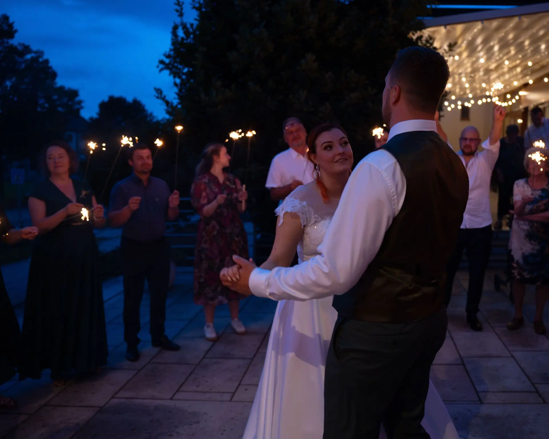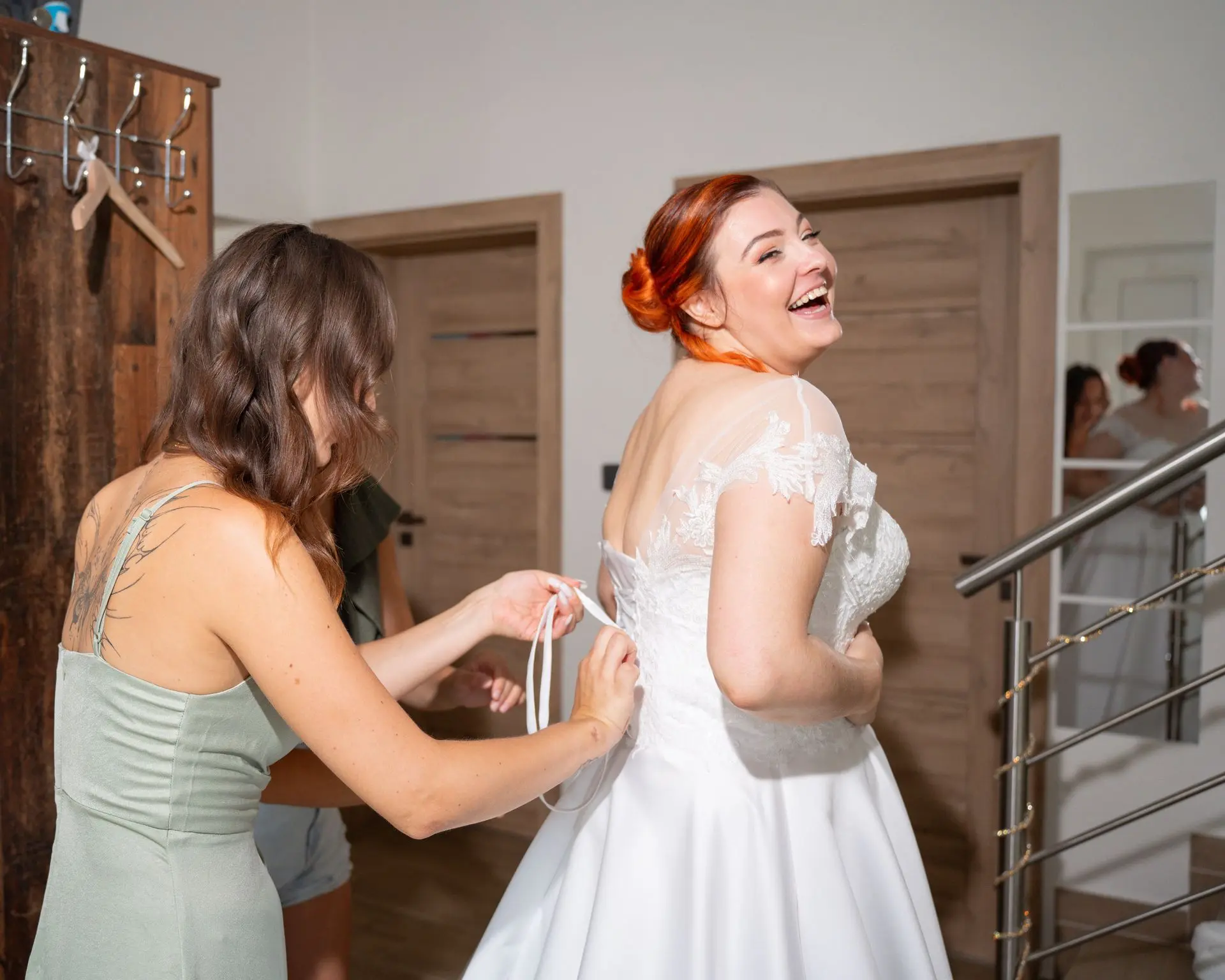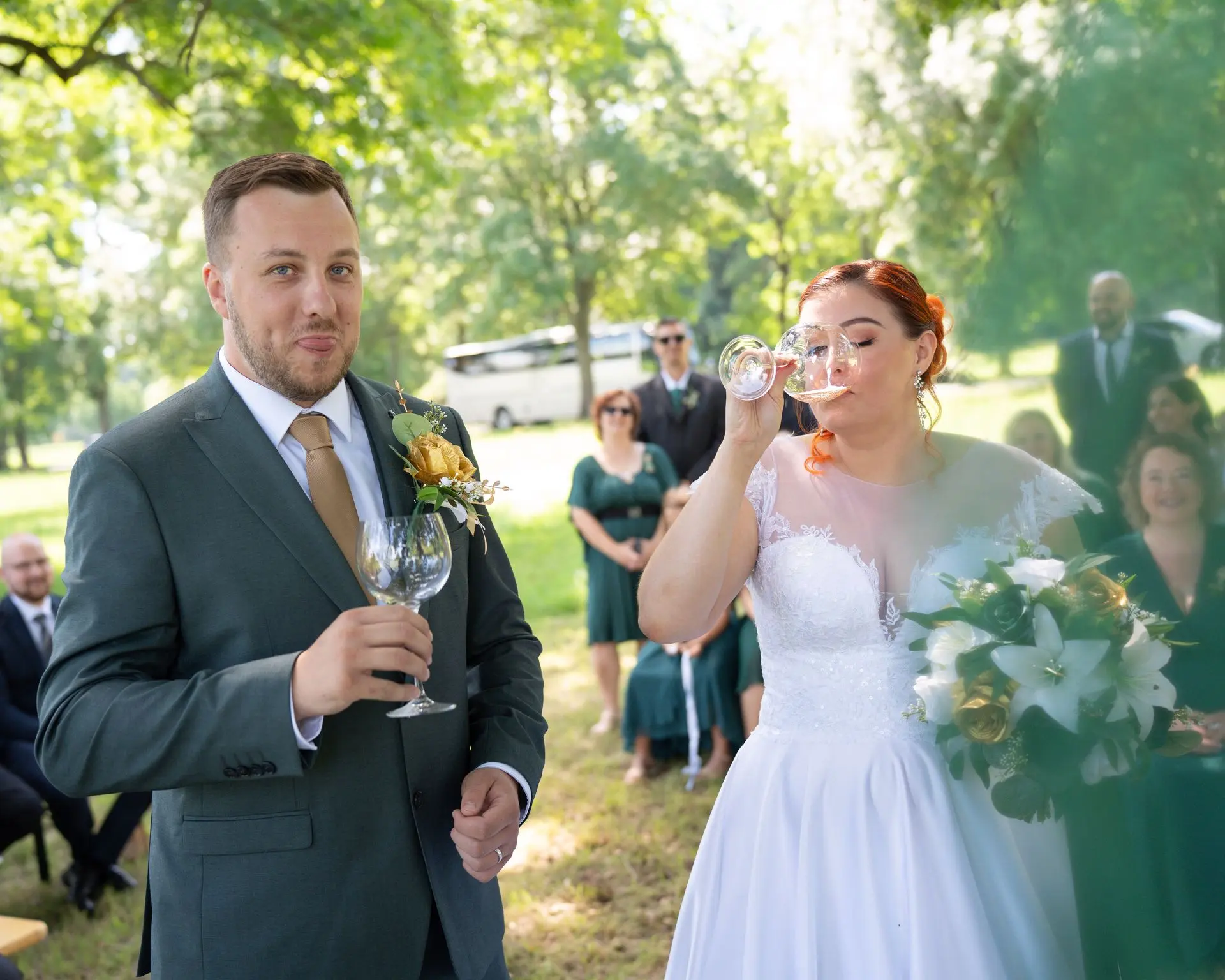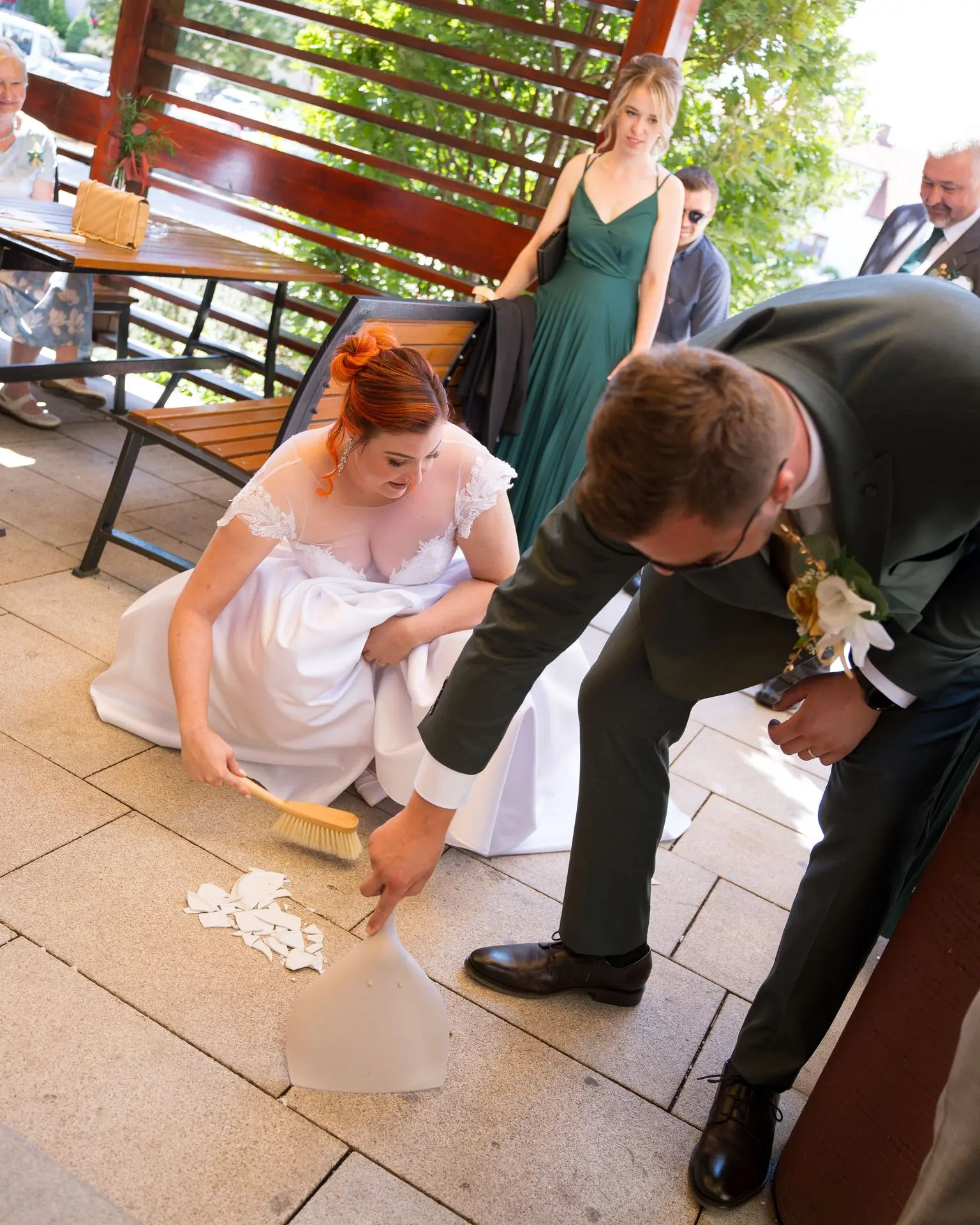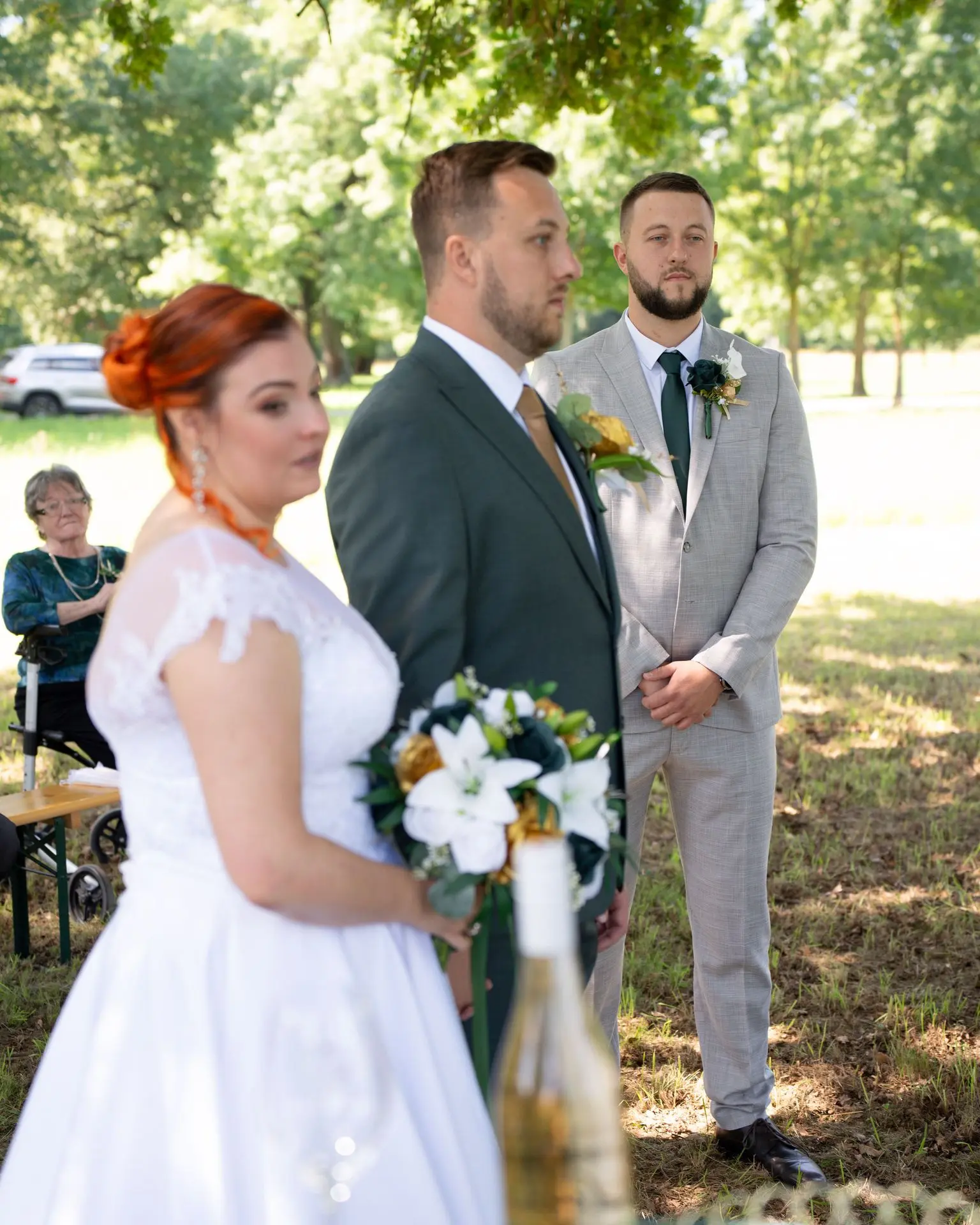 Svatba Marty a Pavla začala přípravami a nečekaným momentem s falešnou nevěstou, který odlehčil atmosféru hned na úvod. Nevěsta se k oltáři dostavila nevšedním způsobem, přijela totiž na své motorce. Obřad proběhl nedaleko Slovanského hradiště a celý den se nesl v klidném a osobitém duchu. V průběhu dne nechybělo také svatební fotografování na Hradišťku, kde na poslední chvíli vysvitly nádherné a jemné sluneční paprsky, které fotkám dodaly tu pravou atmosféru.