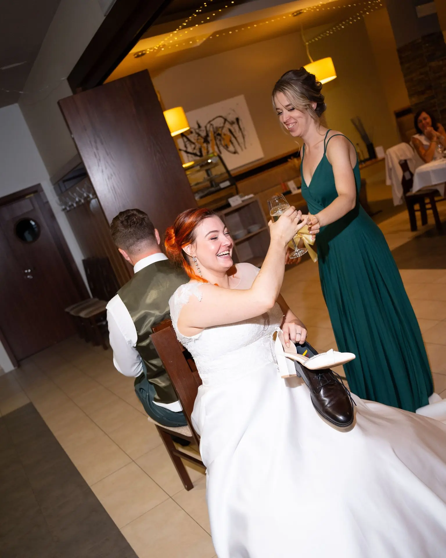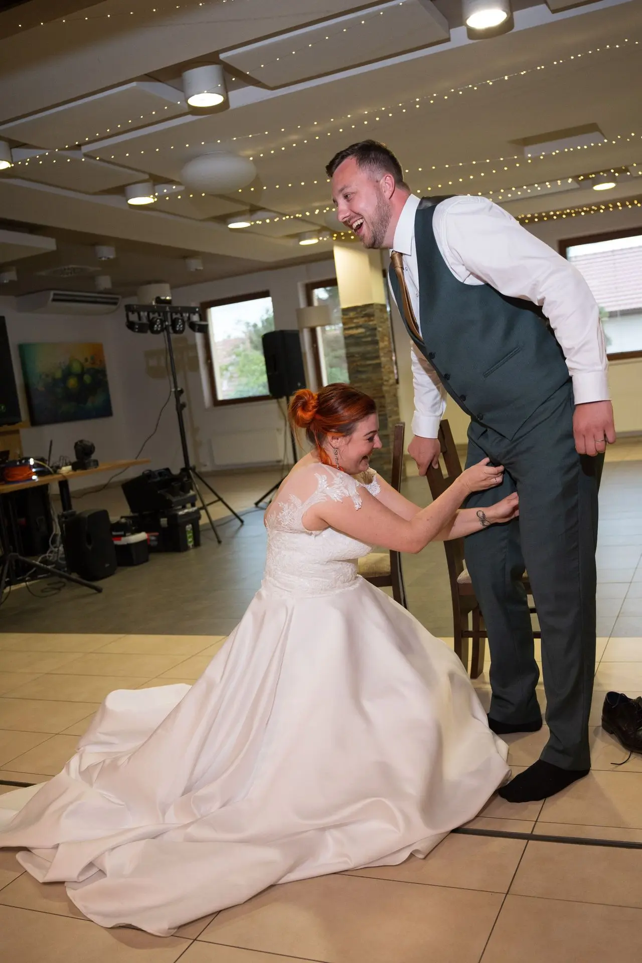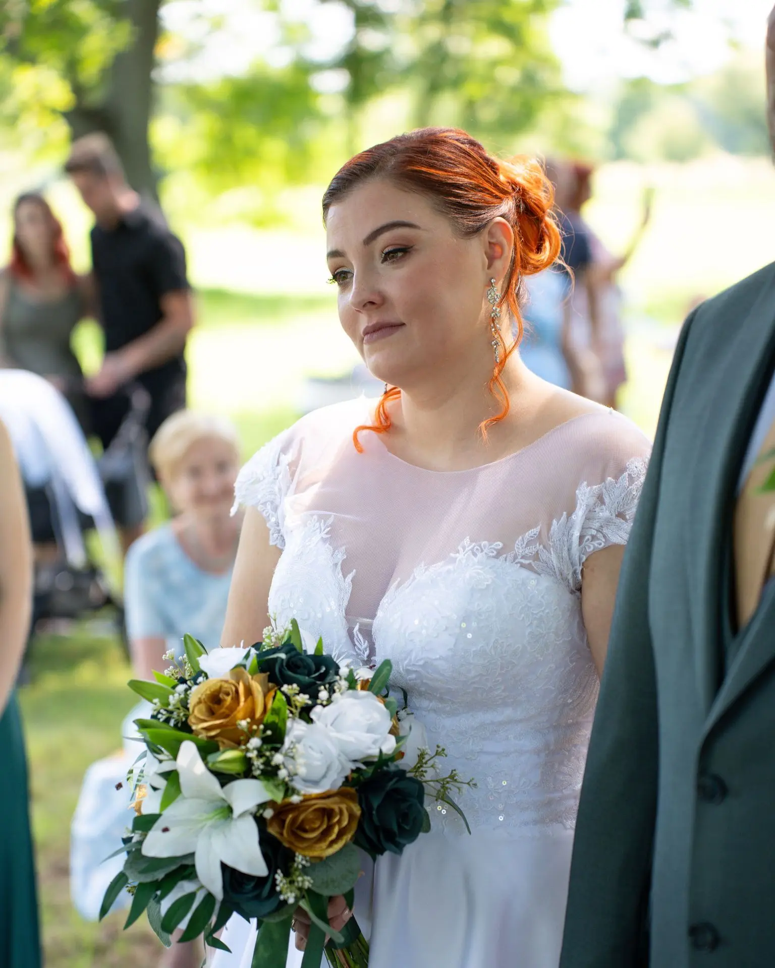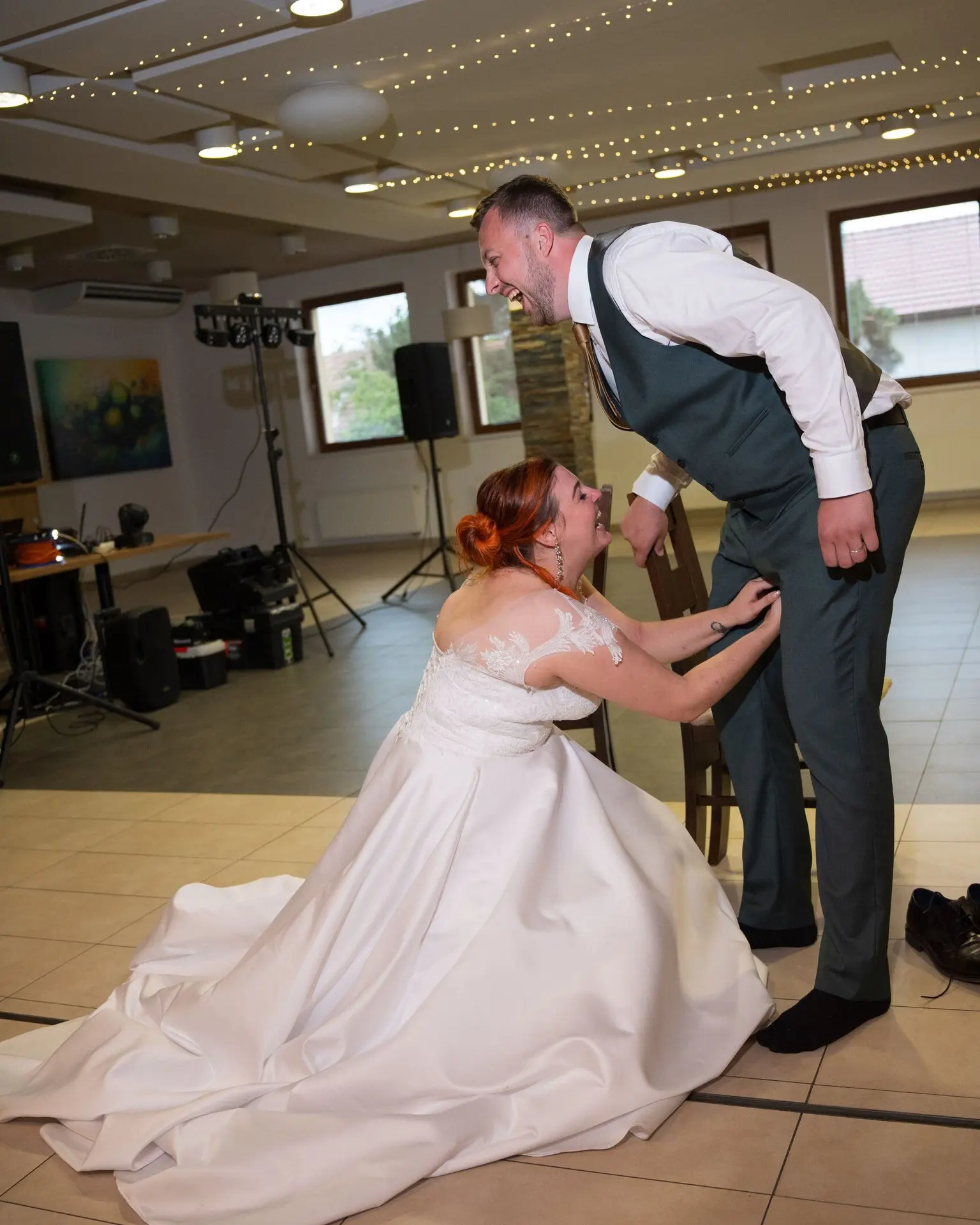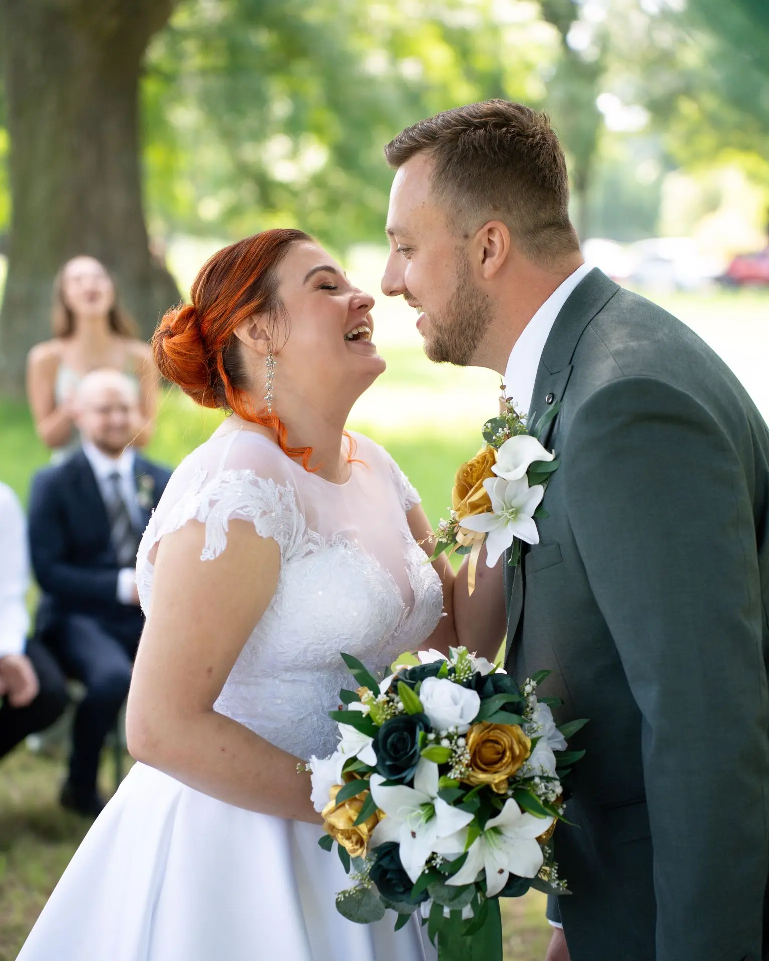 Svatba Marty a Pavla začala přípravami a nečekaným momentem s falešnou nevěstou, který odlehčil atmosféru hned na úvod. Nevěsta se k oltáři dostavila nevšedním způsobem, přijela totiž na své motorce. Obřad proběhl nedaleko Slovanského hradiště a celý den se nesl v klidném a osobitém duchu. V průběhu dne nechybělo také svatební fotografování na Hradišťku, kde na poslední chvíli vysvitly nádherné a jemné sluneční paprsky, které fotkám dodaly tu pravou atmosféru.