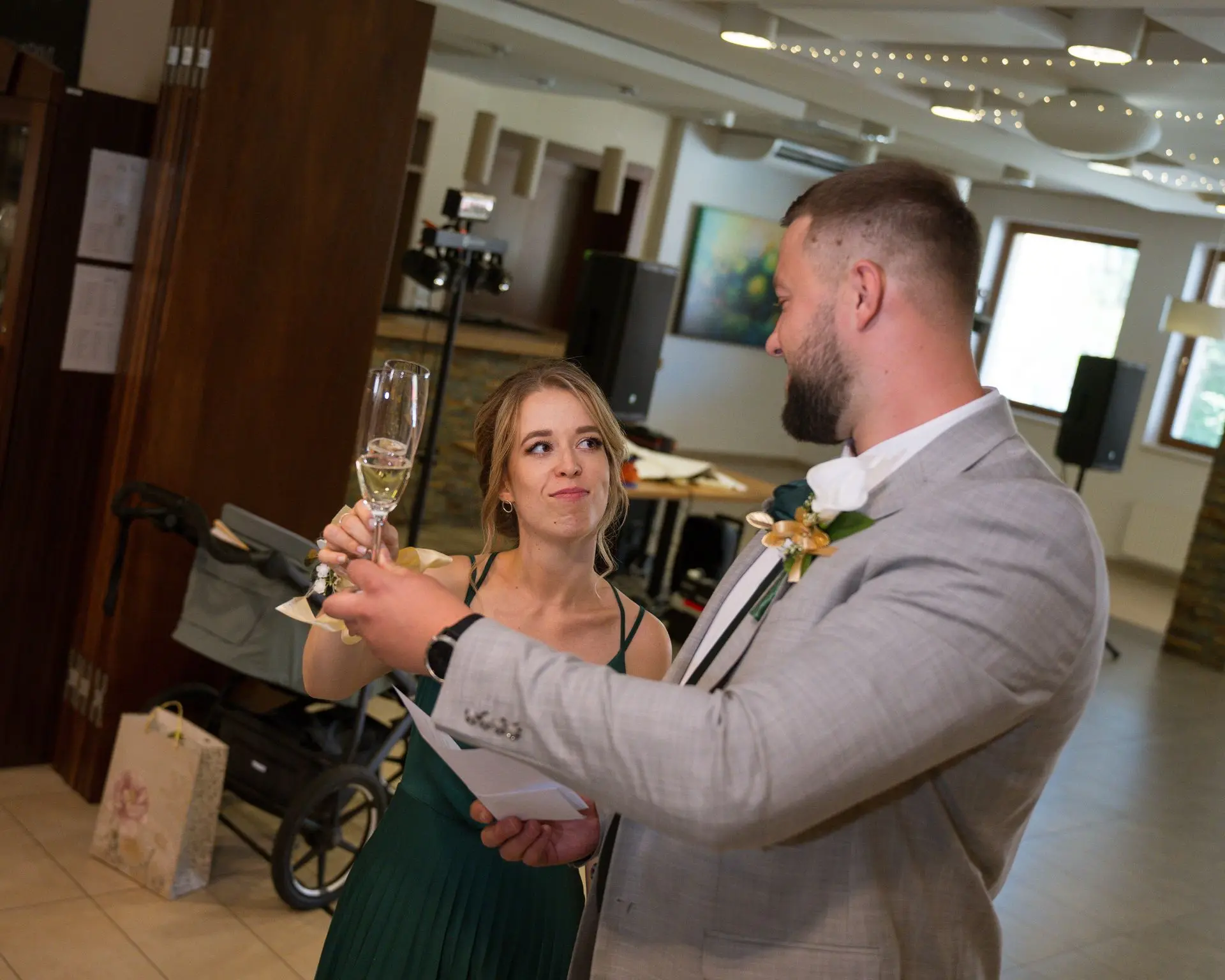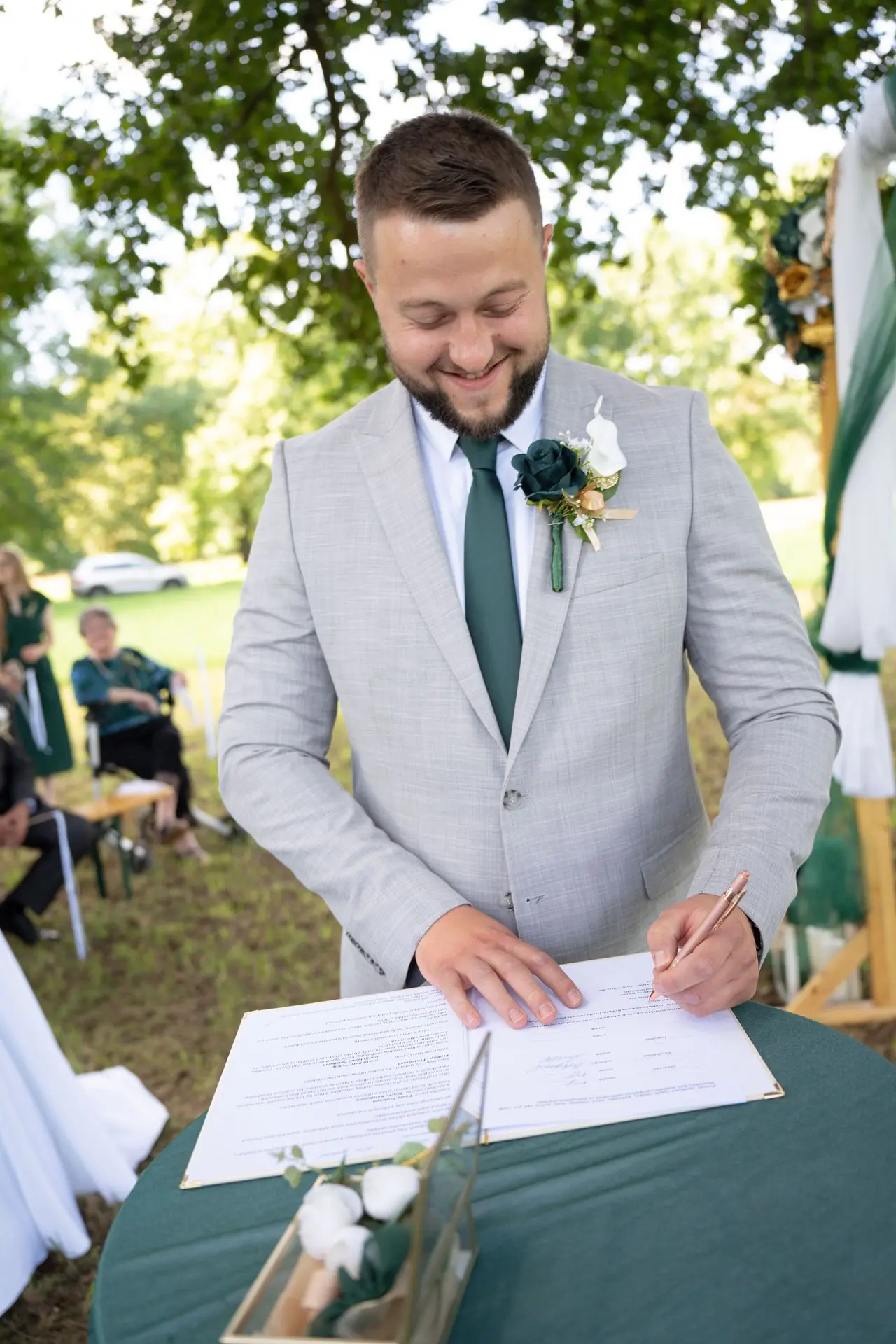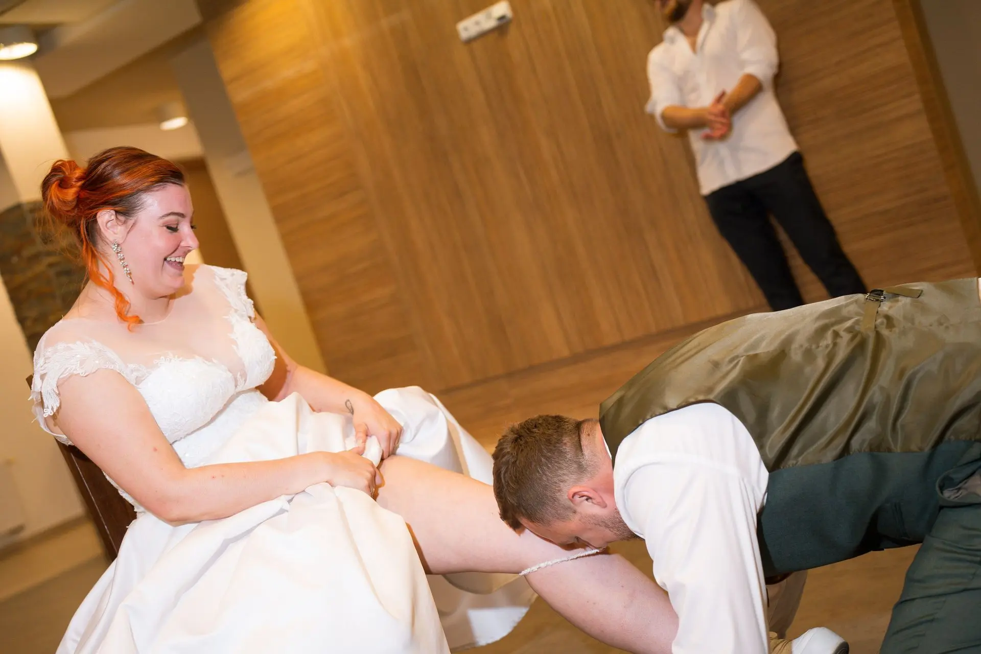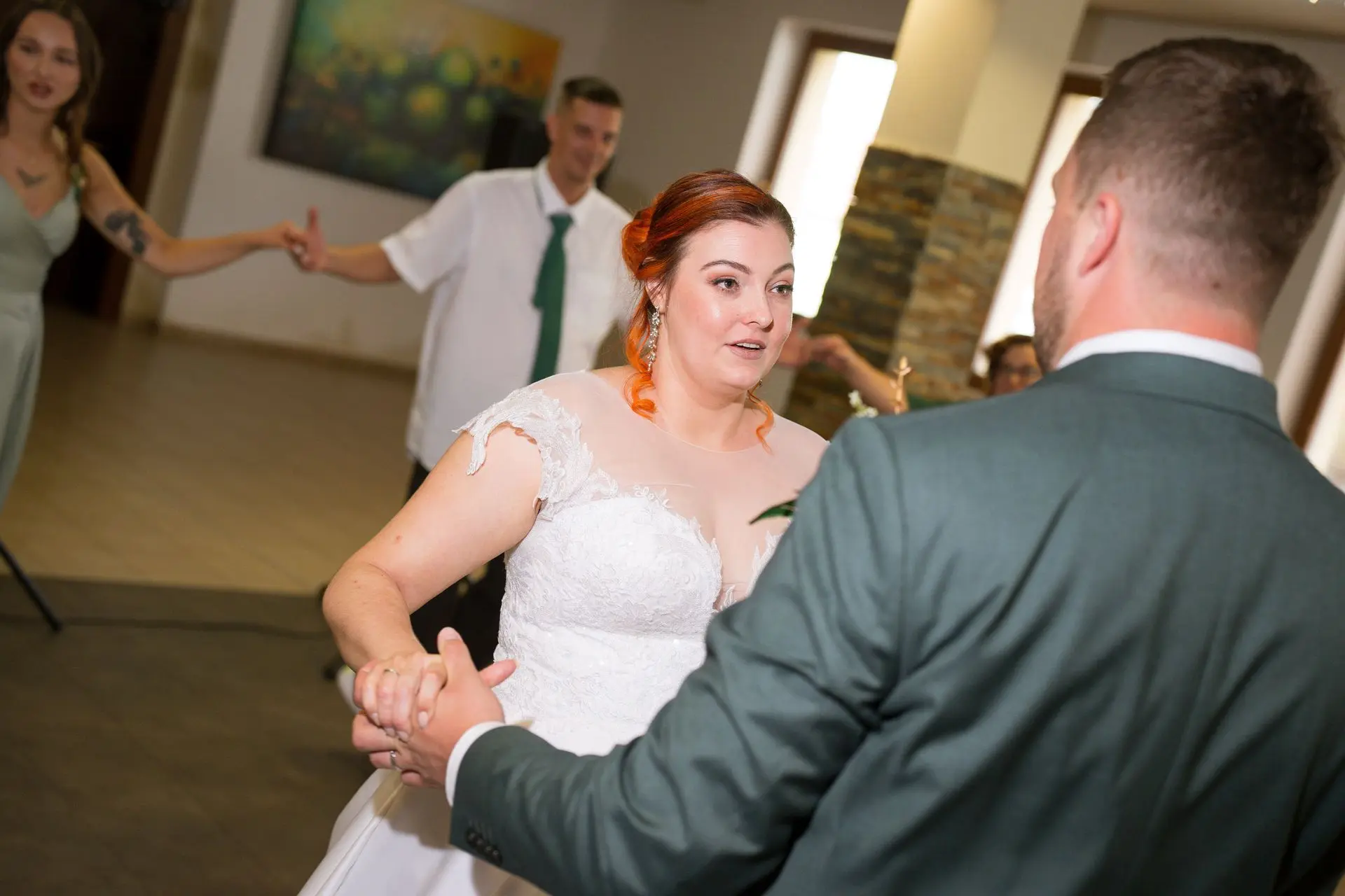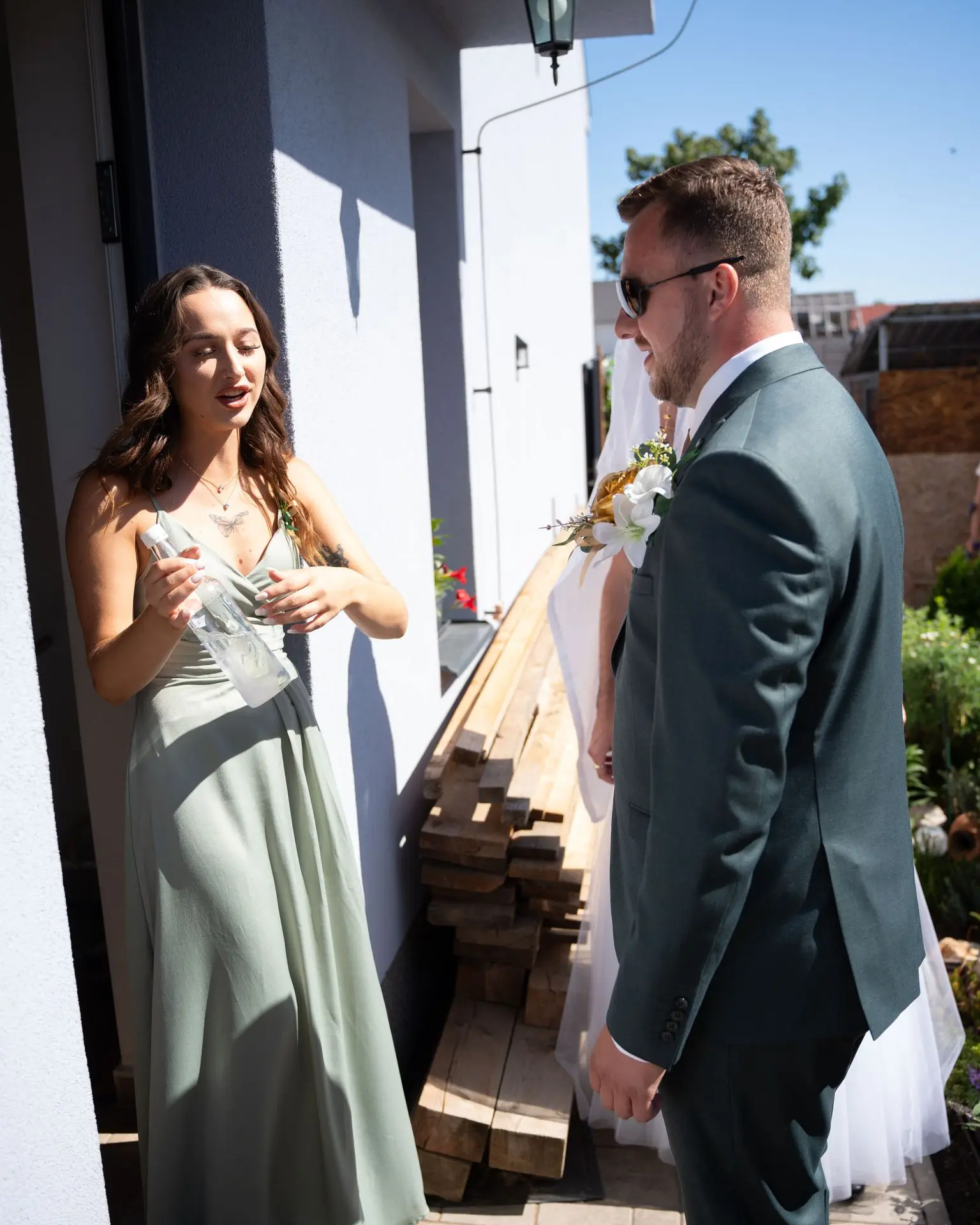 Svatba Marty a Pavla začala přípravami a nečekaným momentem s falešnou nevěstou, který odlehčil atmosféru hned na úvod. Nevěsta se k oltáři dostavila nevšedním způsobem, přijela totiž na své motorce. Obřad proběhl nedaleko Slovanského hradiště a celý den se nesl v klidném a osobitém duchu. V průběhu dne nechybělo také svatební fotografování na Hradišťku, kde na poslední chvíli vysvitly nádherné a jemné sluneční paprsky, které fotkám dodaly tu pravou atmosféru.