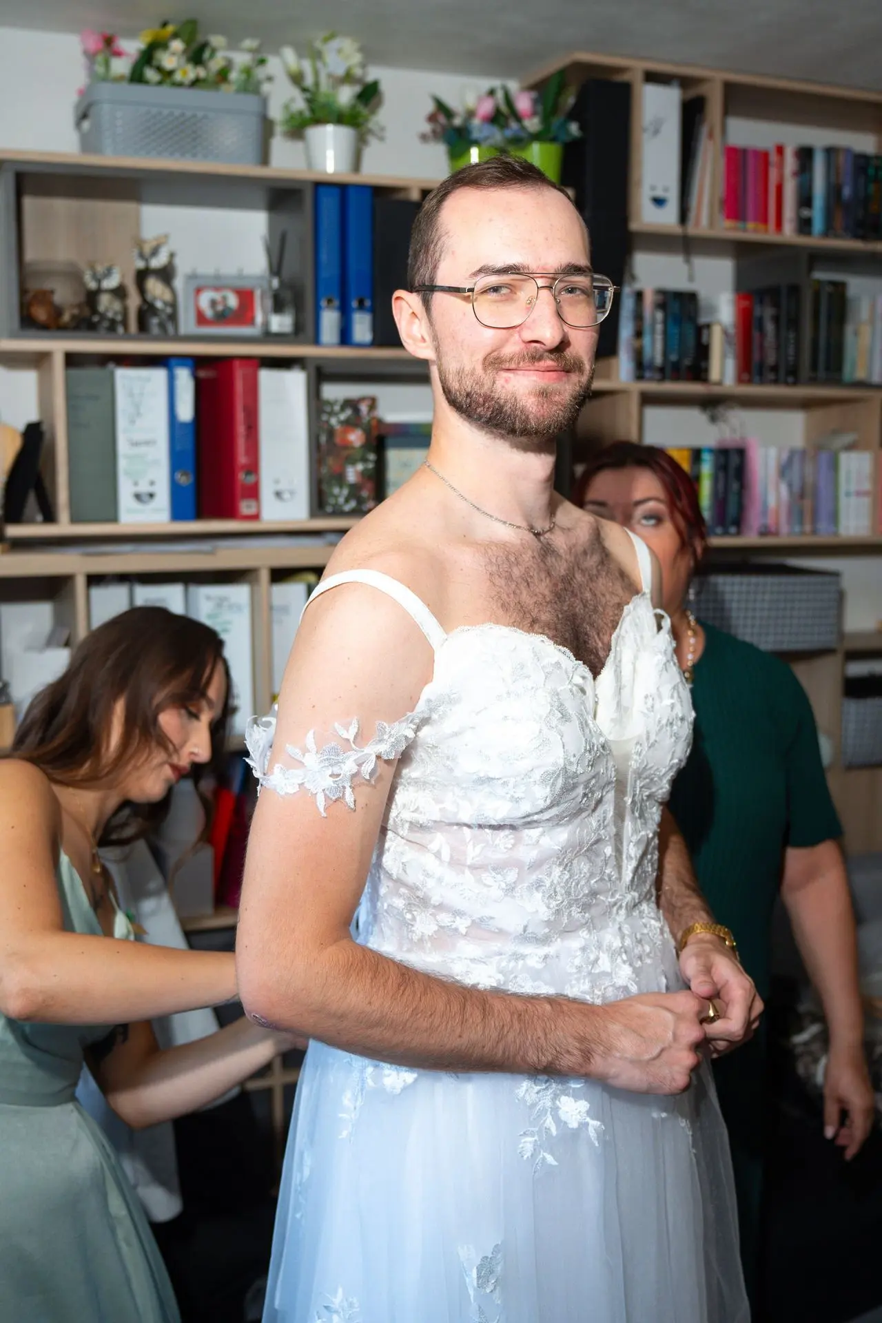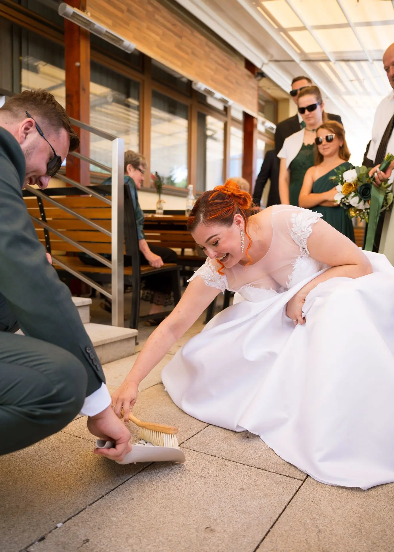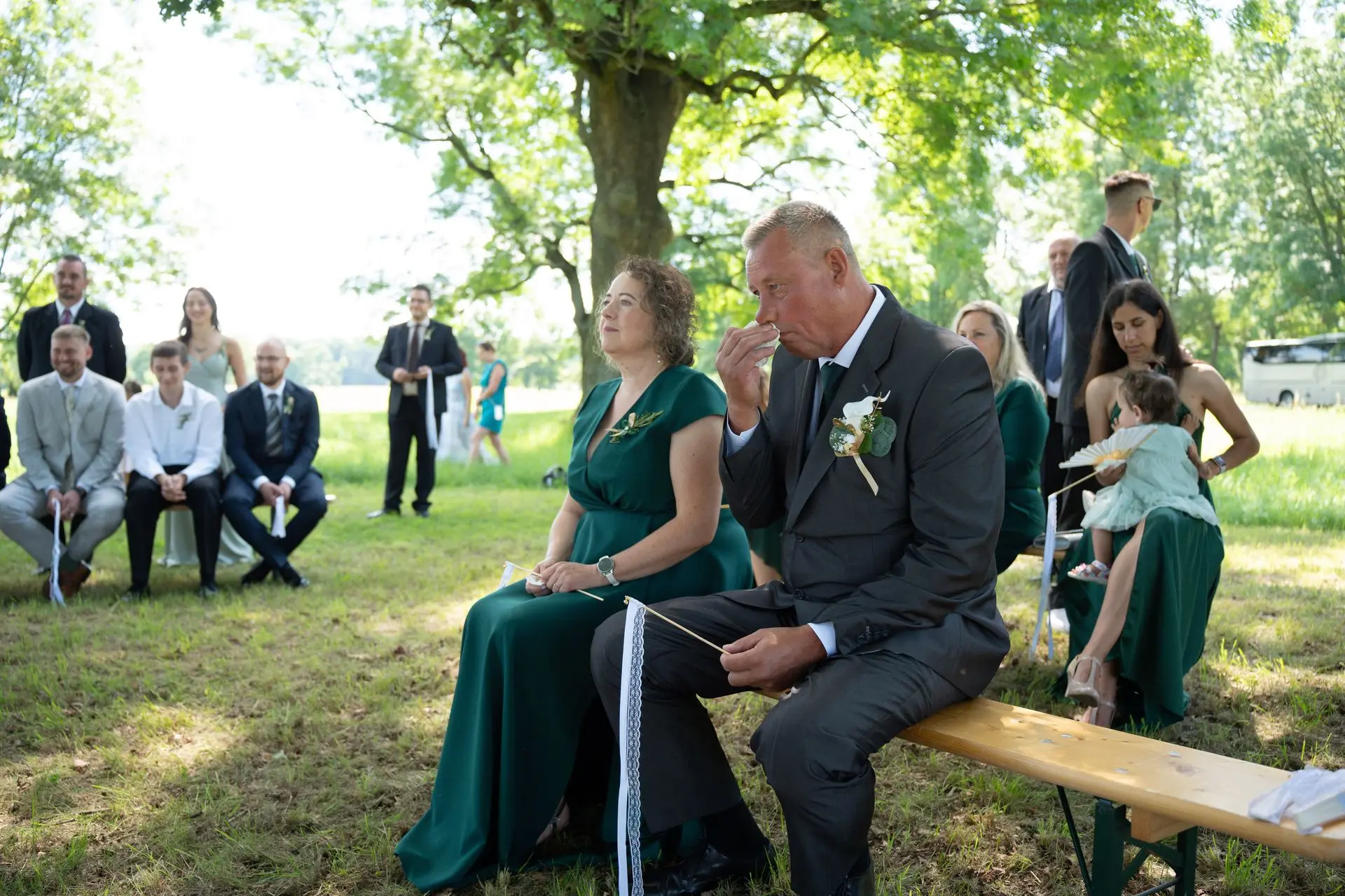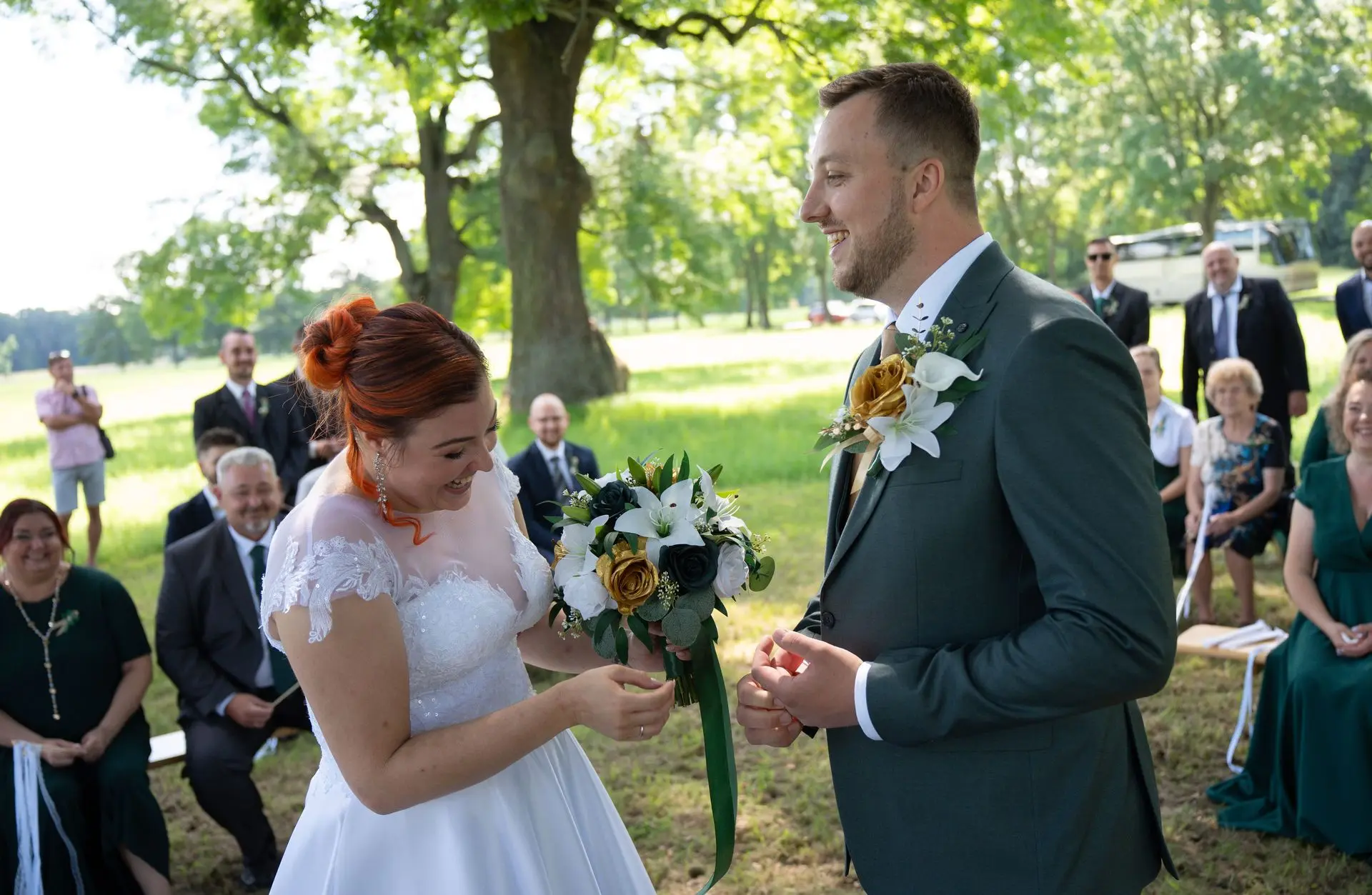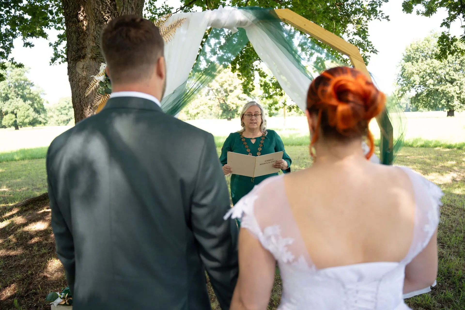 Svatba Marty a Pavla začala přípravami a nečekaným momentem s falešnou nevěstou, který odlehčil atmosféru hned na úvod. Nevěsta se k oltáři dostavila nevšedním způsobem, přijela totiž na své motorce. Obřad proběhl nedaleko Slovanského hradiště a celý den se nesl v klidném a osobitém duchu. V průběhu dne nechybělo také svatební fotografování na Hradišťku, kde na poslední chvíli vysvitly nádherné a jemné sluneční paprsky, které fotkám dodaly tu pravou atmosféru.