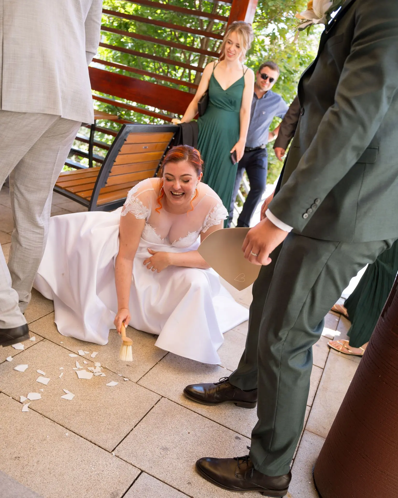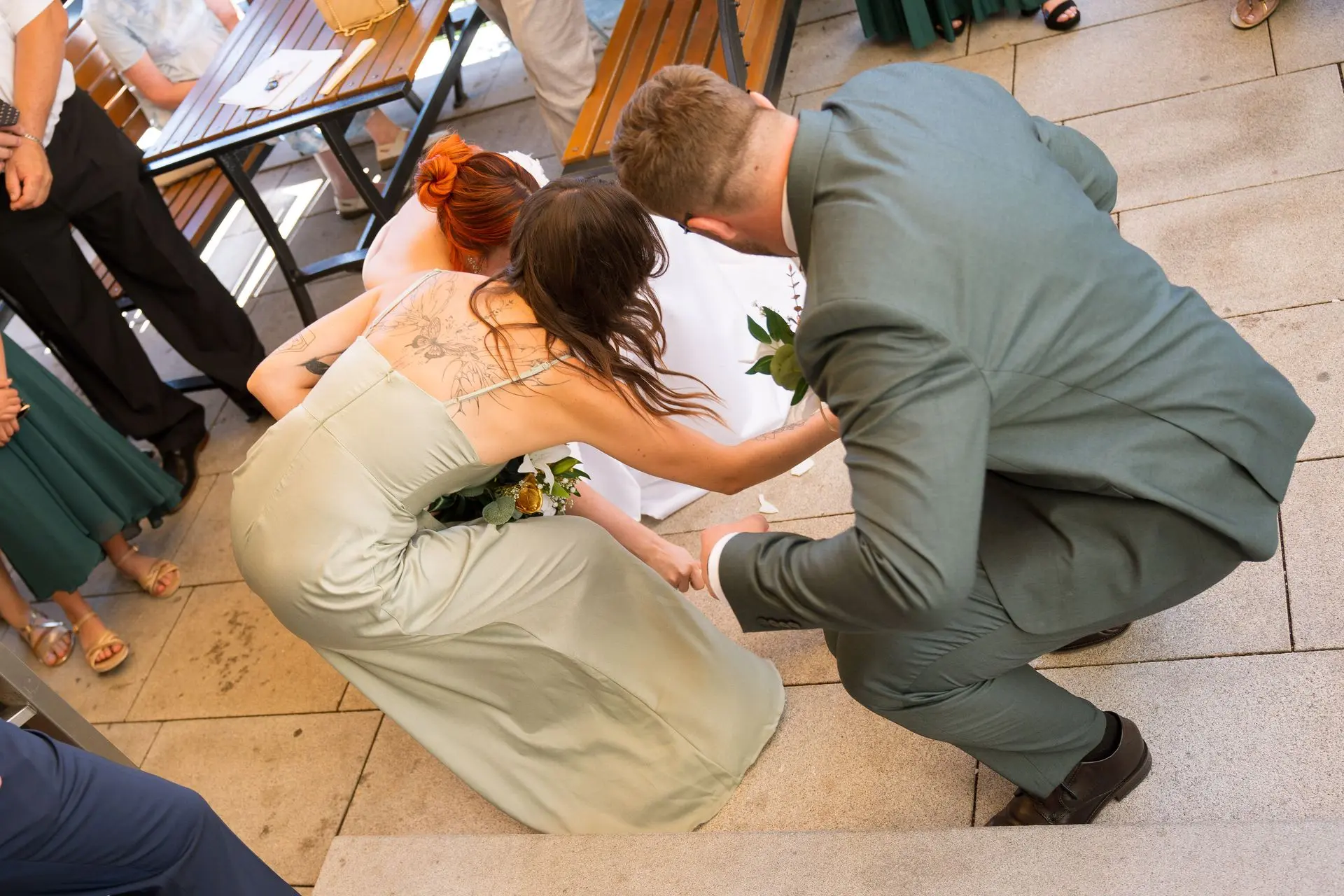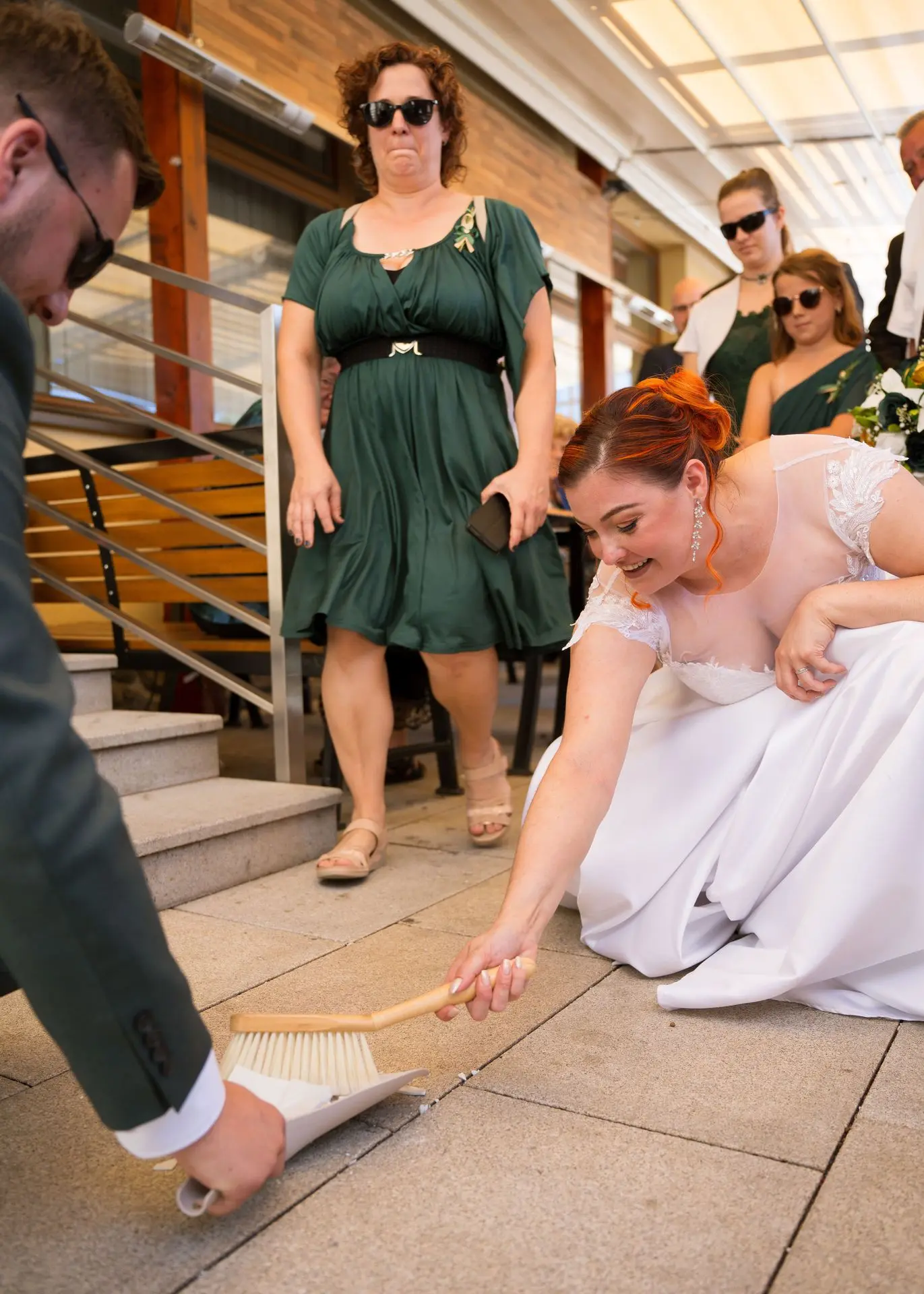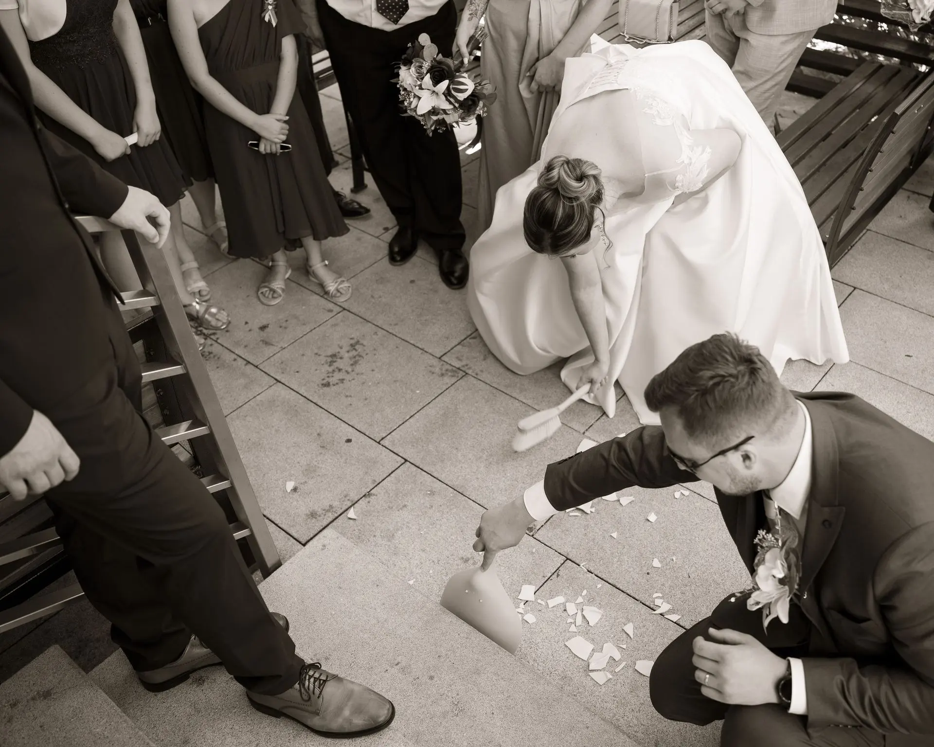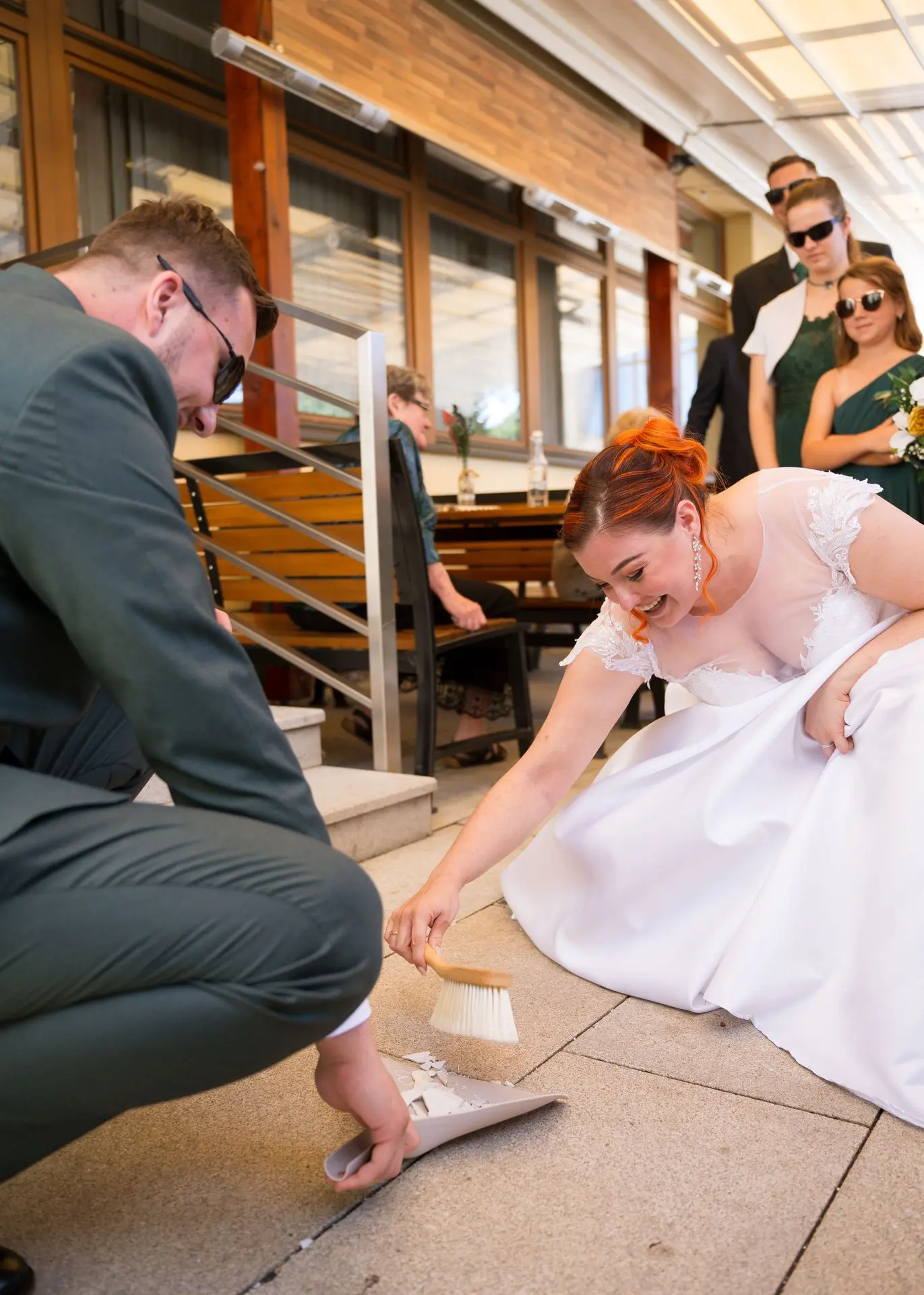 Svatba Marty a Pavla začala přípravami a nečekaným momentem s falešnou nevěstou, který odlehčil atmosféru hned na úvod. Nevěsta se k oltáři dostavila nevšedním způsobem, přijela totiž na své motorce. Obřad proběhl nedaleko Slovanského hradiště a celý den se nesl v klidném a osobitém duchu. V průběhu dne nechybělo také svatební fotografování na Hradišťku, kde na poslední chvíli vysvitly nádherné a jemné sluneční paprsky, které fotkám dodaly tu pravou atmosféru.