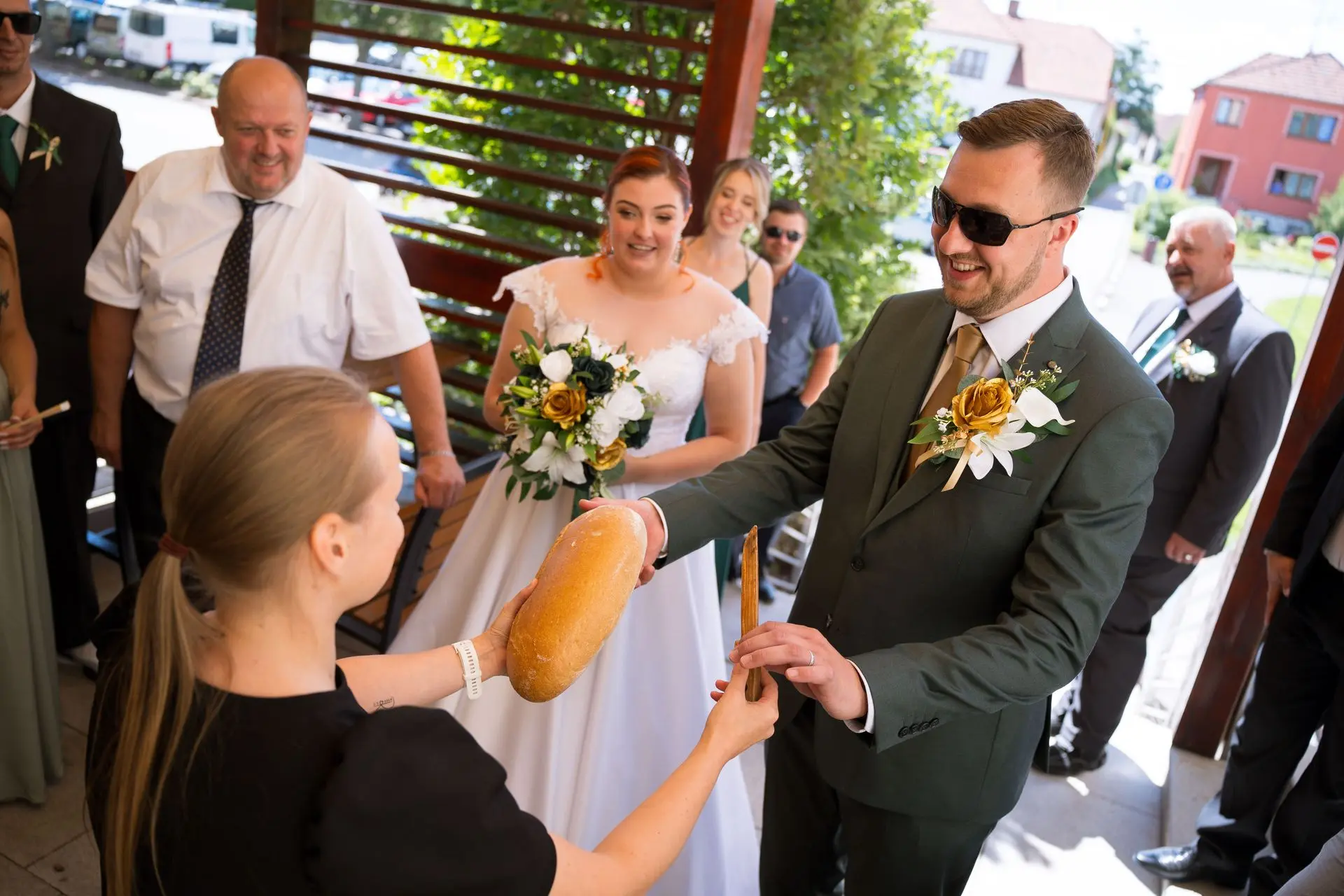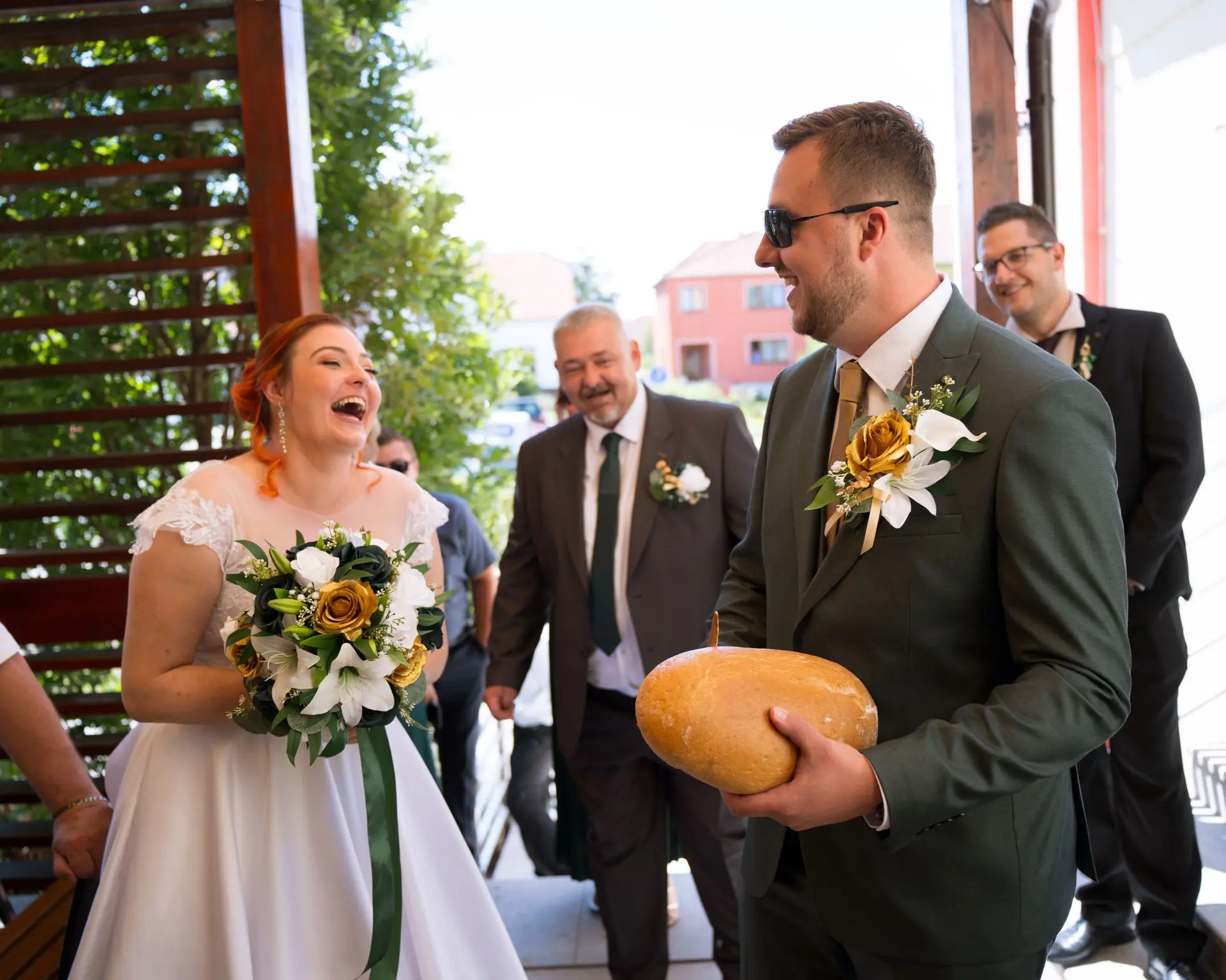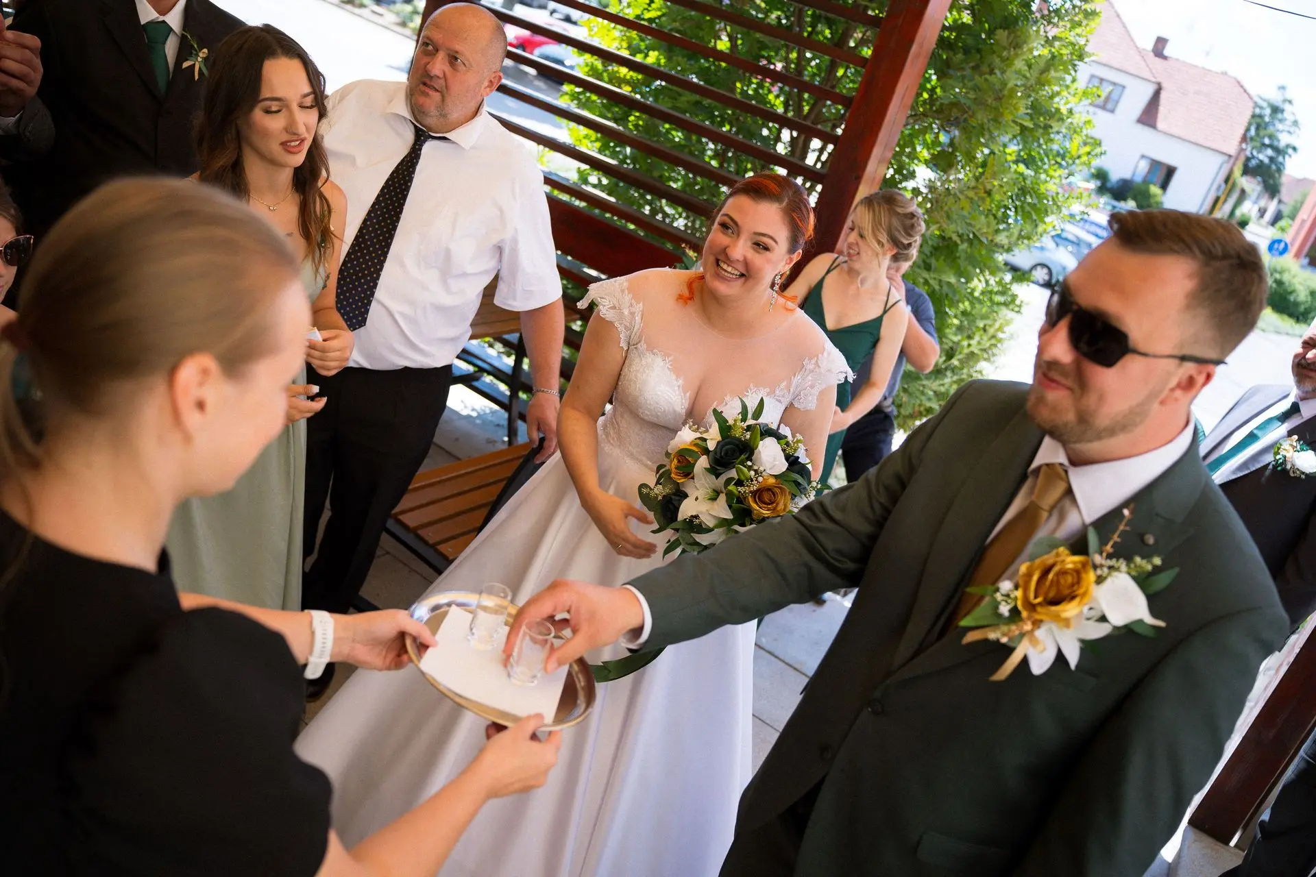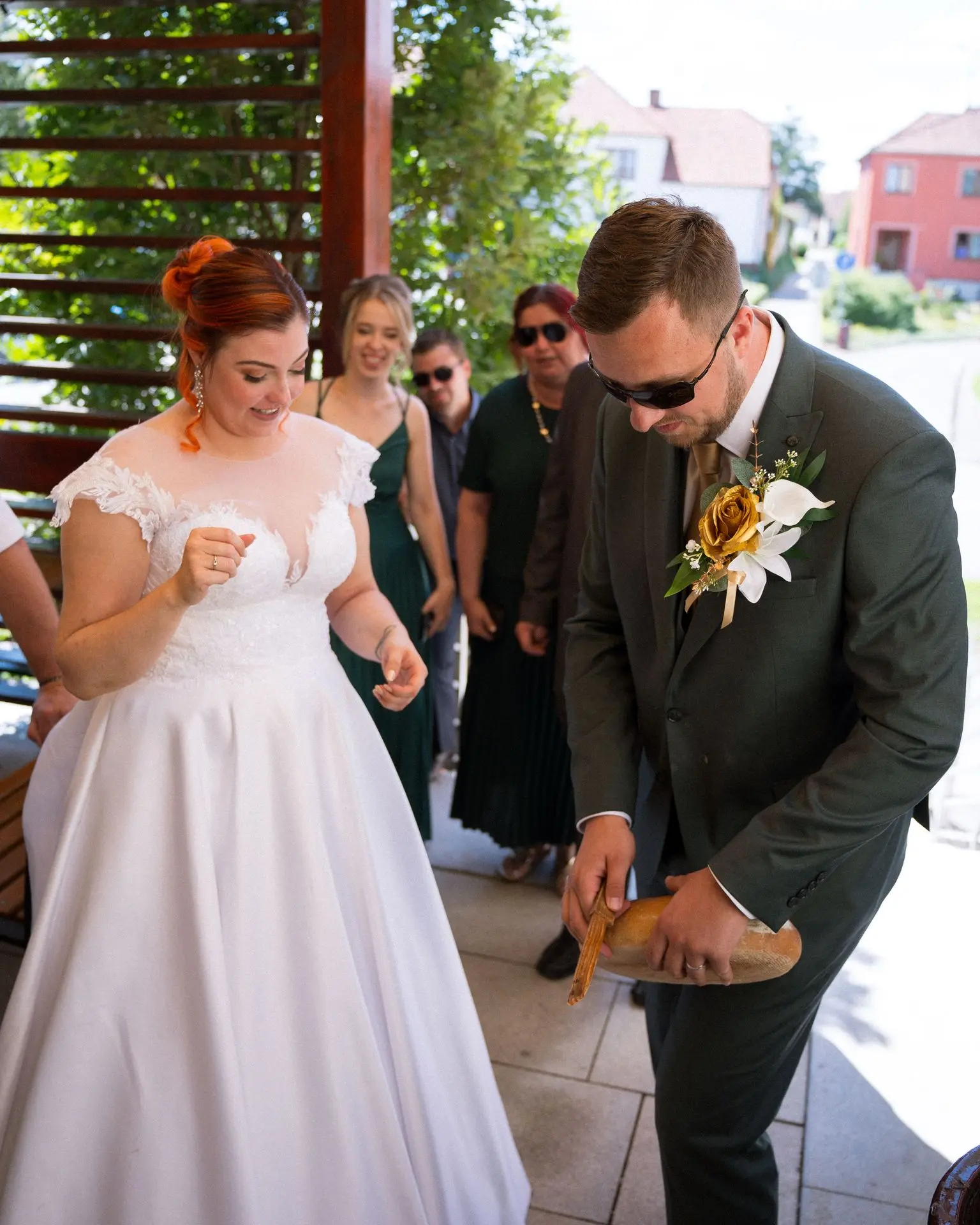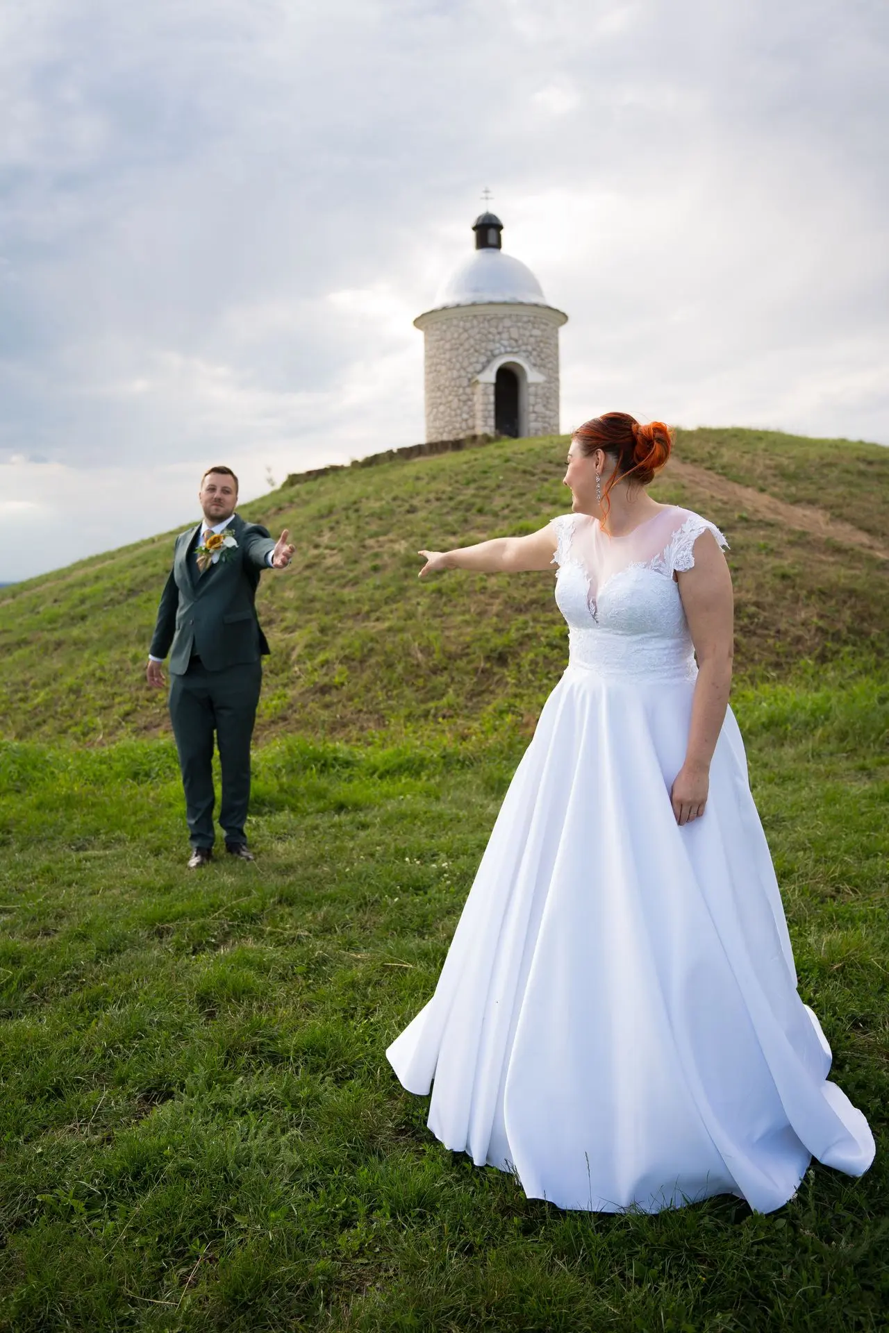 "Svatba Marty a Pavla začala přípravami a nečekaným momentem s falešnou nevěstou, který odlehčil atmosféru hned na úvod. Nevěsta se k oltáři dostavila nevšedním způsobem, přijela totiž na své motorce. Obřad proběhl nedaleko Slovanského hradiště a celý den se nesl v klidném a osobitém duchu. V průběhu dne nechybělo také svatební fotografování na Hradišťku, kde na poslední chvíli vysvitly nádherné a jemné sluneční paprsky, které fotkám dodaly tu pravou atmosféru."