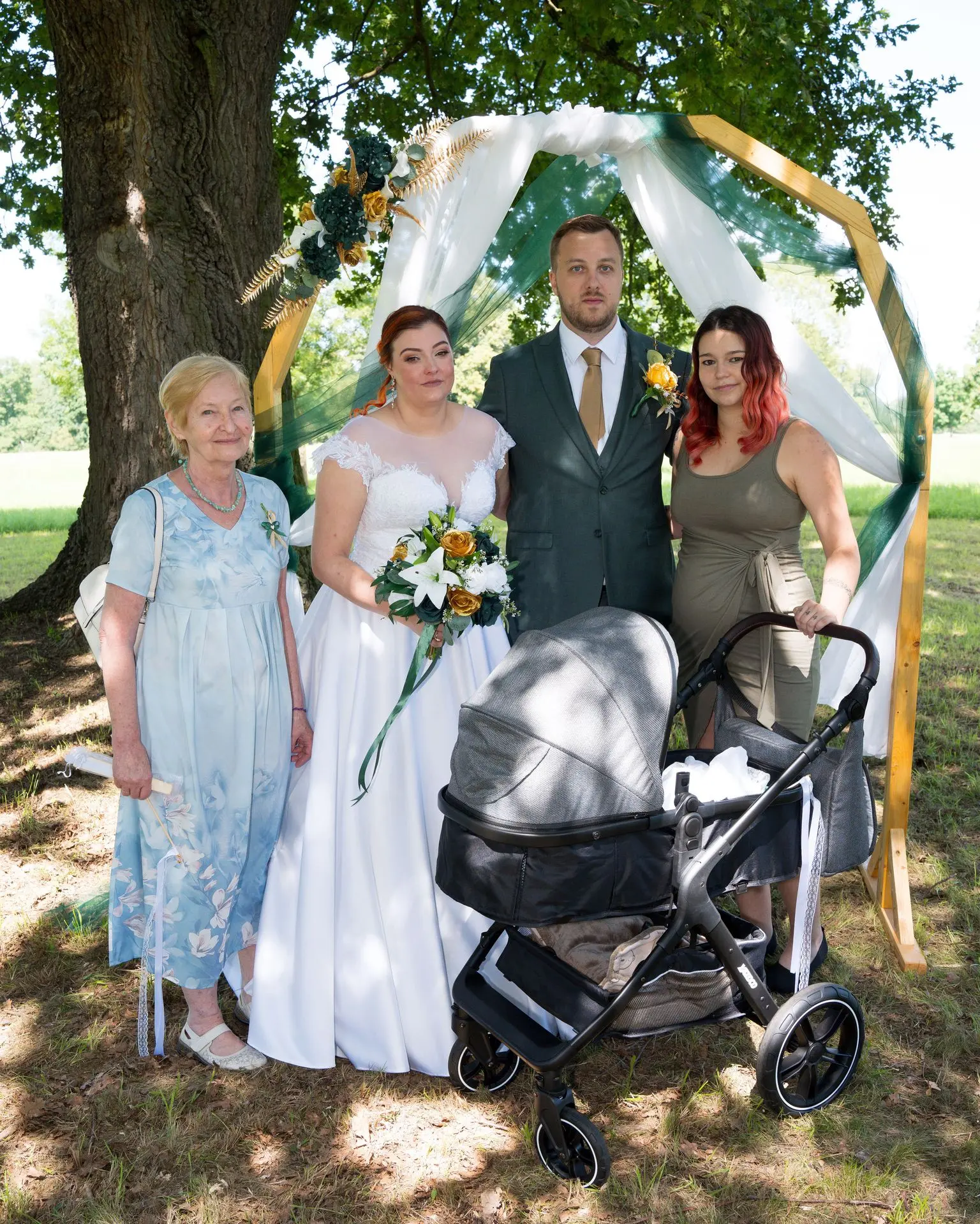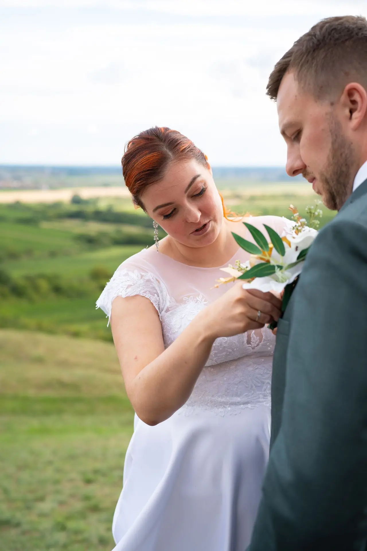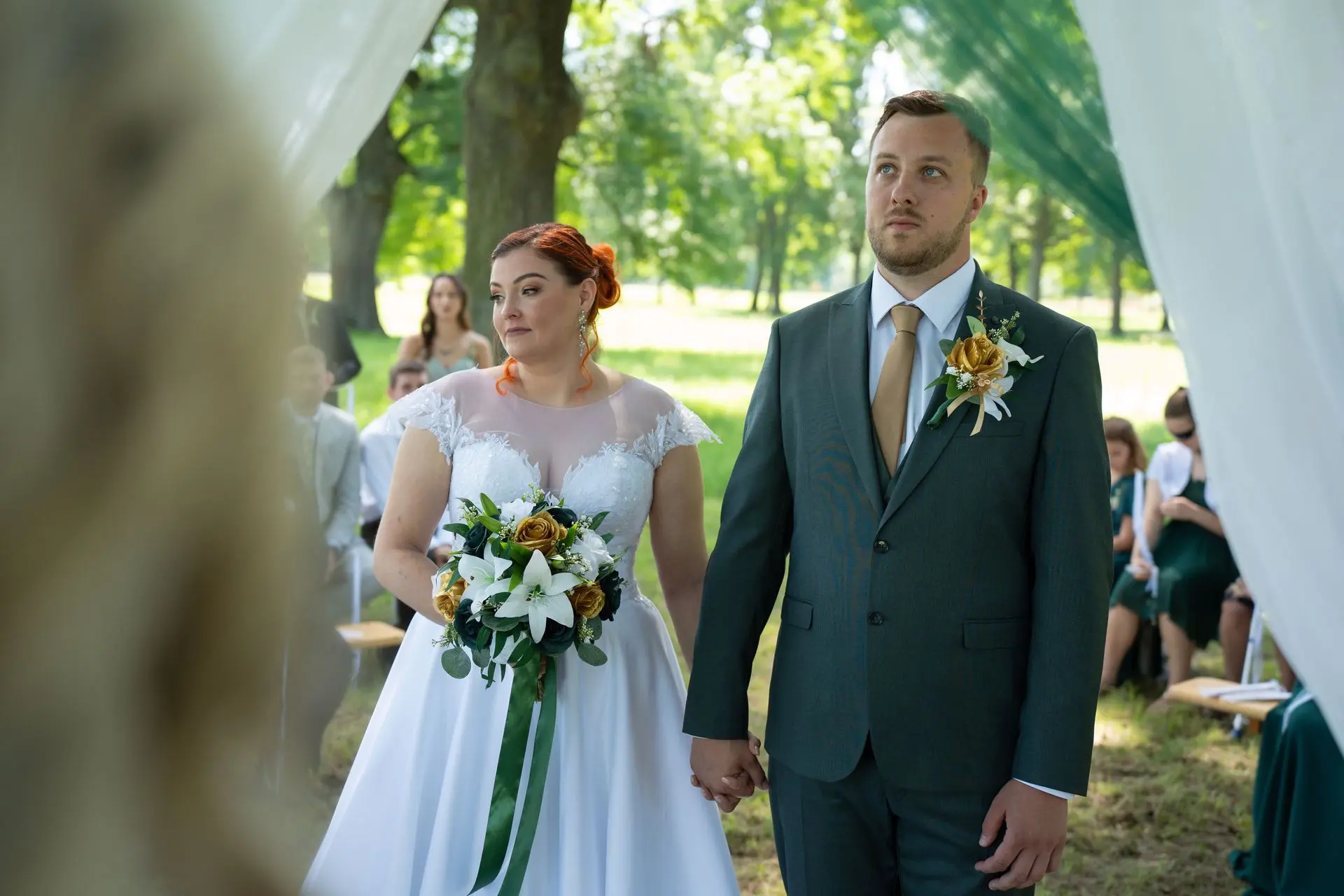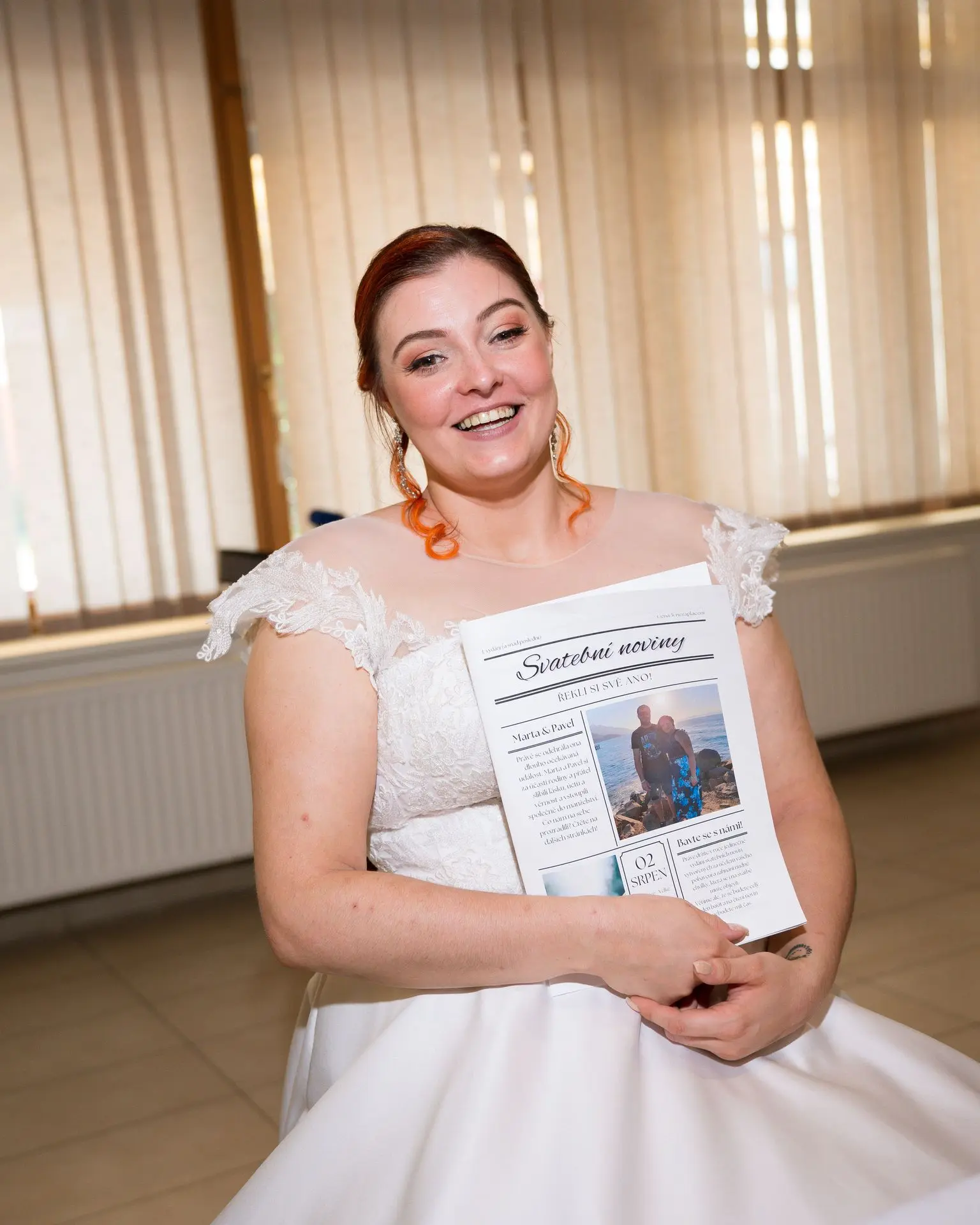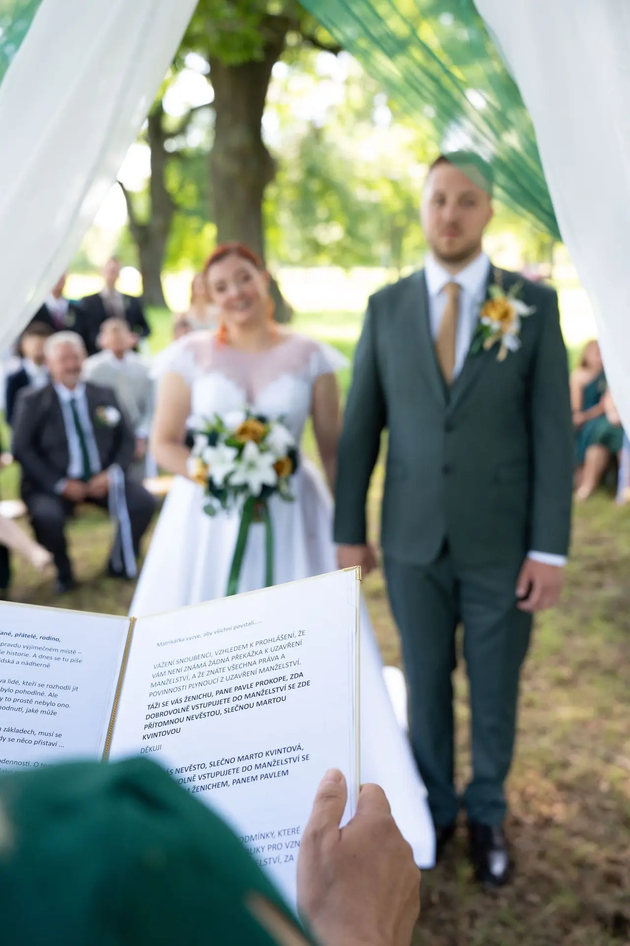 "Svatba Marty a Pavla začala přípravami a nečekaným momentem s falešnou nevěstou, který odlehčil atmosféru hned na úvod. Nevěsta se k oltáři dostavila nevšedním způsobem, přijela totiž na své motorce. Obřad proběhl nedaleko Slovanského hradiště a celý den se nesl v klidném a osobitém duchu. V průběhu dne nechybělo také svatební fotografování na Hradišťku, kde na poslední chvíli vysvitly nádherné a jemné sluneční paprsky, které fotkám dodaly tu pravou atmosféru."