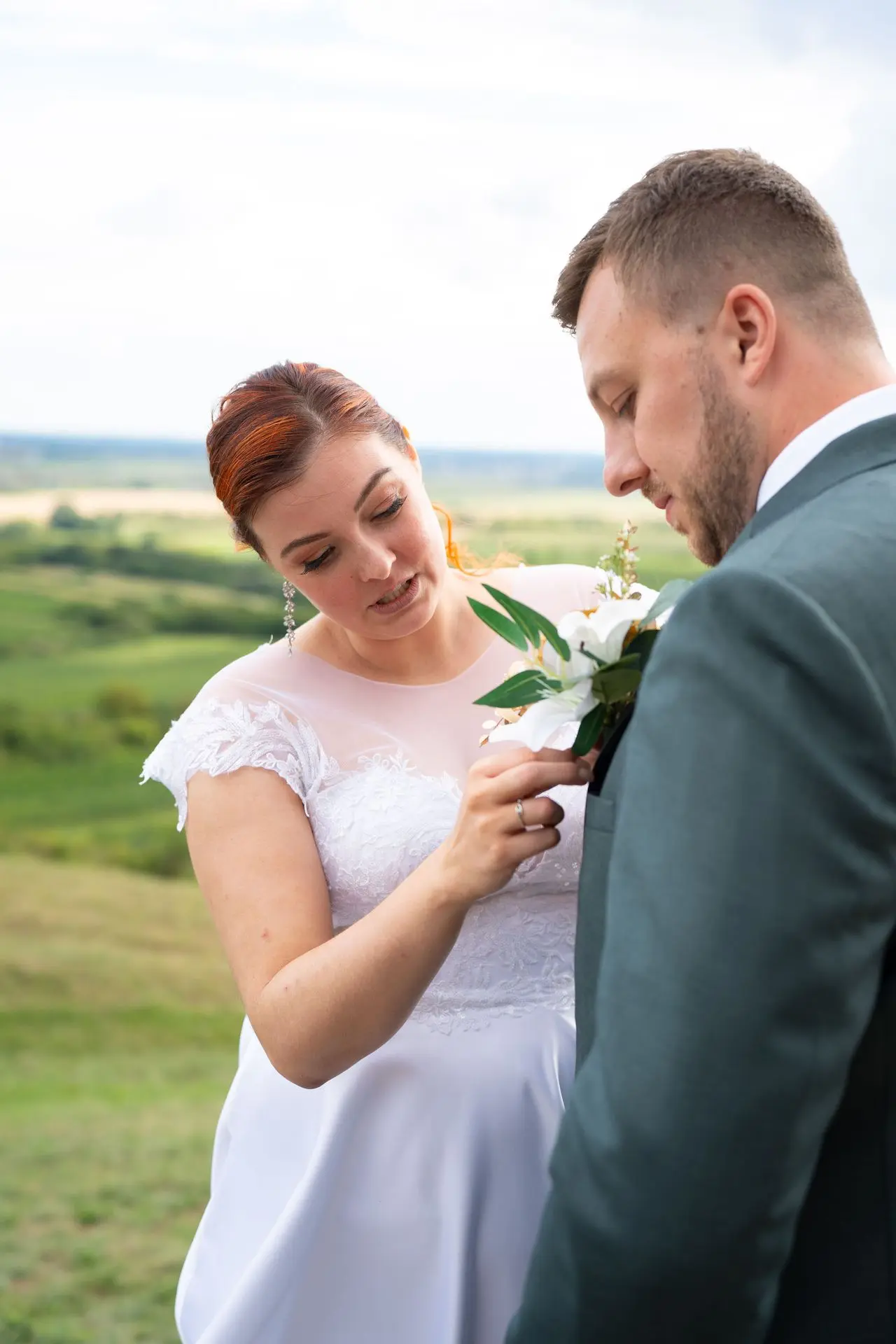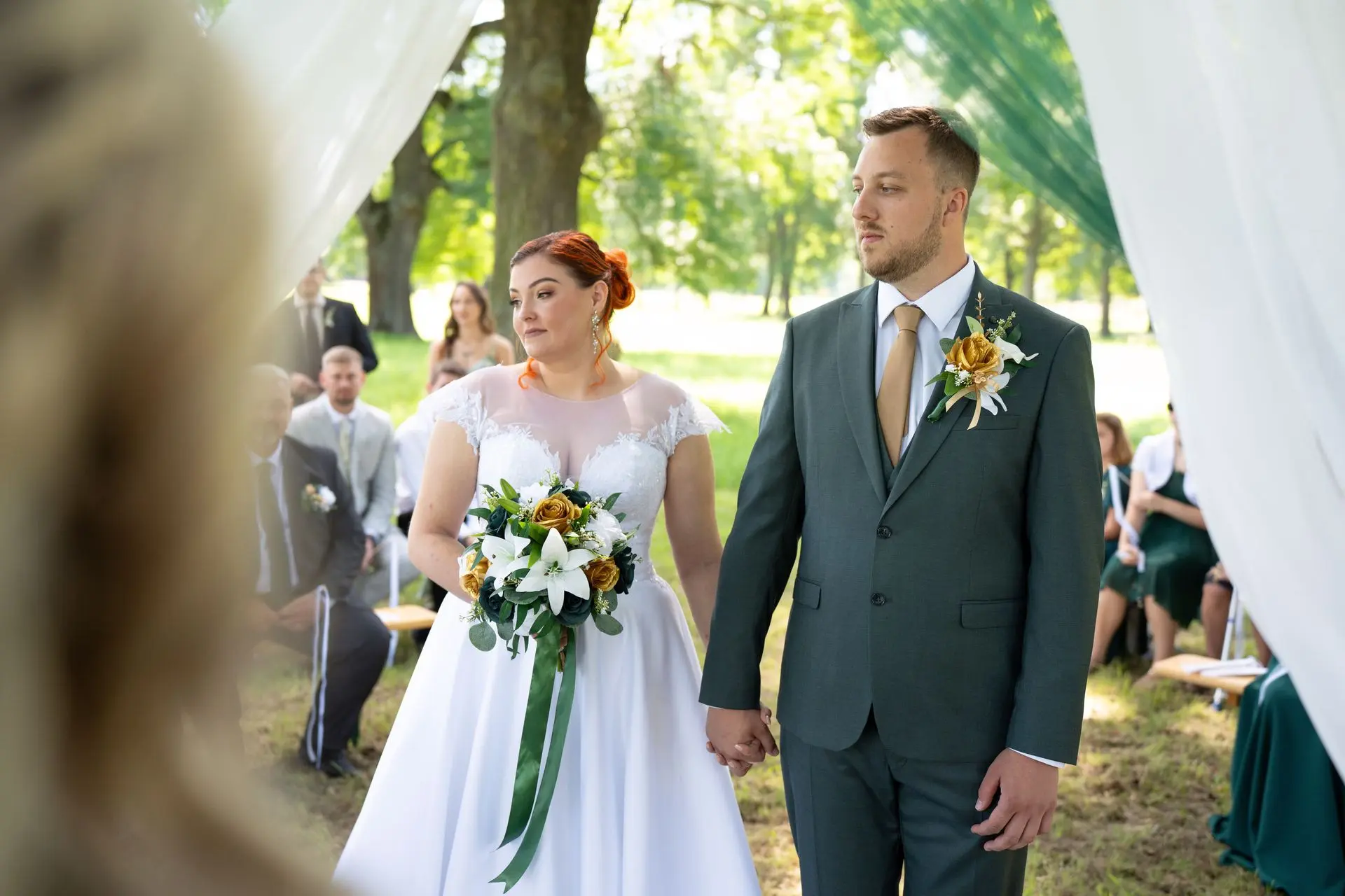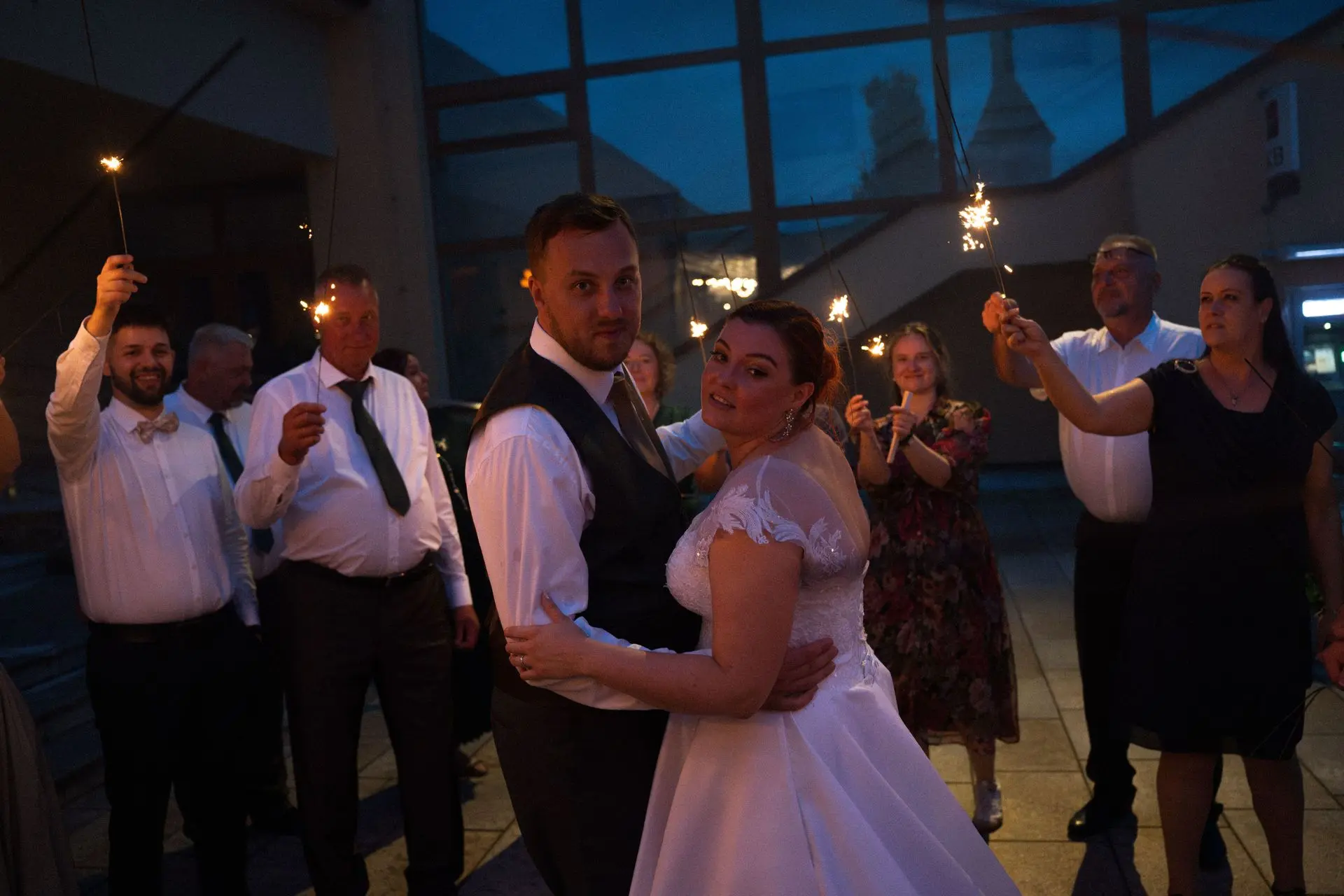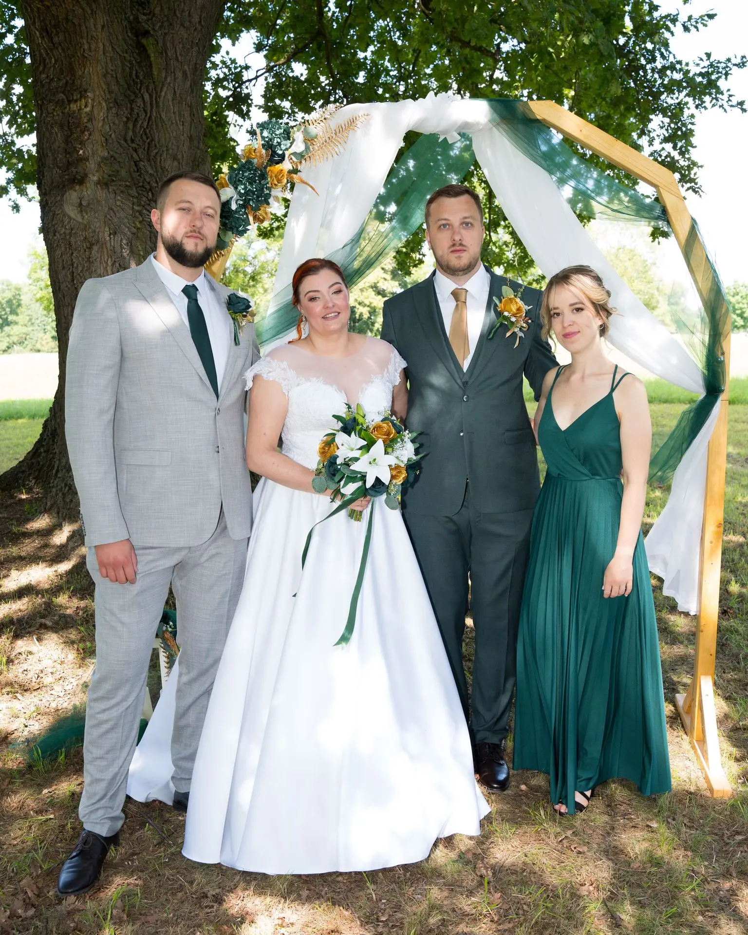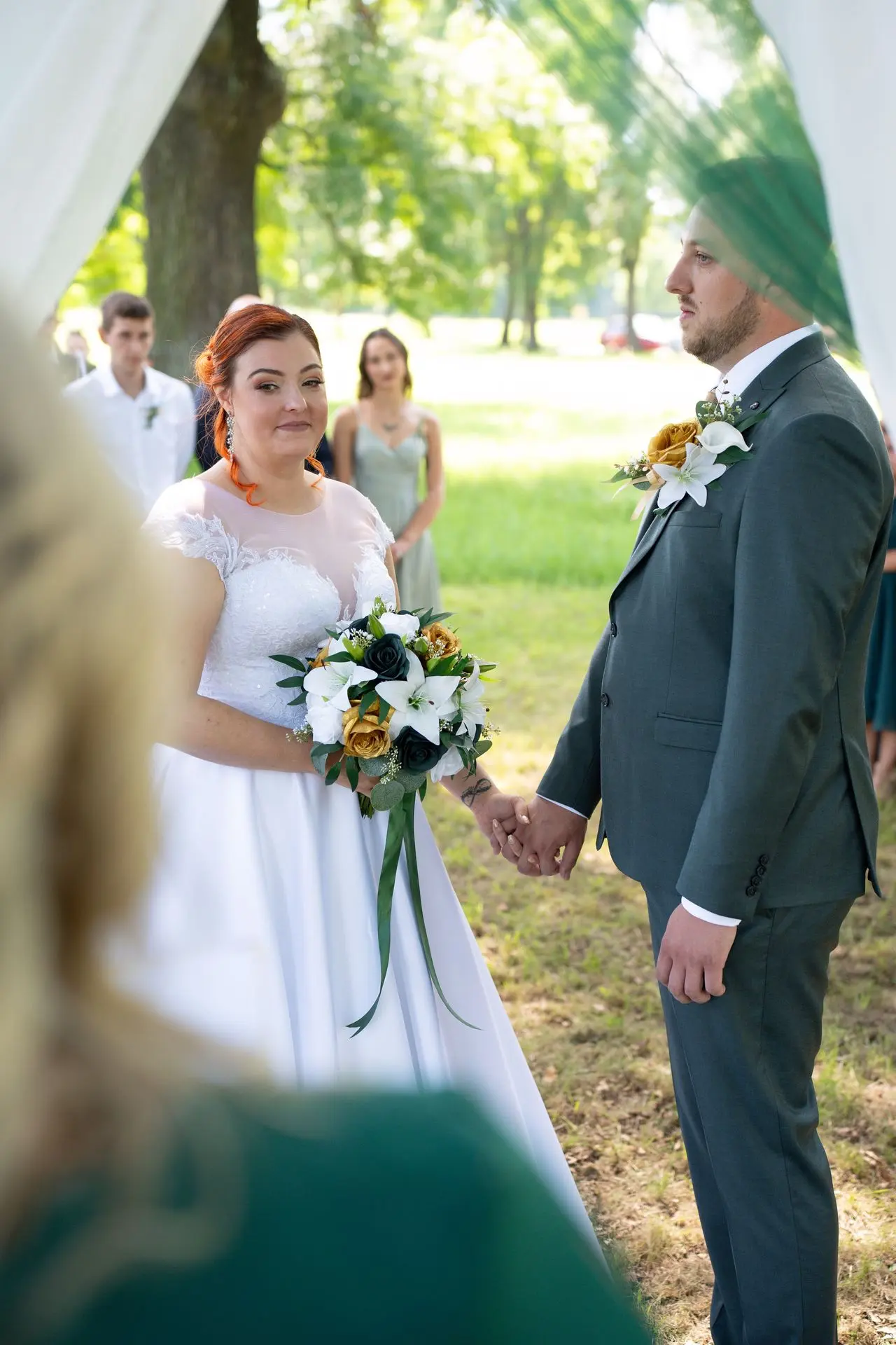 "Svatba Marty a Pavla začala přípravami a nečekaným momentem s falešnou nevěstou, který odlehčil atmosféru hned na úvod. Nevěsta se k oltáři dostavila nevšedním způsobem, přijela totiž na své motorce. Obřad proběhl nedaleko Slovanského hradiště a celý den se nesl v klidném a osobitém duchu. V průběhu dne nechybělo také svatební fotografování na Hradišťku, kde na poslední chvíli vysvitly nádherné a jemné sluneční paprsky, které fotkám dodaly tu pravou atmosféru."