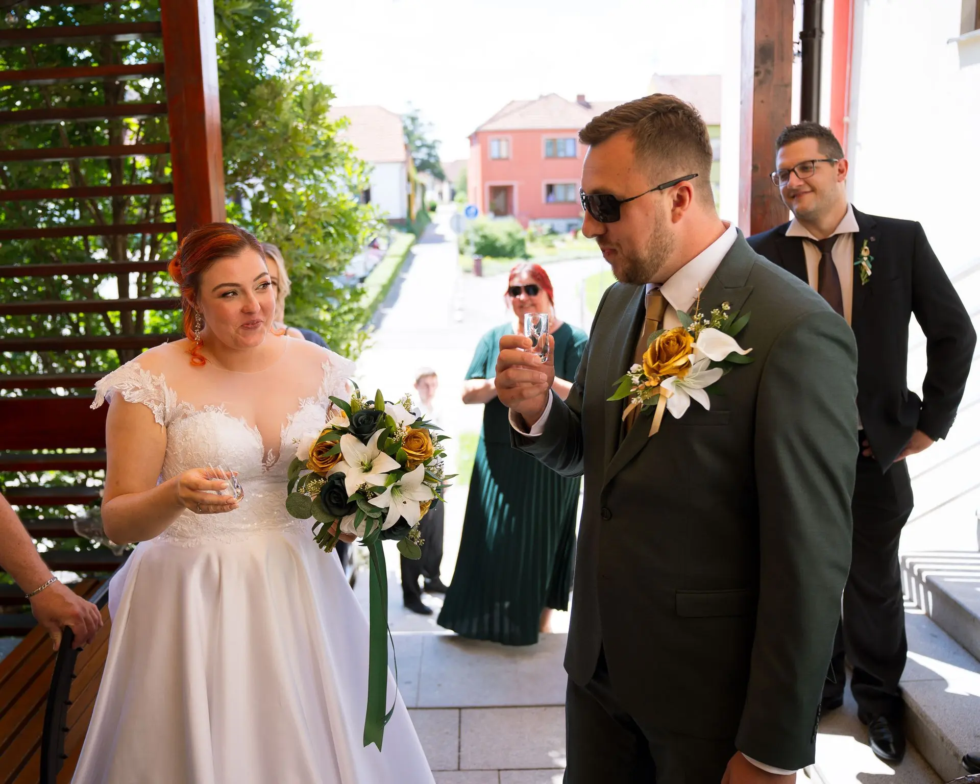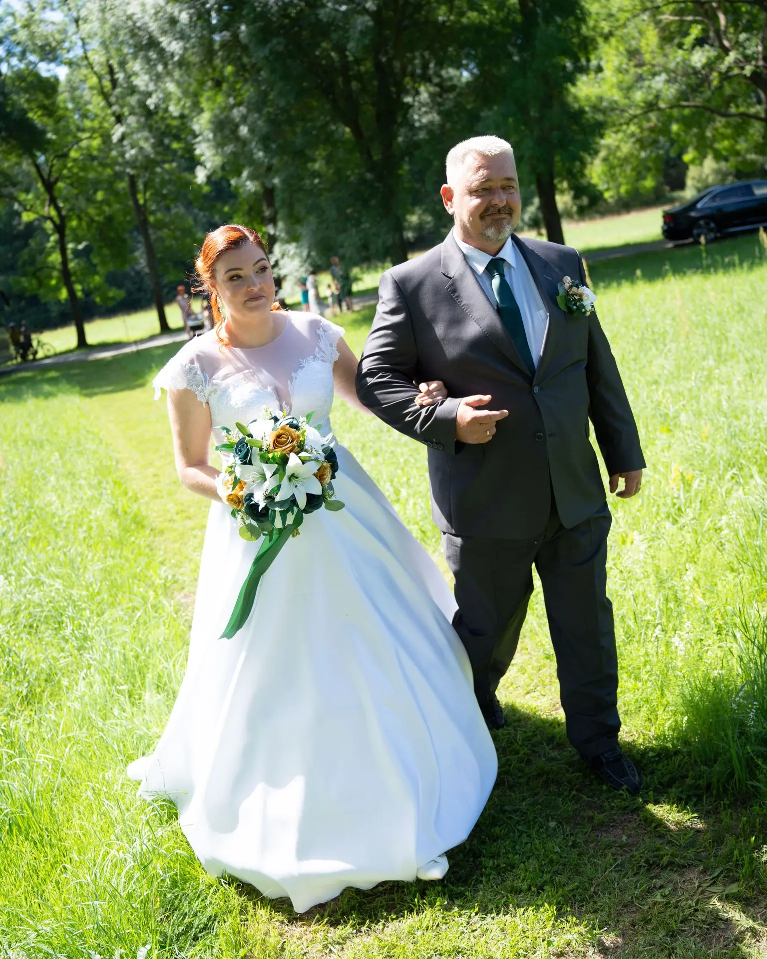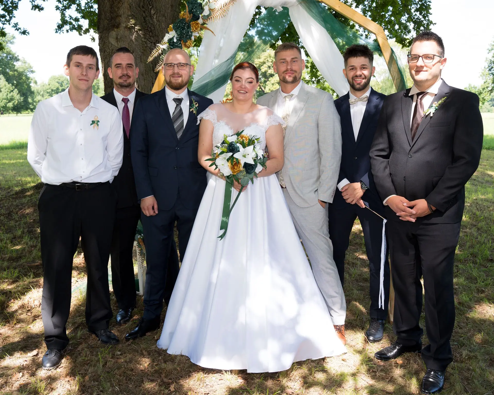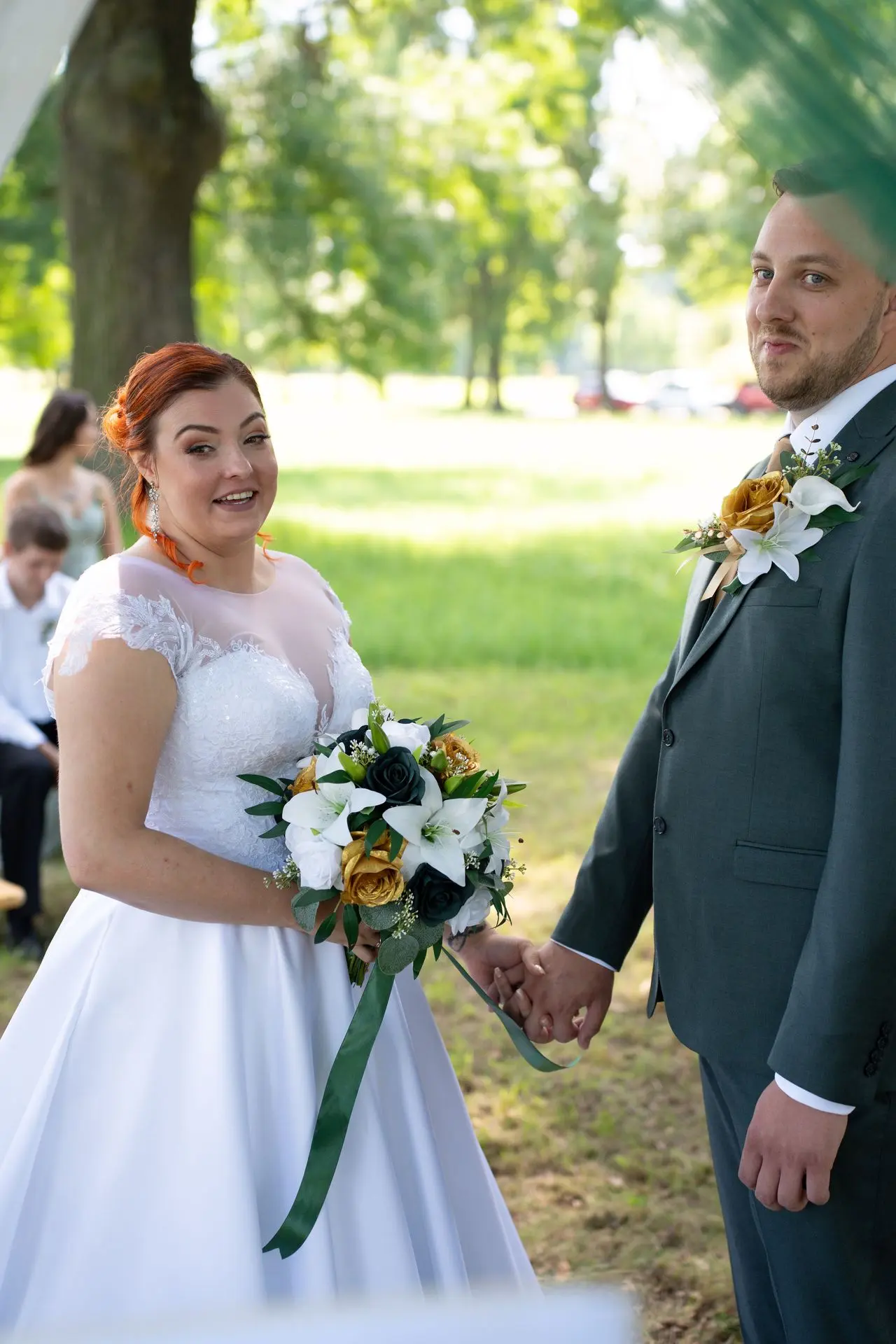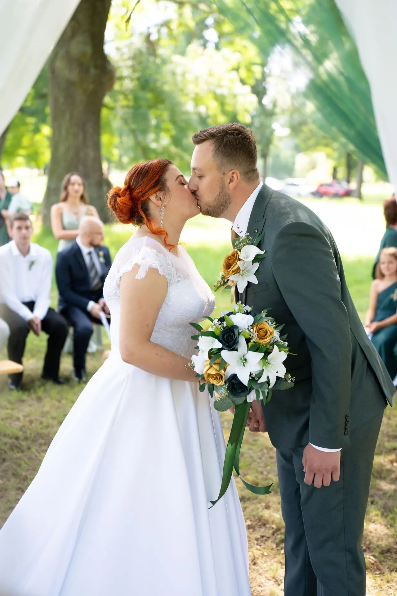 "Svatba Marty a Pavla začala přípravami a nečekaným momentem s falešnou nevěstou, který odlehčil atmosféru hned na úvod. Nevěsta se k oltáři dostavila nevšedním způsobem, přijela totiž na své motorce. Obřad proběhl nedaleko Slovanského hradiště a celý den se nesl v klidném a osobitém duchu. V průběhu dne nechybělo také svatební fotografování na Hradišťku, kde na poslední chvíli vysvitly nádherné a jemné sluneční paprsky, které fotkám dodaly tu pravou atmosféru."