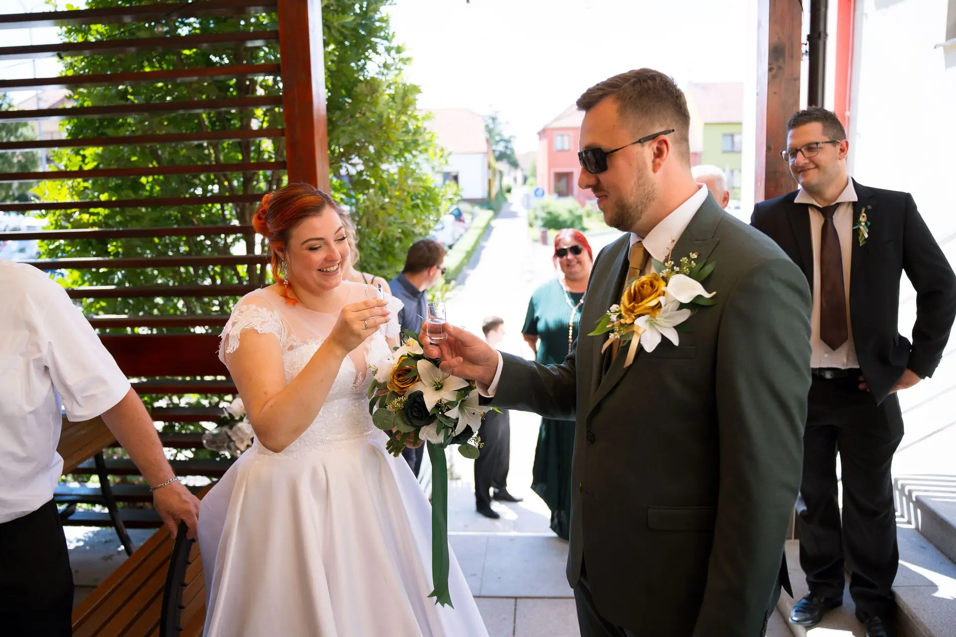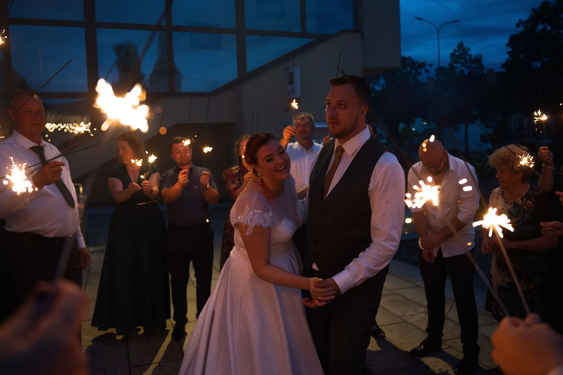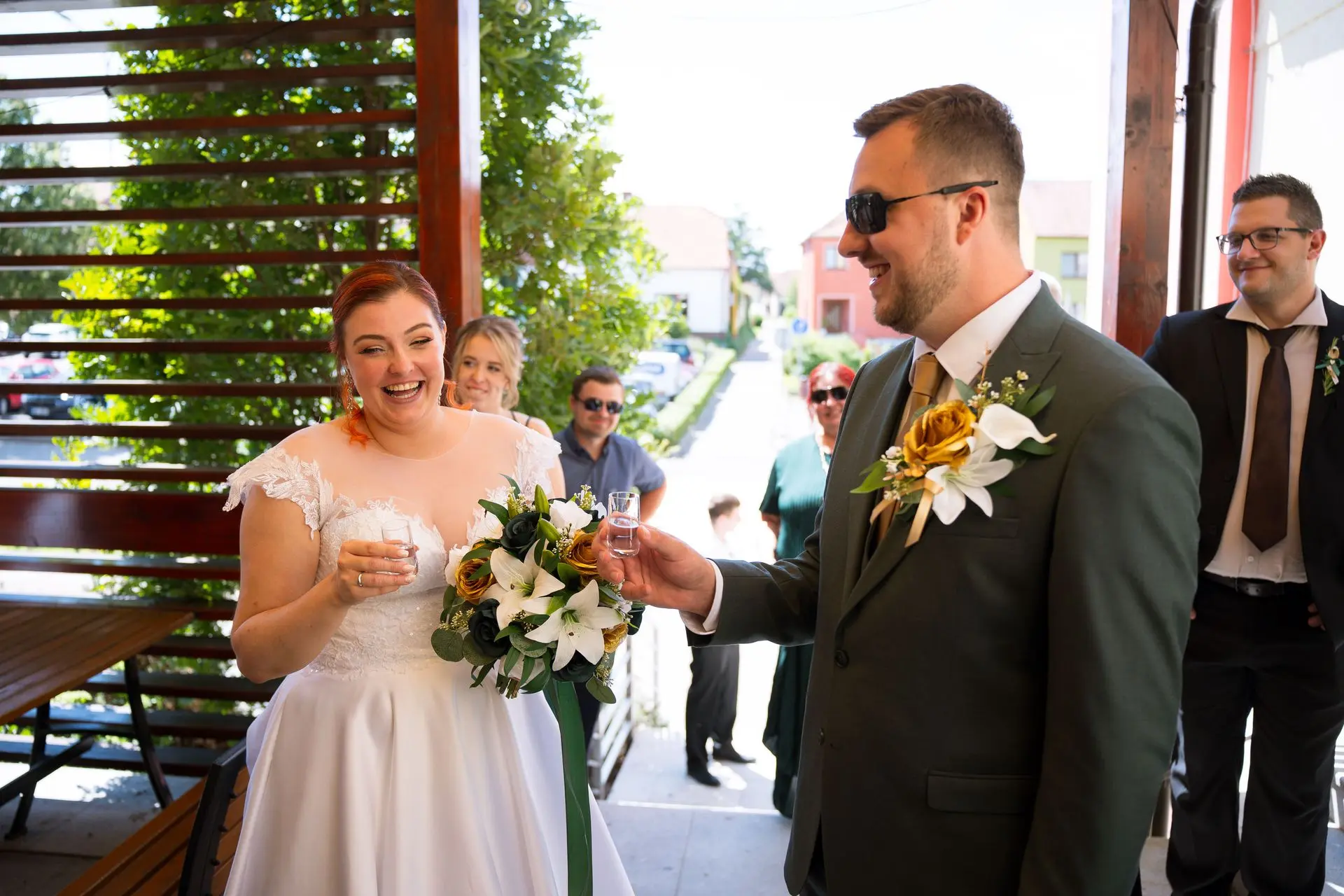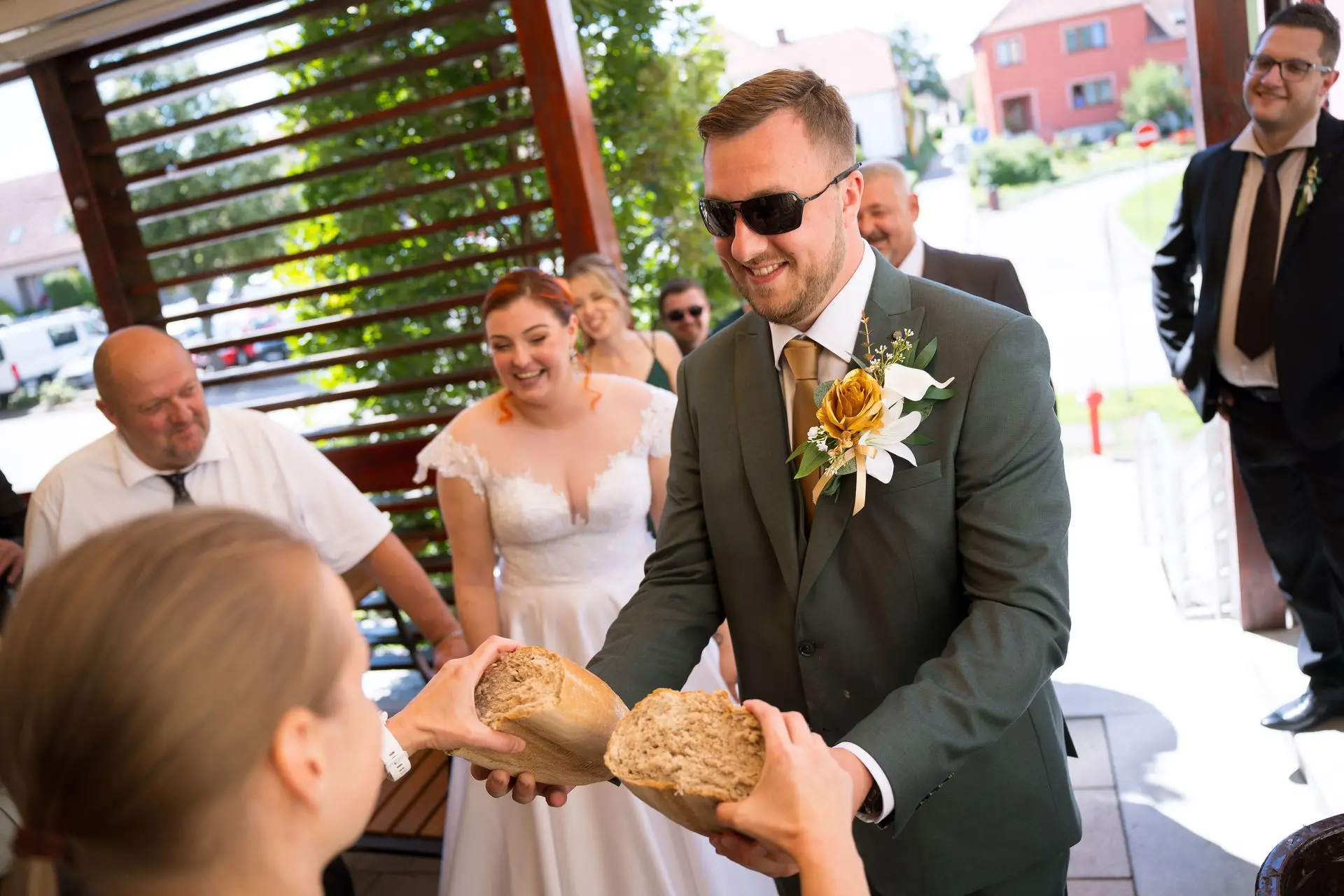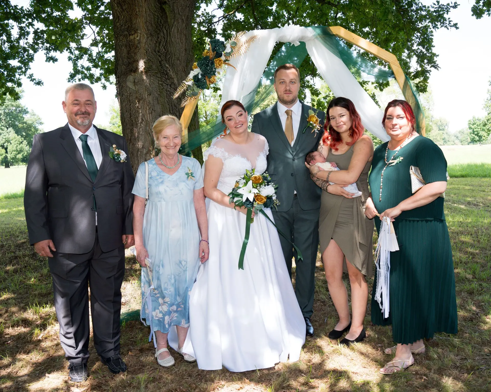 "Svatba Marty a Pavla začala přípravami a nečekaným momentem s falešnou nevěstou, který odlehčil atmosféru hned na úvod. Nevěsta se k oltáři dostavila nevšedním způsobem, přijela totiž na své motorce. Obřad proběhl nedaleko Slovanského hradiště a celý den se nesl v klidném a osobitém duchu. V průběhu dne nechybělo také svatební fotografování na Hradišťku, kde na poslední chvíli vysvitly nádherné a jemné sluneční paprsky, které fotkám dodaly tu pravou atmosféru."