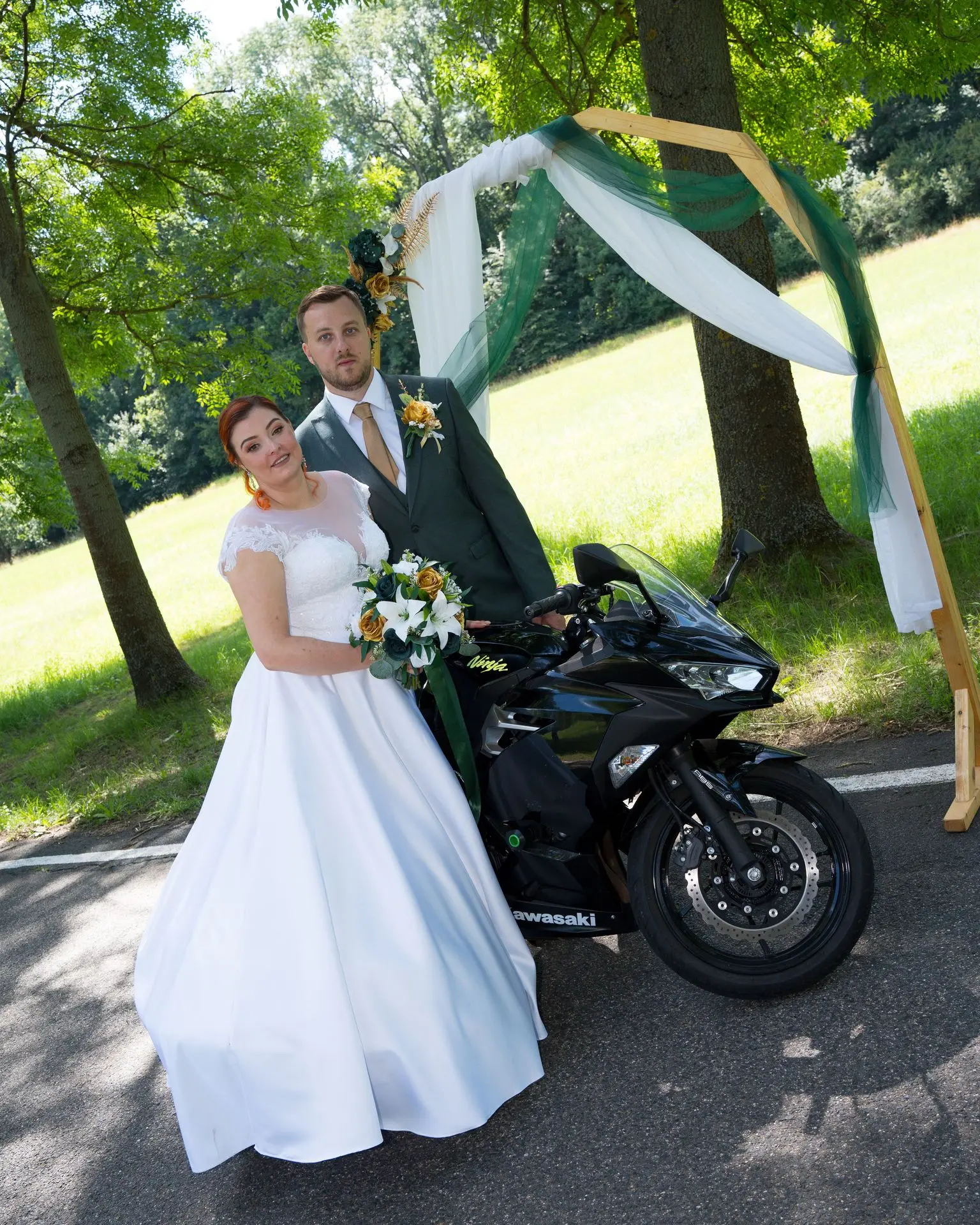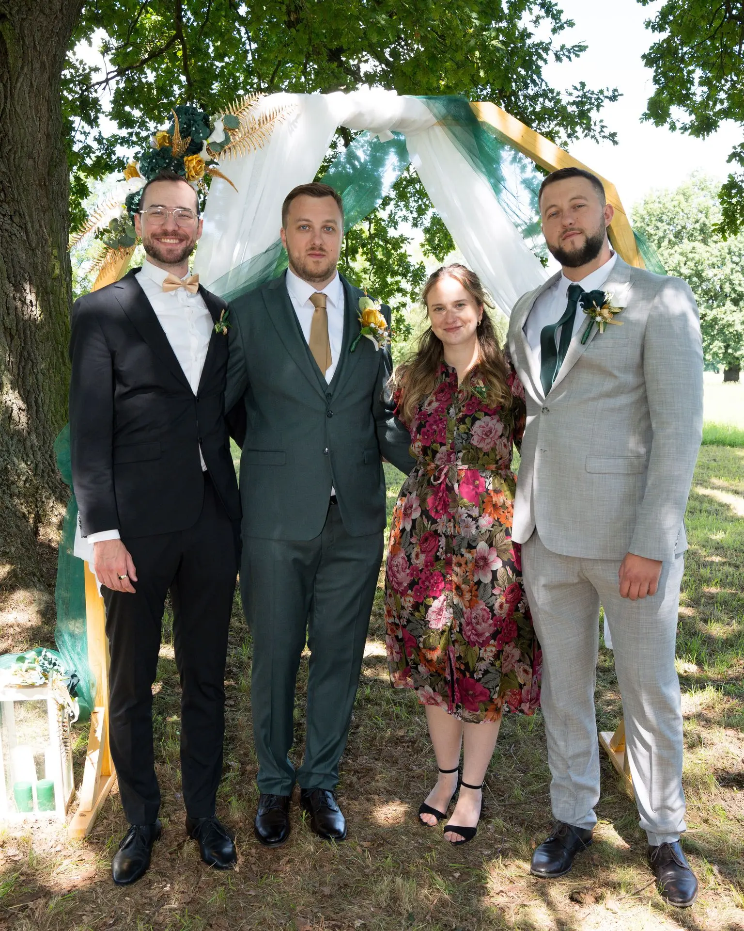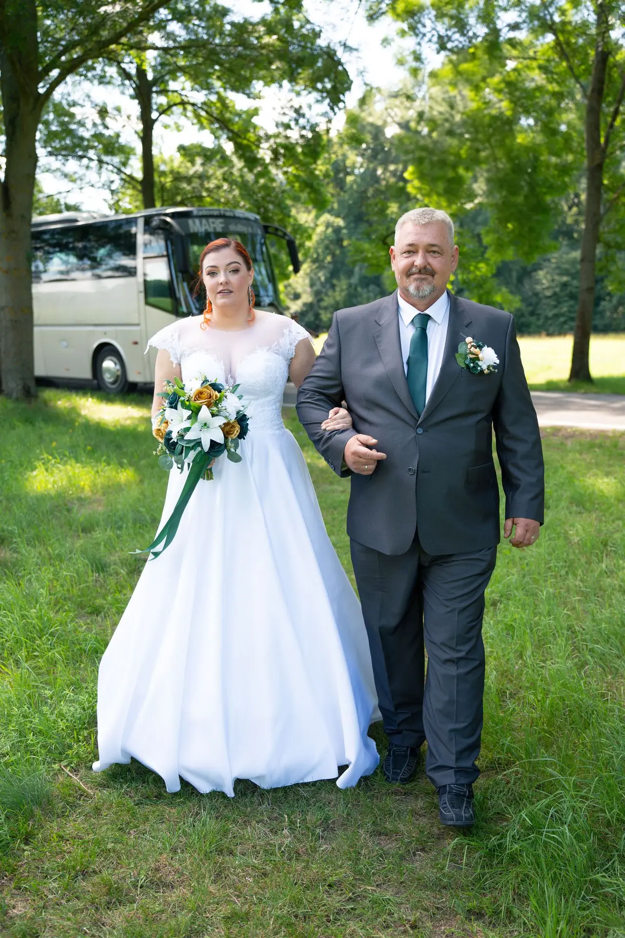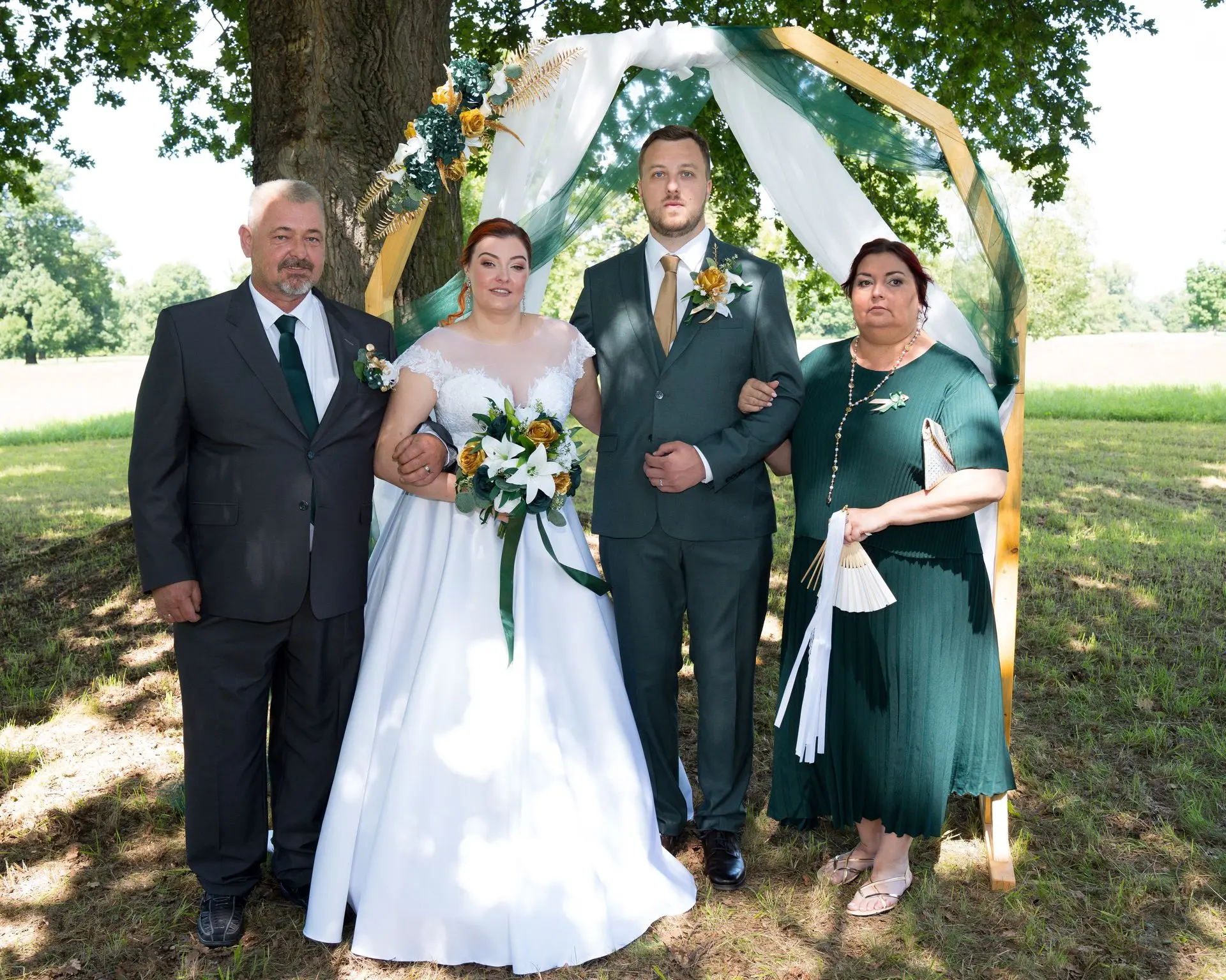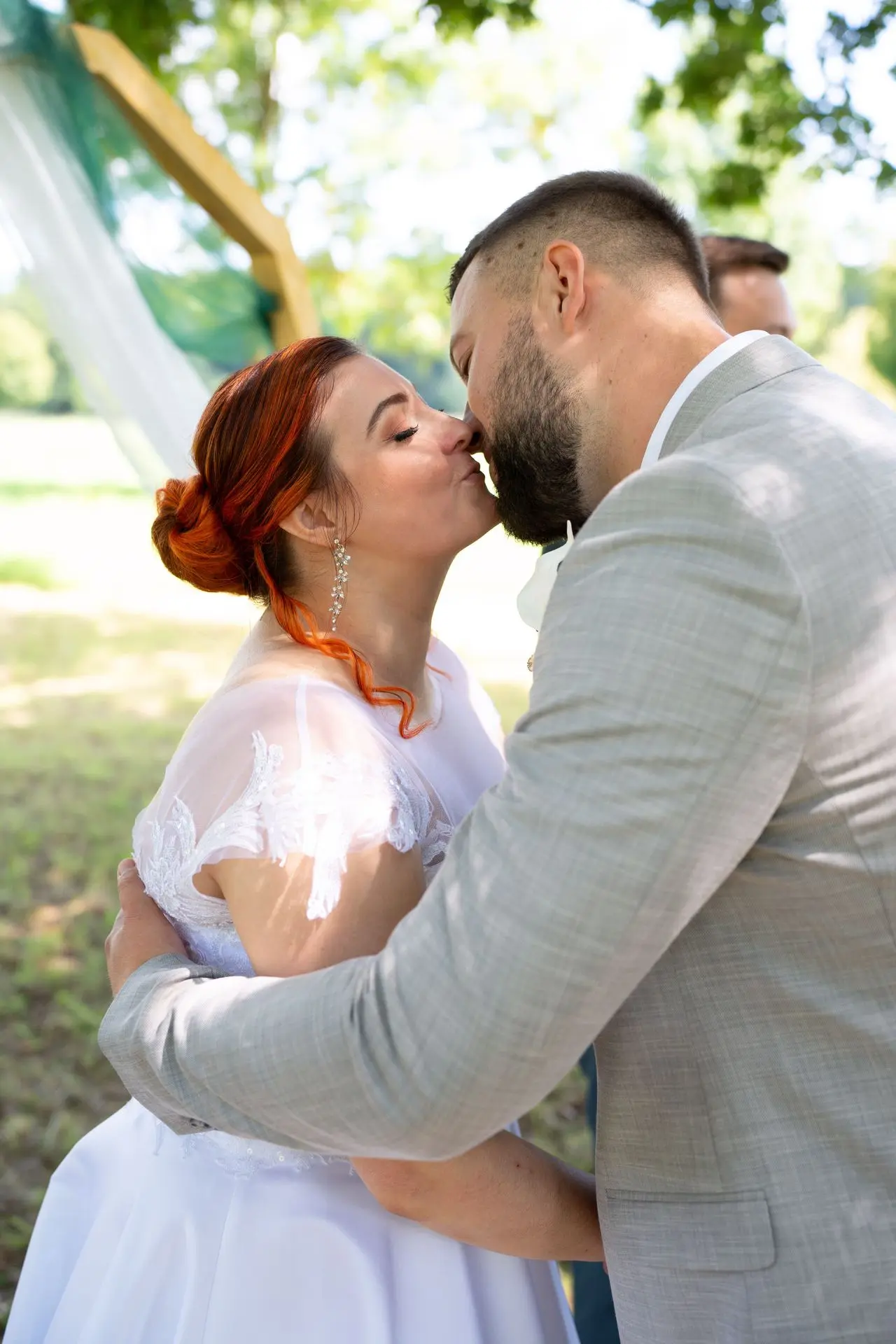 "Svatba Marty a Pavla začala přípravami a nečekaným momentem s falešnou nevěstou, který odlehčil atmosféru hned na úvod. Nevěsta se k oltáři dostavila nevšedním způsobem, přijela totiž na své motorce. Obřad proběhl nedaleko Slovanského hradiště a celý den se nesl v klidném a osobitém duchu. V průběhu dne nechybělo také svatební fotografování na Hradišťku, kde na poslední chvíli vysvitly nádherné a jemné sluneční paprsky, které fotkám dodaly tu pravou atmosféru."