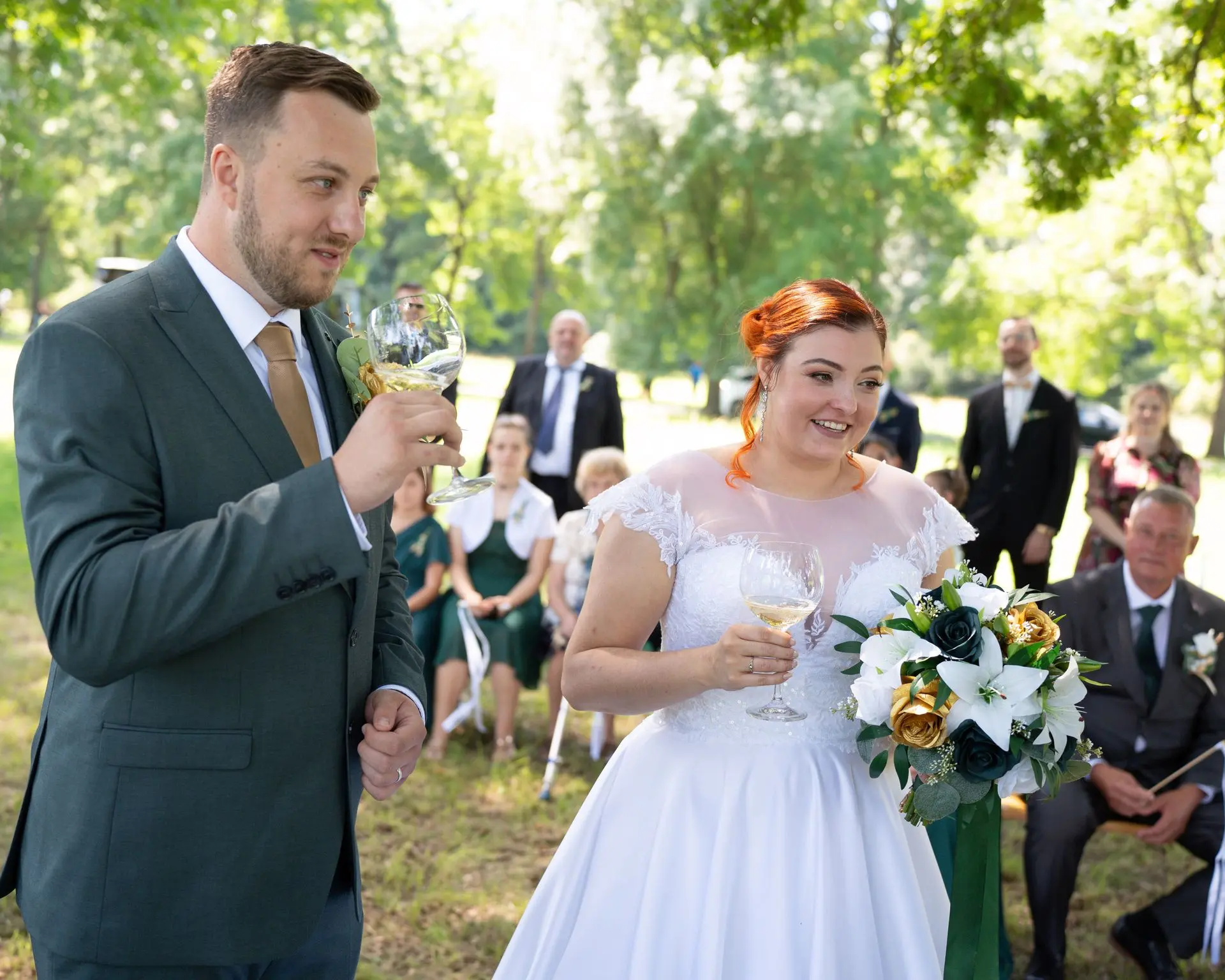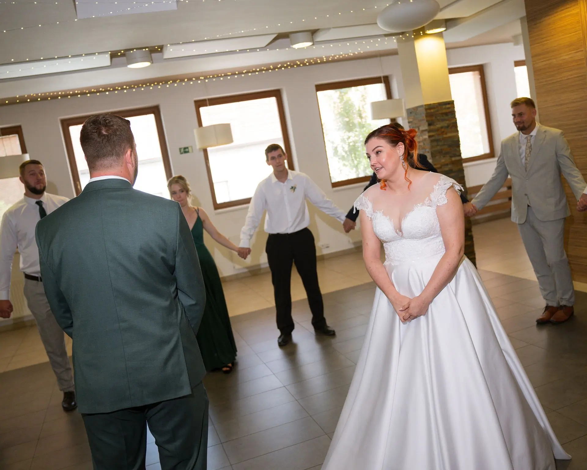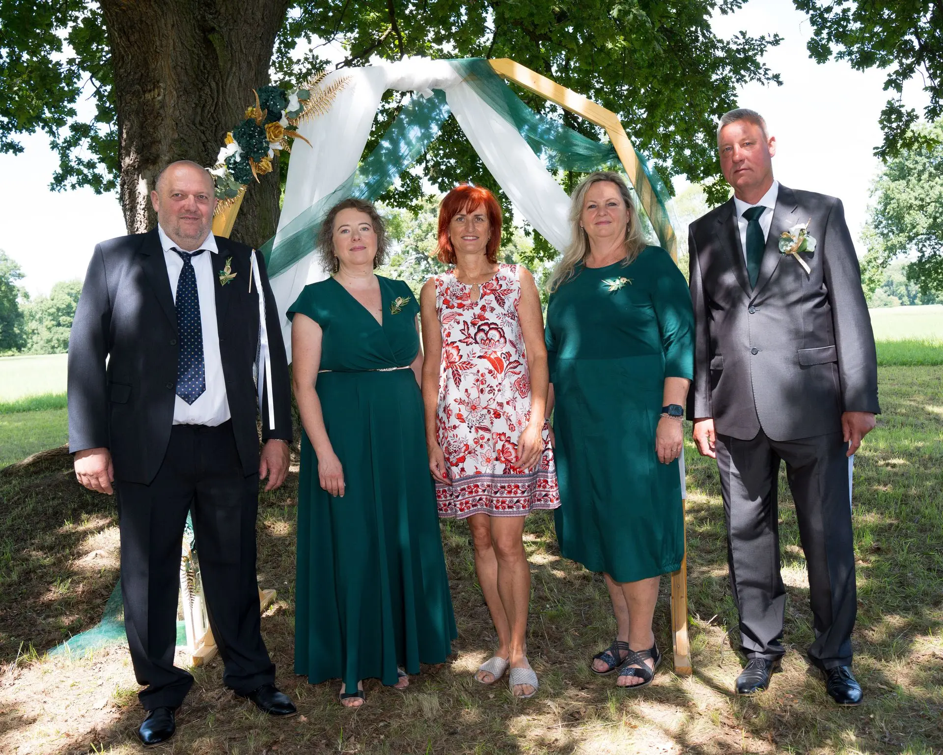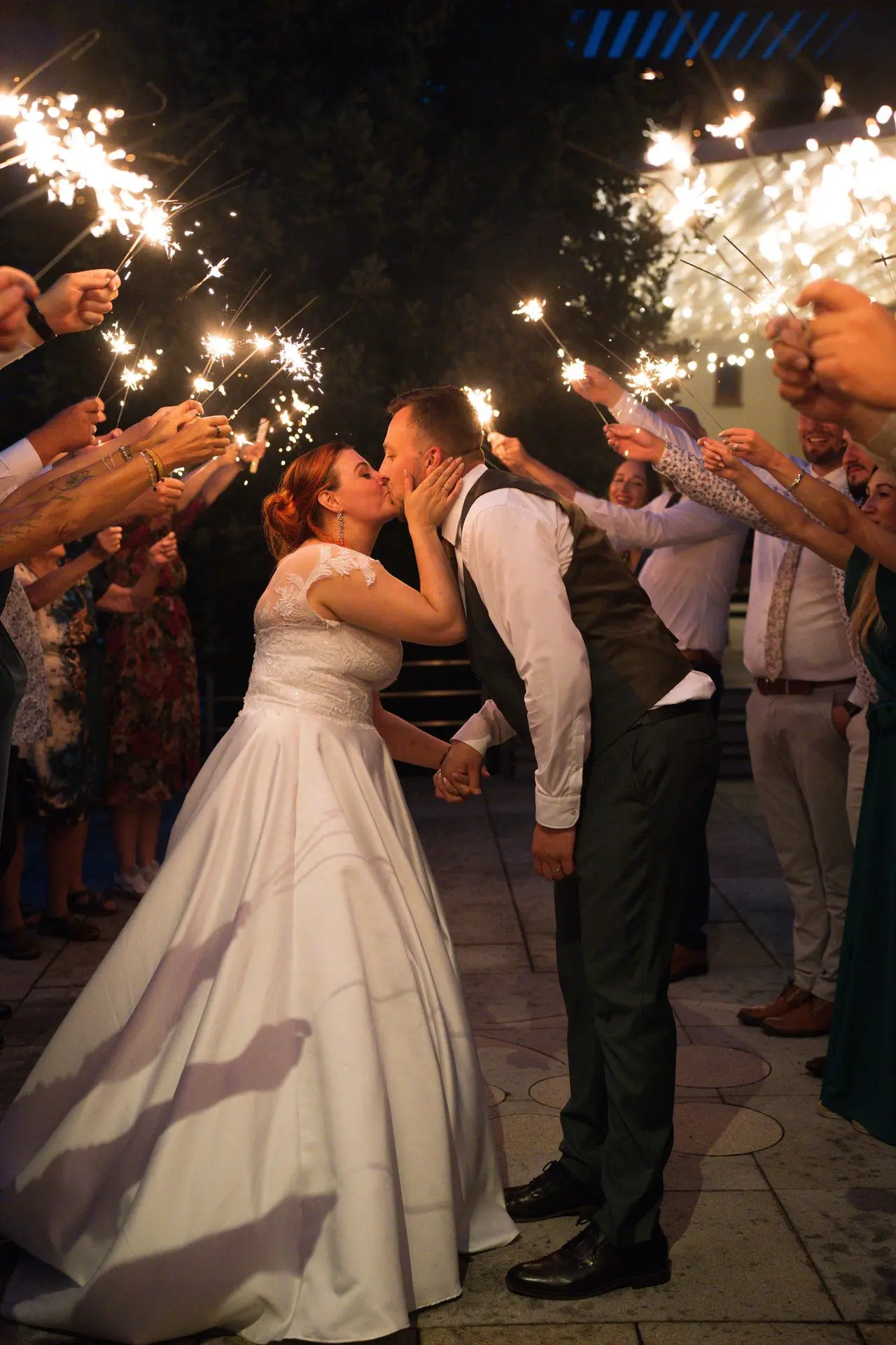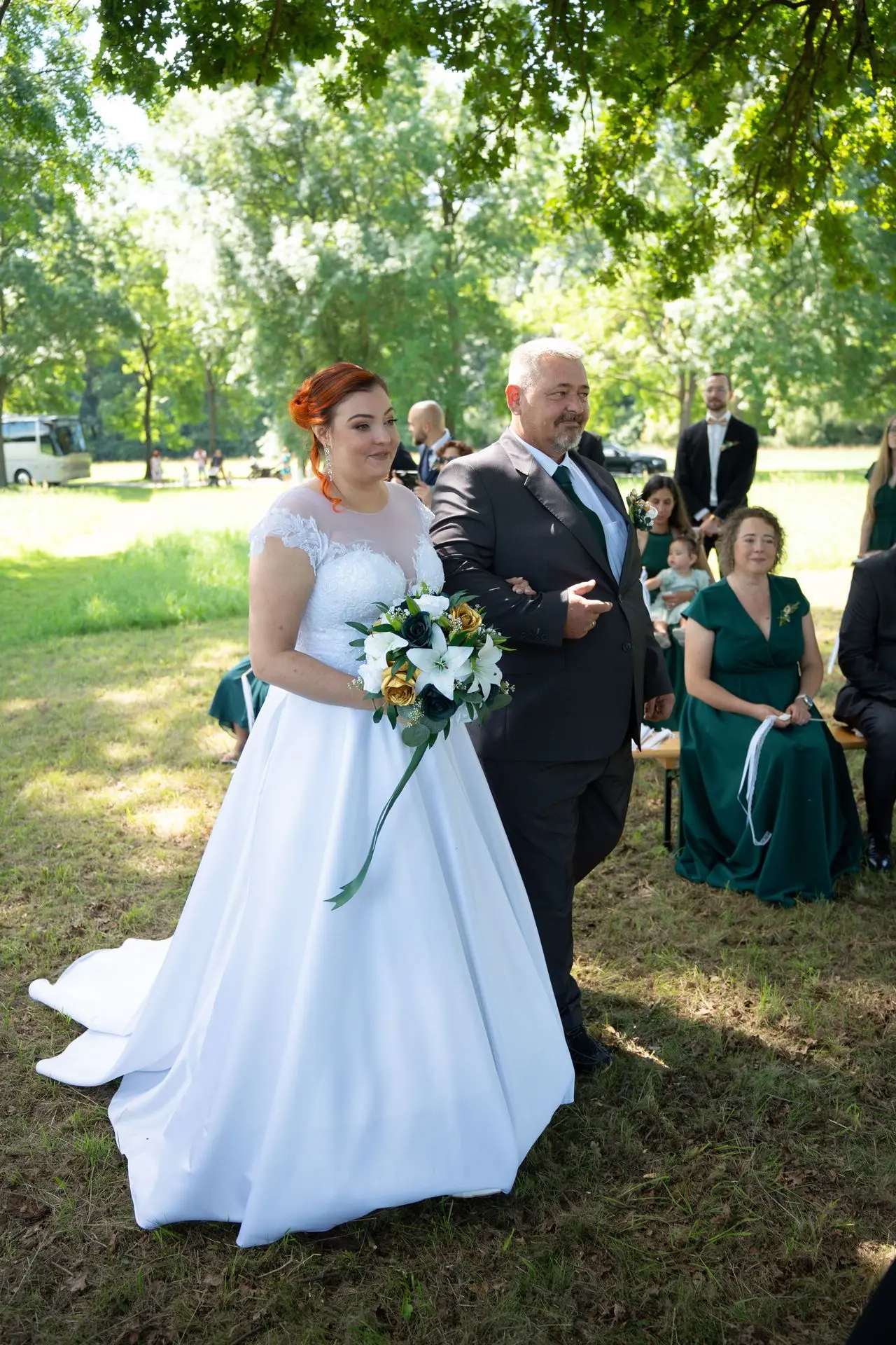 "Svatba Marty a Pavla začala přípravami a nečekaným momentem s falešnou nevěstou, který odlehčil atmosféru hned na úvod. Nevěsta se k oltáři dostavila nevšedním způsobem, přijela totiž na své motorce. Obřad proběhl nedaleko Slovanského hradiště a celý den se nesl v klidném a osobitém duchu. V průběhu dne nechybělo také svatební fotografování na Hradišťku, kde na poslední chvíli vysvitly nádherné a jemné sluneční paprsky, které fotkám dodaly tu pravou atmosféru."
