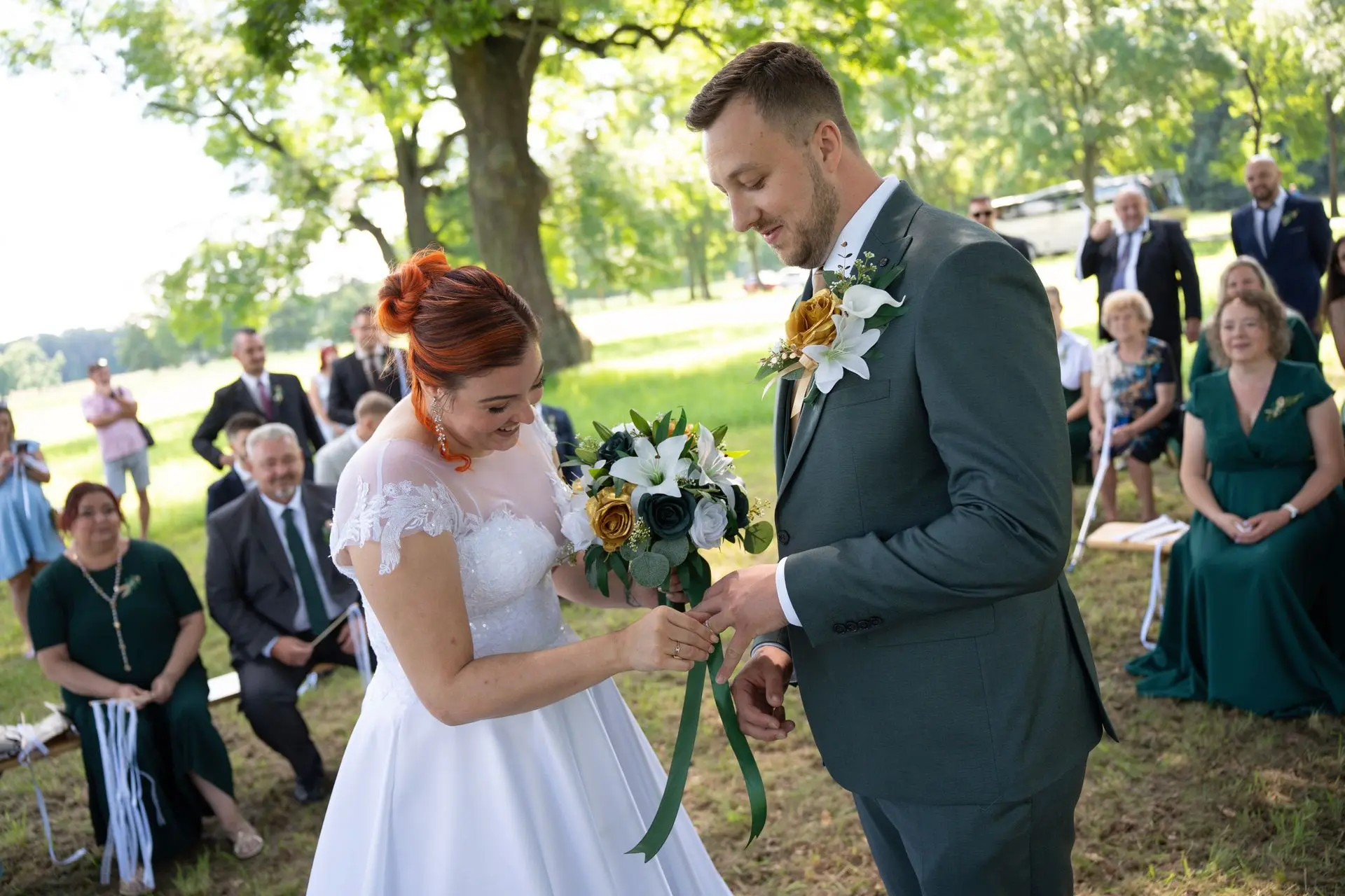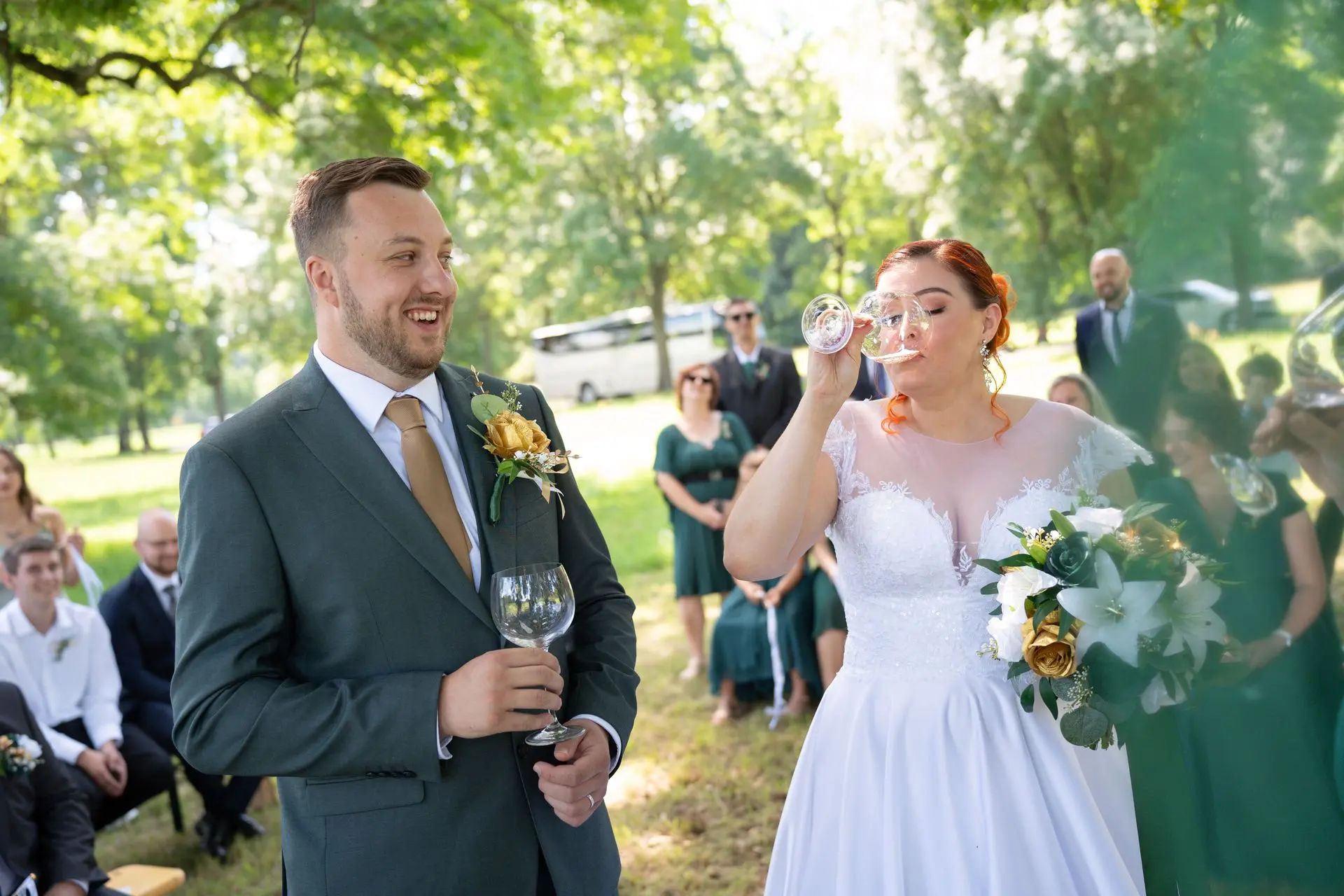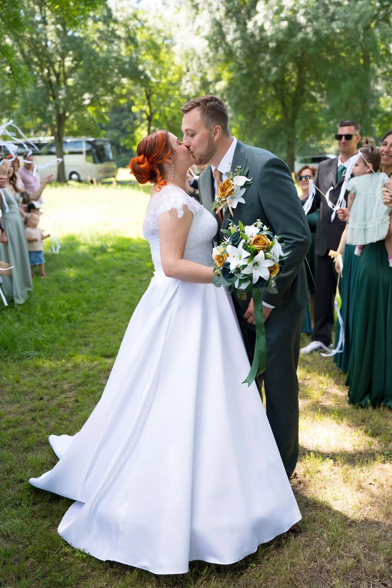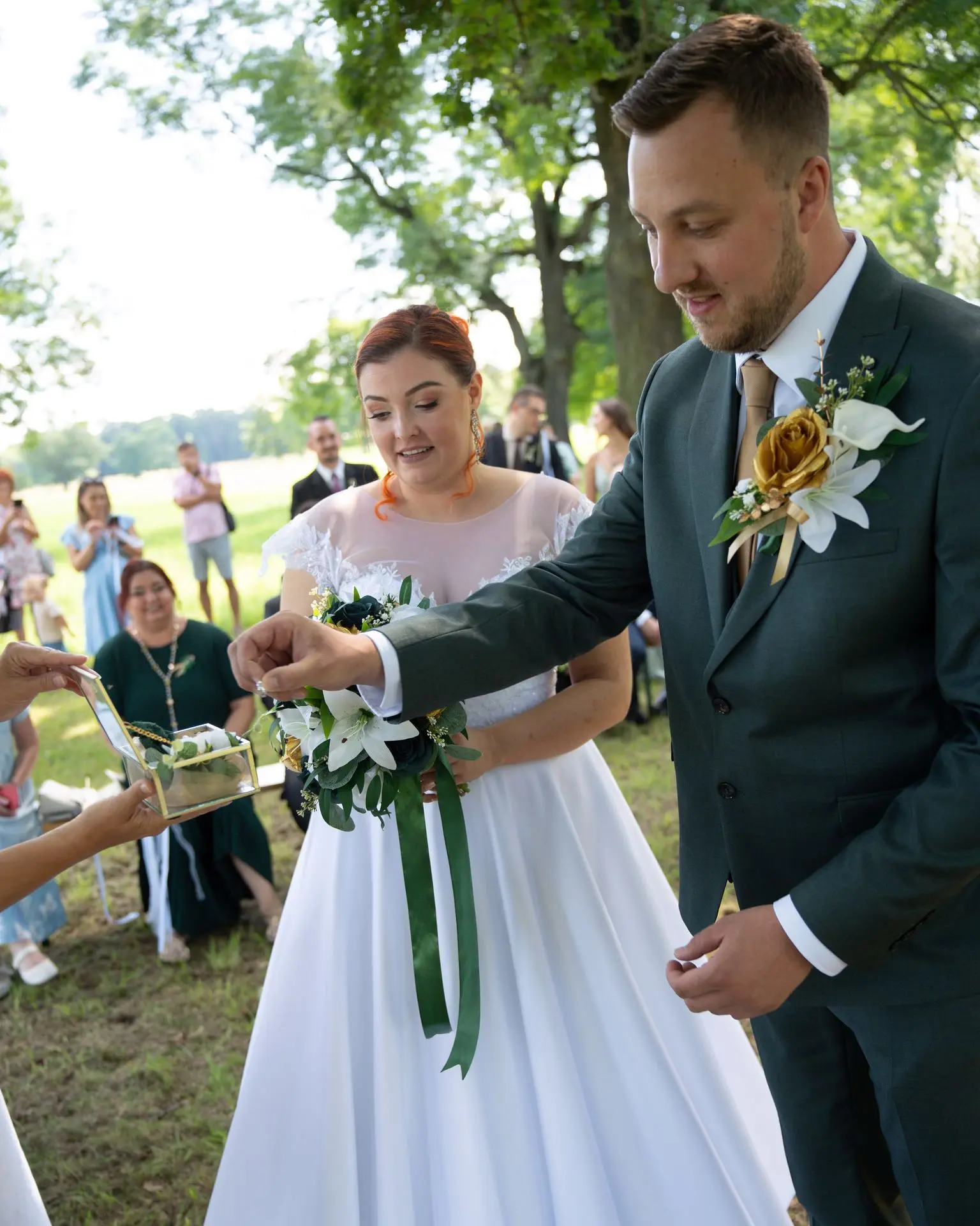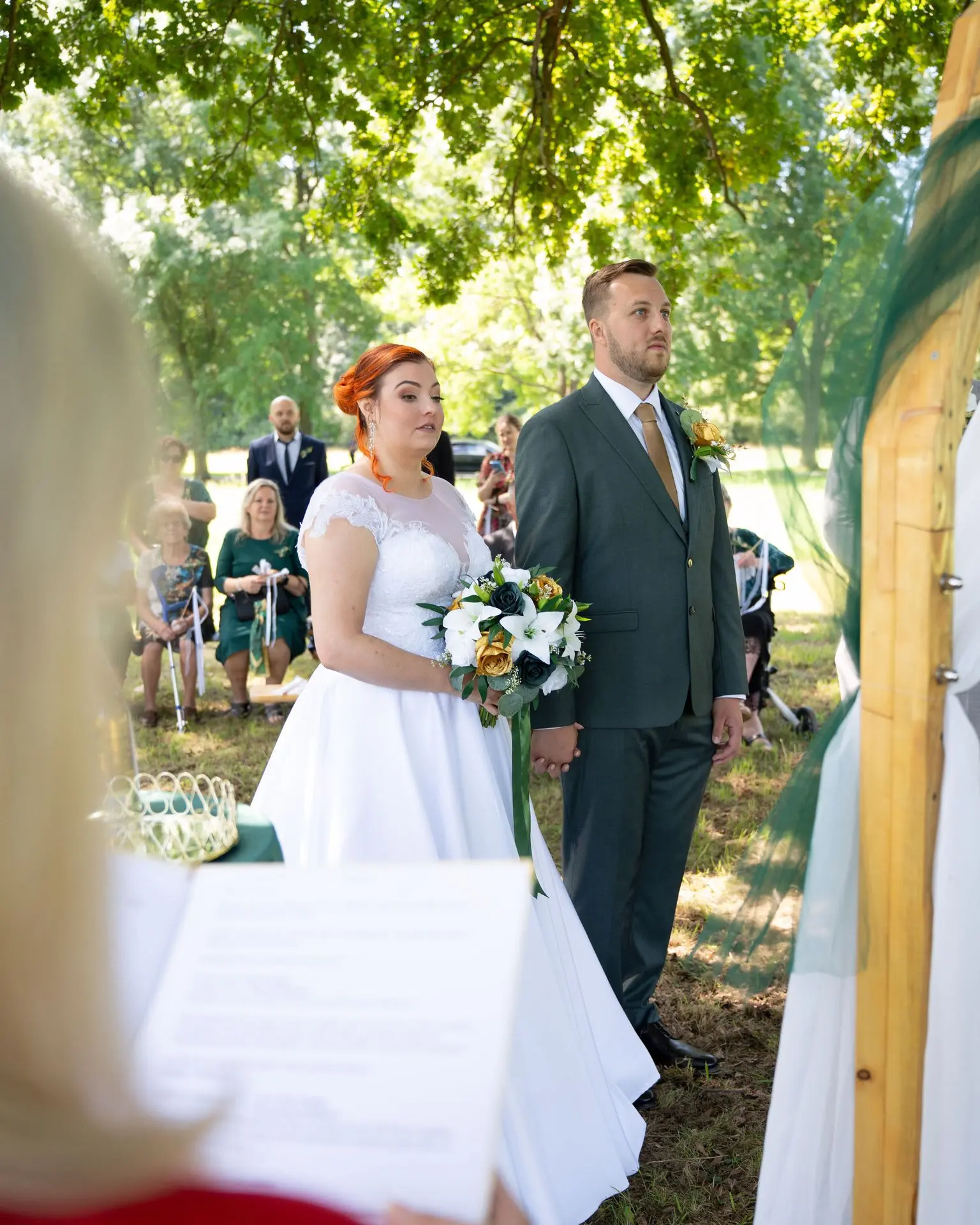 "Svatba Marty a Pavla začala přípravami a nečekaným momentem s falešnou nevěstou, který odlehčil atmosféru hned na úvod. Nevěsta se k oltáři dostavila nevšedním způsobem, přijela totiž na své motorce. Obřad proběhl nedaleko Slovanského hradiště a celý den se nesl v klidném a osobitém duchu. V průběhu dne nechybělo také svatební fotografování na Hradišťku, kde na poslední chvíli vysvitly nádherné a jemné sluneční paprsky, které fotkám dodaly tu pravou atmosféru."