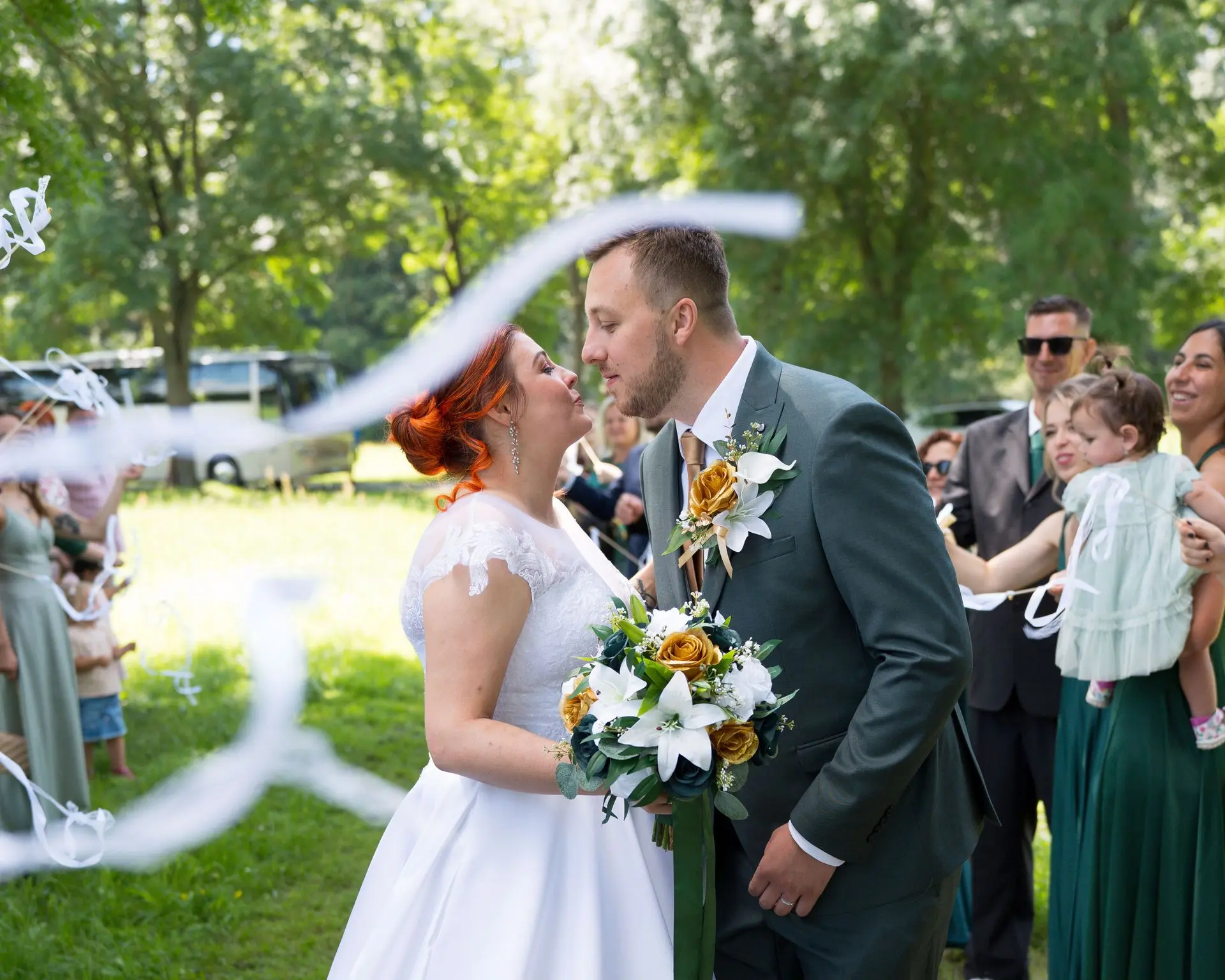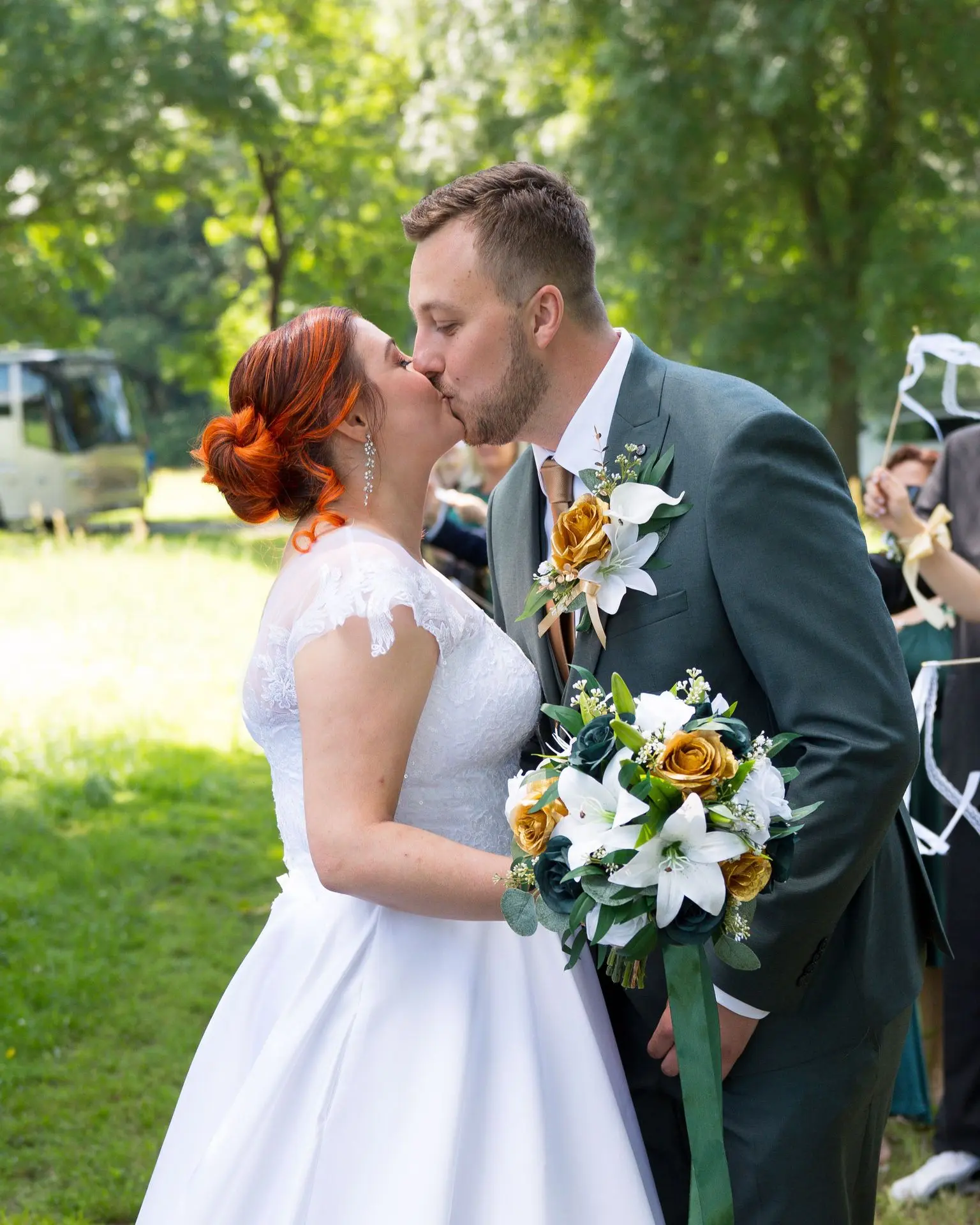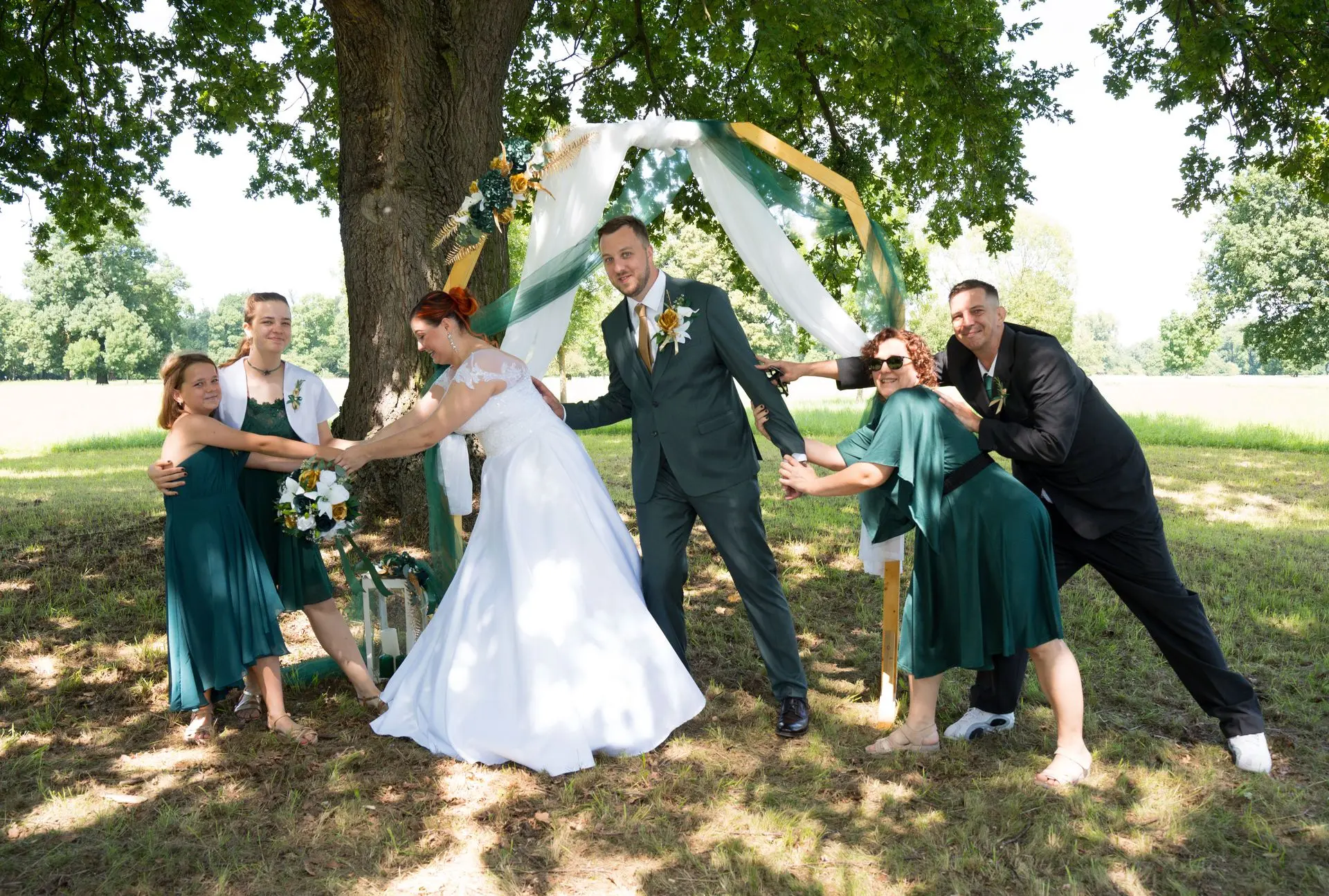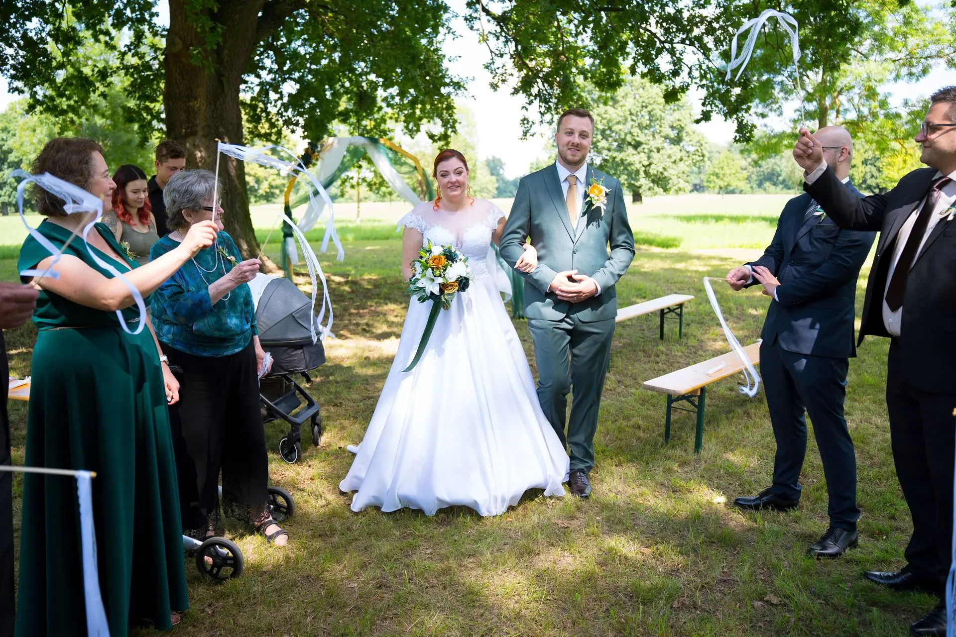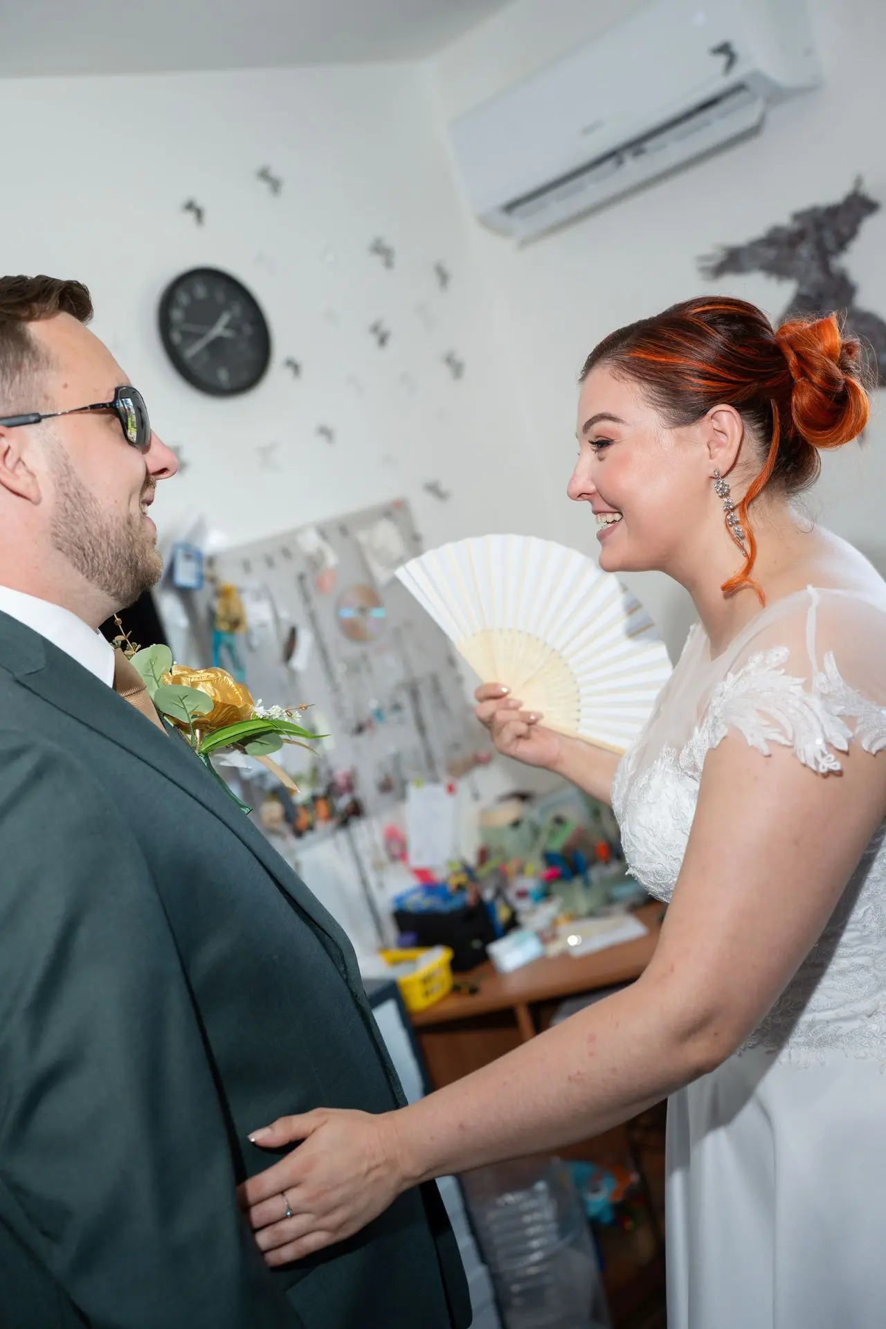 "Svatba Marty a Pavla začala přípravami a nečekaným momentem s falešnou nevěstou, který odlehčil atmosféru hned na úvod. Nevěsta se k oltáři dostavila nevšedním způsobem, přijela totiž na své motorce. Obřad proběhl nedaleko Slovanského hradiště a celý den se nesl v klidném a osobitém duchu. V průběhu dne nechybělo také svatební fotografování na Hradišťku, kde na poslední chvíli vysvitly nádherné a jemné sluneční paprsky, které fotkám dodaly tu pravou atmosféru."