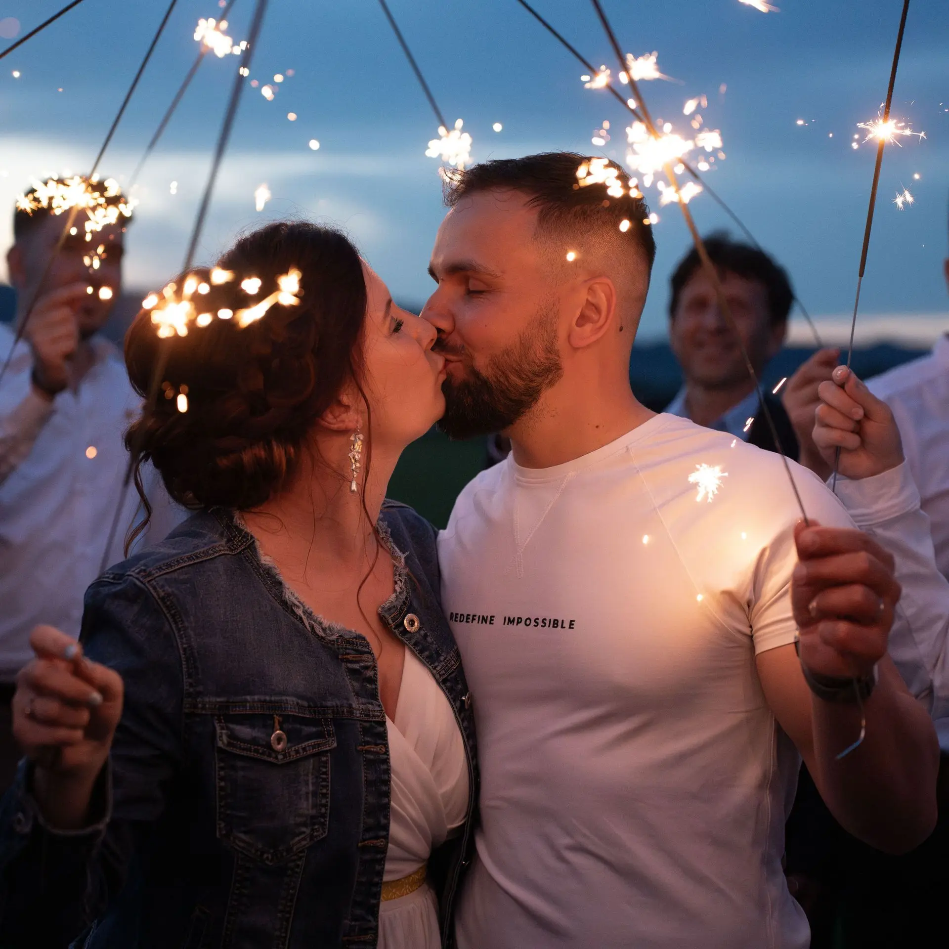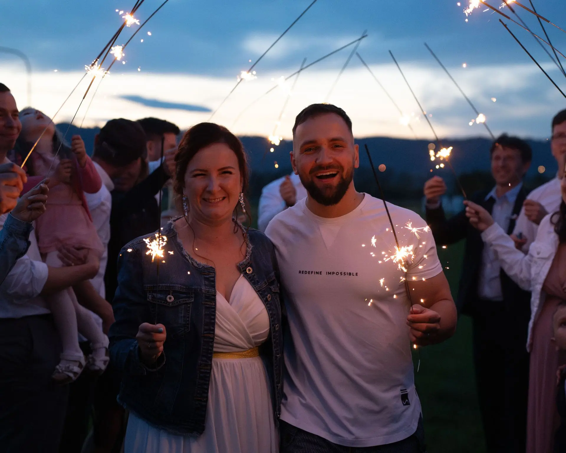 A když přišla tma, nastoupily prskavky. Rozzářily večerní a vytvořily kouzelnou atmosféru – jemnou, tichou, romantickou. Přesně jako oni.